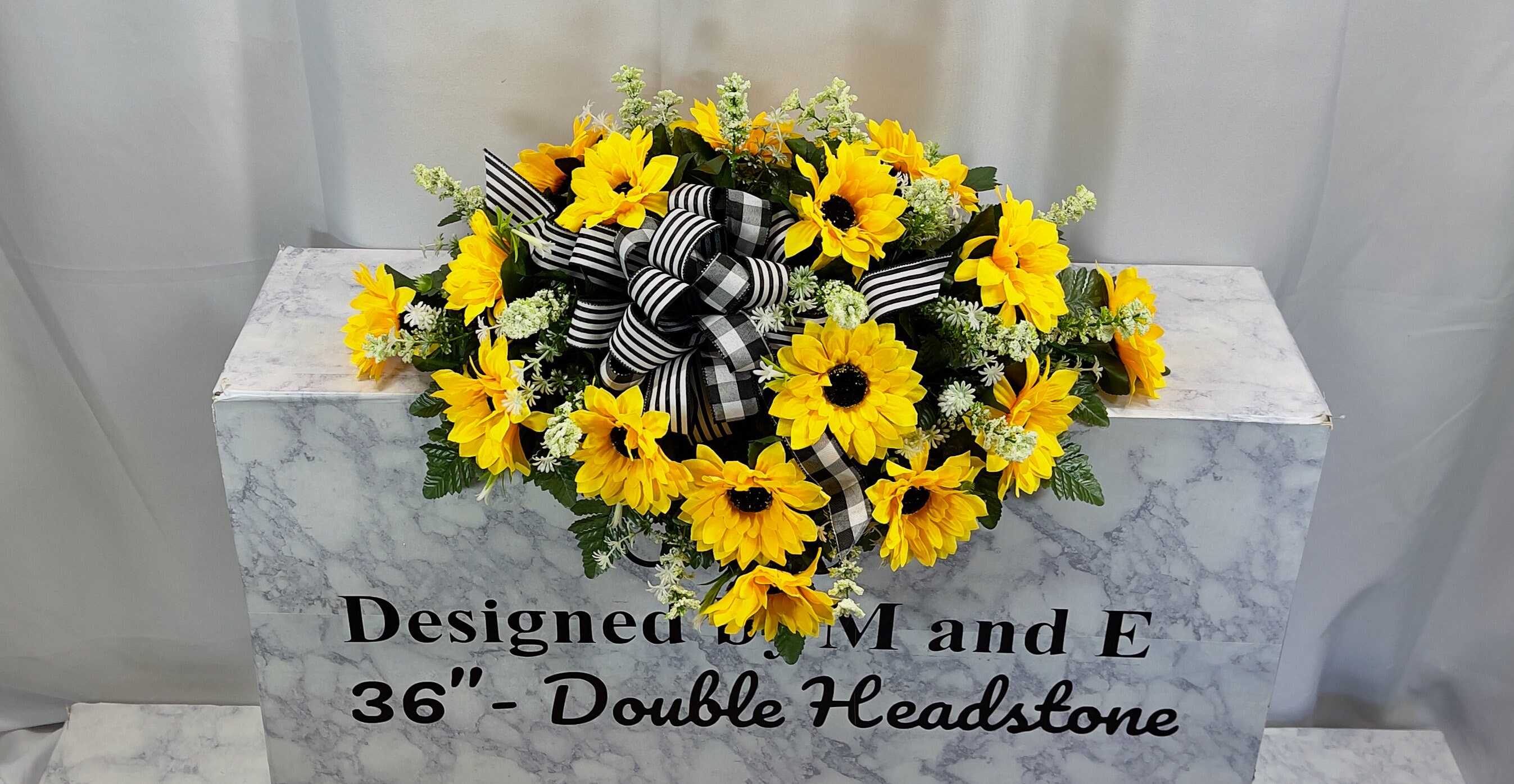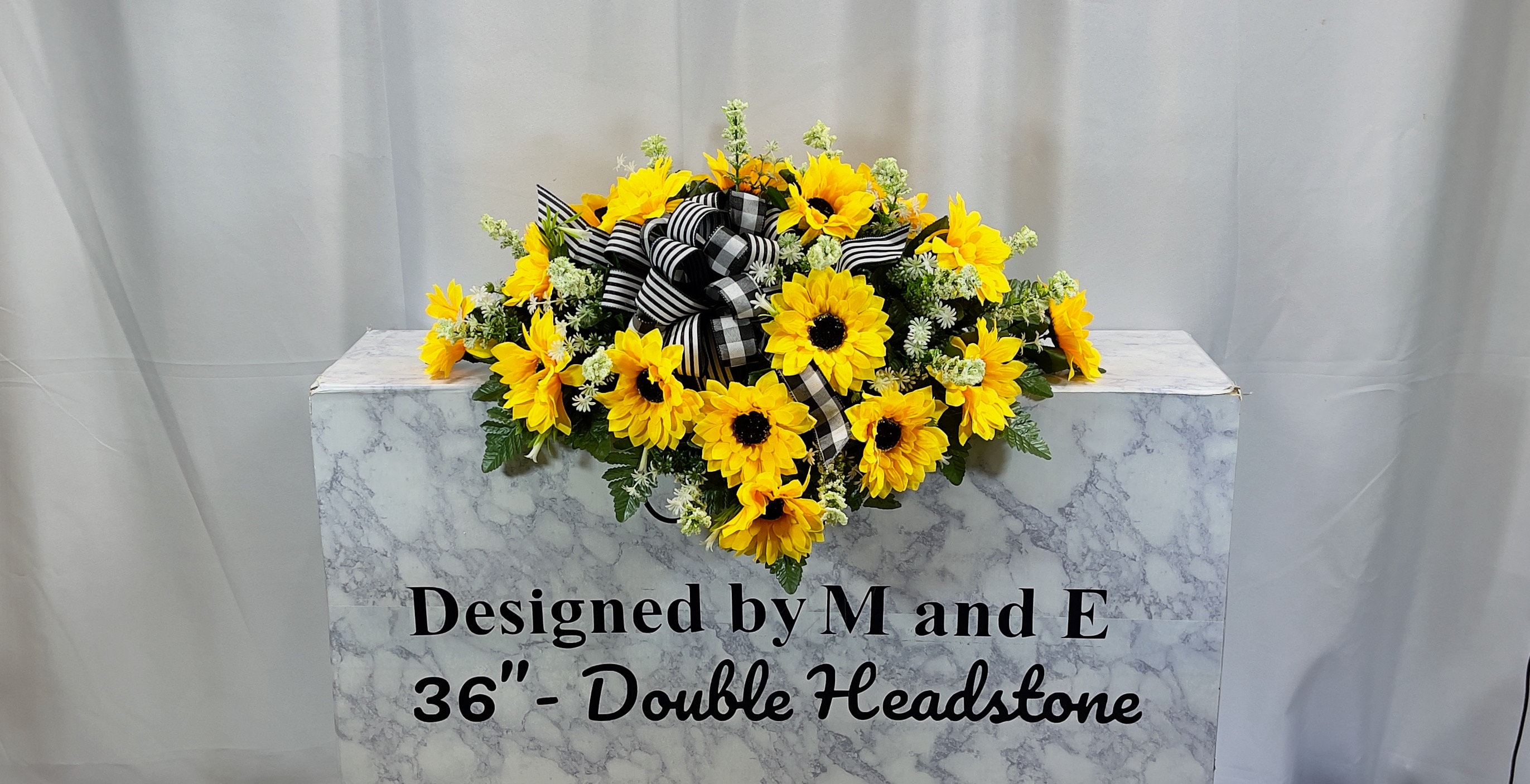 We’re a small, family-operated business consisting of myself, my husband, and my daughter. We personally manage every order and strive for excellent customer service. All our arrangements use high-quality silk flowers, though all silk blooms may fade over time. Each stem is glued into foam to withstand the elements. Designed by M&E uses only premium silks, and we put genuine care into every piece we create. Rest assured, the arrangement shown in our photos is exactly the one you’ll receive, as I design and assemble each one myself. If you’re searching for something unique or have a particular flower, color, or matching vases in mind, please contact me to discuss a custom order.
