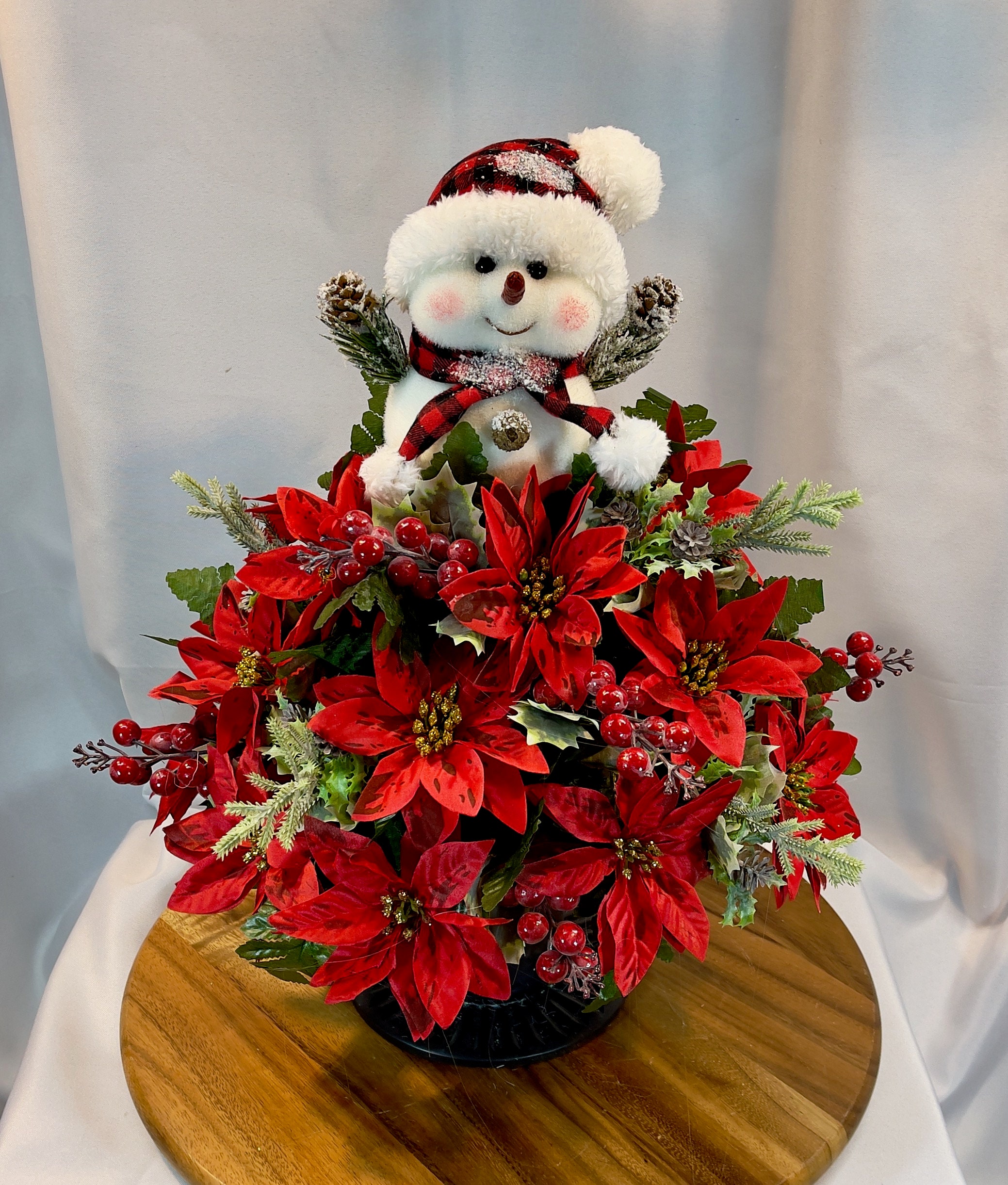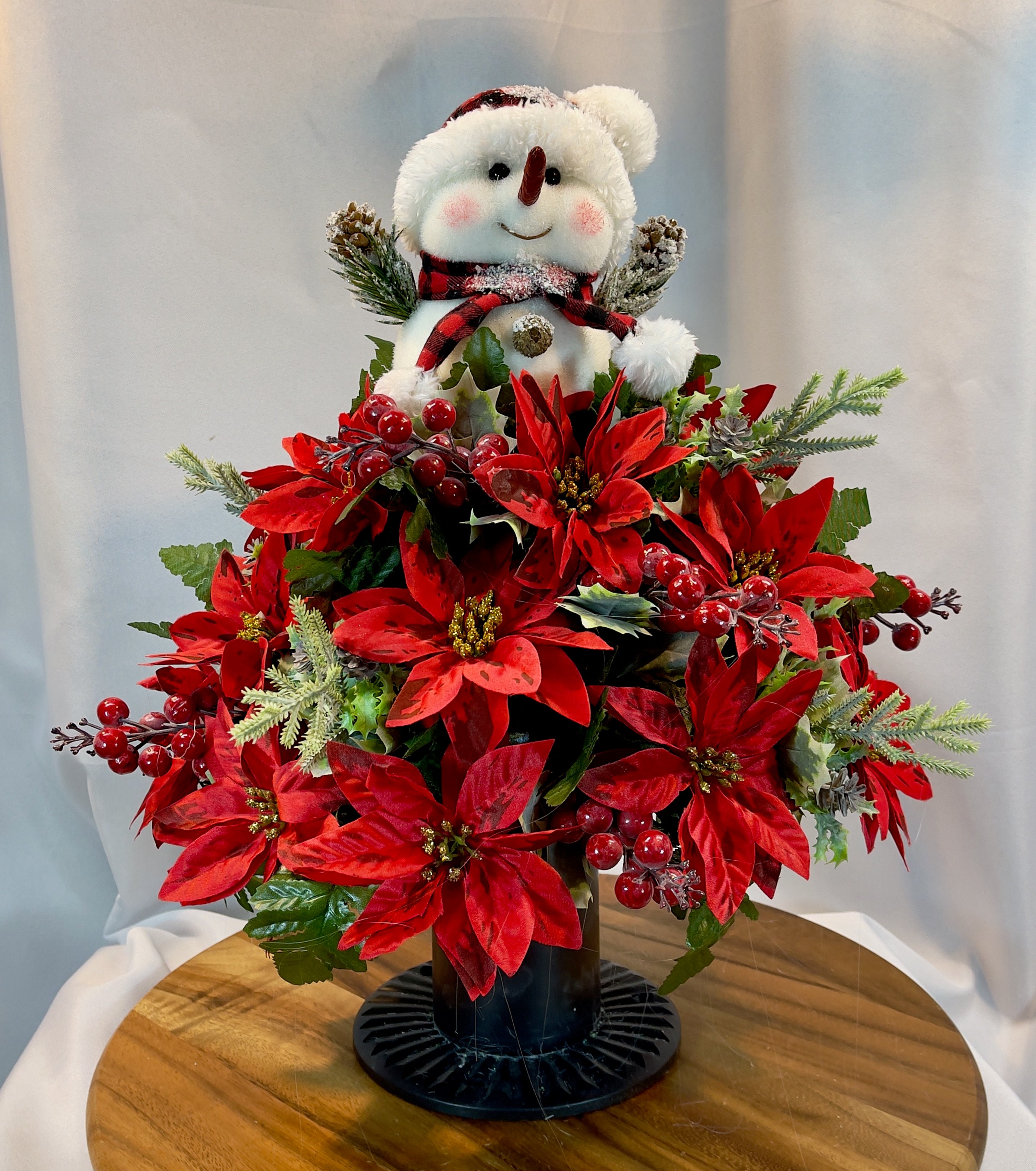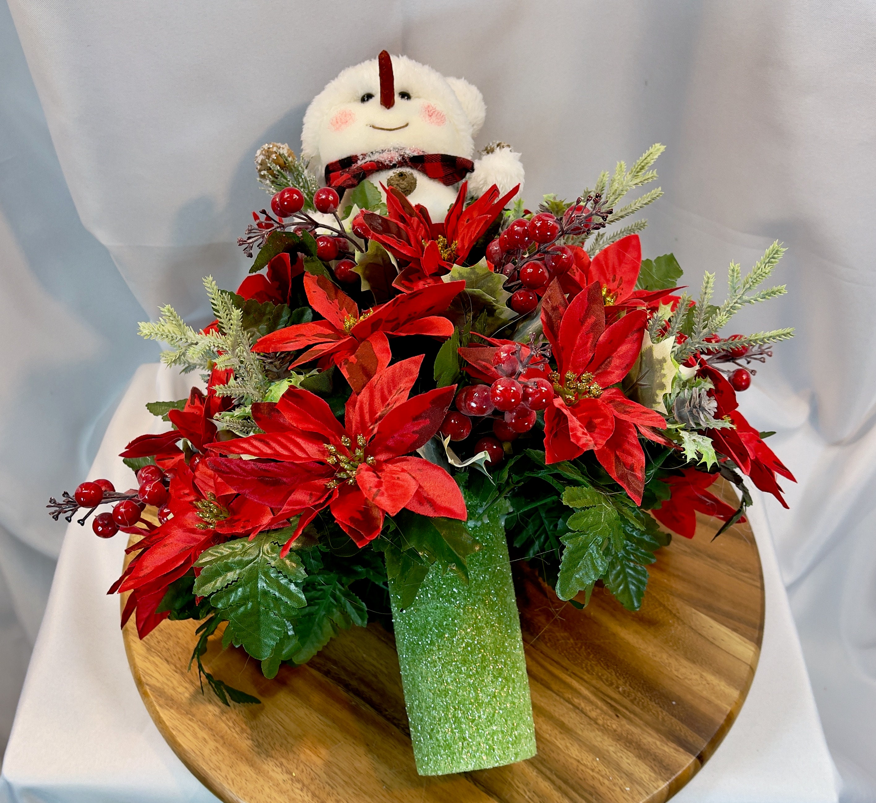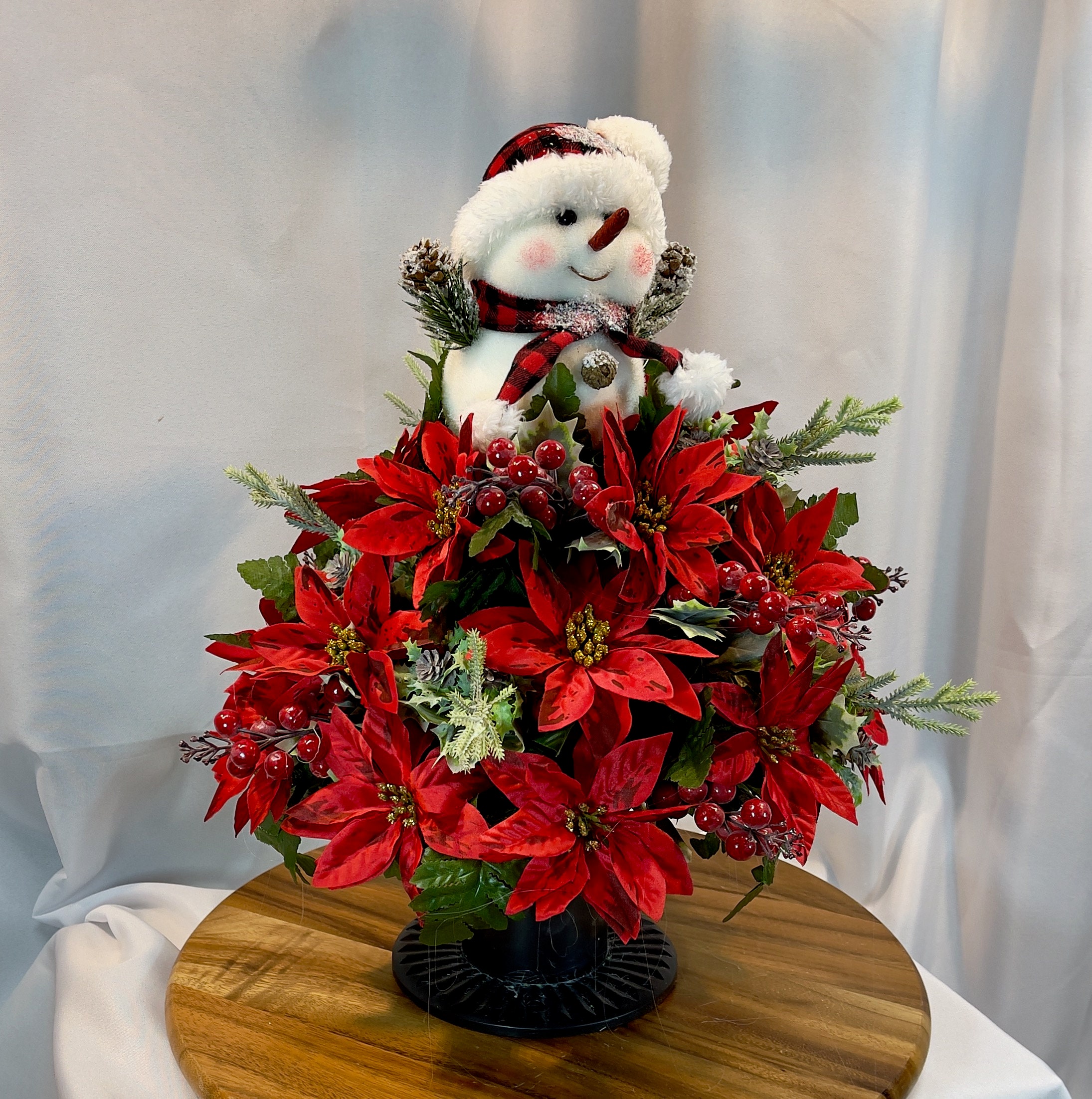 Snowman Poinsettas and Berries Cemetery Christmas Vase, Christmas Vase, Christmas Cemetery Vase, Christmas Flowers, Cemetery Vase