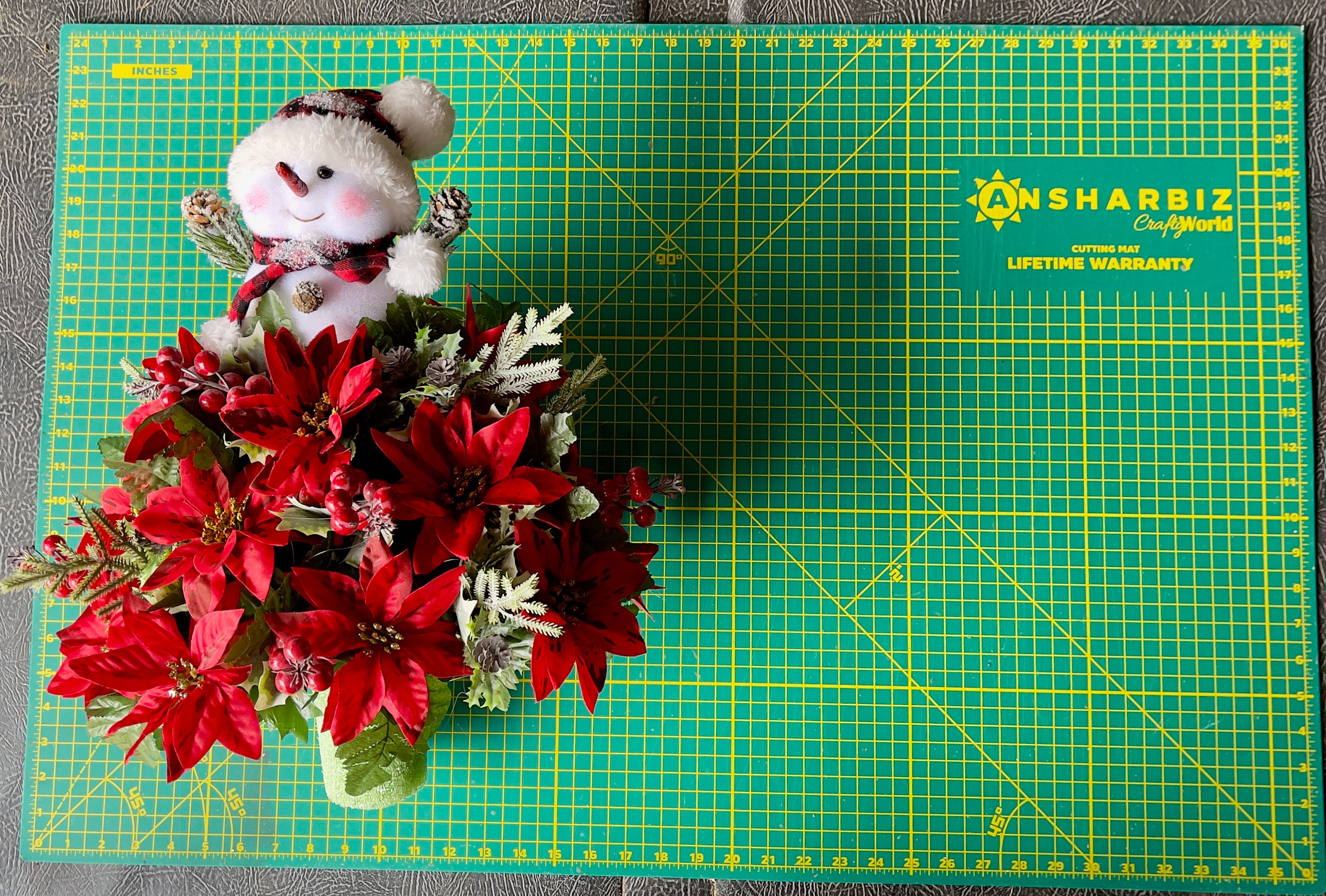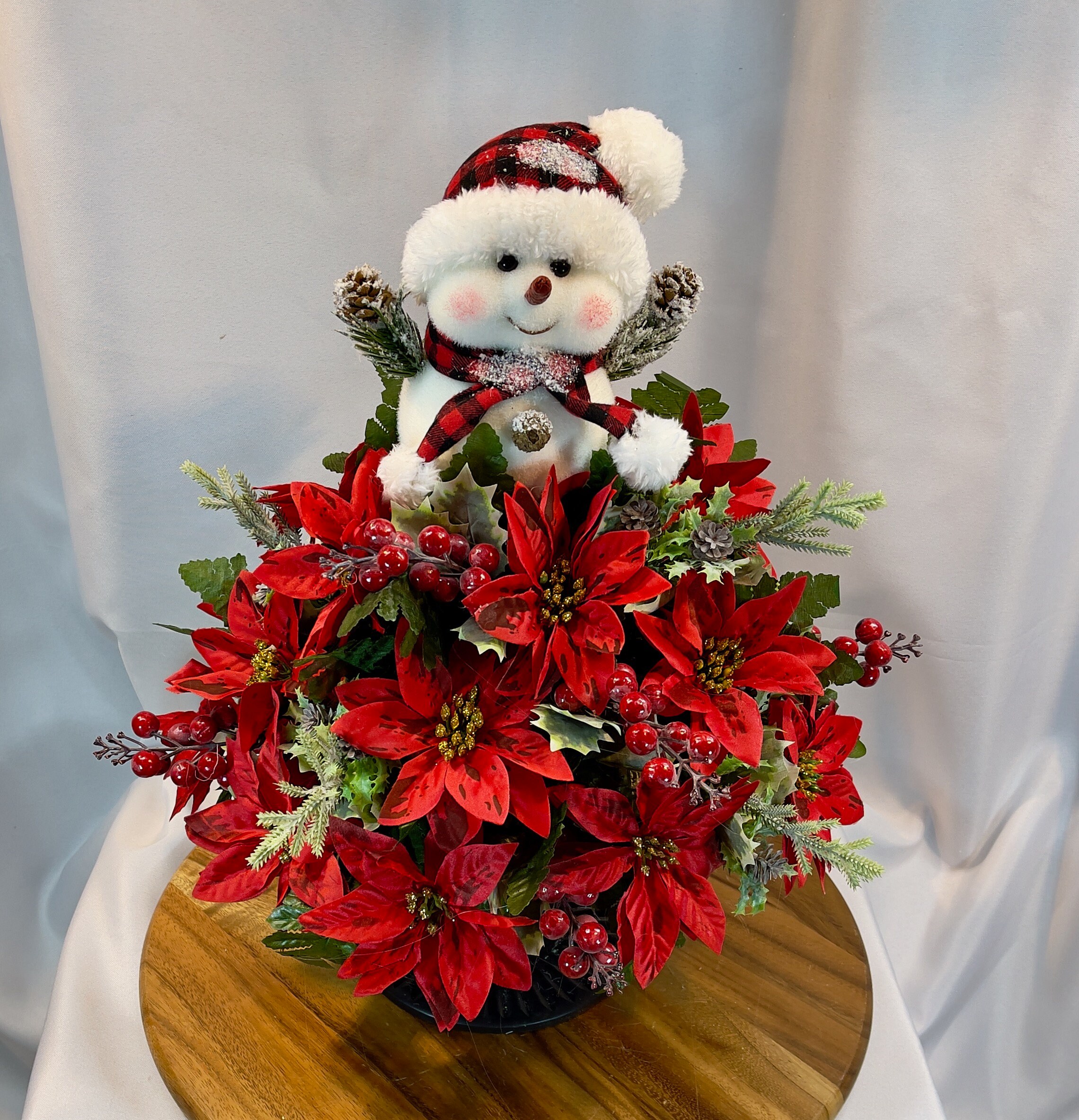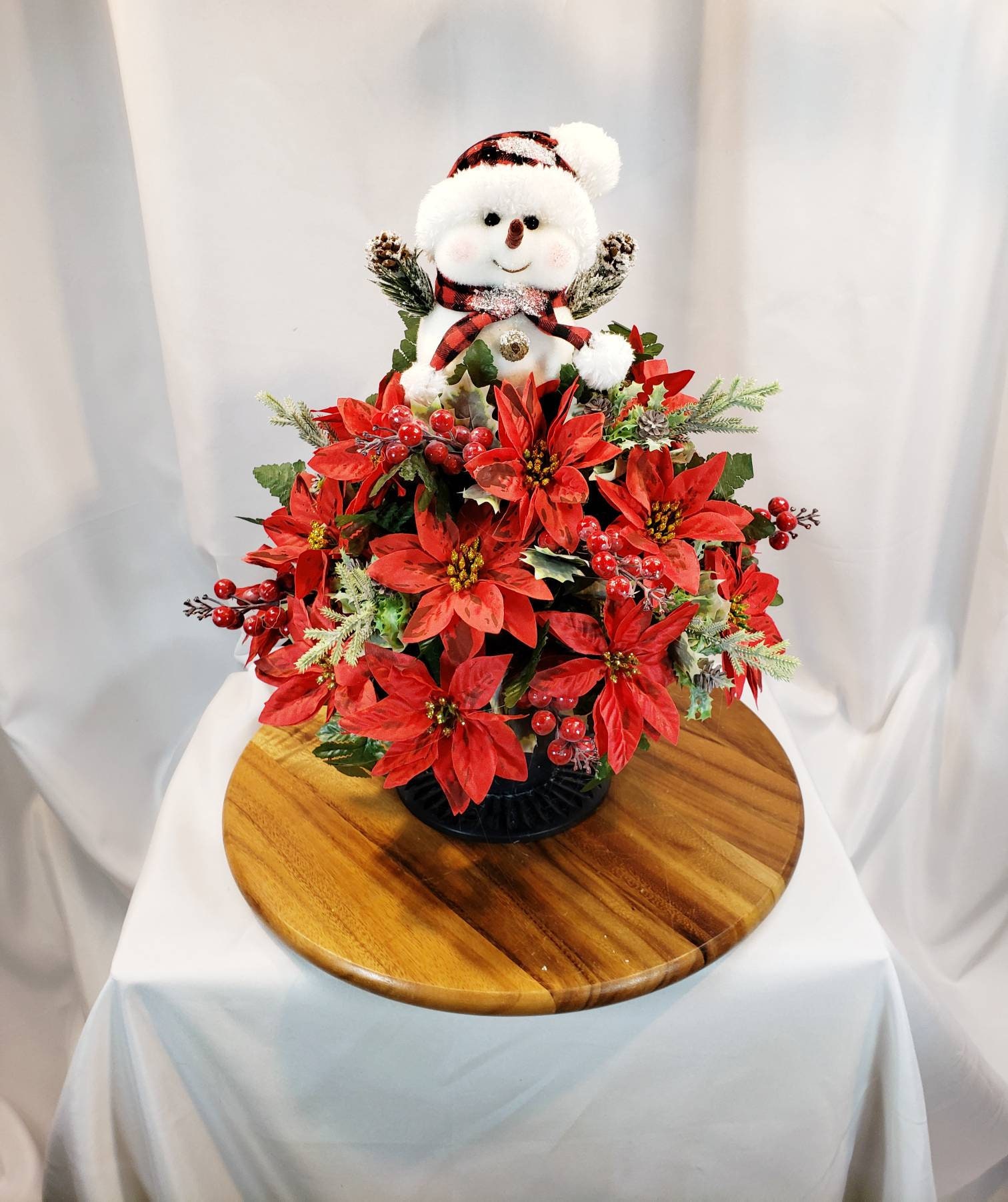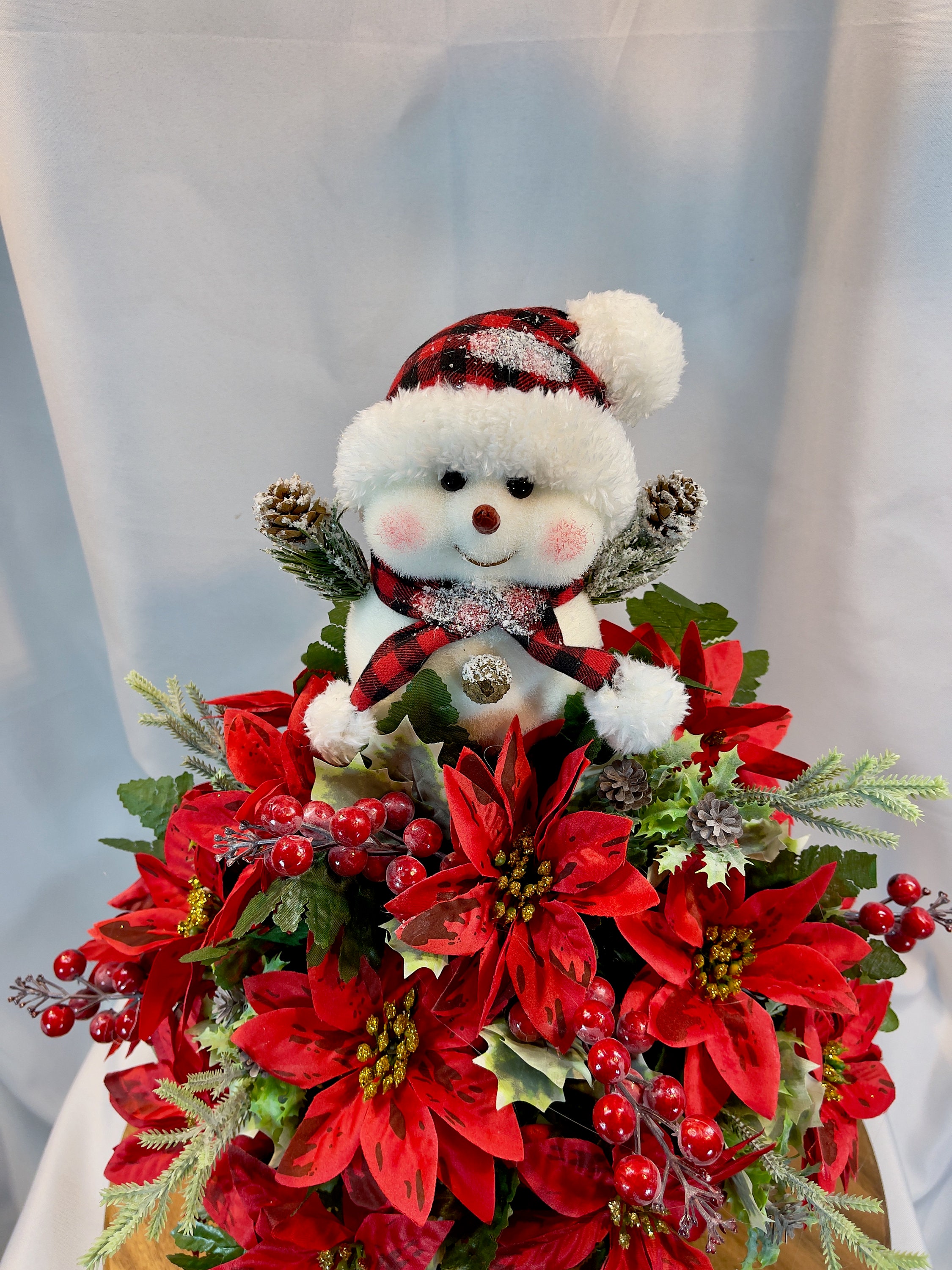Snowman Poinsettas and Berries Cemetery Christmas Vase, Christmas Vase, Christmas Cemetery Vase, Christmas Flowers, Cemetery Vase