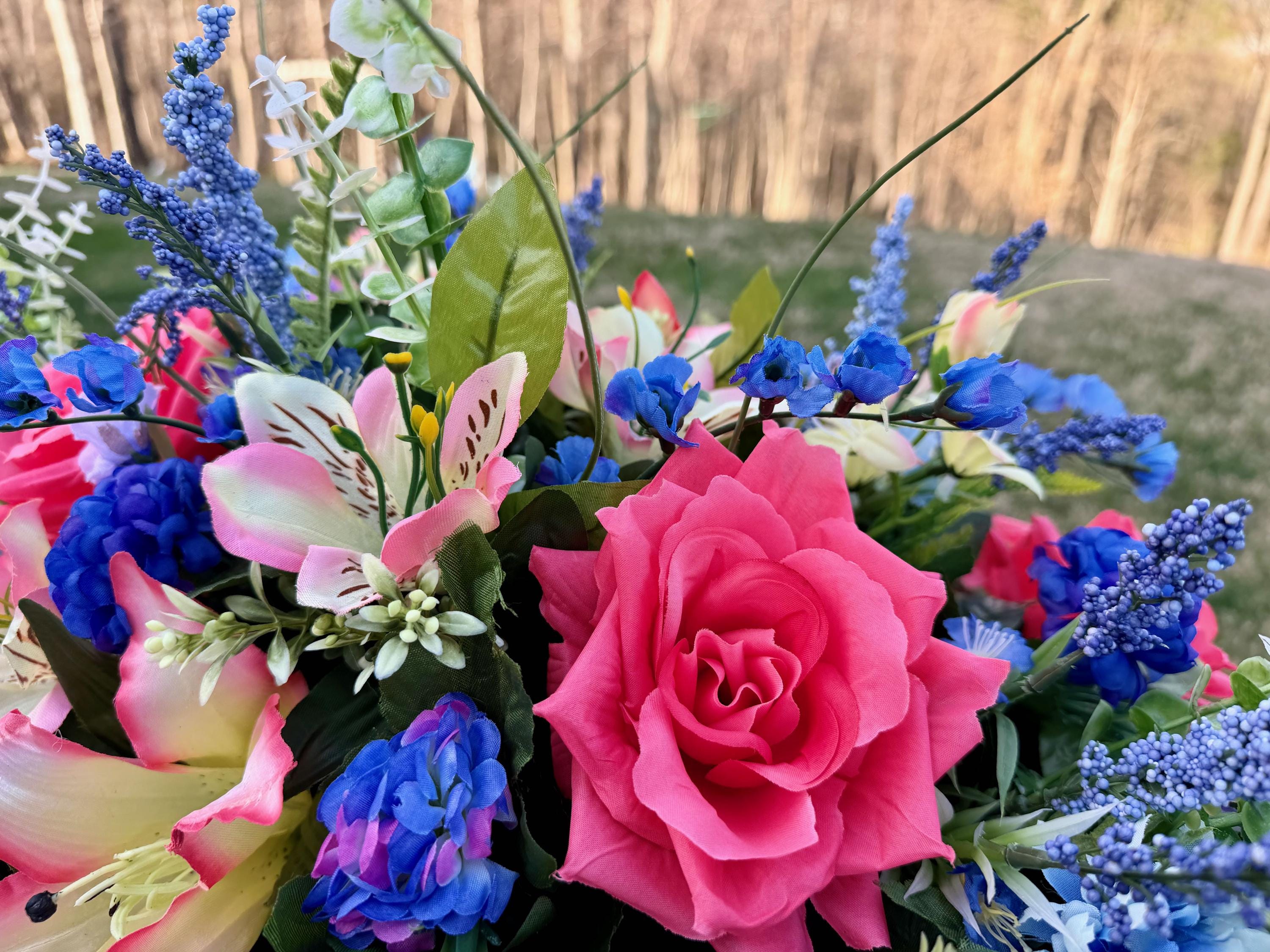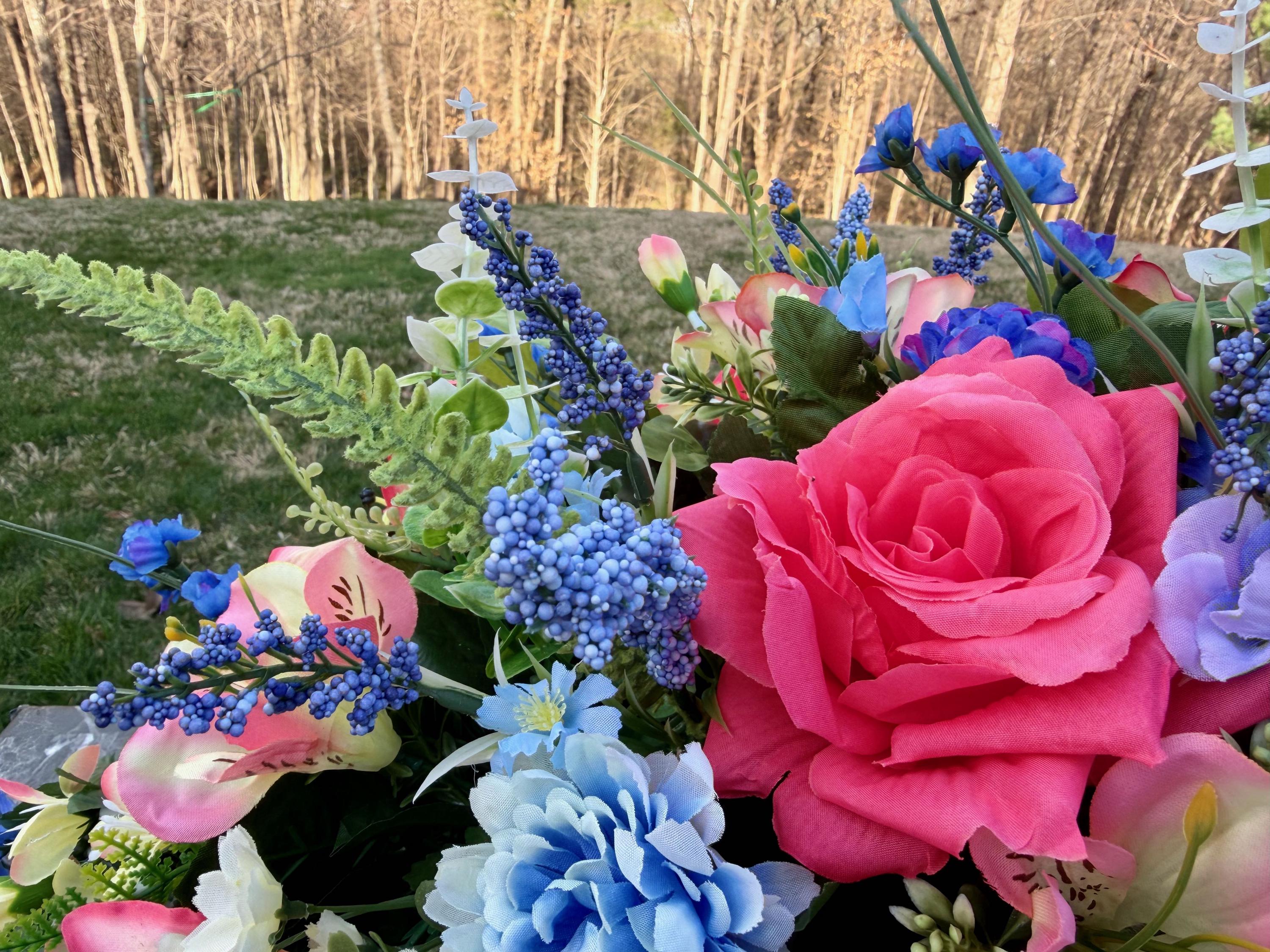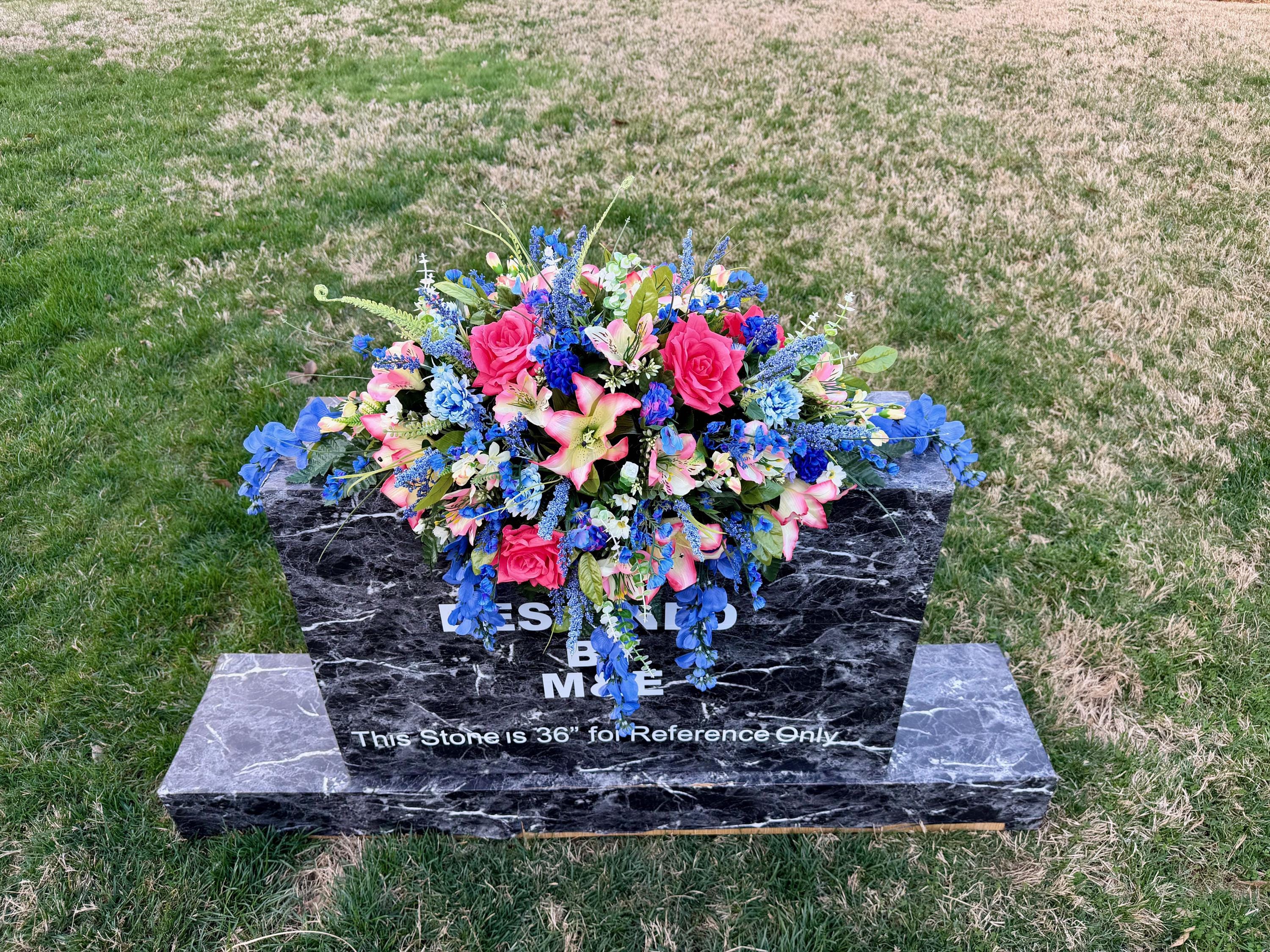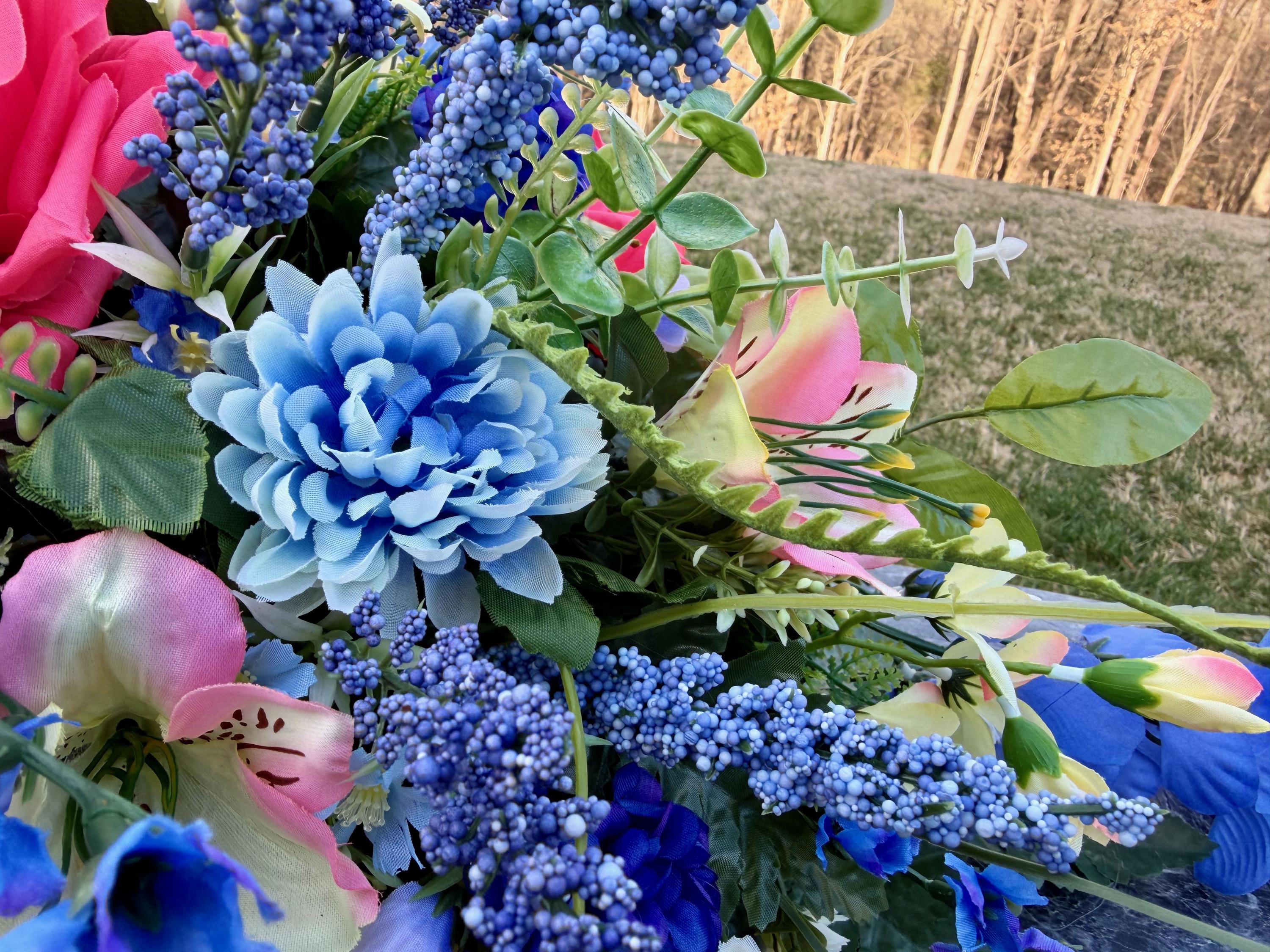Beautiful Blues and Pinks Saddle Quality Silk Flowers, Cemetery Saddle, Cemetery Flowers, Headstone Saddle, Cemetery Arrangement, Memorial