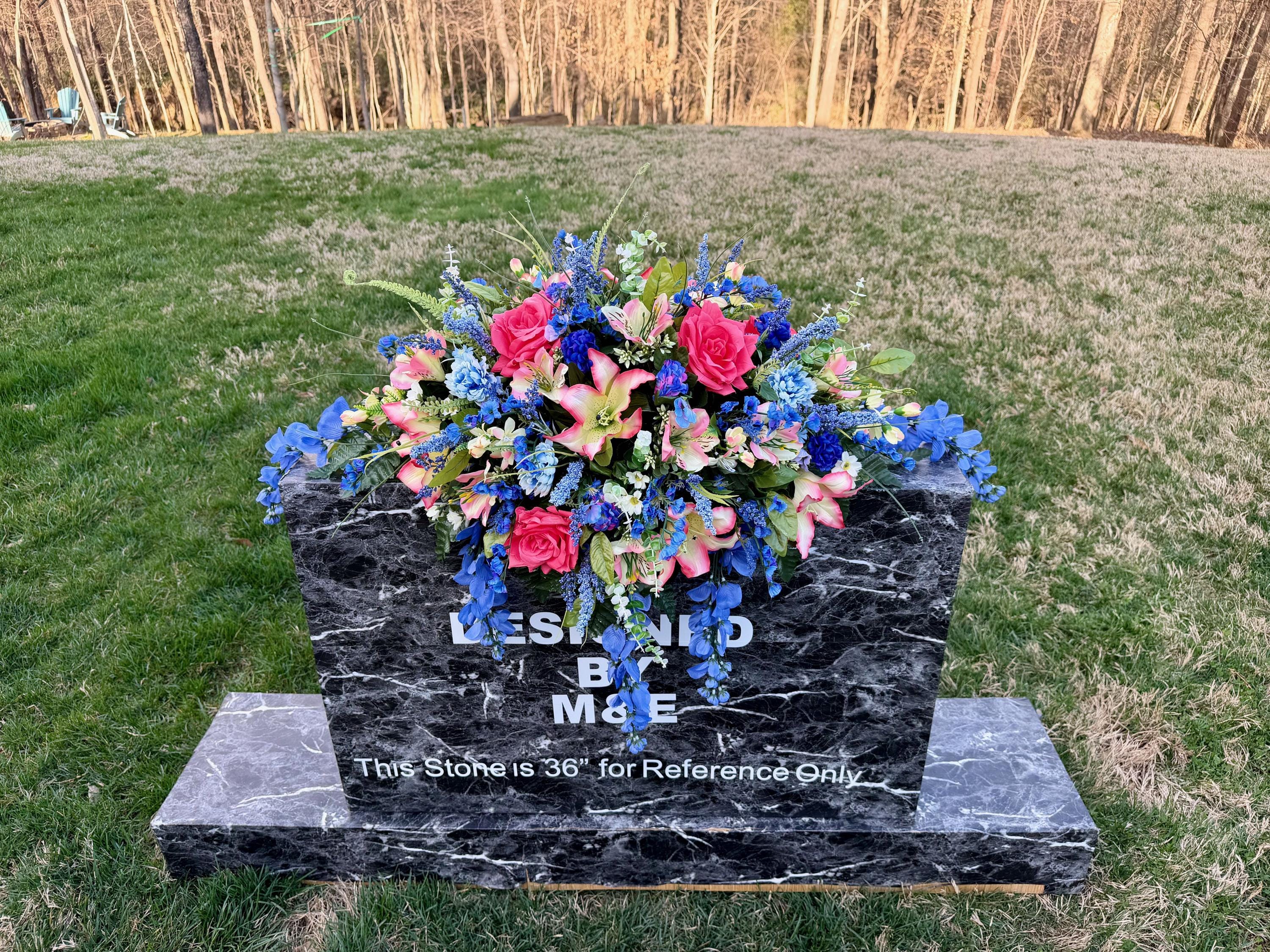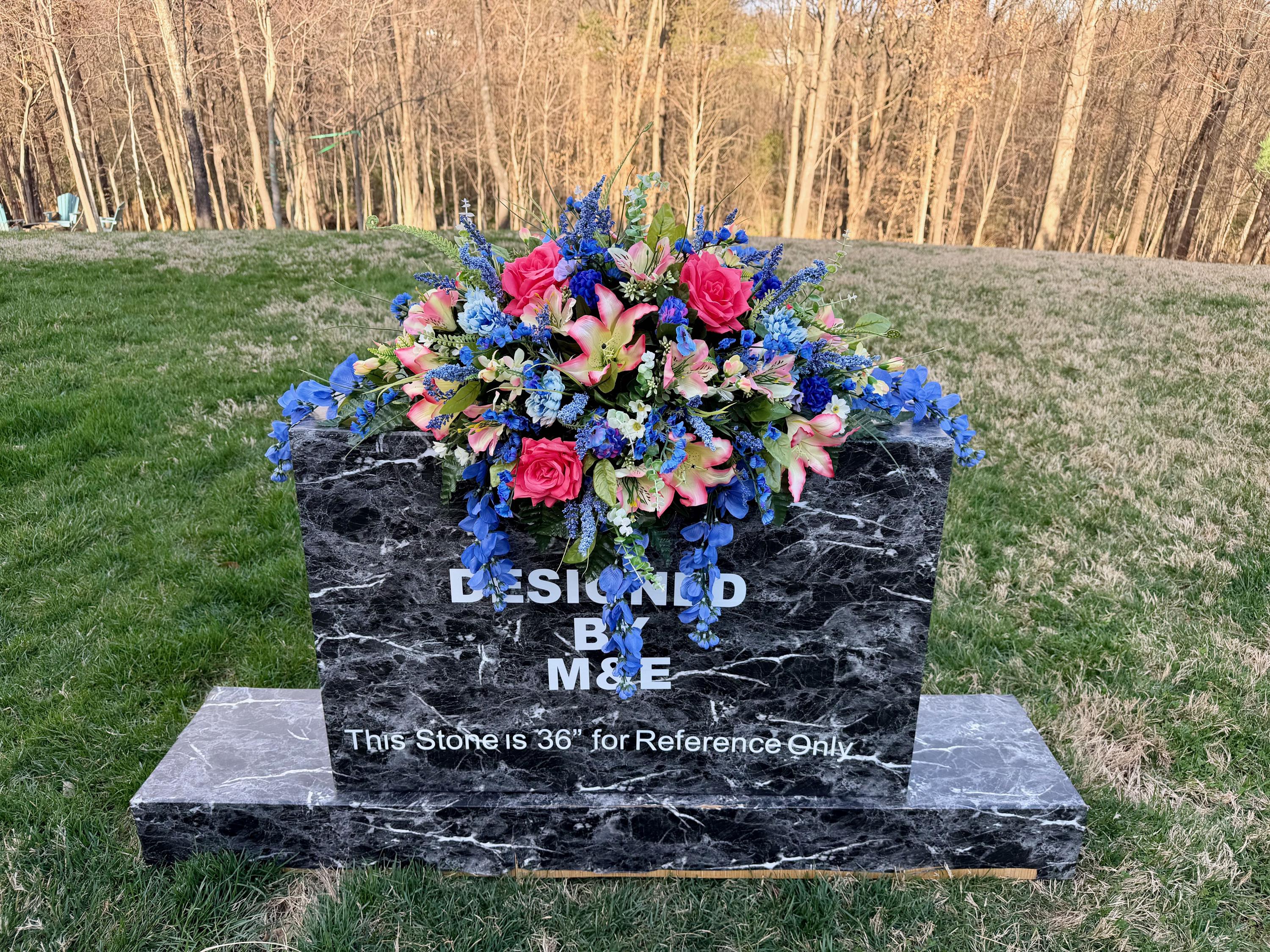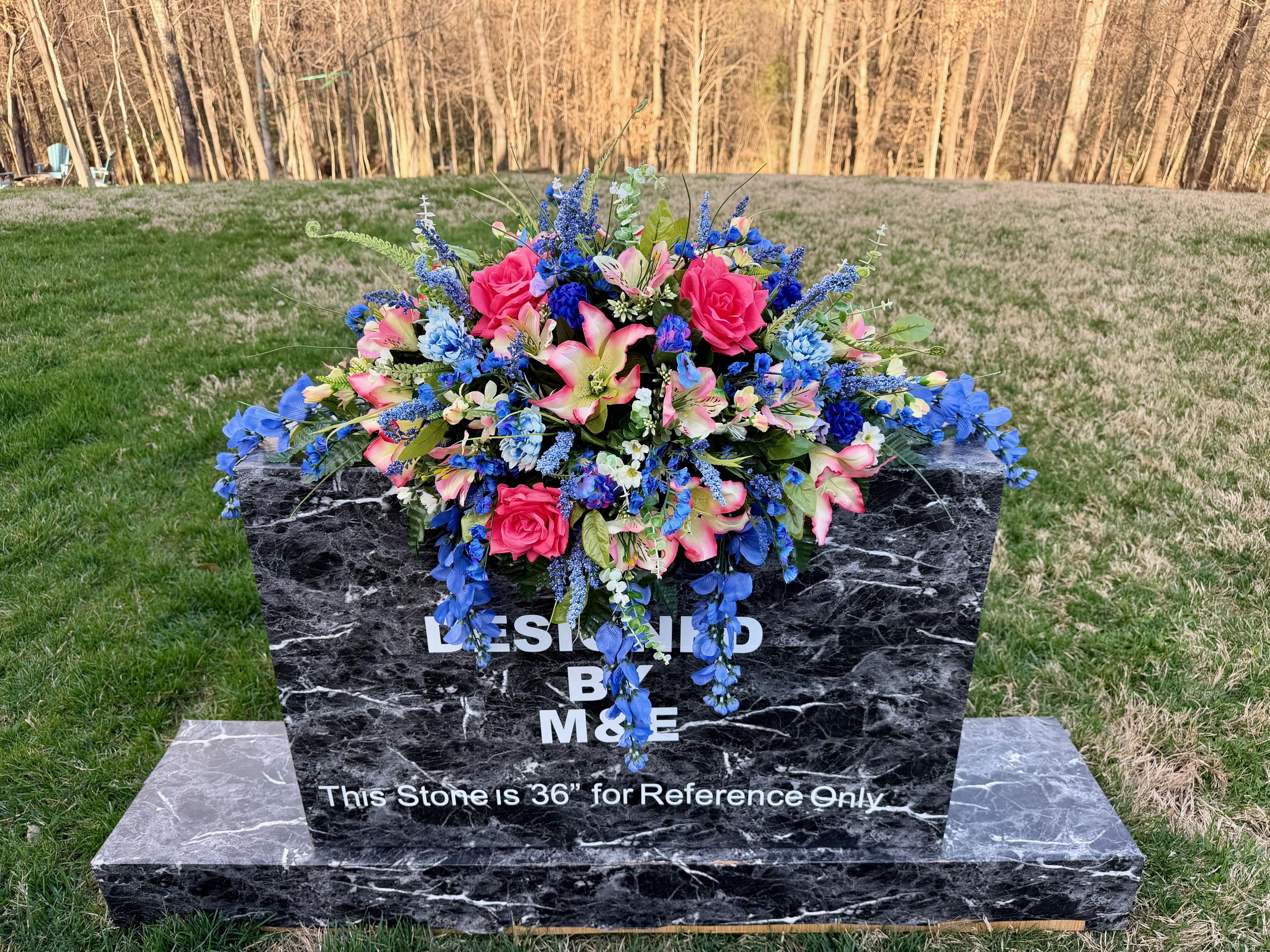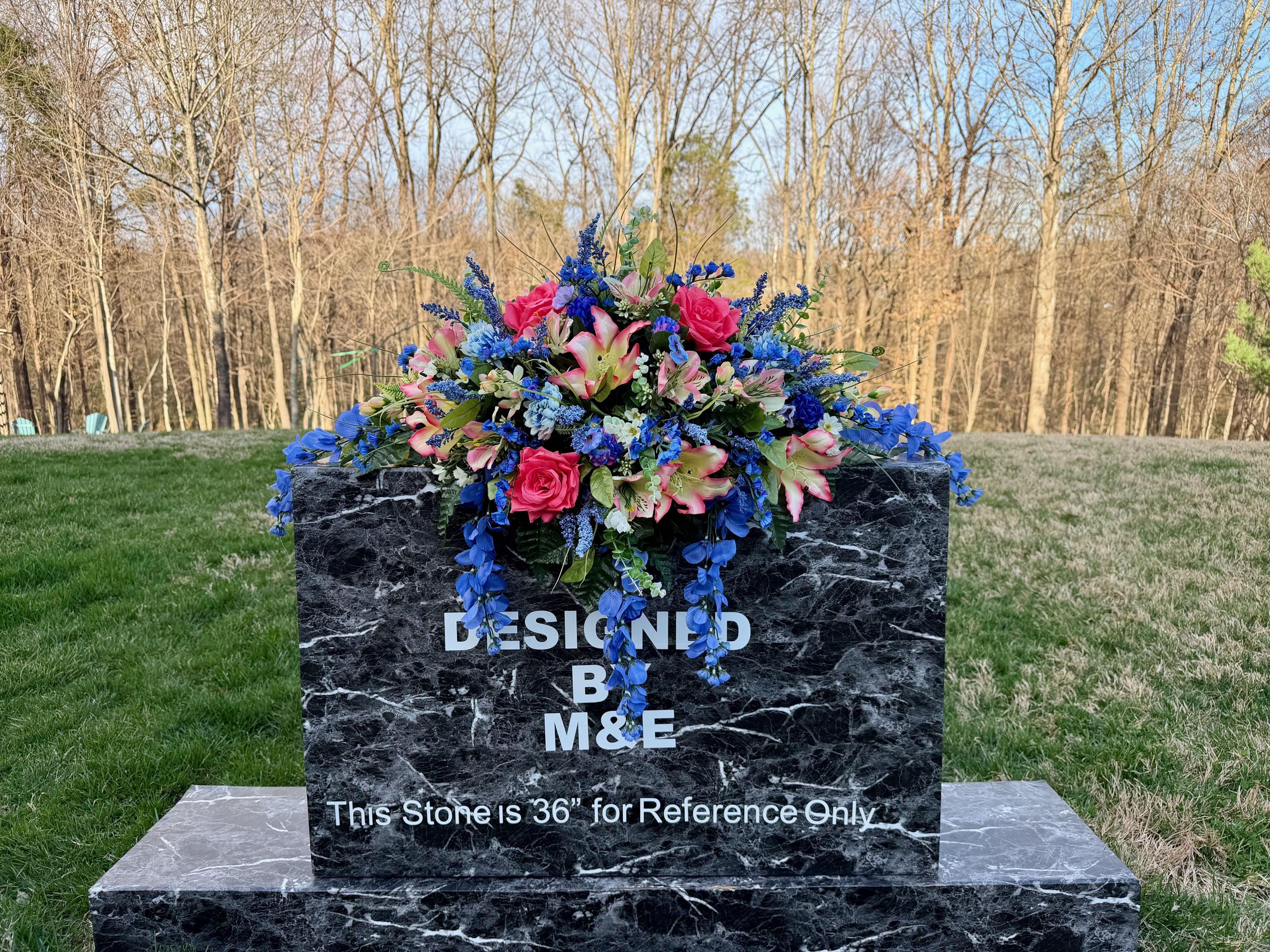 We’re a small, family-operated business consisting of myself, my husband, and my daughter. We personally manage every order and strive for excellent customer service. All our arrangements use high-quality silk flowers, though all silk blooms may fade over time. Each stem is glued into foam to withstand the elements. Designed by M&E uses only premium silks, and we put genuine care into every piece we create. Rest assured, the arrangement shown in our photos is exactly the one you’ll receive, as I design and assemble each one myself. If you’re searching for something unique or have a particular flower, color, or matching vases in mind, please contact me to discuss a custom order.
