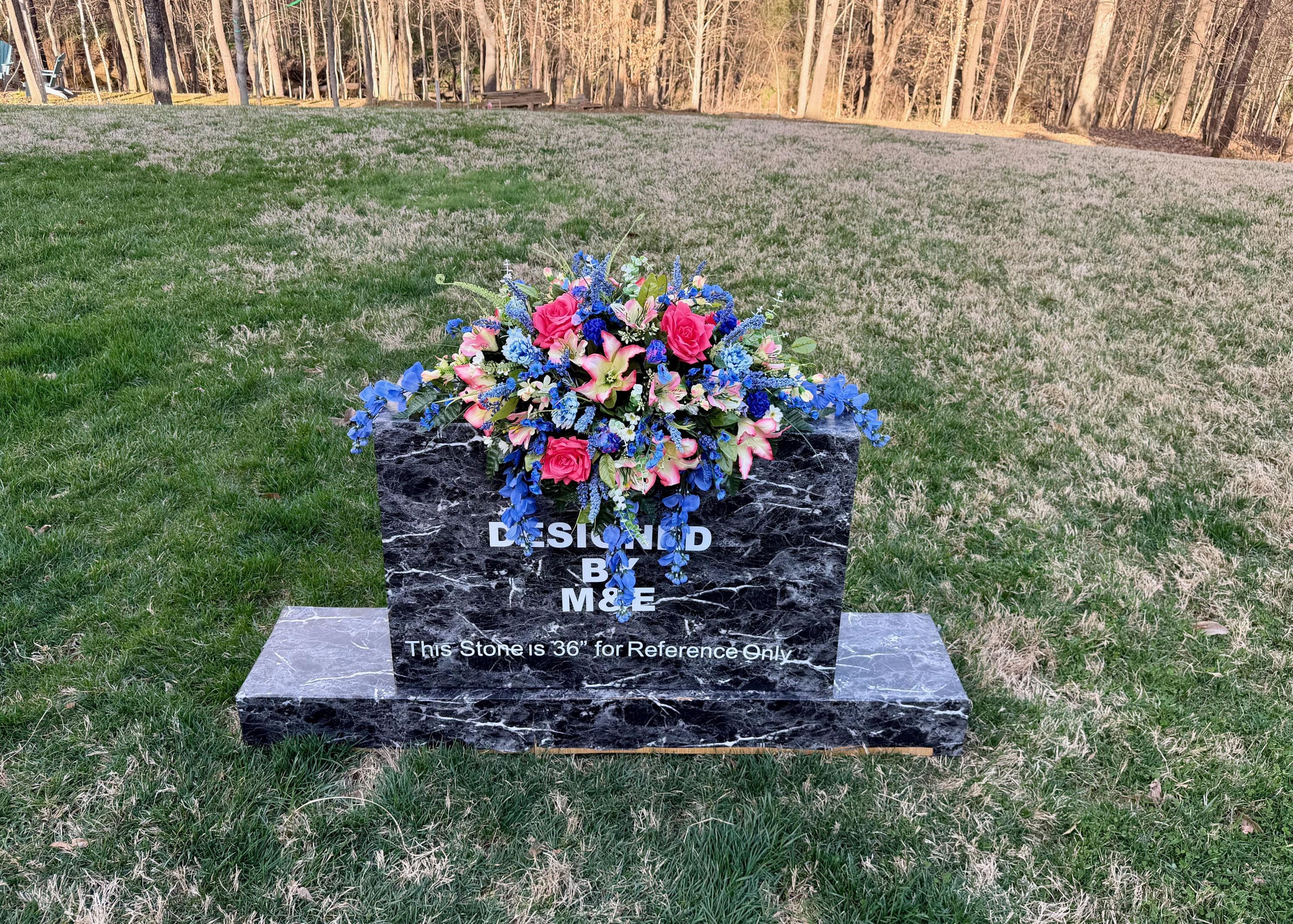 - Saddle arrangement photos are shown on either a 36” or 24” headstone only as examples.
