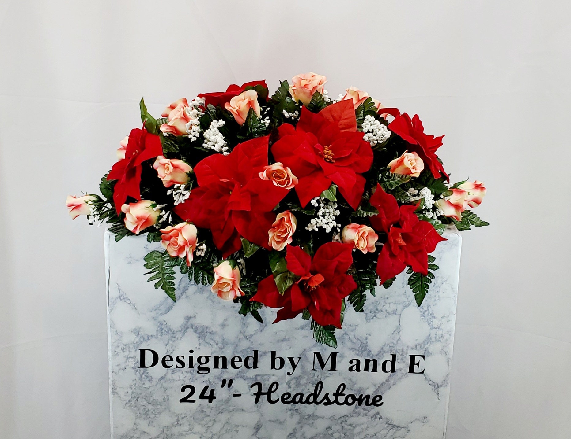 Red and Pink Peppermint Cemetery Saddle, Cemetery Flower, Headstone Saddle, Memorial Day Flowers, Cemetery Decorations, Grave Flowers