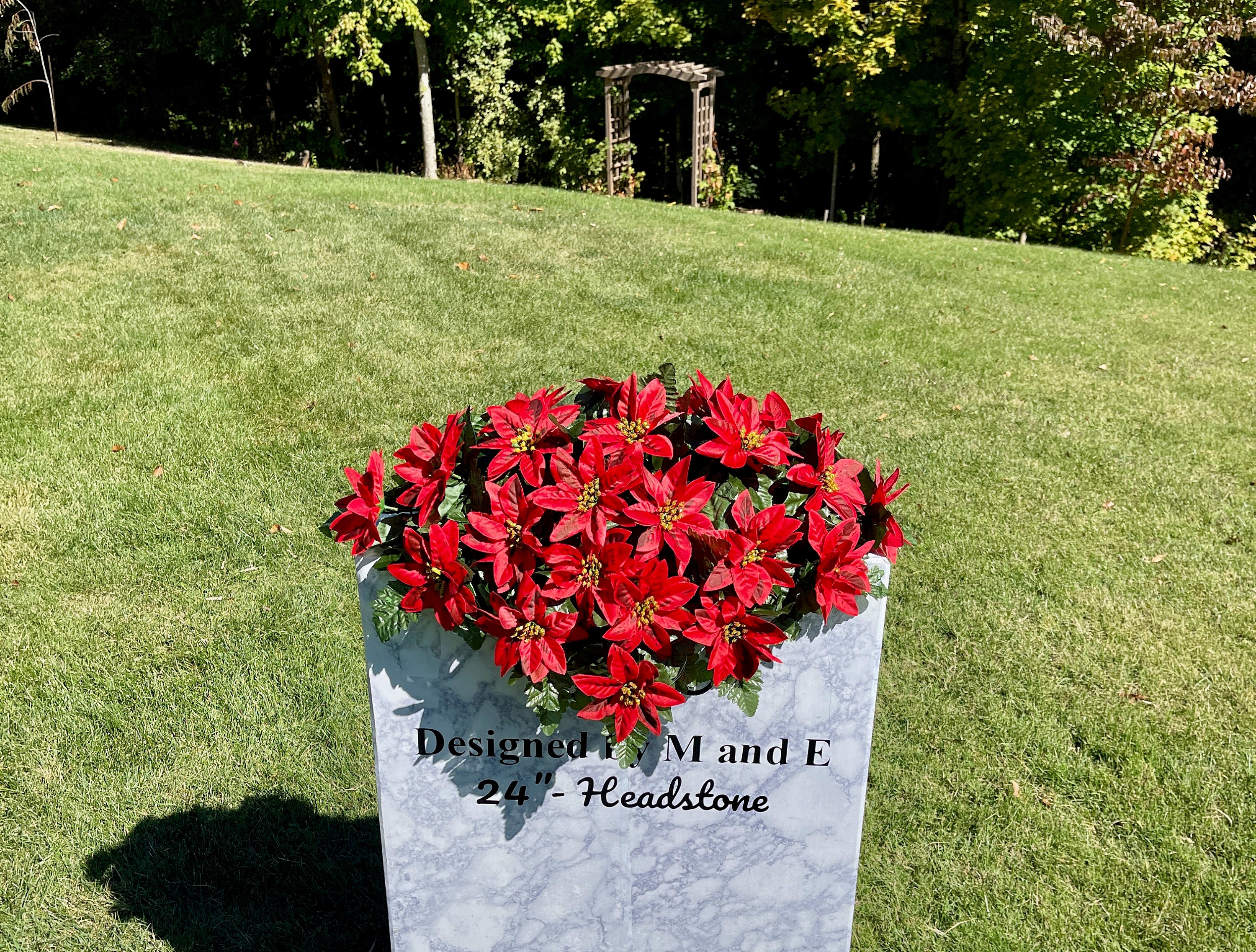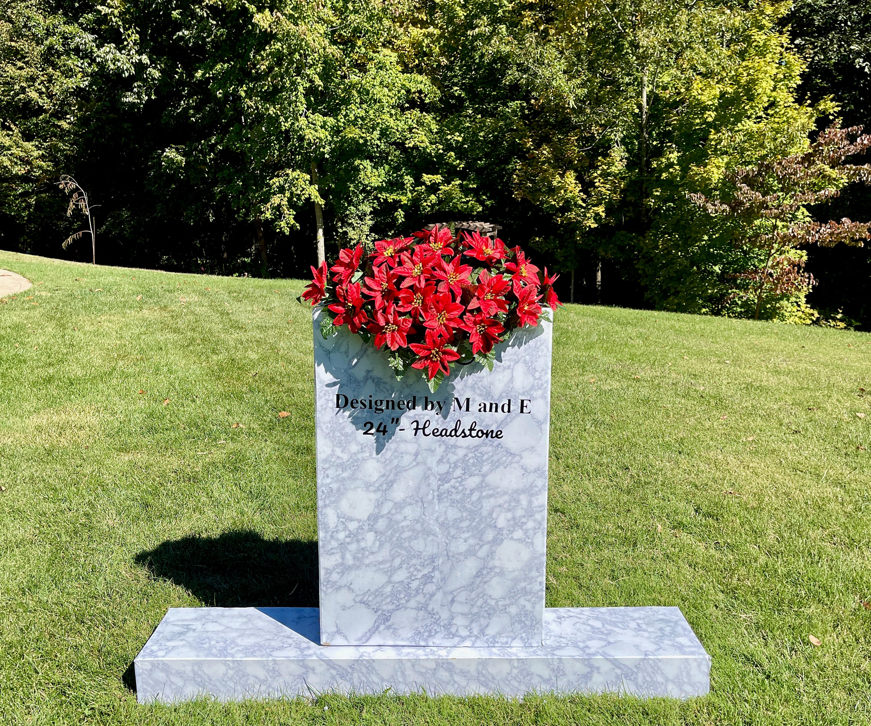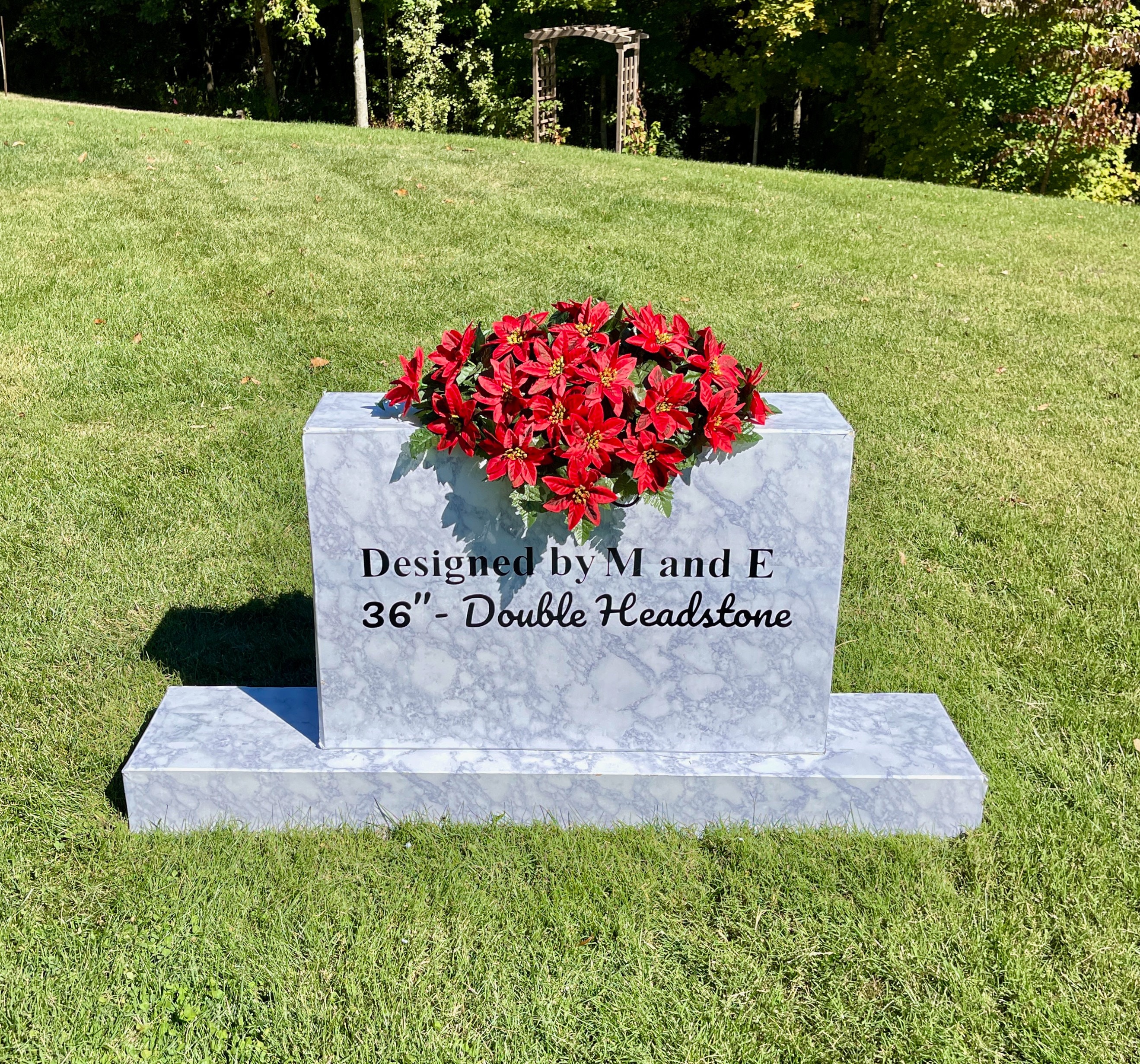 - Saddle arrangement photos are shown on either a 36” or 24” headstone only as examples.