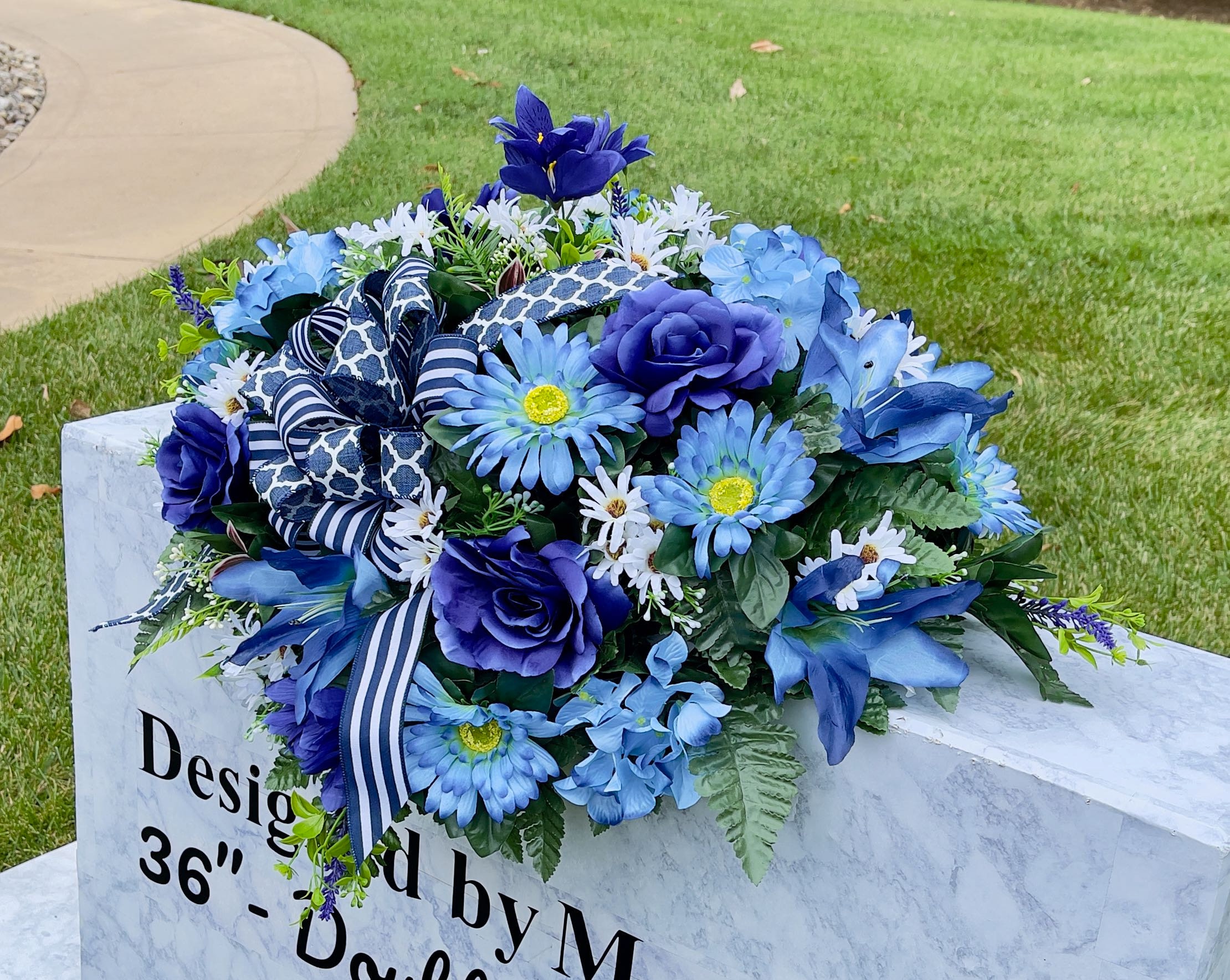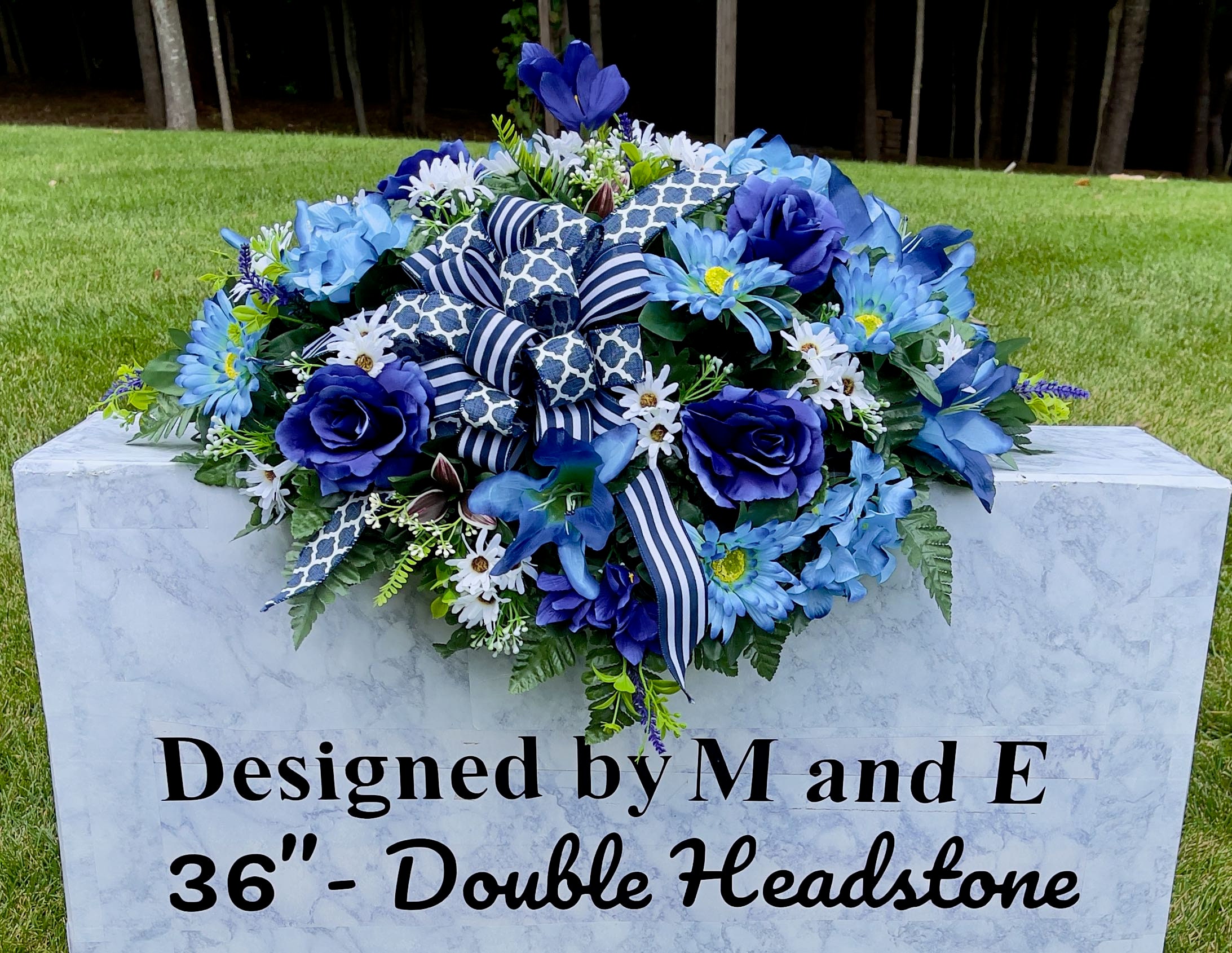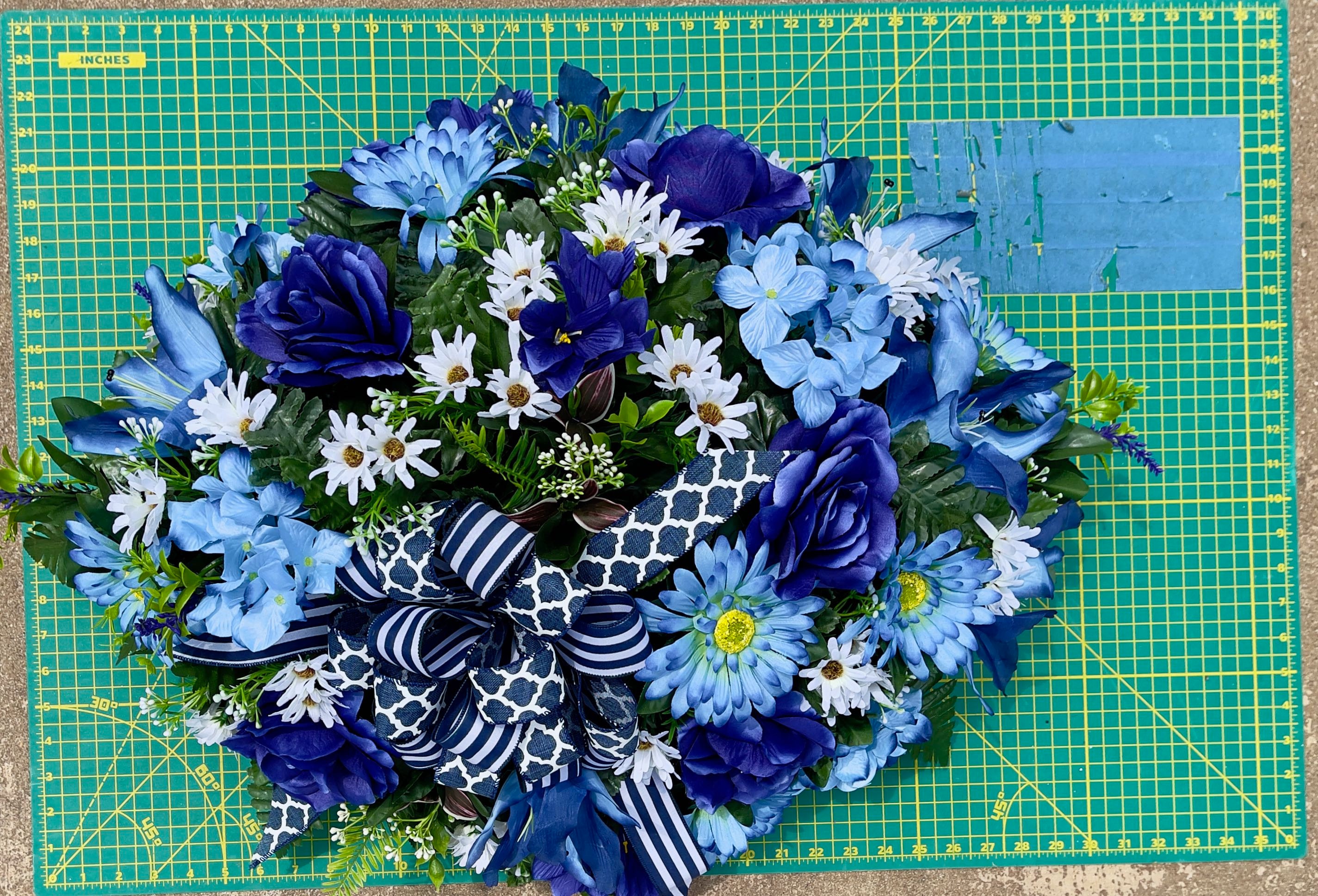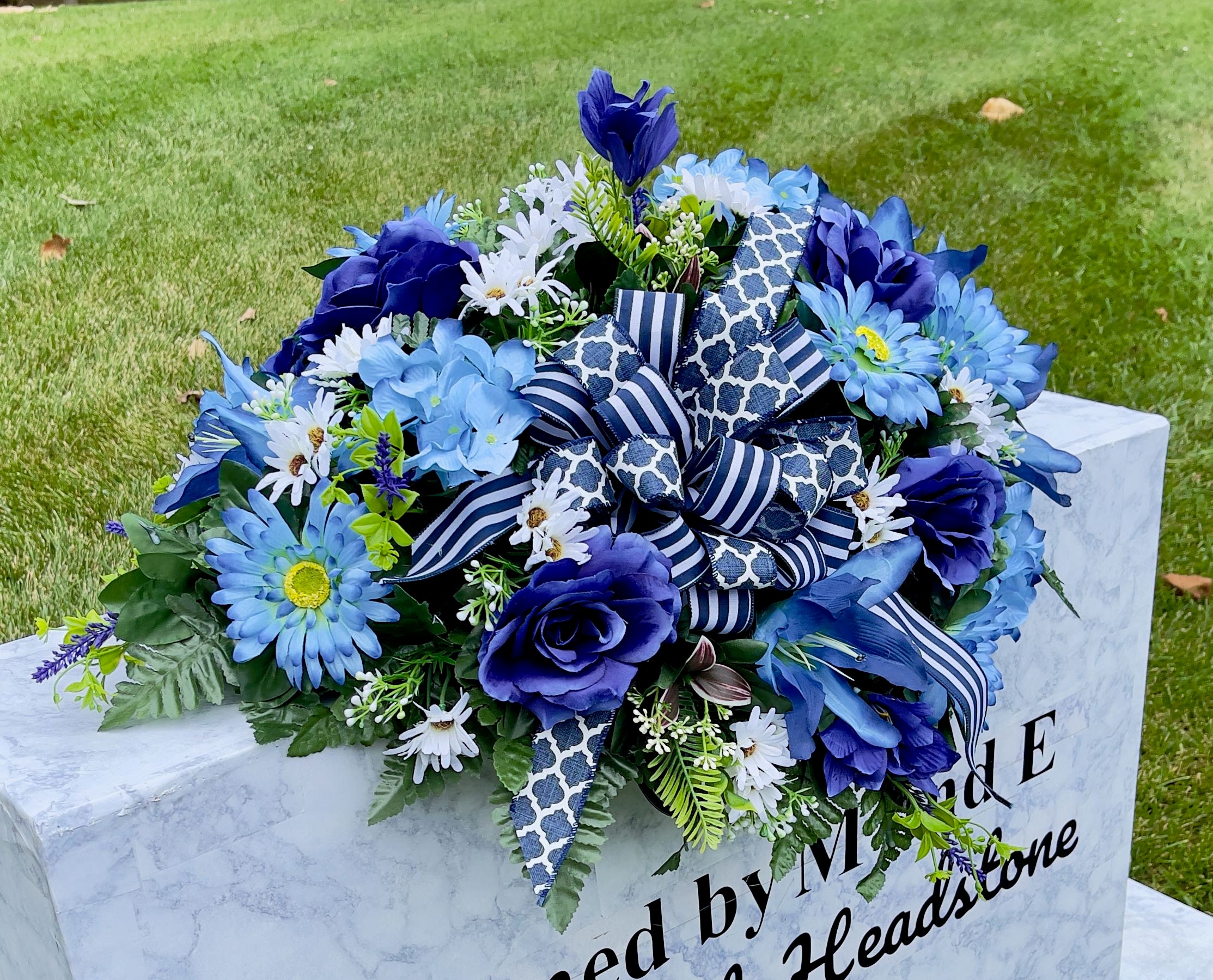 Replace Light and Dark Blue Cemetery Saddle, Flowers for the Cemetery, Memorial Day Saddle, Sympathy Flowers, Cemetery Flowers, Gravesite