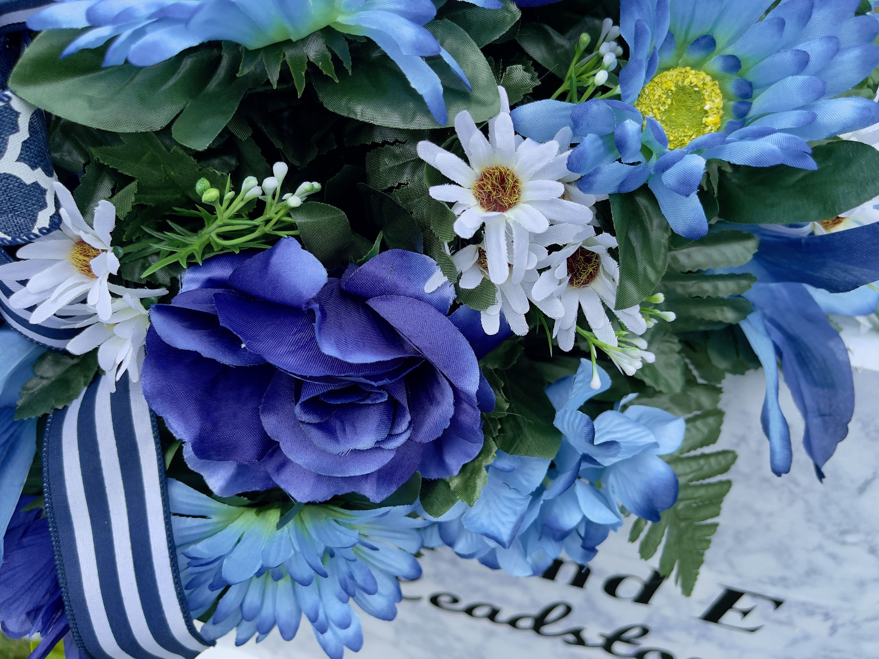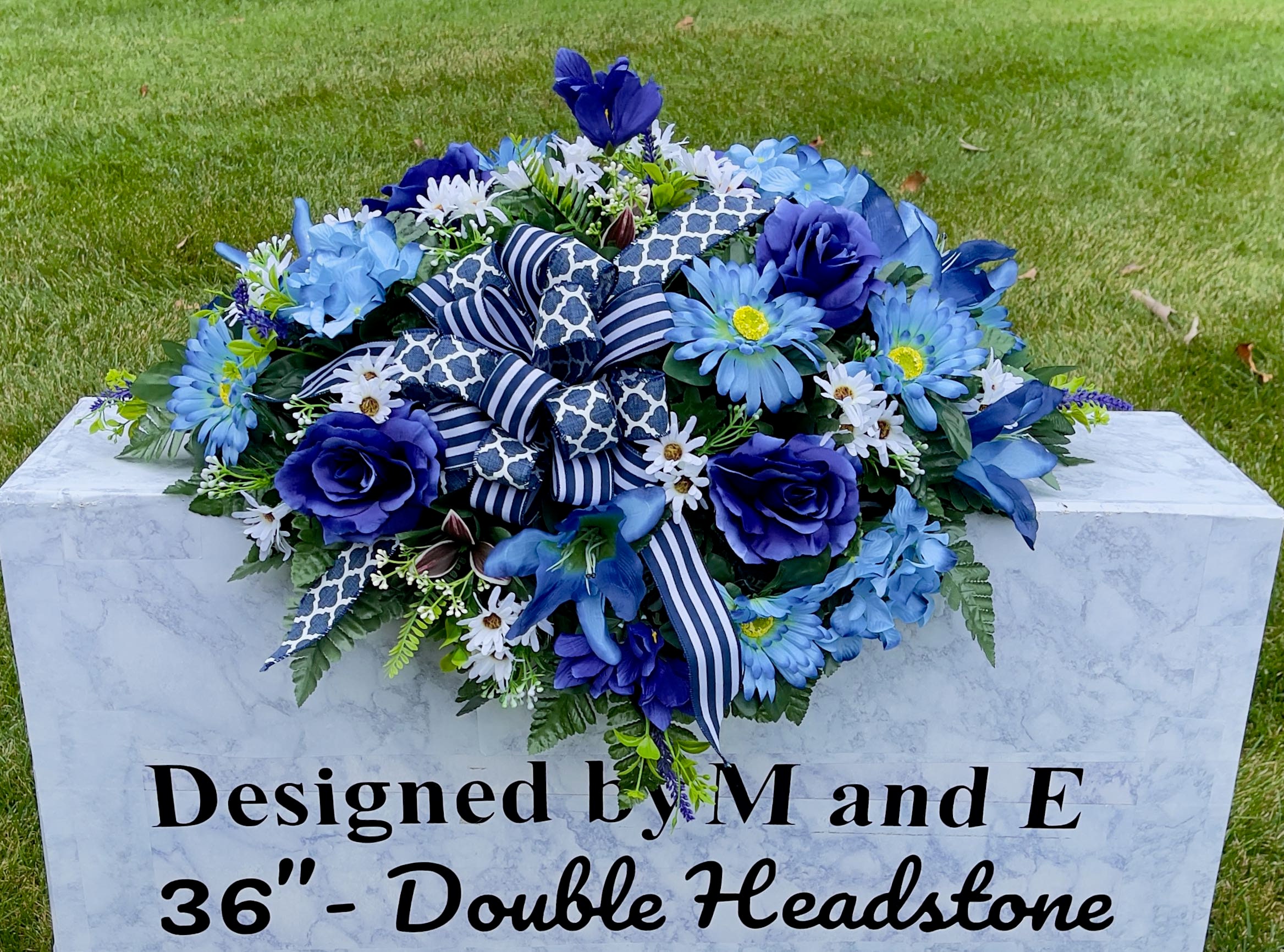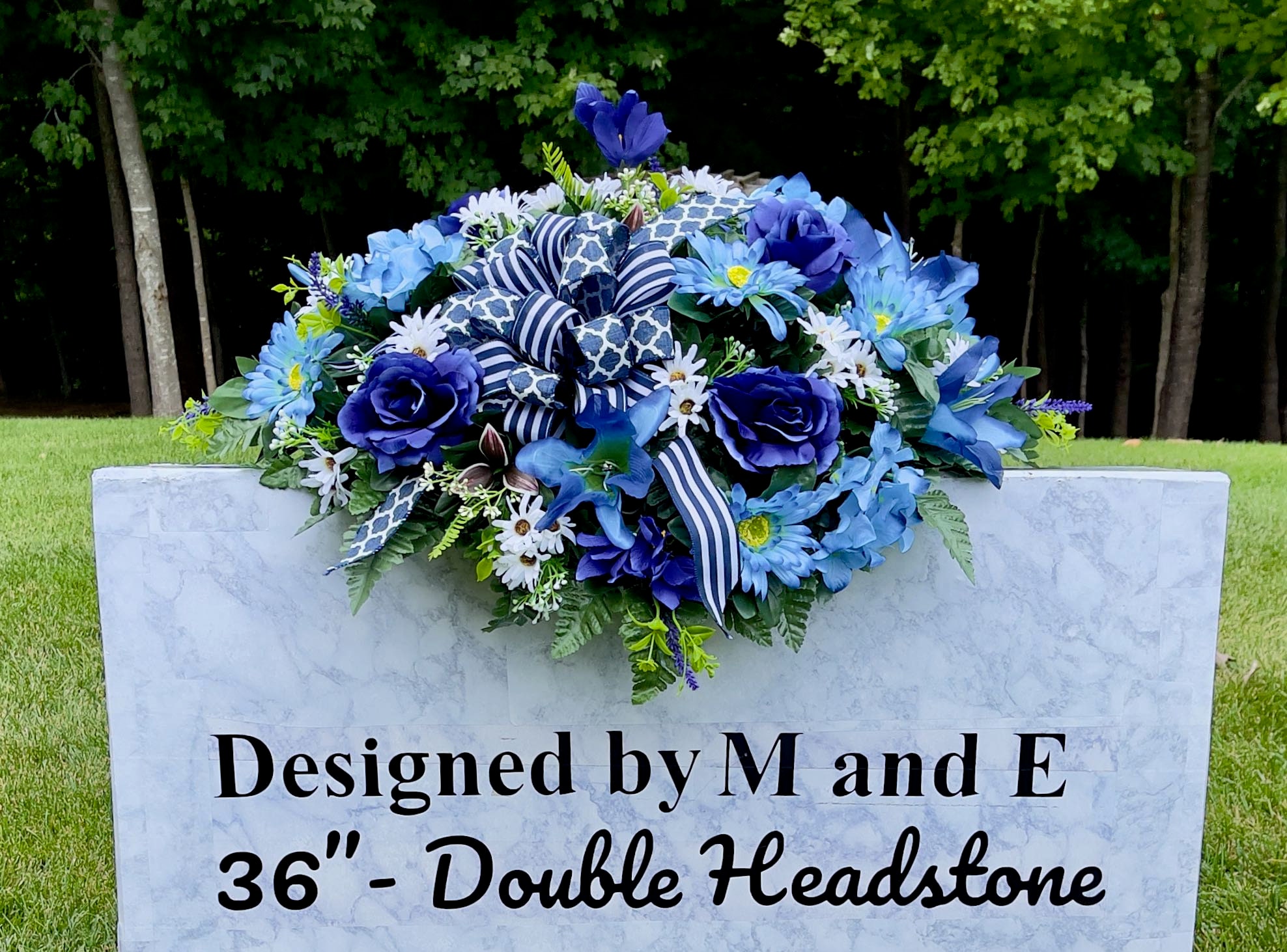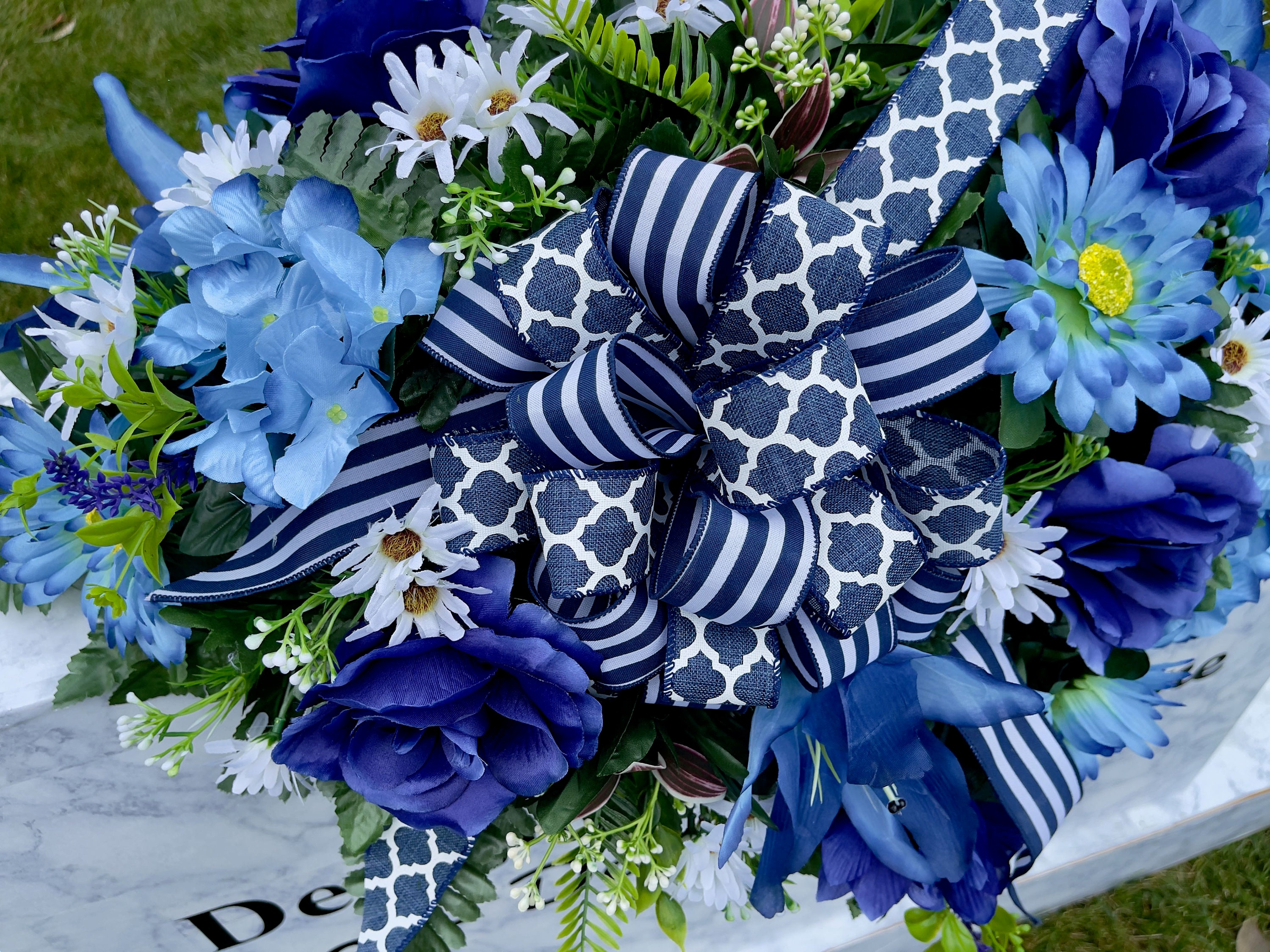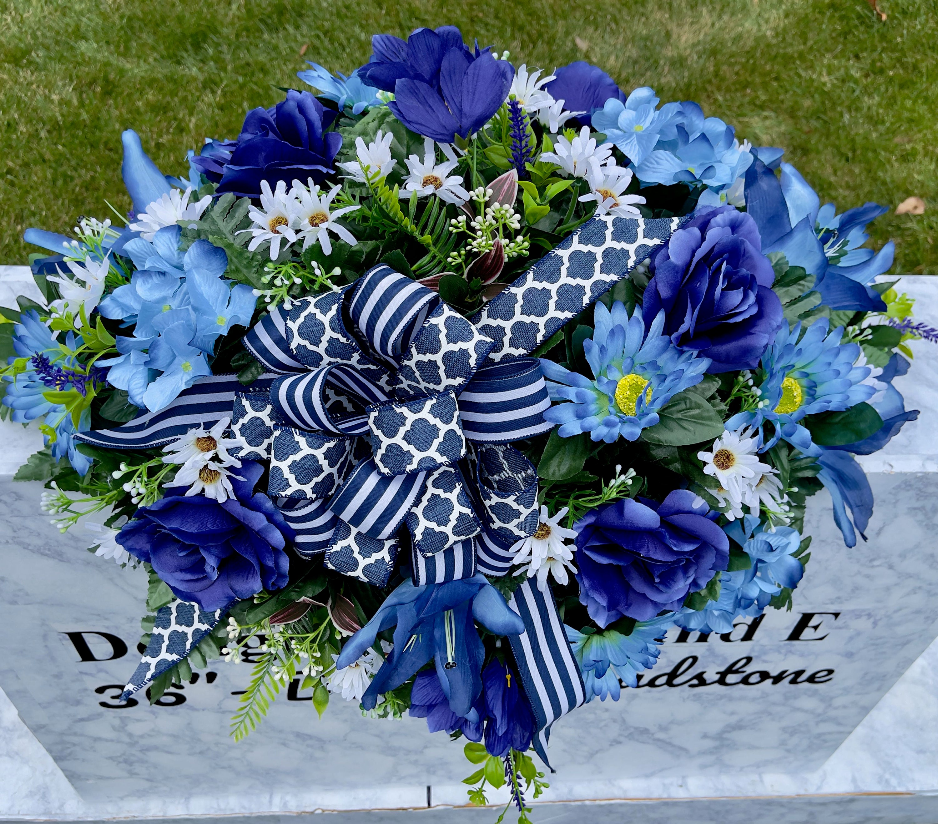 Replace Light and Dark Blue Cemetery Saddle, Flowers for the Cemetery, Memorial Day Saddle, Sympathy Flowers, Cemetery Flowers, Gravesite