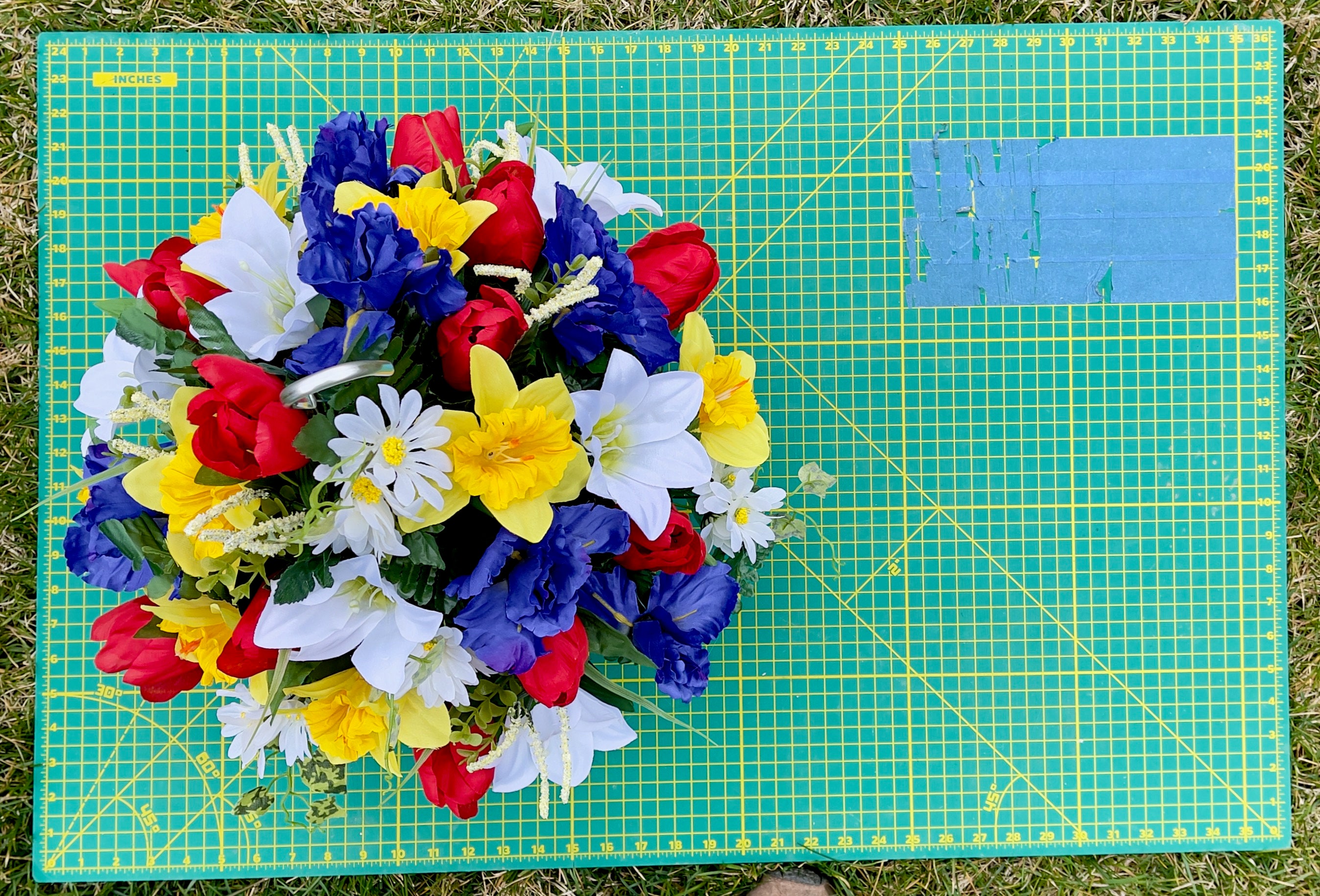 - To find the exact size of each arrangement, please refer to the photo showing it on the green measuring mat.