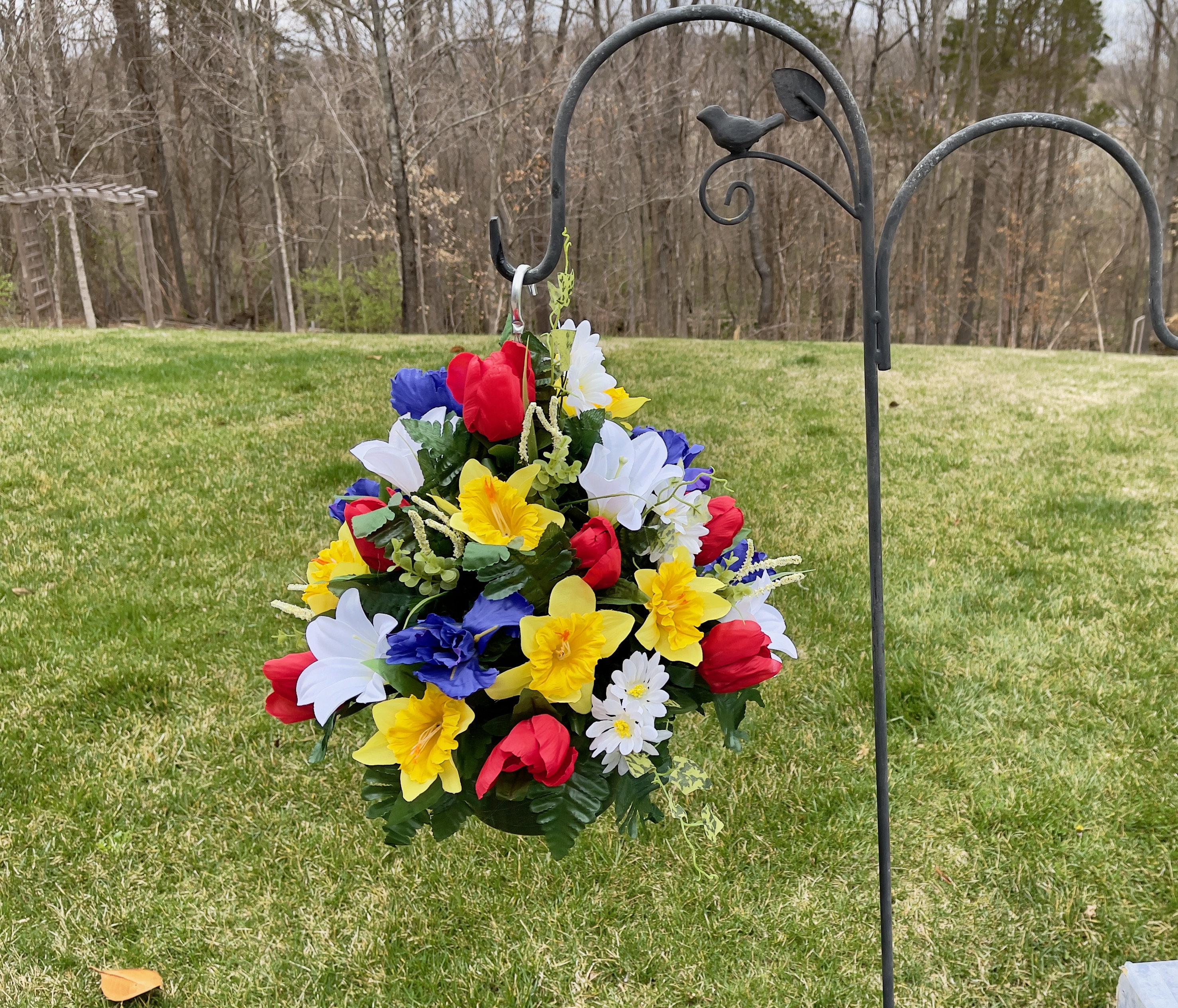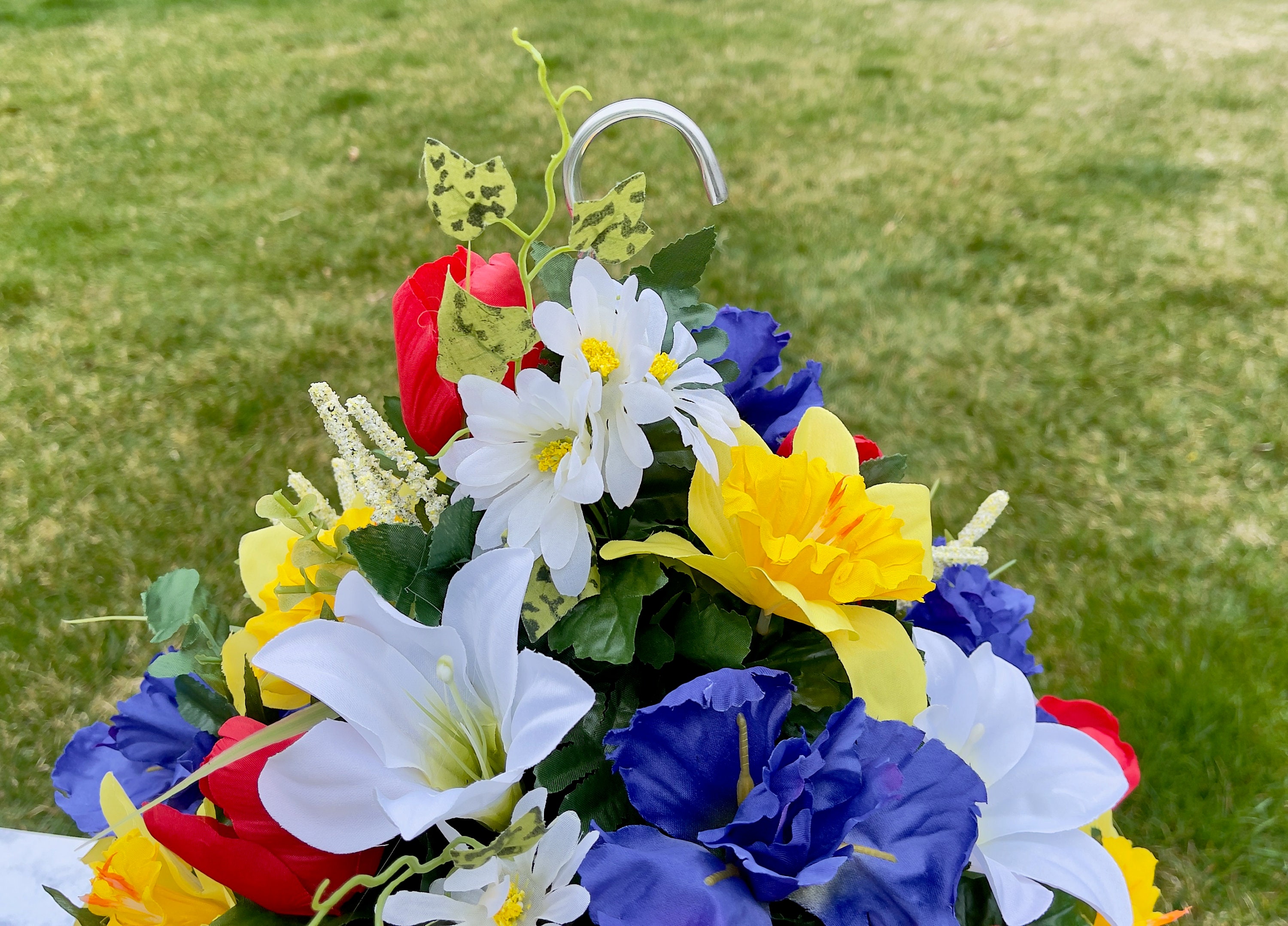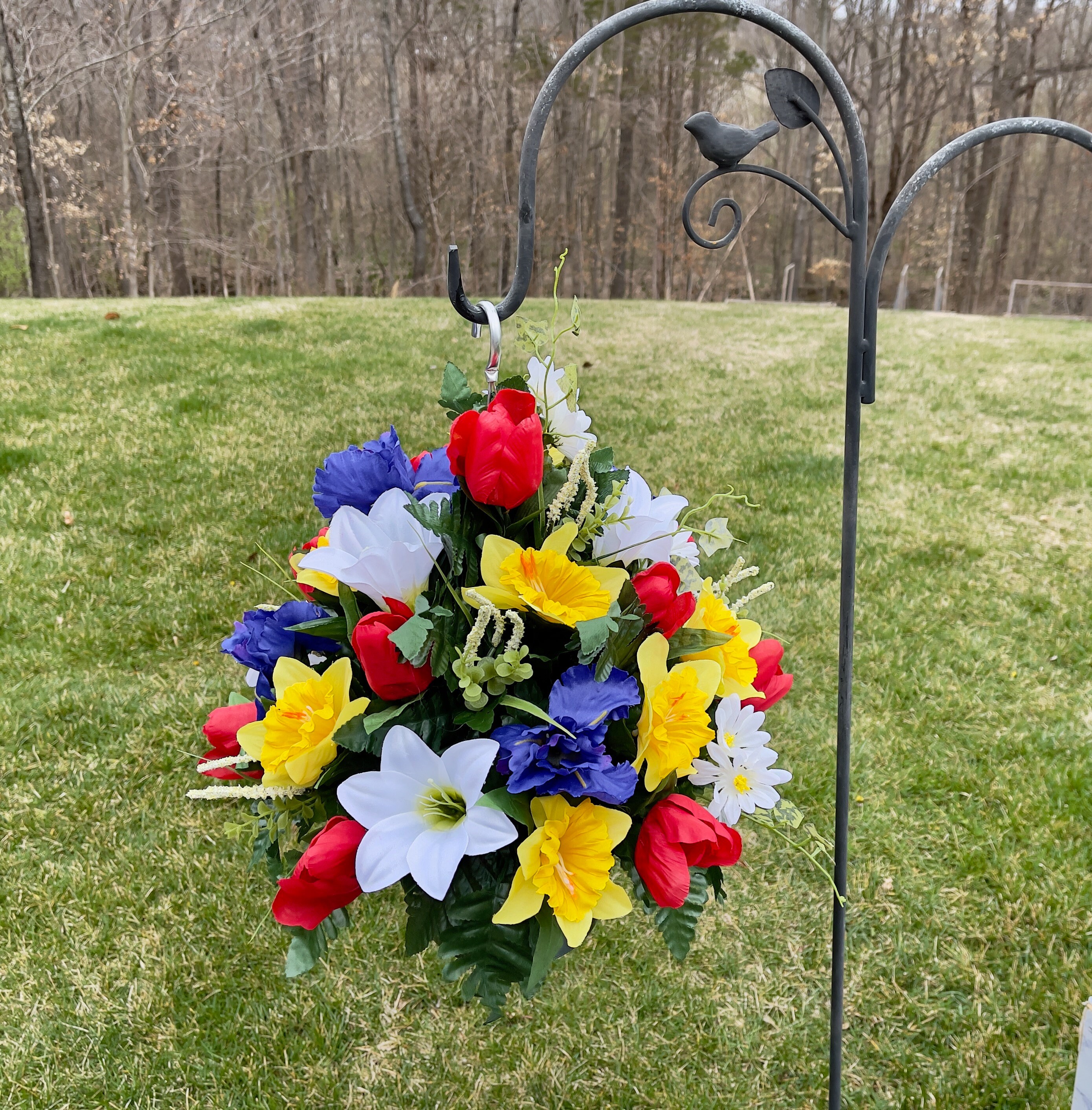 1 Bright Multi-Color Large Hanging Basket for Shepherd Hook, Hanging Basket, Memorial Flower, Grave Decoration, Hanging Cemetery Arrangement