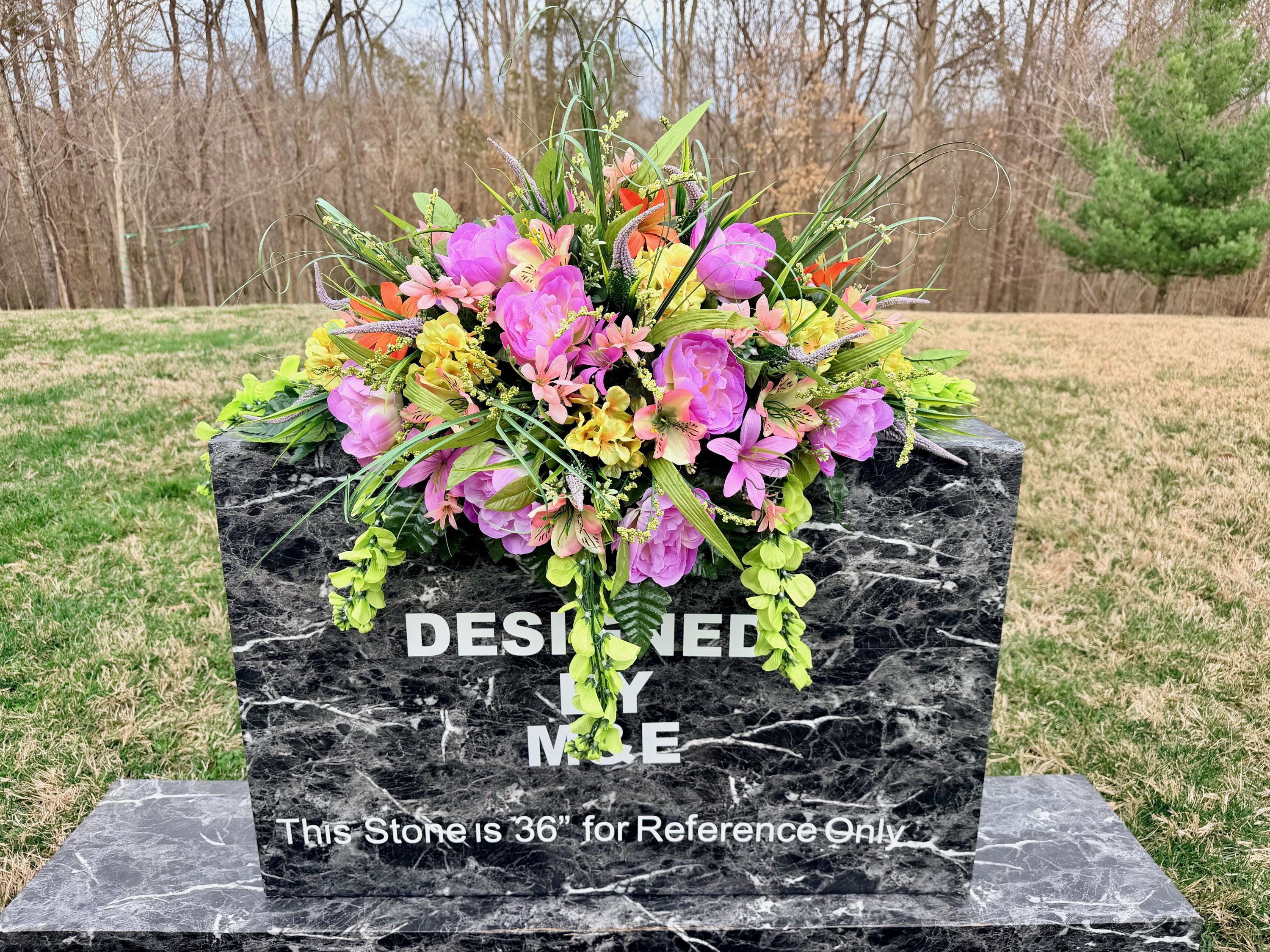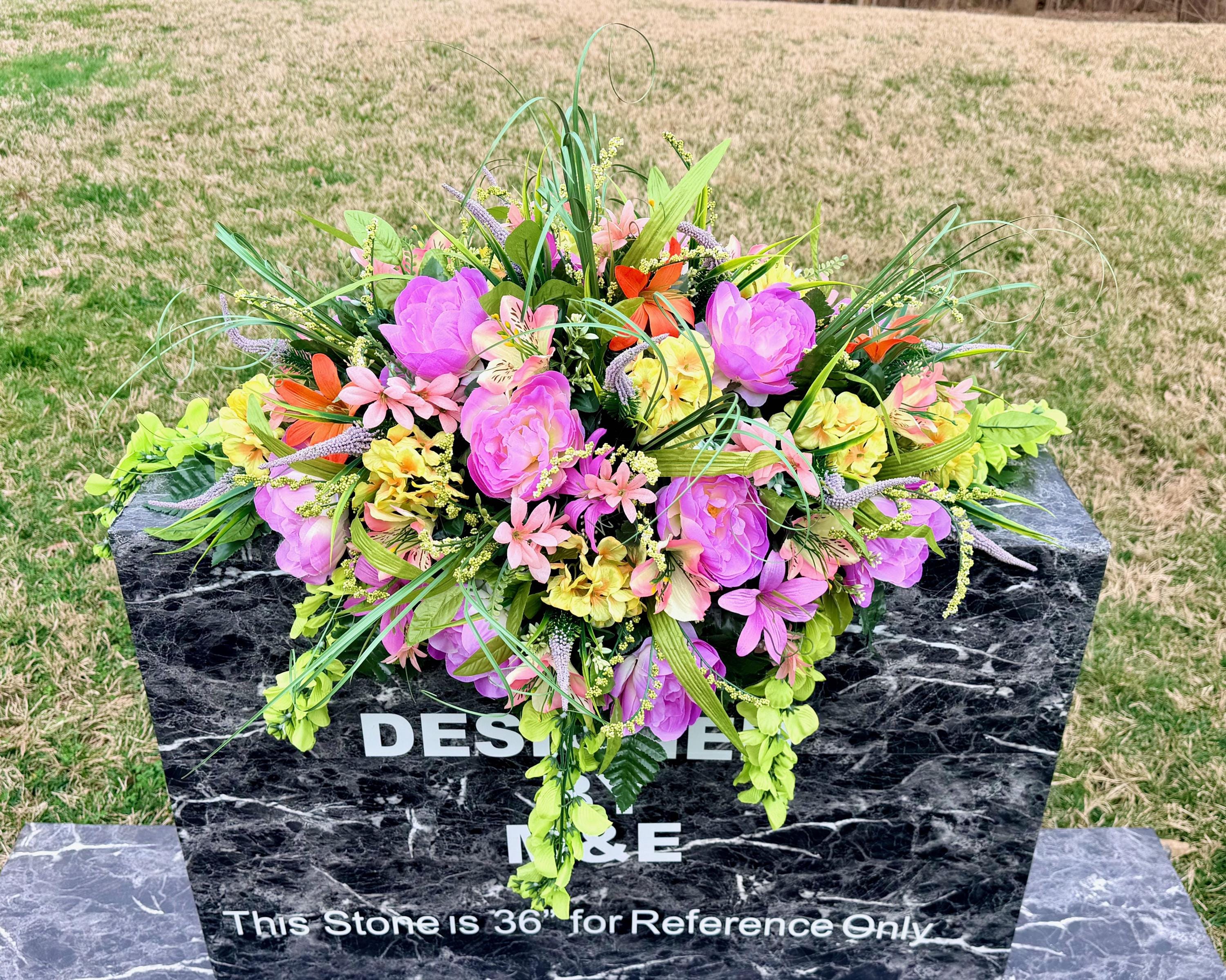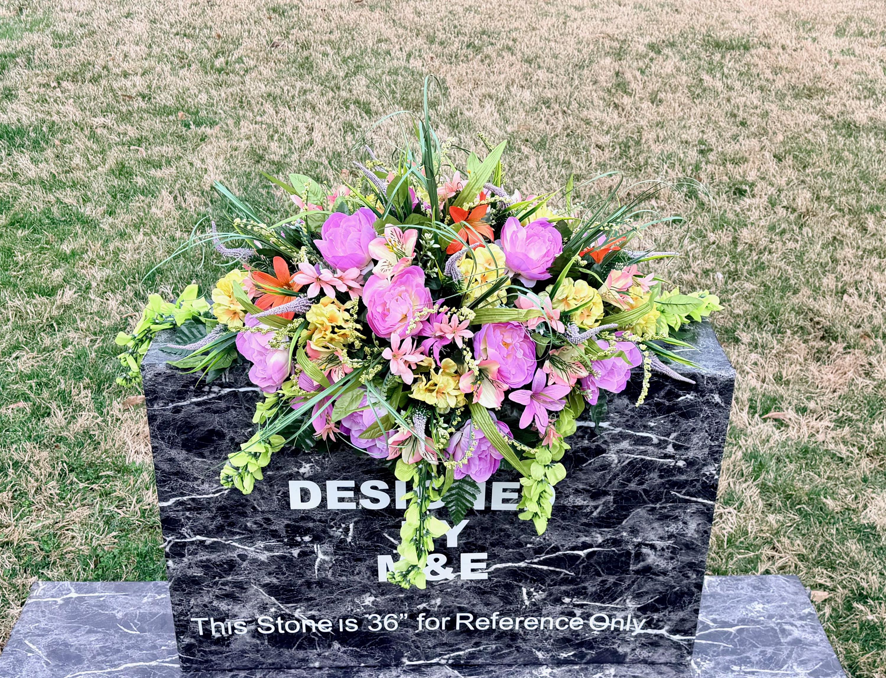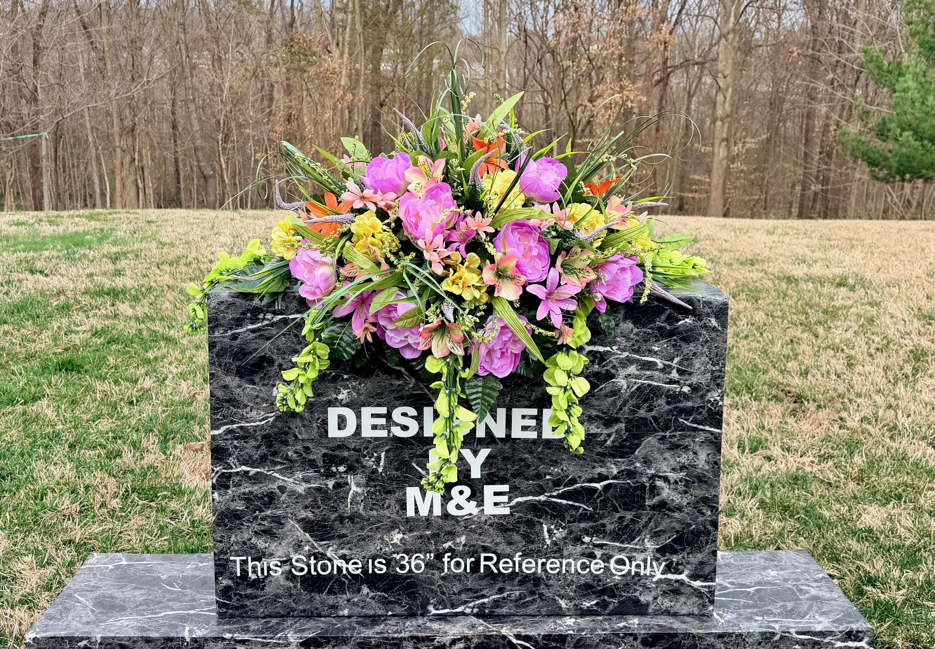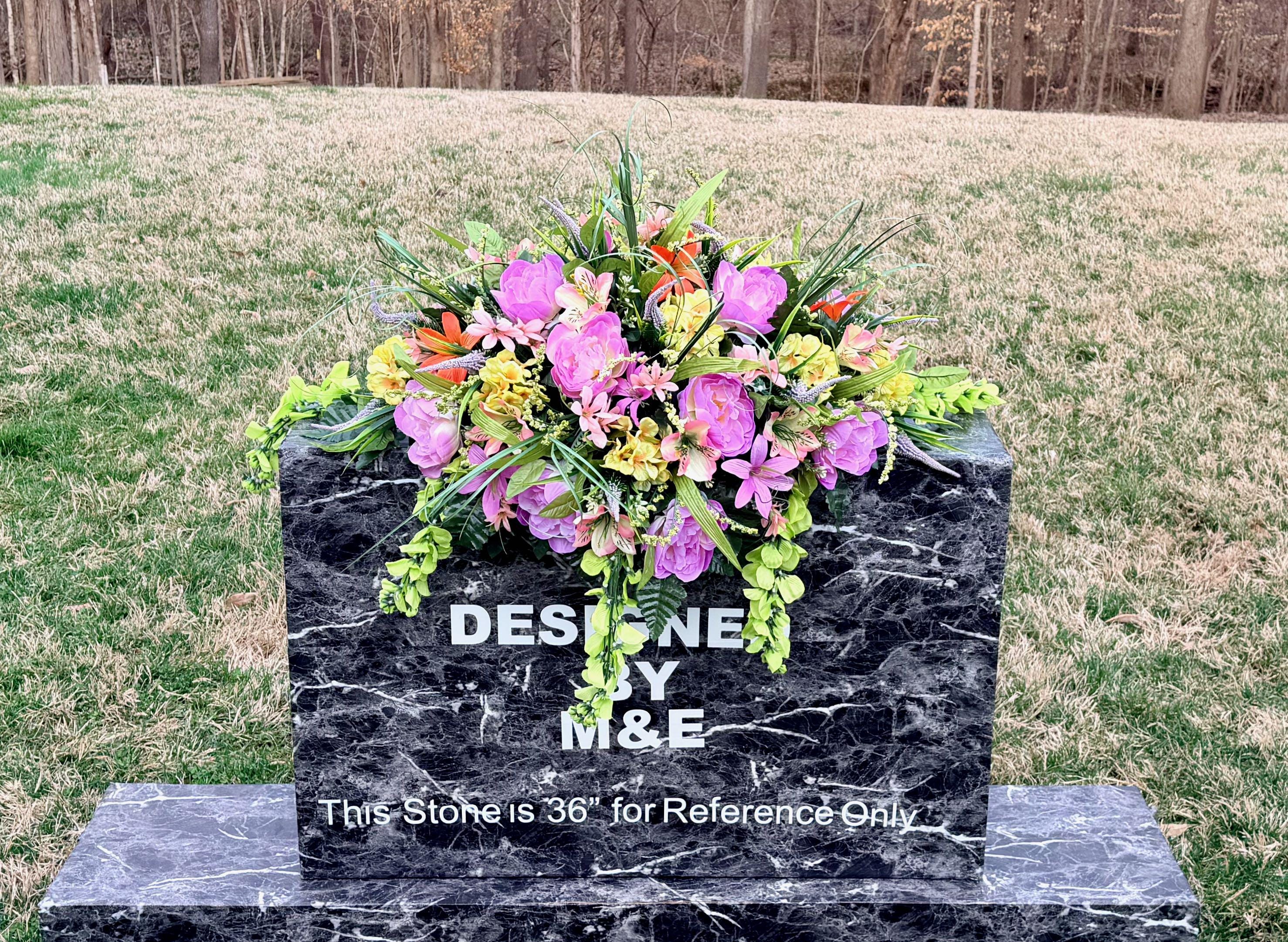We’re a small, family-operated business consisting of myself, my husband, and my daughter. We personally manage every order and strive for excellent customer service. All our arrangements use high-quality silk flowers, though all silk blooms may fade over time. Each stem is glued into foam to withstand the elements. Designed by M&E uses only premium silks, and we put genuine care into every piece we create. Rest assured, the arrangement shown in our photos is exactly the one you’ll receive, as I design and assemble each one myself. If you’re searching for something unique or have a particular flower, color, or matching vases in mind, please contact me to discuss a custom order.