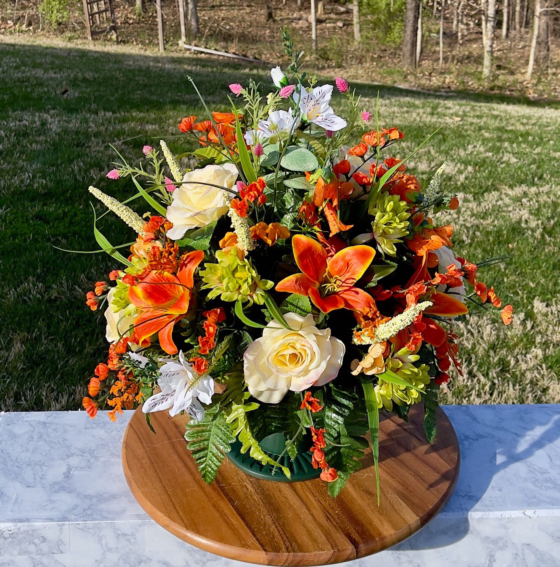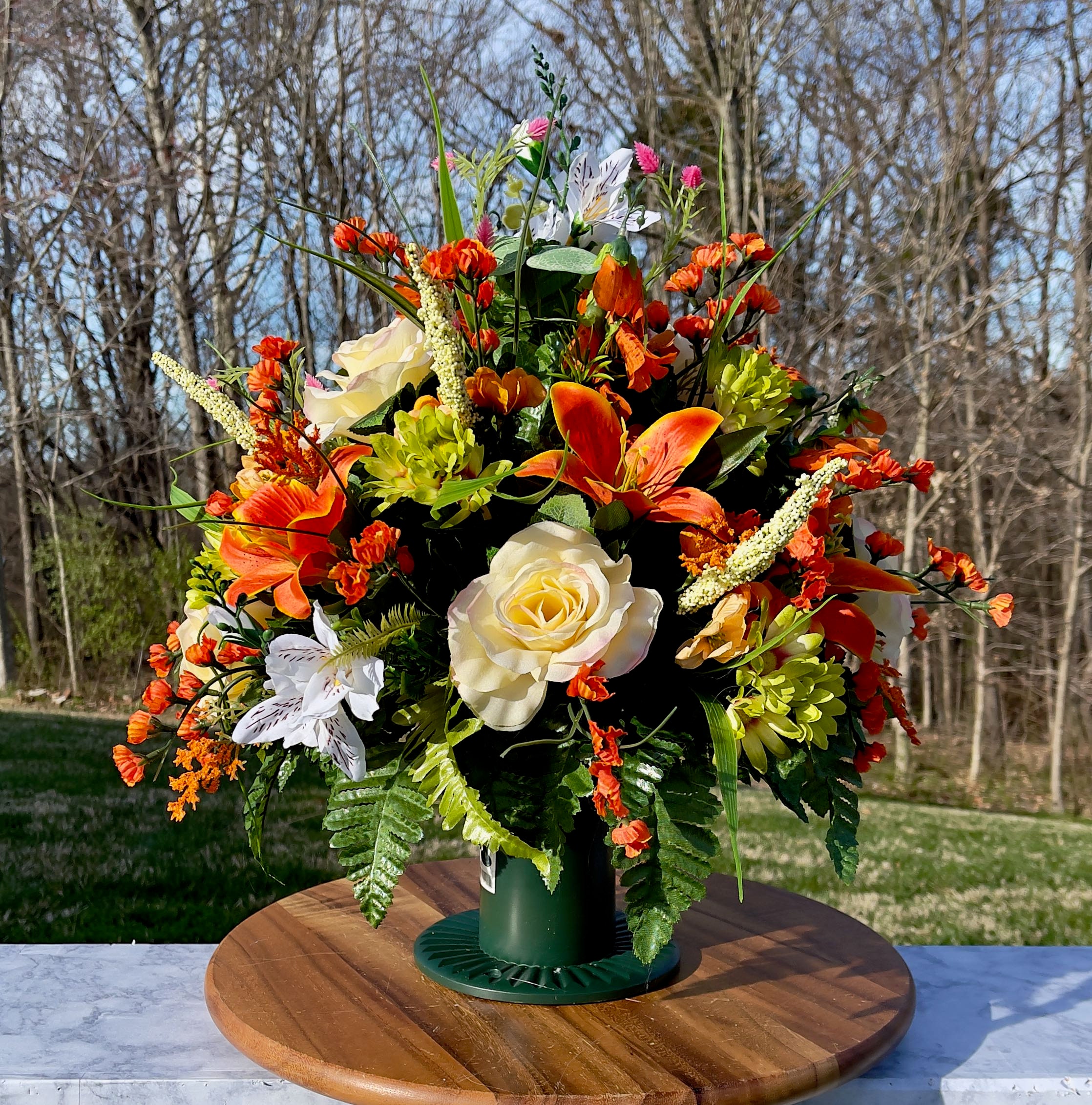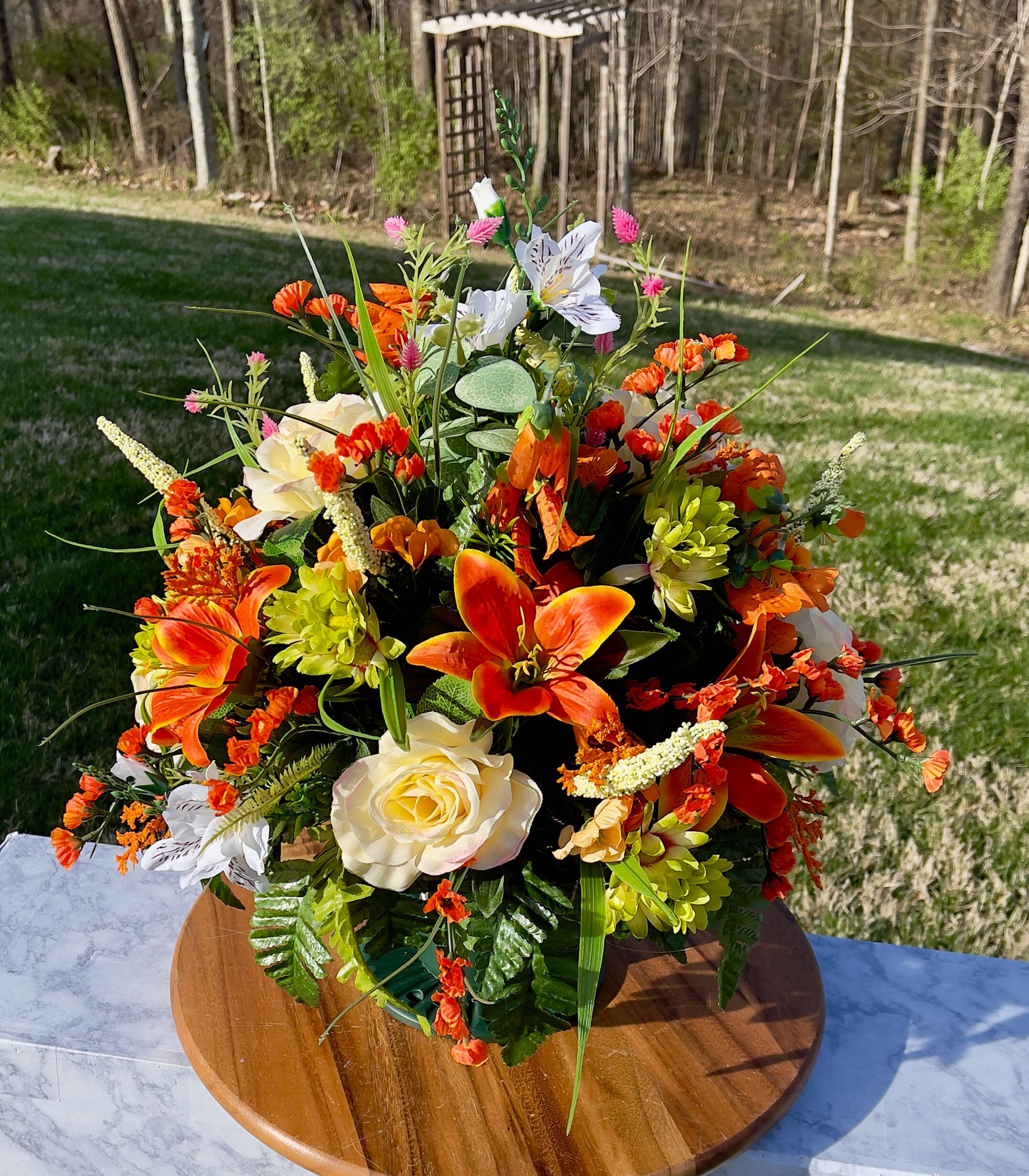 Replace Orange-Yellow-White Cemetery Vase, Vase Arrangement, Memorial Cemetery Vase, Memorial Flowers, Spring Cemetery Vase, Sympathy Flower