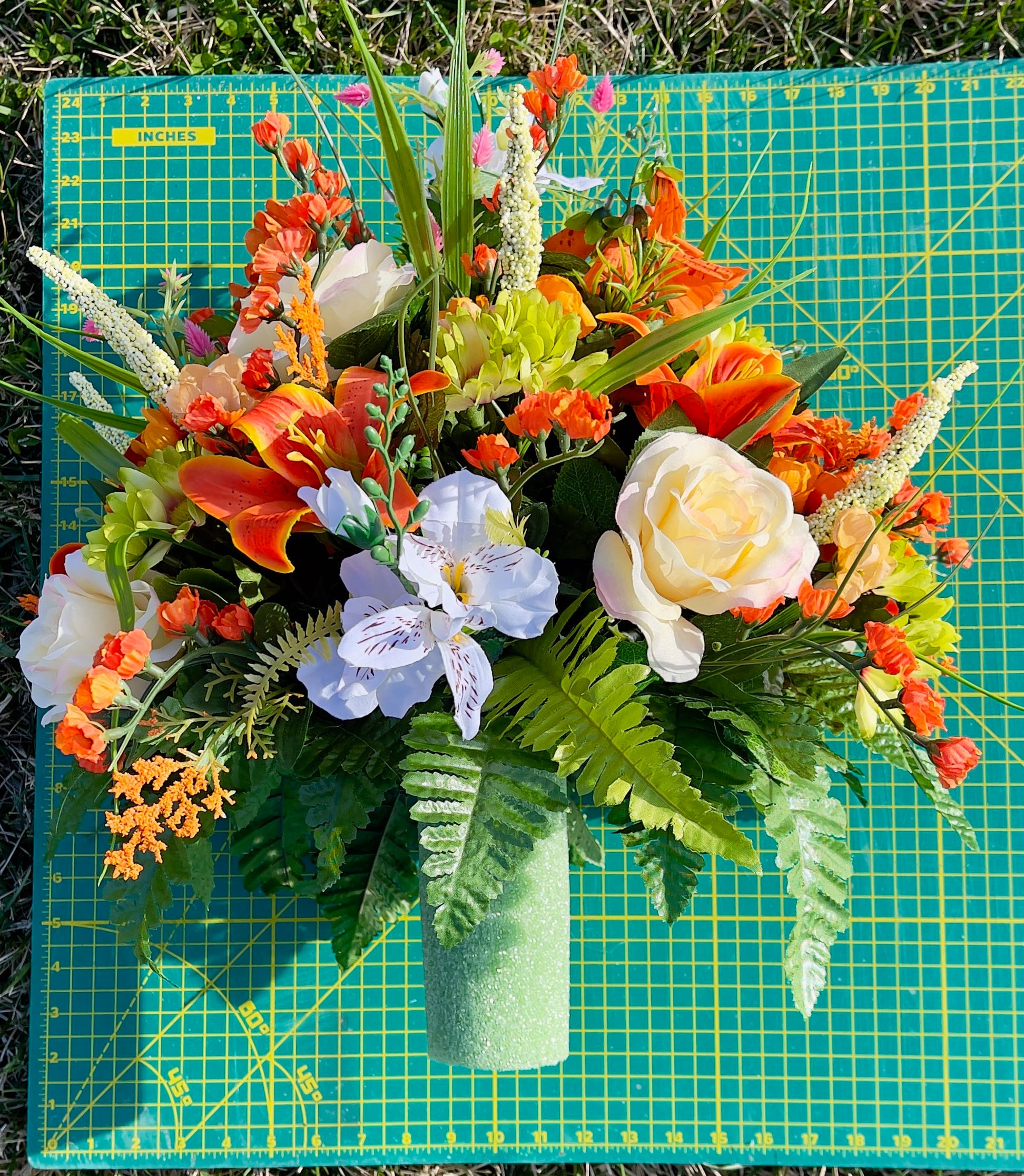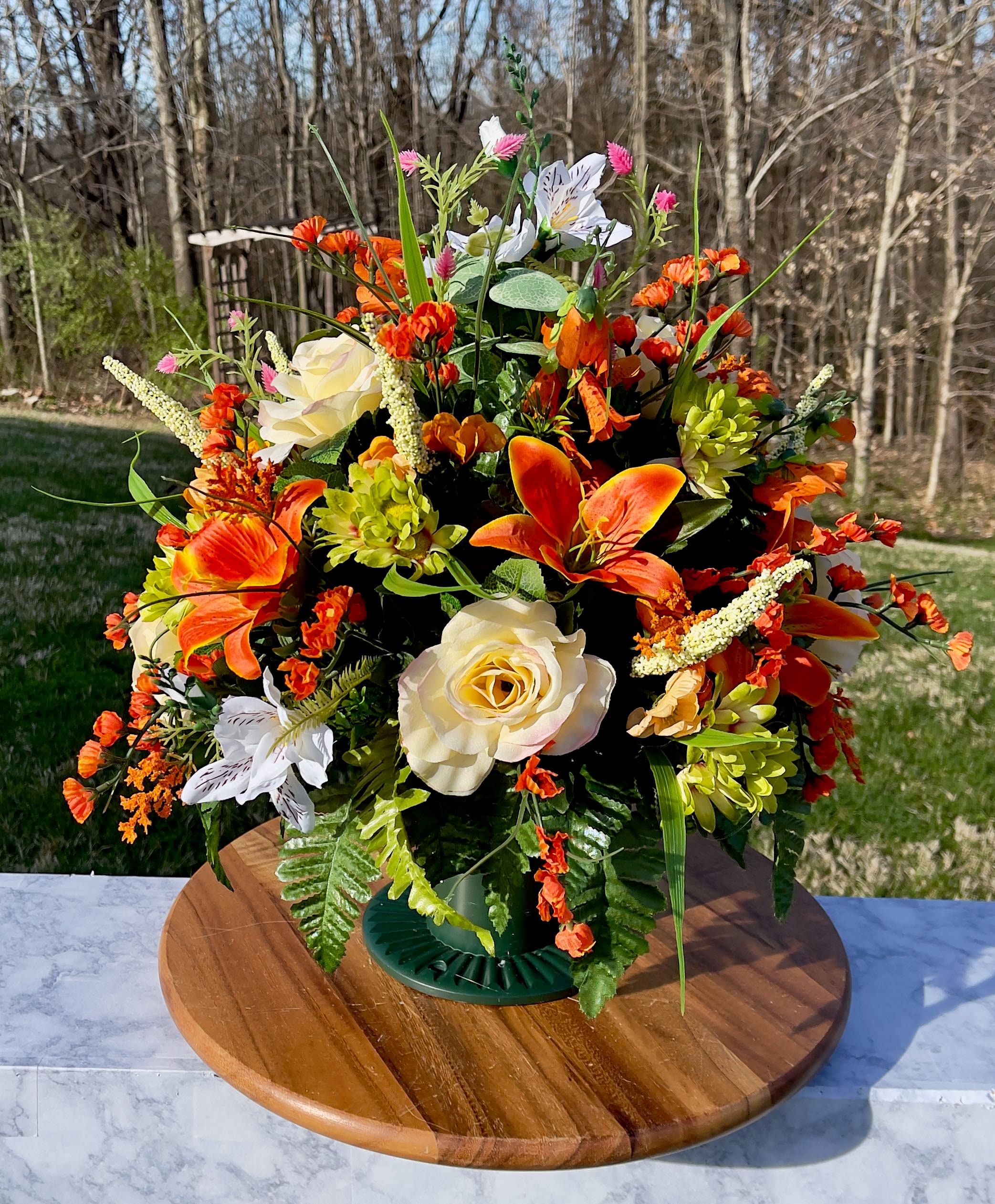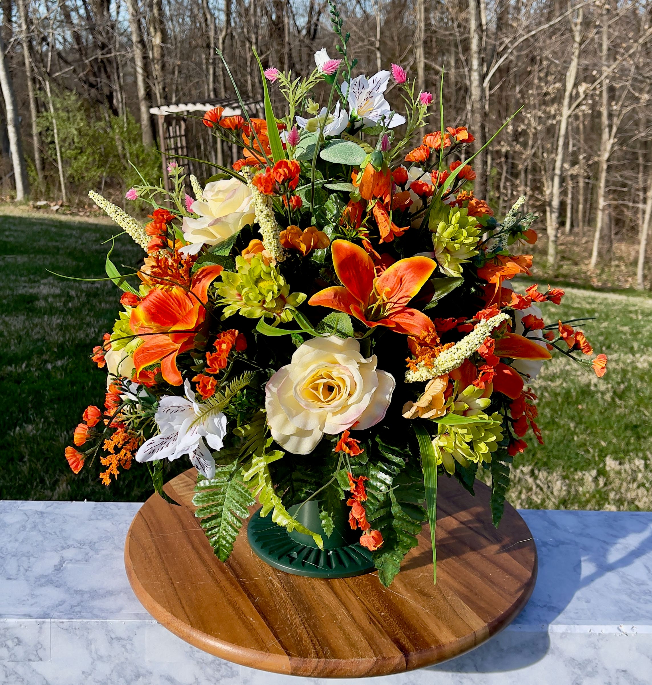 Replace Orange-Yellow-White Cemetery Vase, Vase Arrangement, Memorial Cemetery Vase, Memorial Flowers, Spring Cemetery Vase, Sympathy Flower