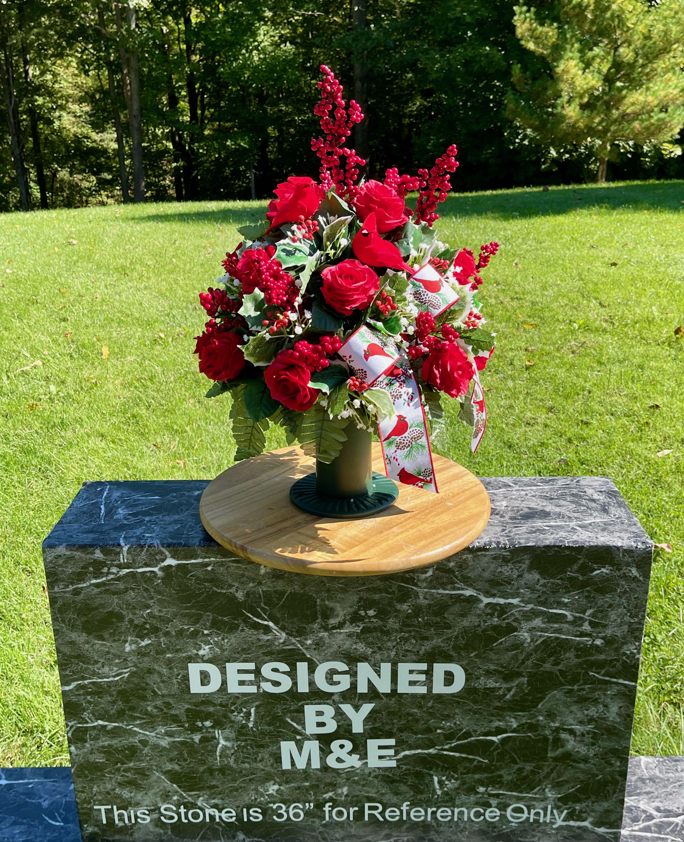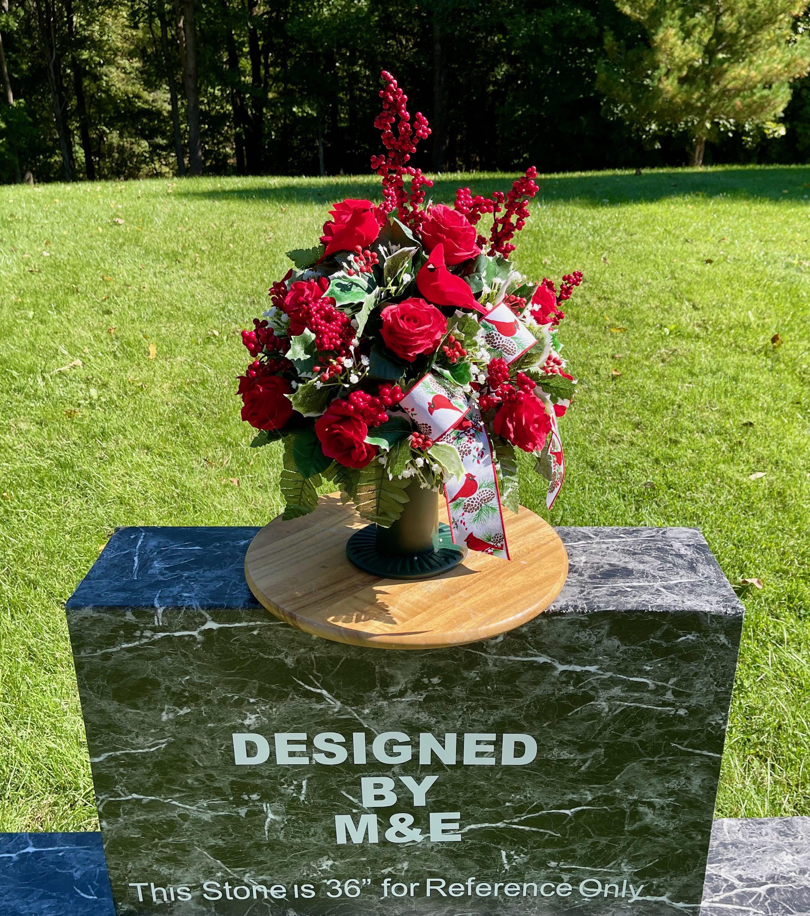 **Note** - The headstone pictured is 36" for reference only, please see photo on green measuring mat for arrangments exact dimensions.