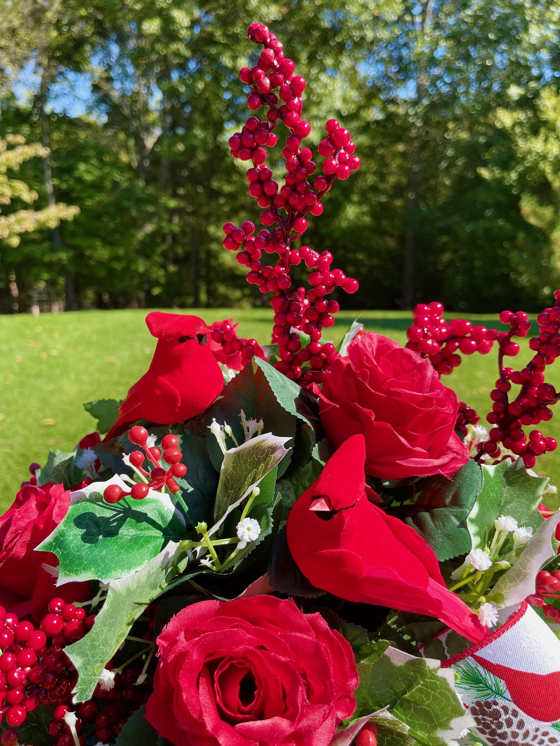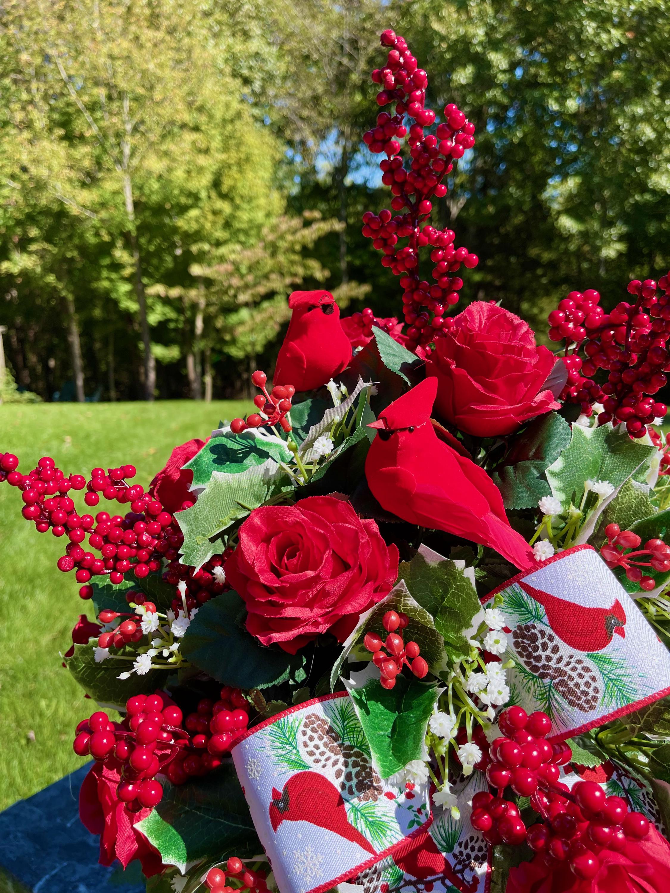 I put my love in every piece I build and do all I can to make them last. Every flower stem in glued into the foam to ensure they hold up to the elements. Designed by M&E sources only high-quality silk flowers for all my arrangements. All flowers will fade in time however, a good quality silk will ensure you get months of enjoyment.