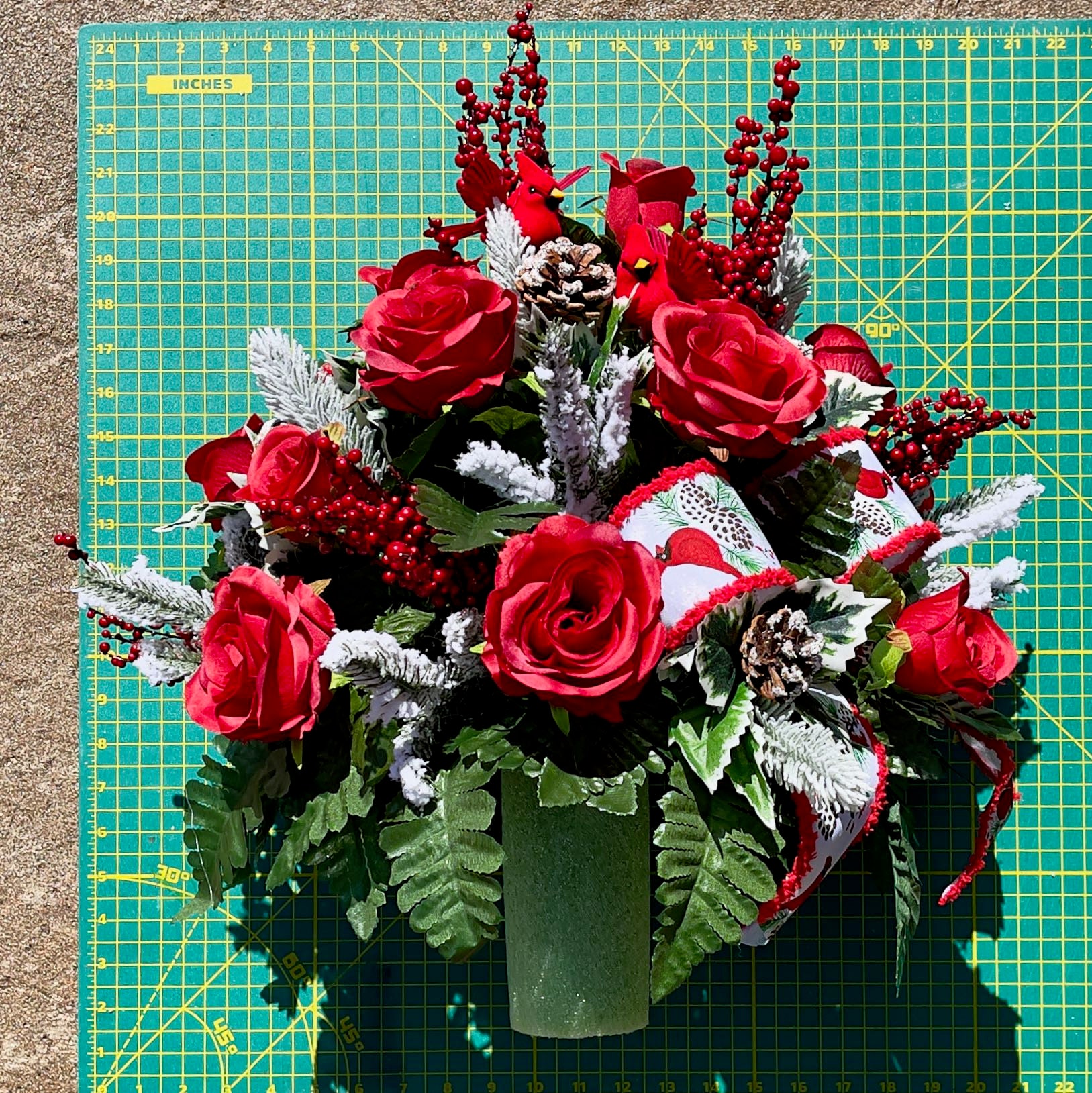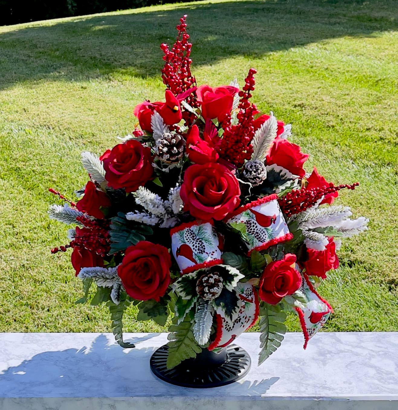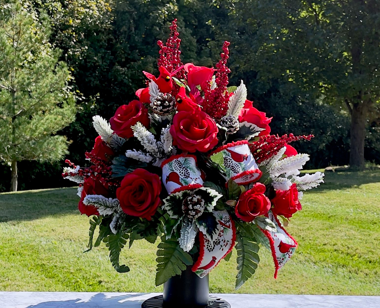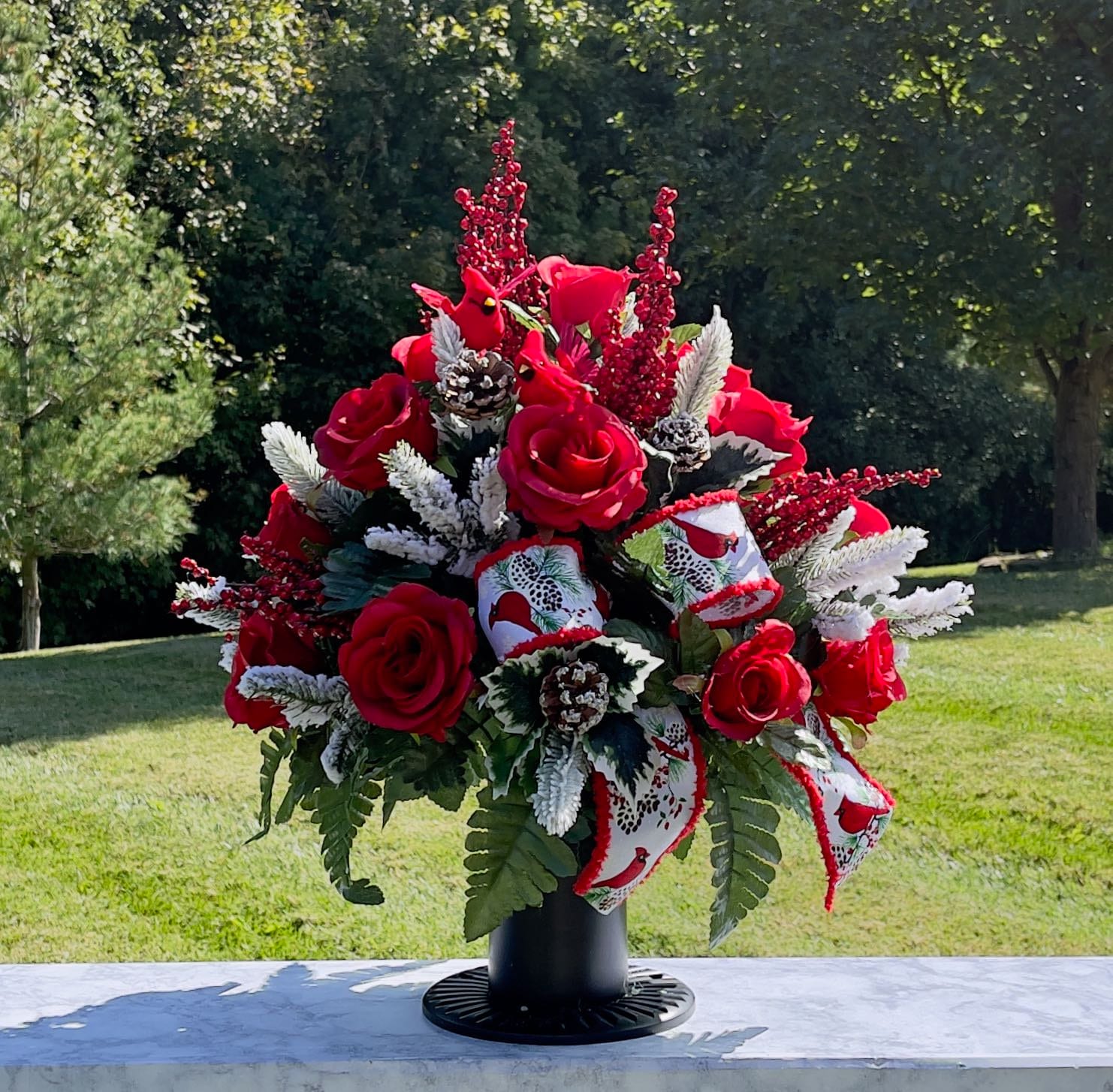 Redbird with Cardinal Bow Christmas Cemetery Vase, Vase Arrangement, Memorial Cemetery Vase, Memorial Flower, Cemetery Vase, Sympathy Flower