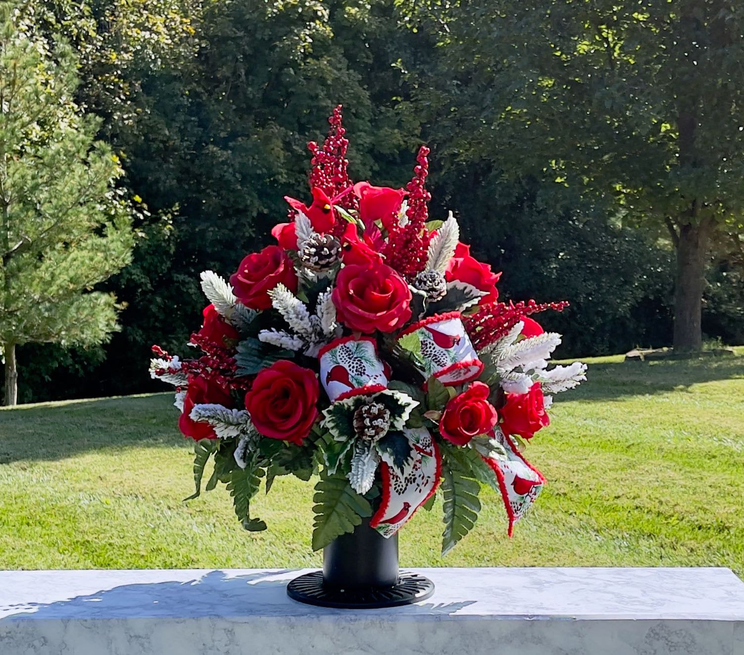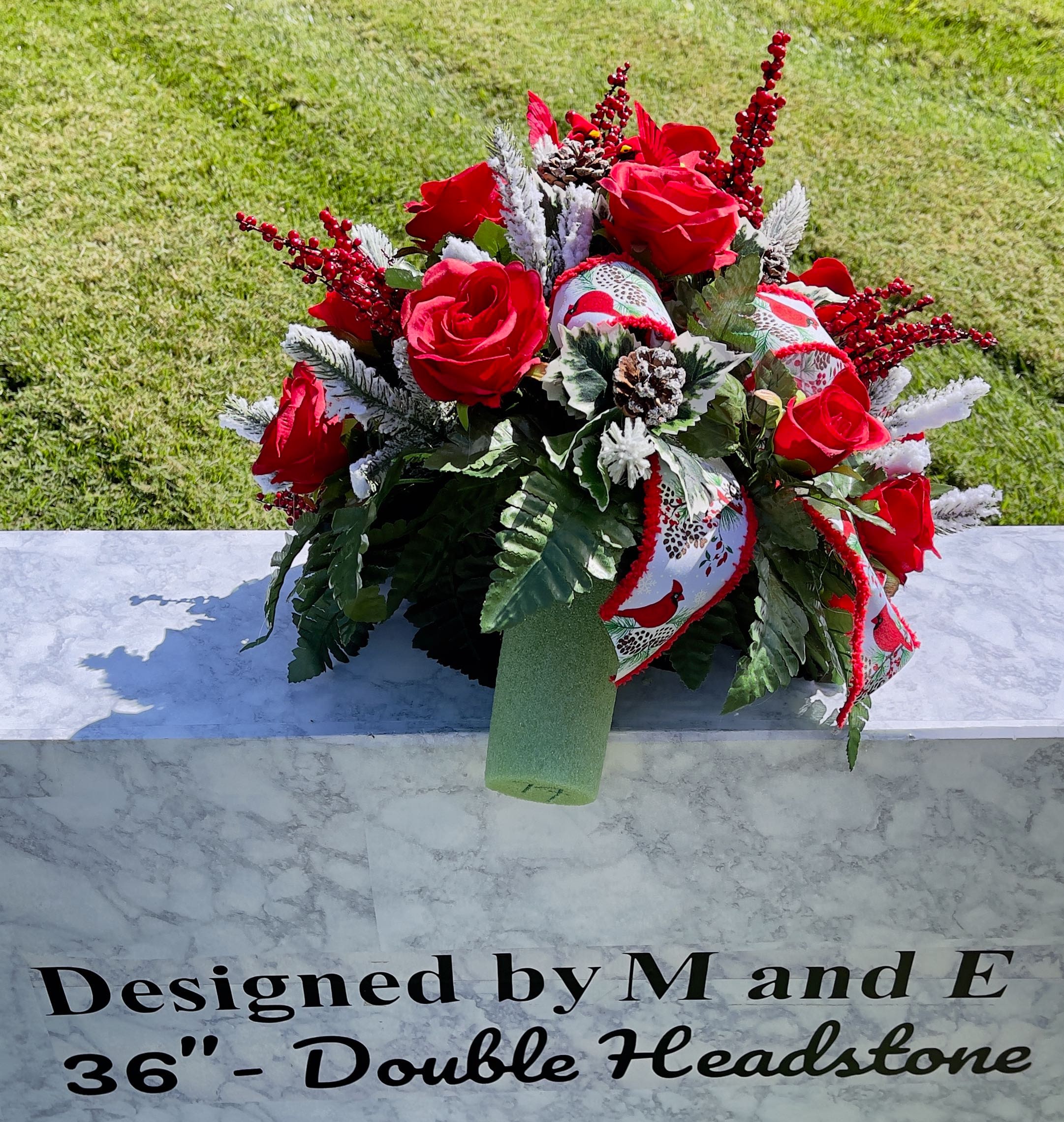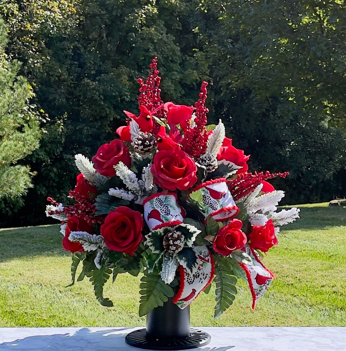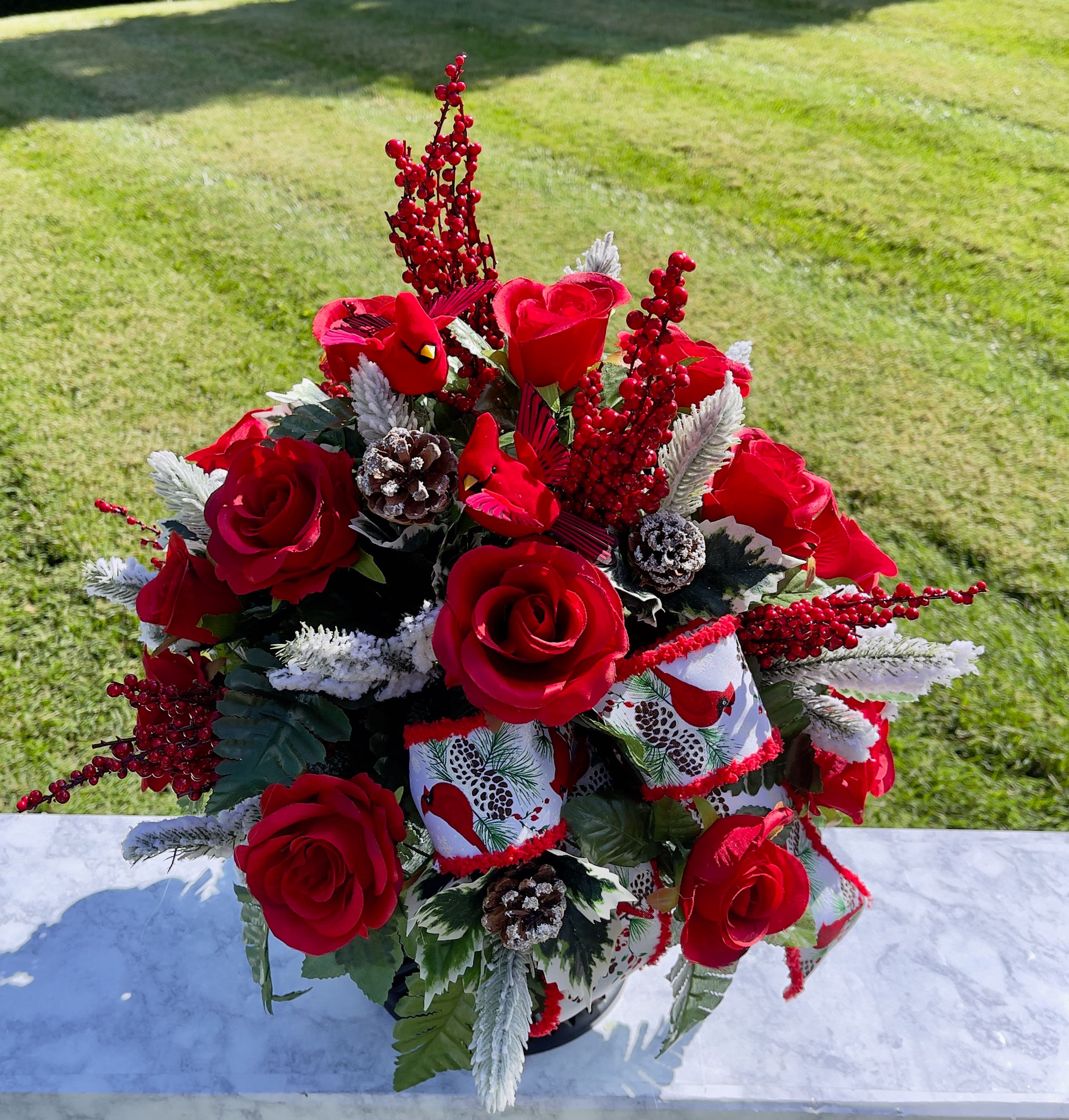 Redbird with Cardinal Bow Christmas Cemetery Vase, Vase Arrangement, Memorial Cemetery Vase, Memorial Flower, Cemetery Vase, Sympathy Flower