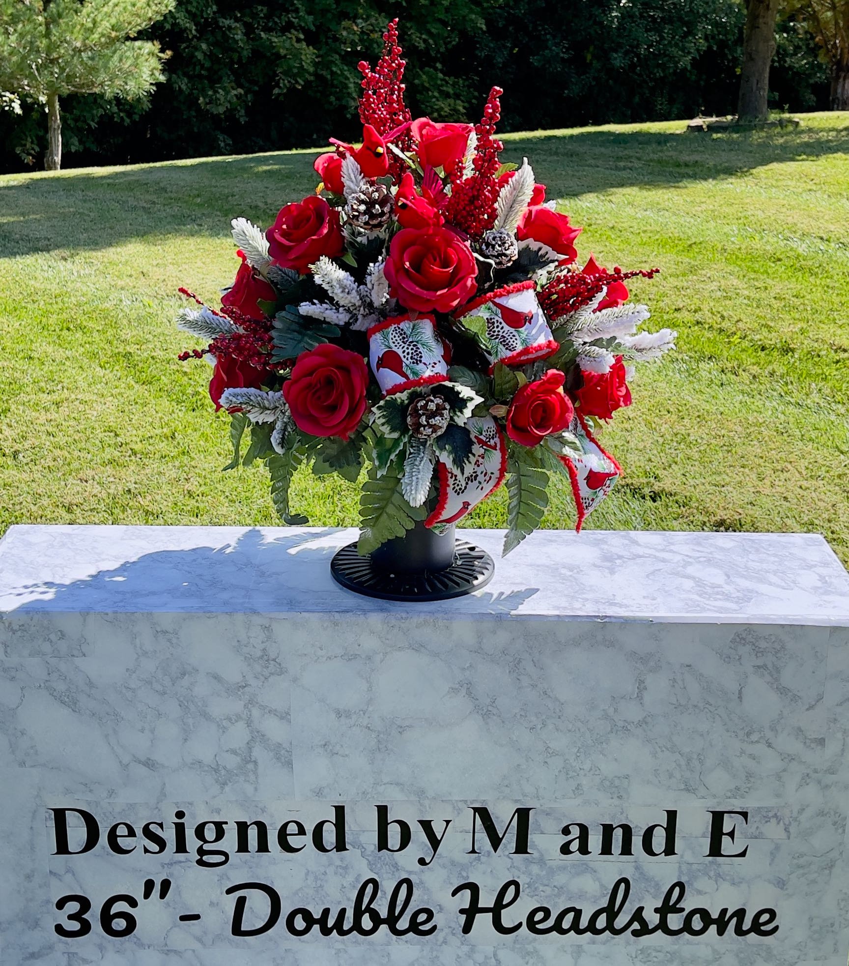 **Note** - The headstone pictured is 36" for reference only, please see photo on green measuring mat for arrangments exact dimensions.