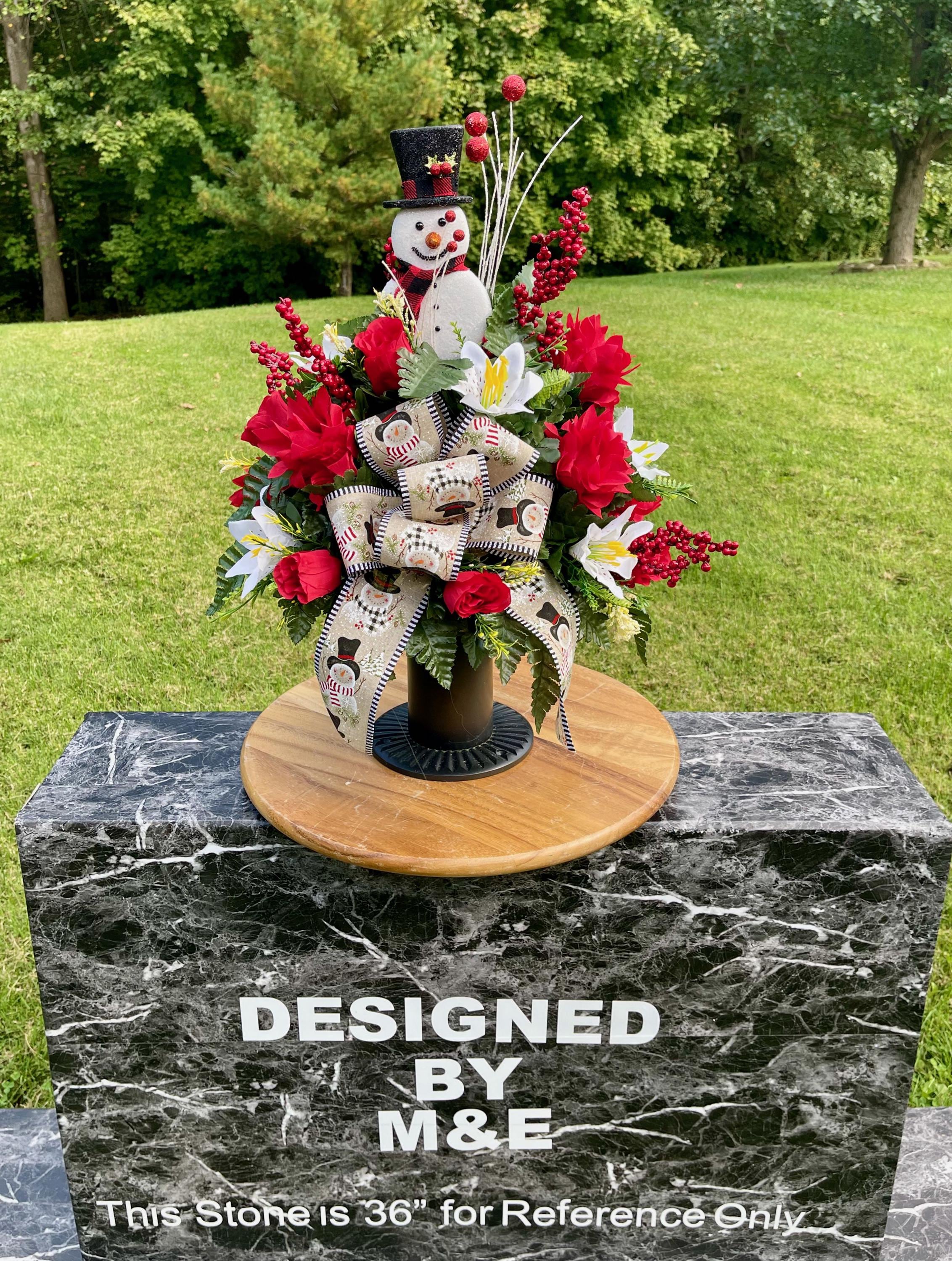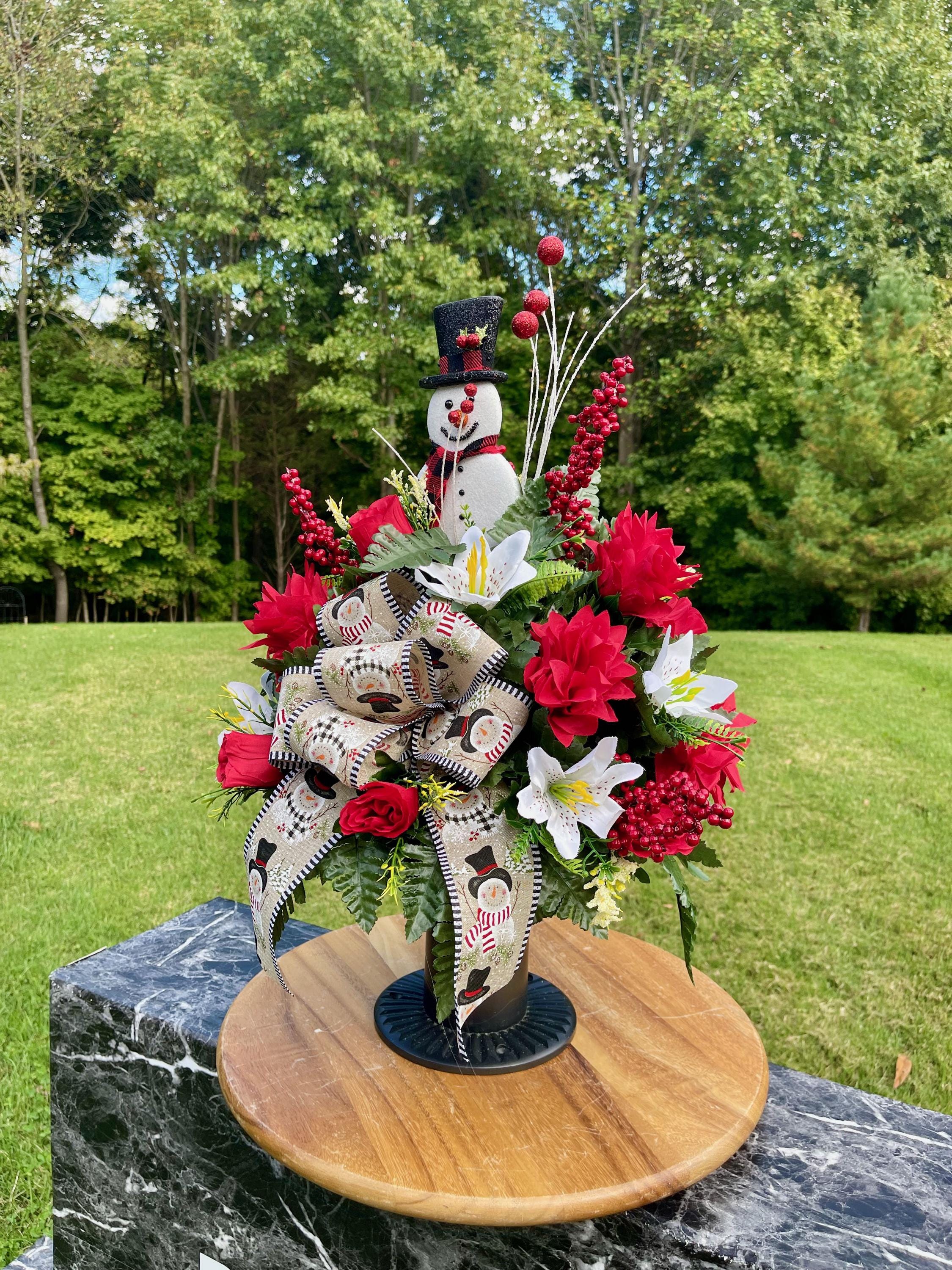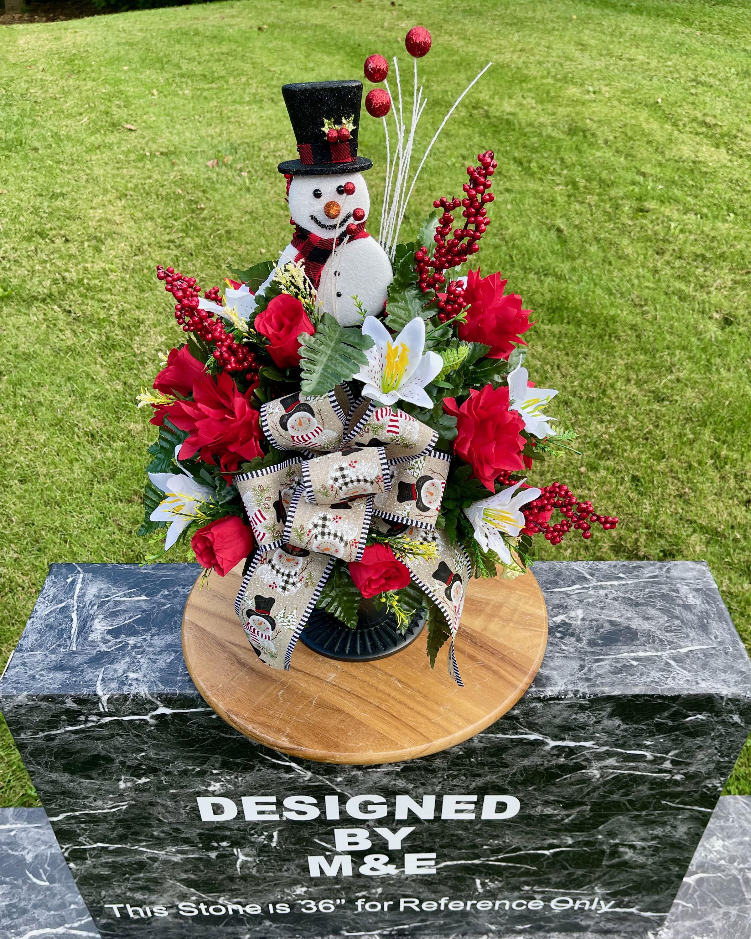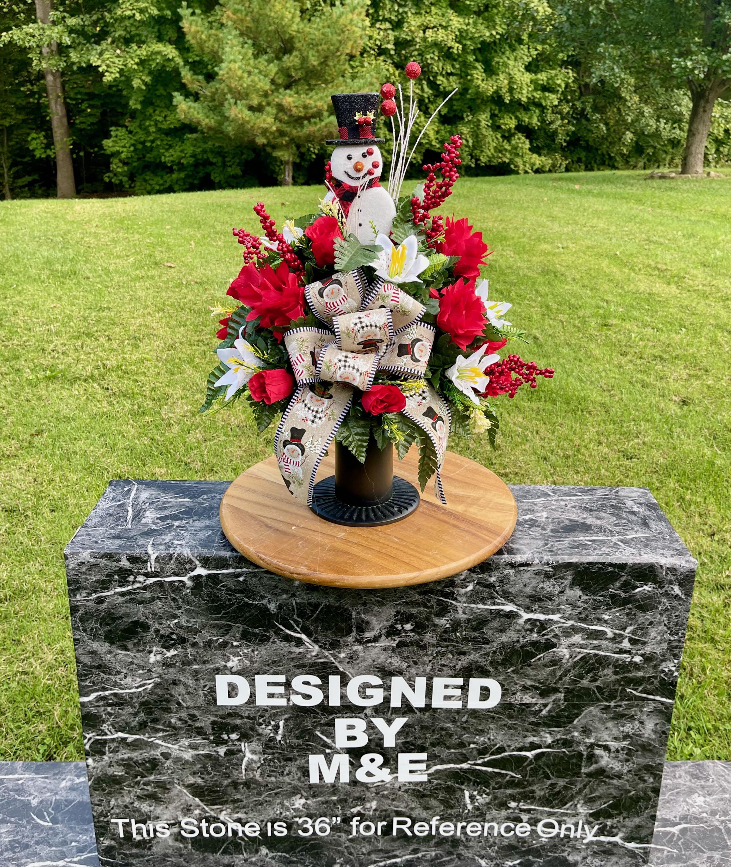 Snowman Christmas Cemetery Vase Piece, Holiday Cemetery Vase, Vase Arrangement, Cemetery Vase, Sympathy Flowers for Vase, Headstone Vase