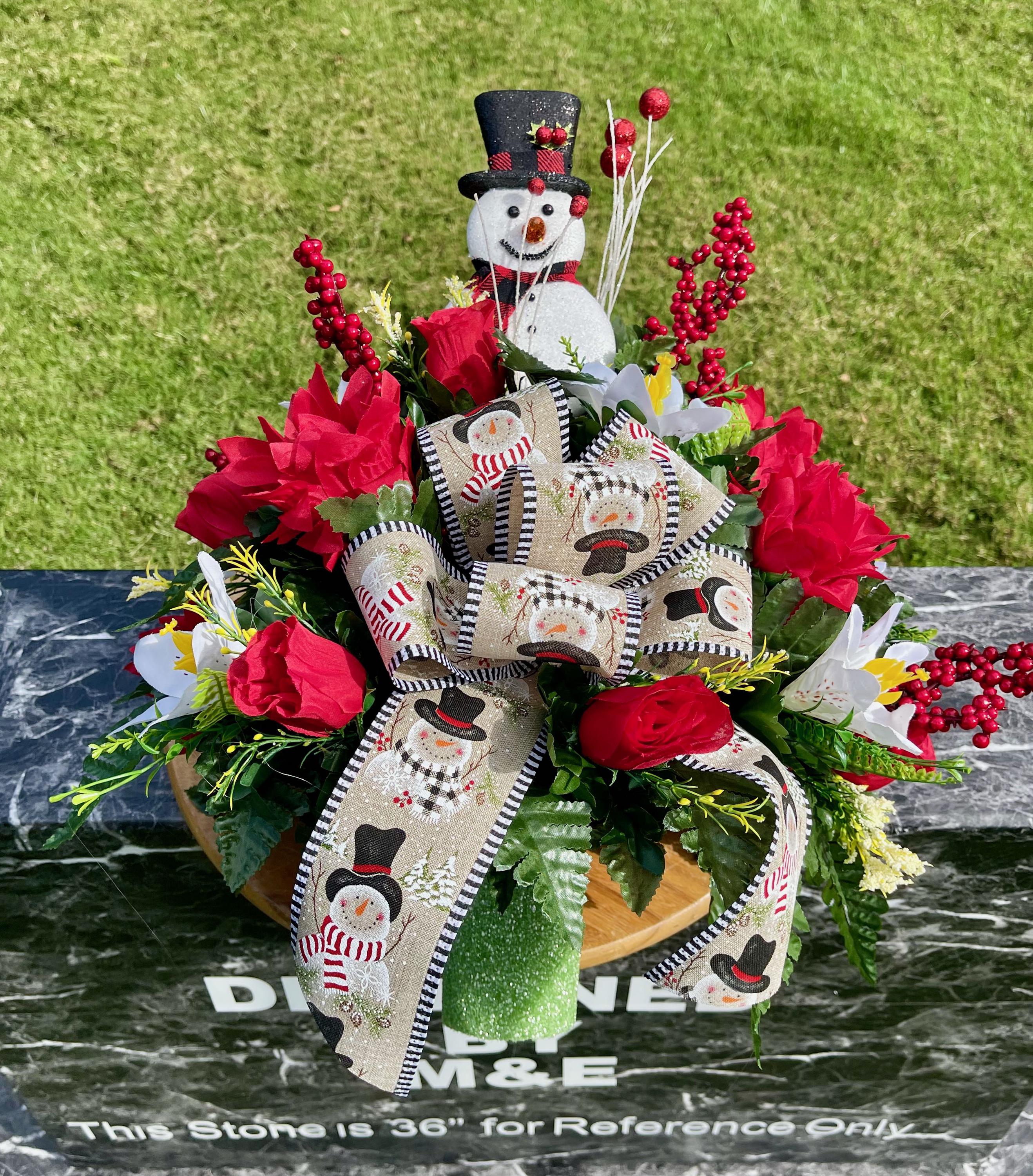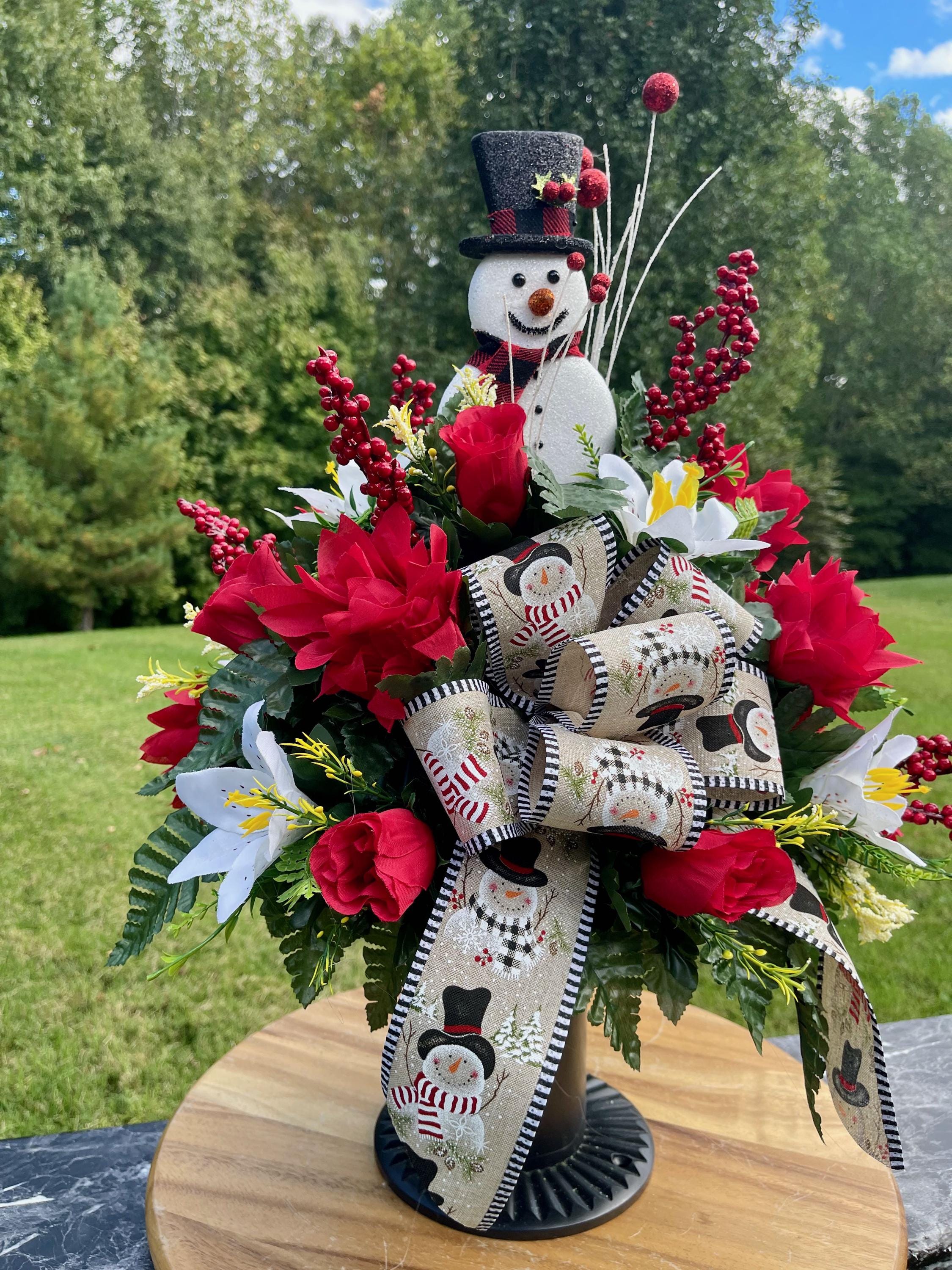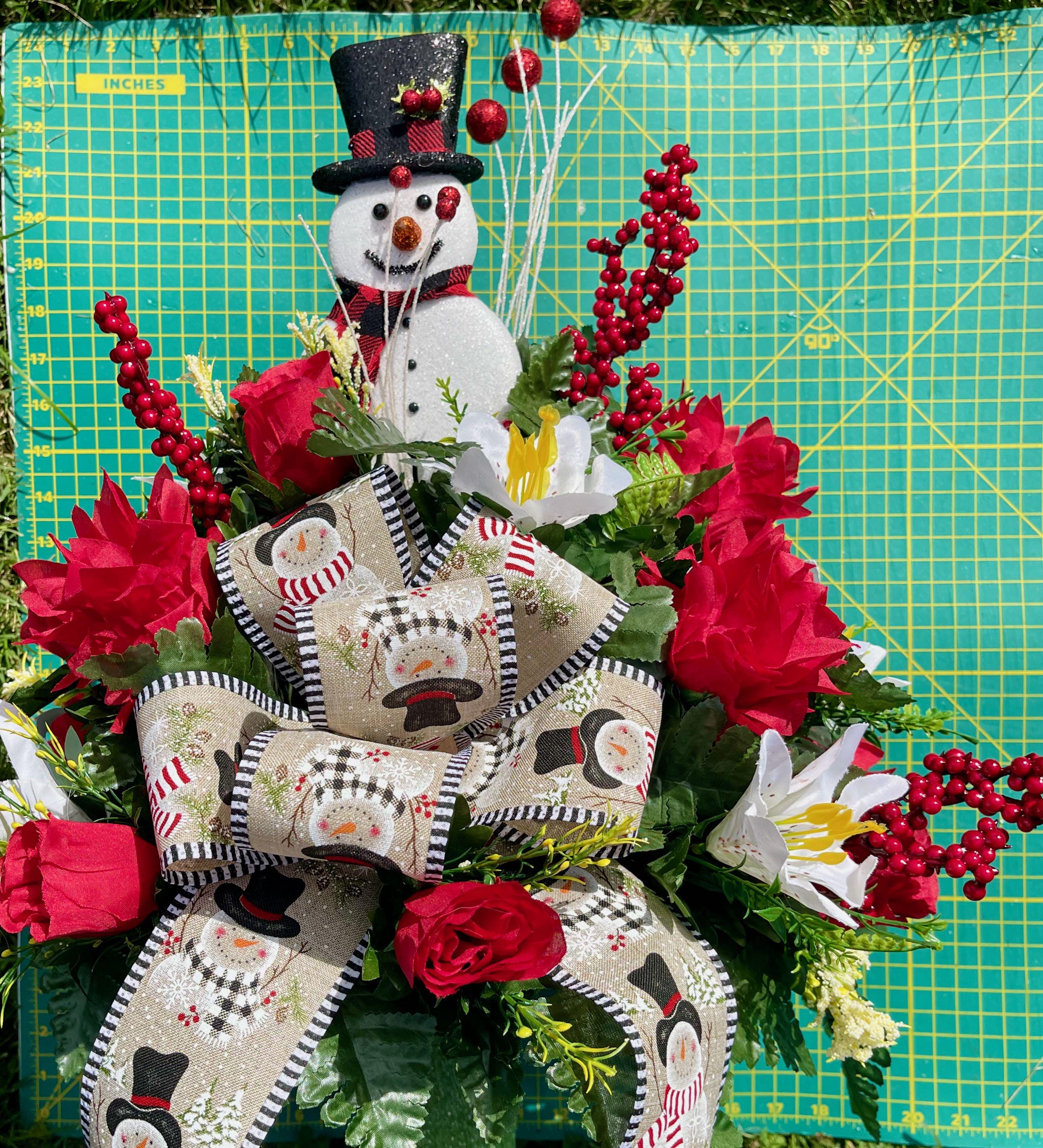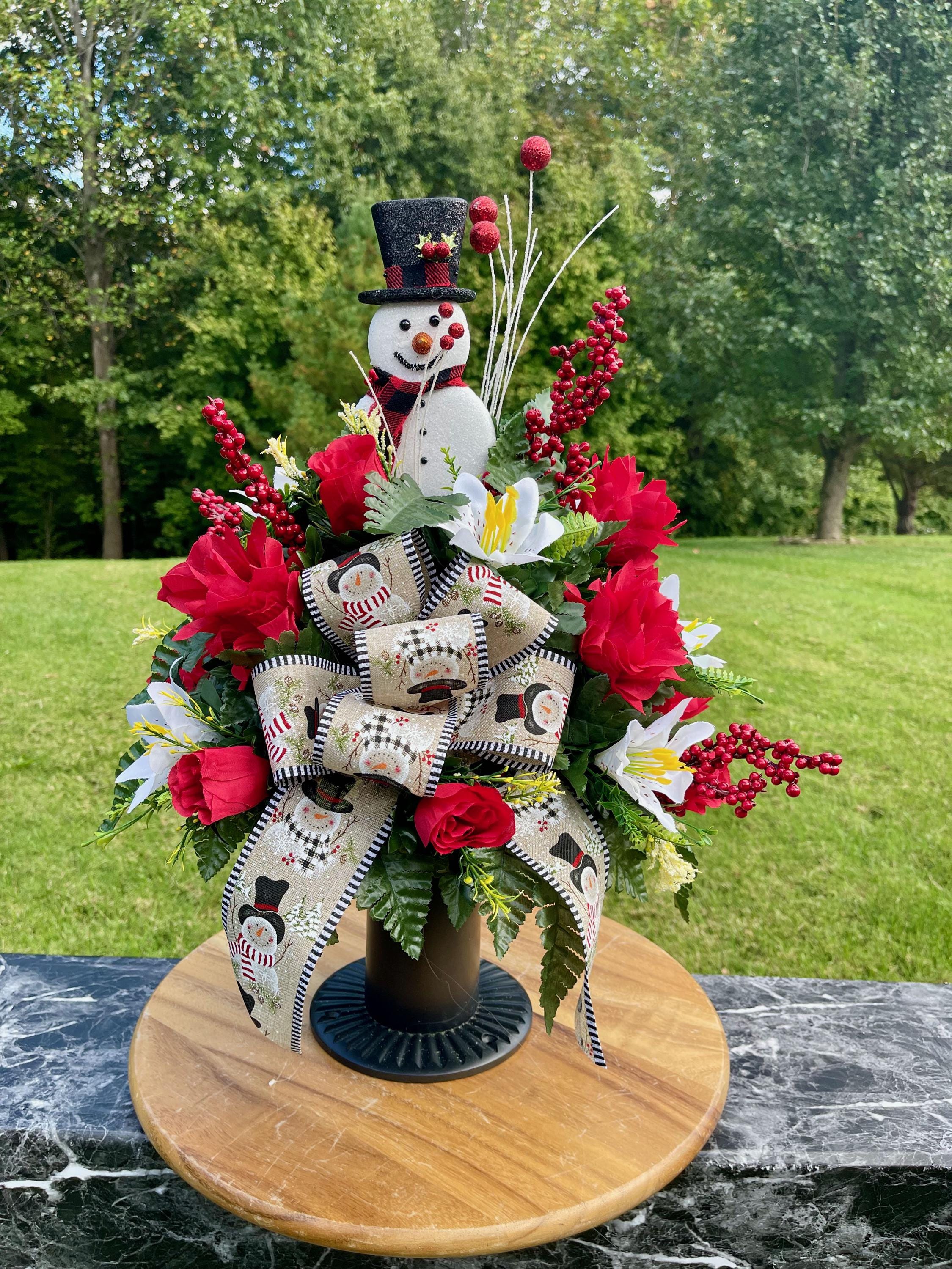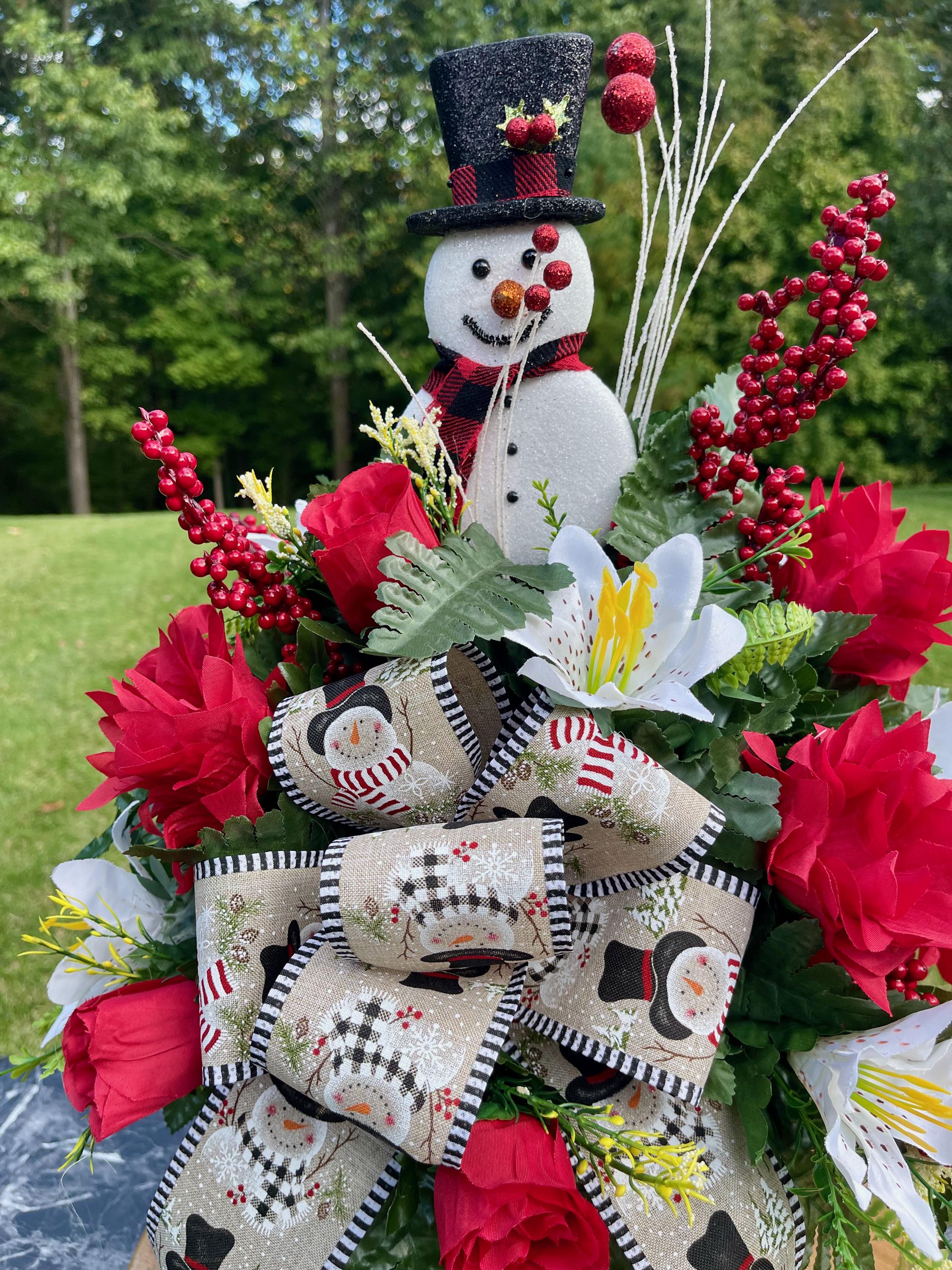 Snowman Christmas Cemetery Vase Piece, Holiday Cemetery Vase, Vase Arrangement, Cemetery Vase, Sympathy Flowers for Vase, Headstone Vase