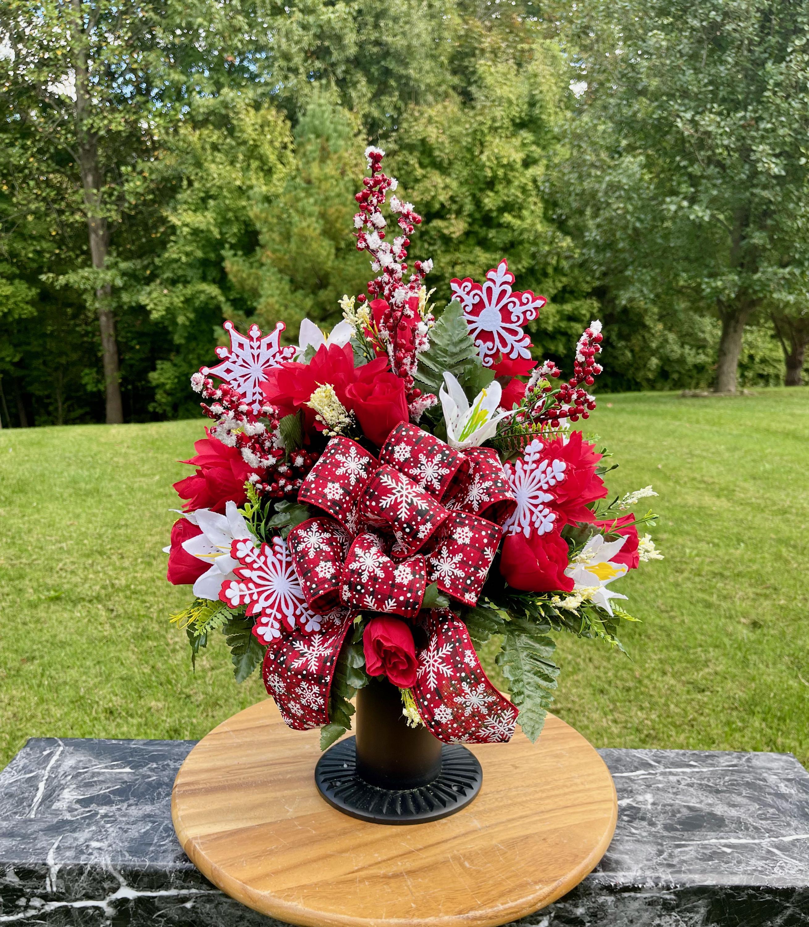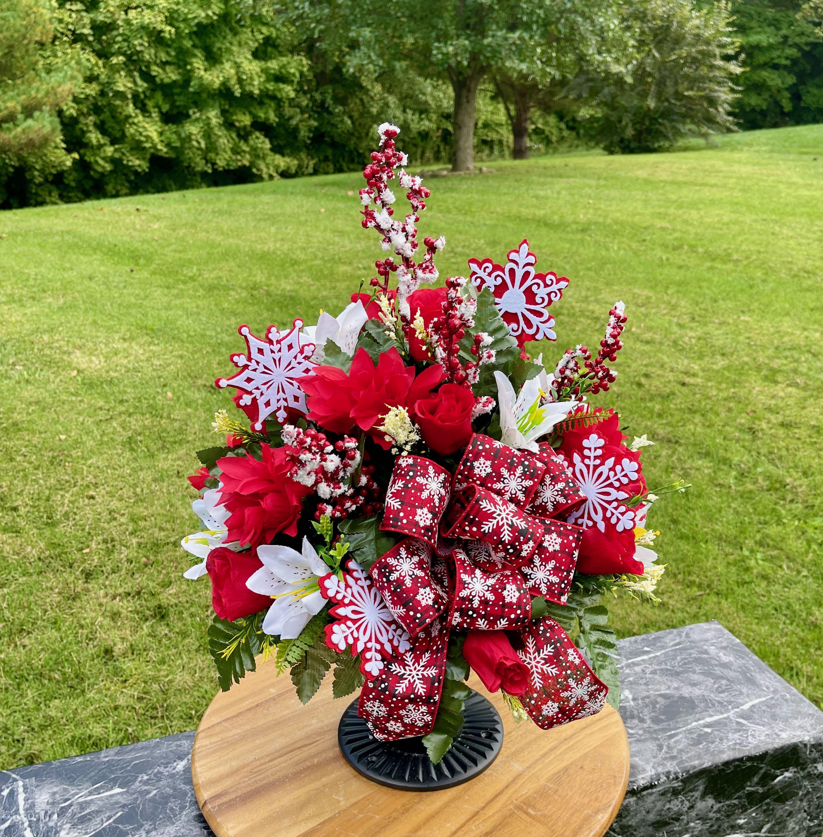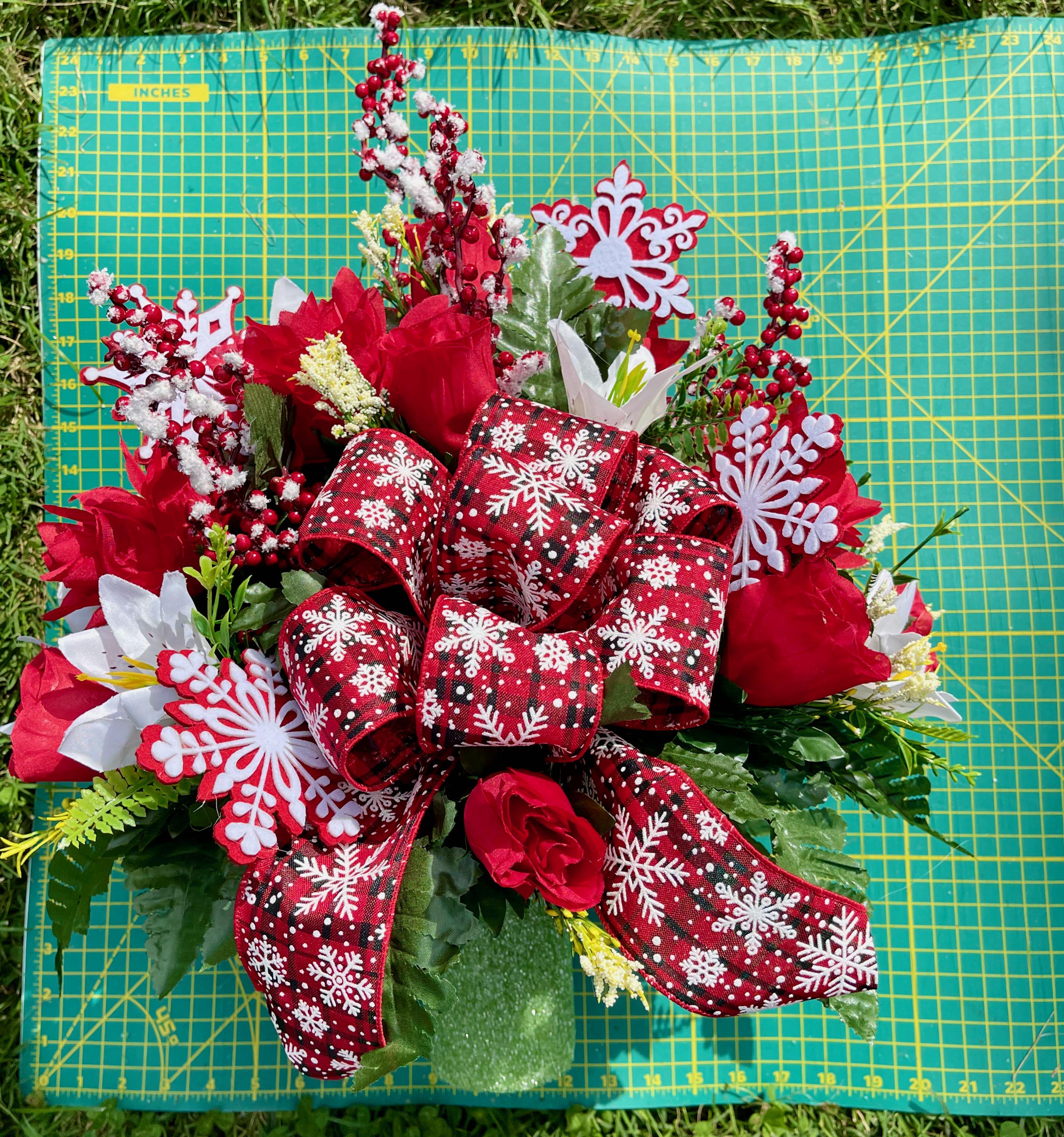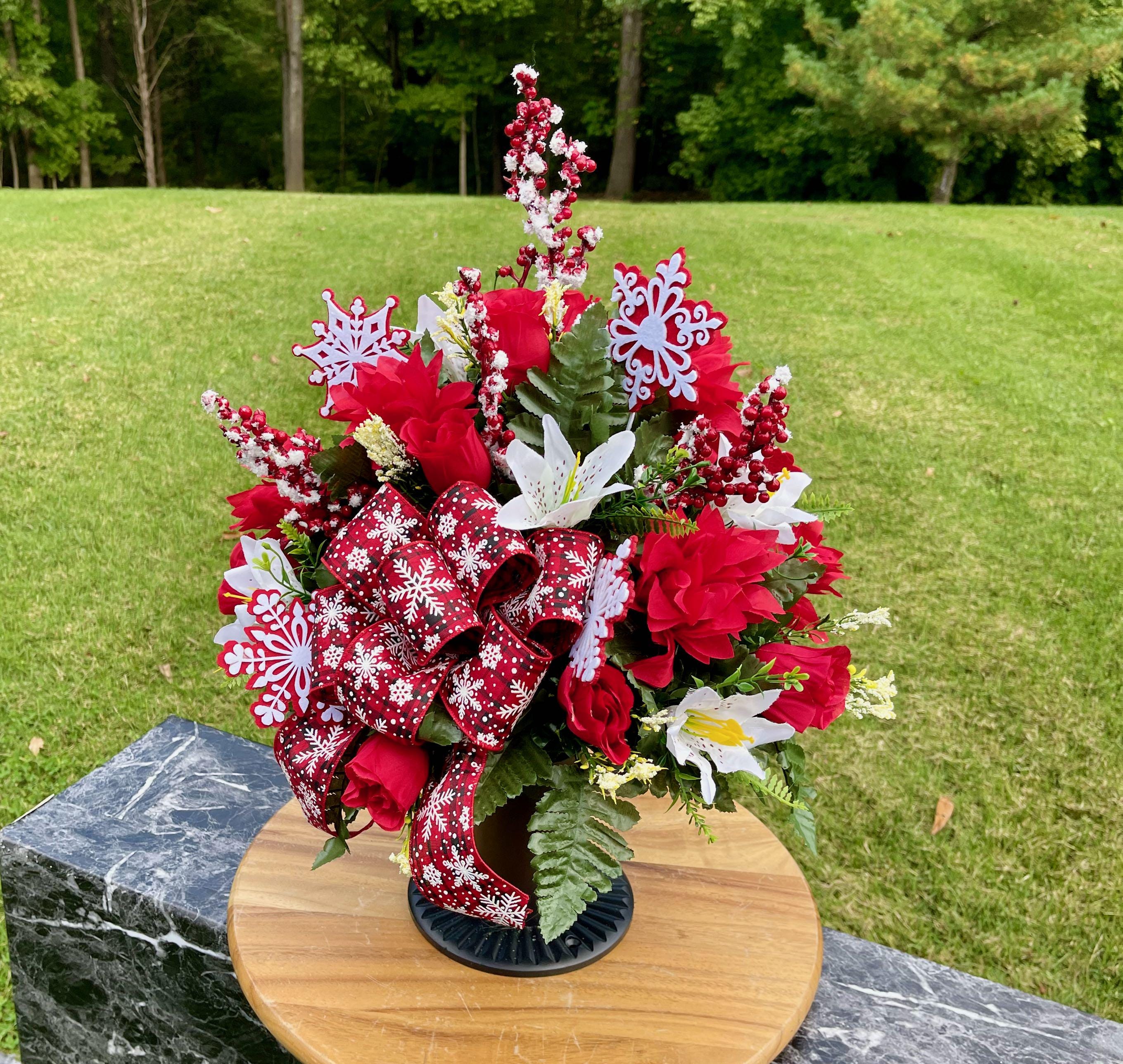 Snowflake with Bow Christmas Cemetery Vase, Vase Arrangement, Memorial Cemetery Vase, Memorial Flower, Cemetery Vase, Sympathy Flower
