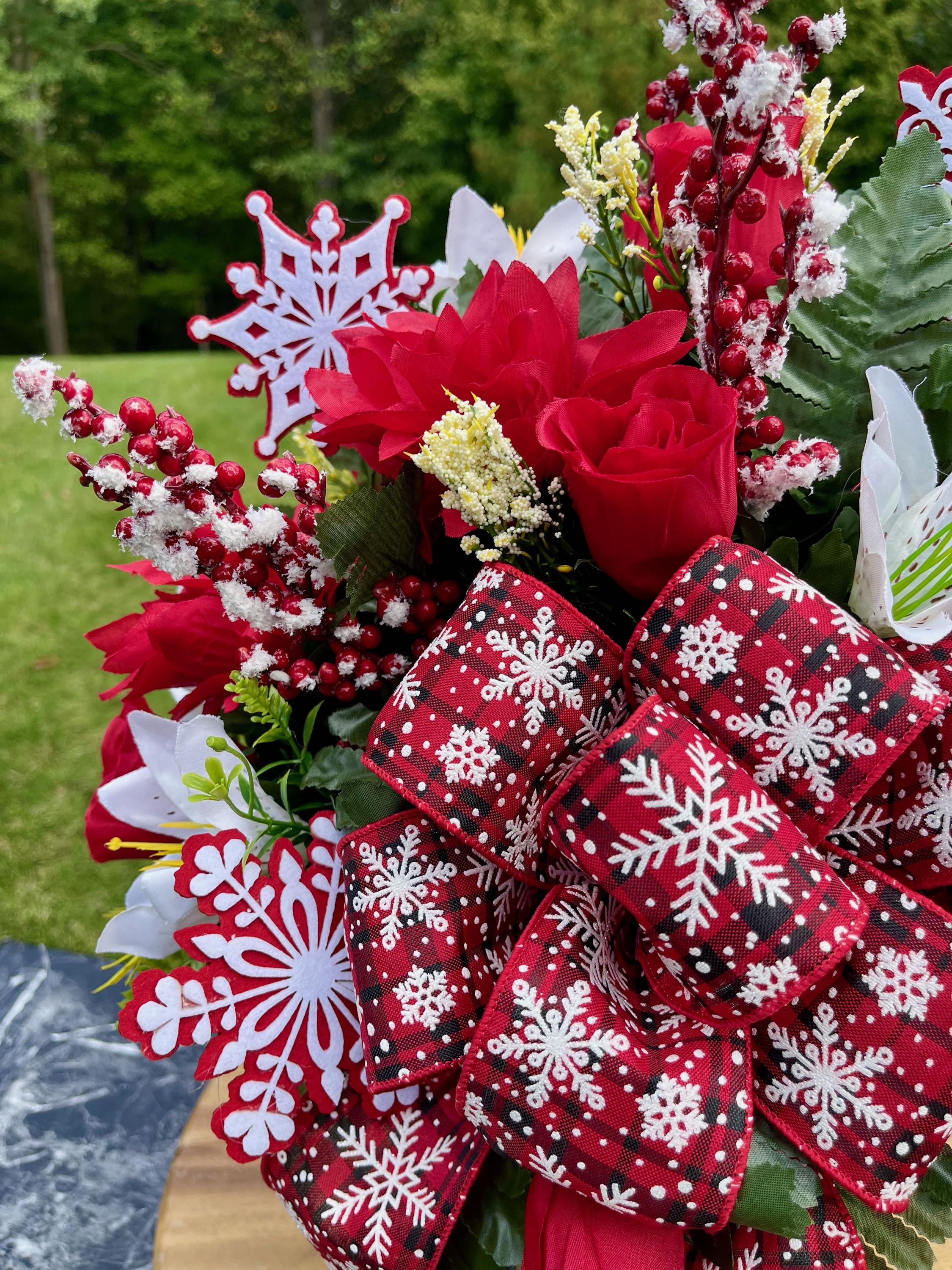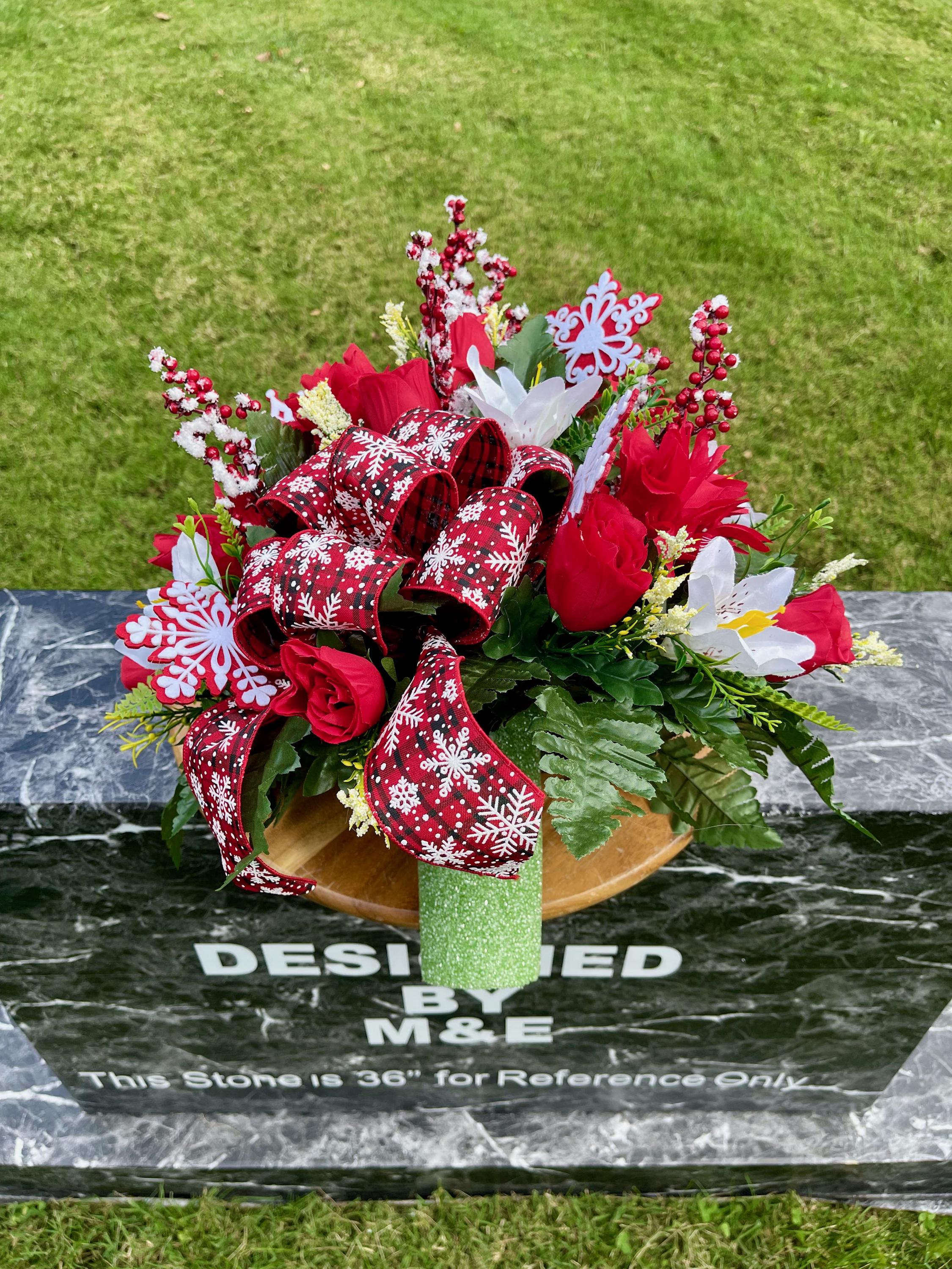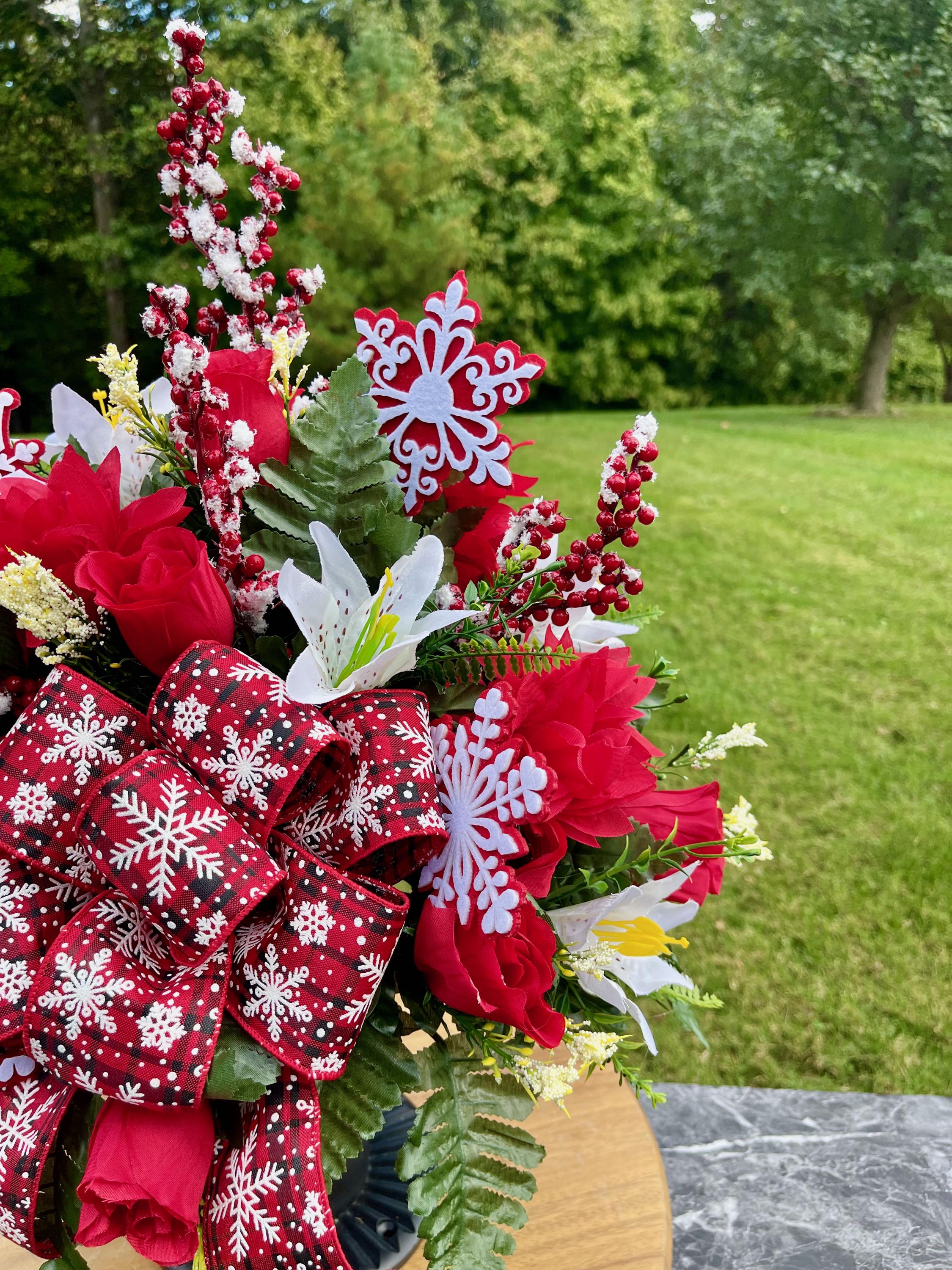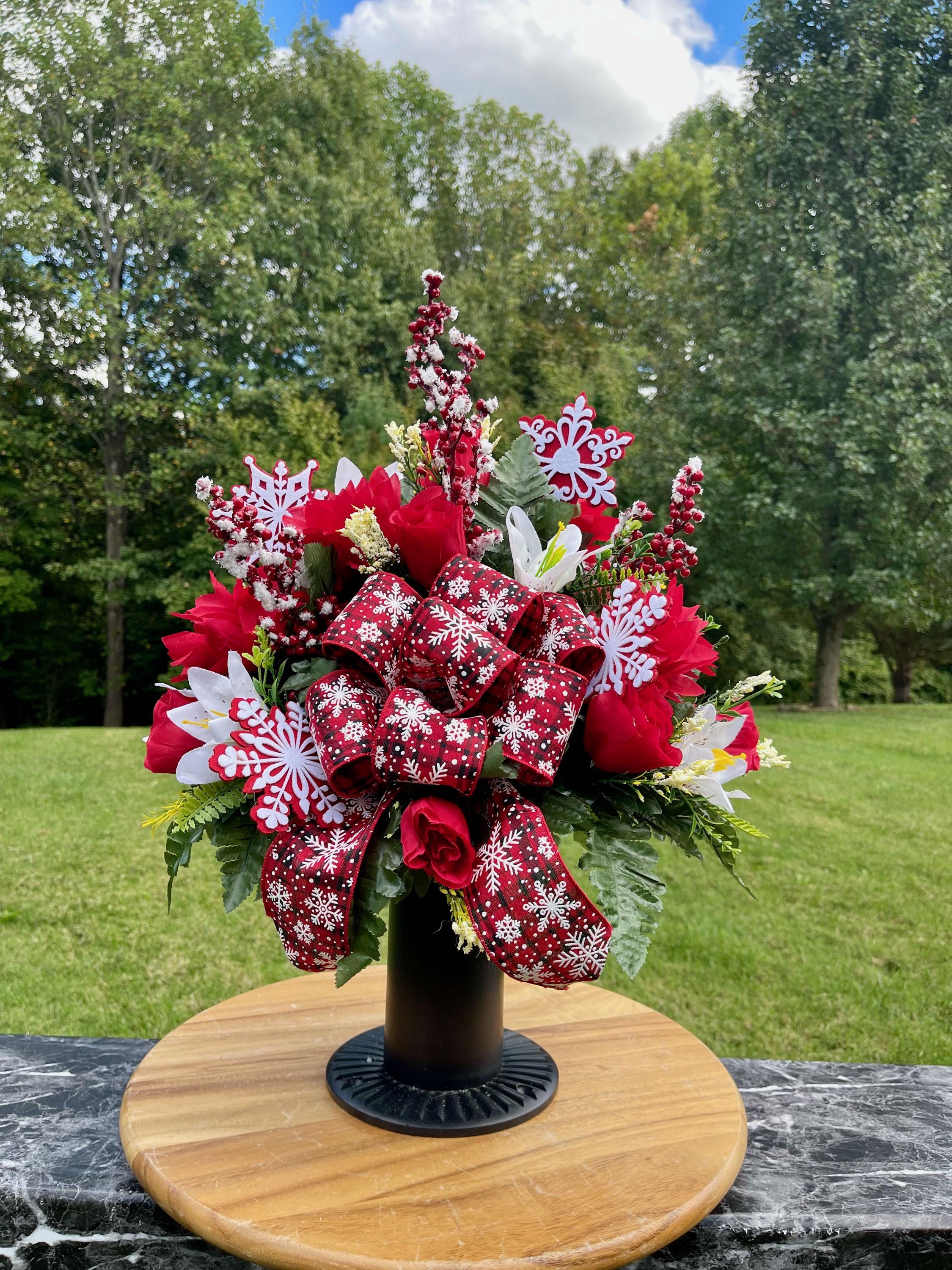 Snowflake with Bow Christmas Cemetery Vase, Vase Arrangement, Memorial Cemetery Vase, Memorial Flower, Cemetery Vase, Sympathy Flower