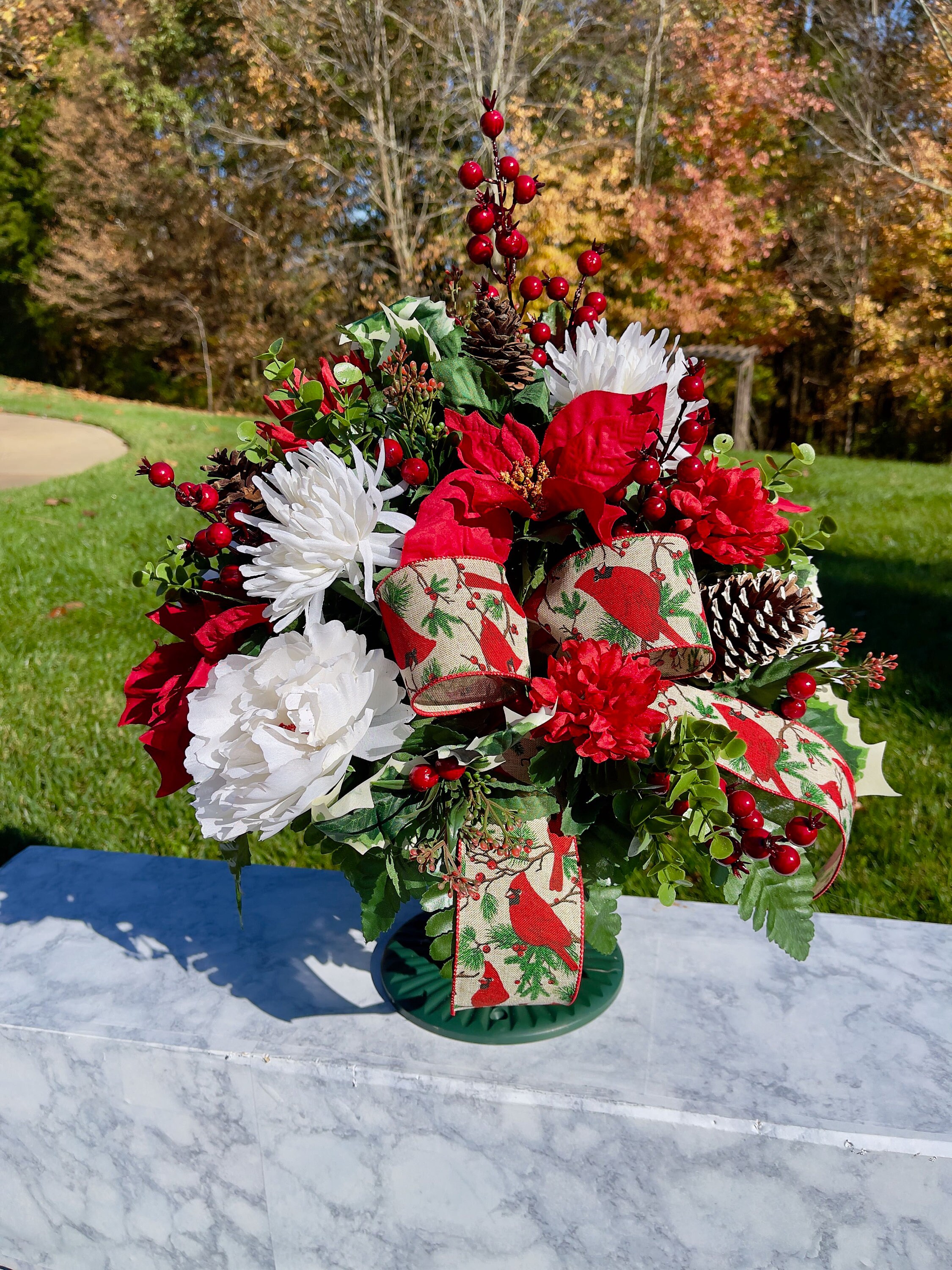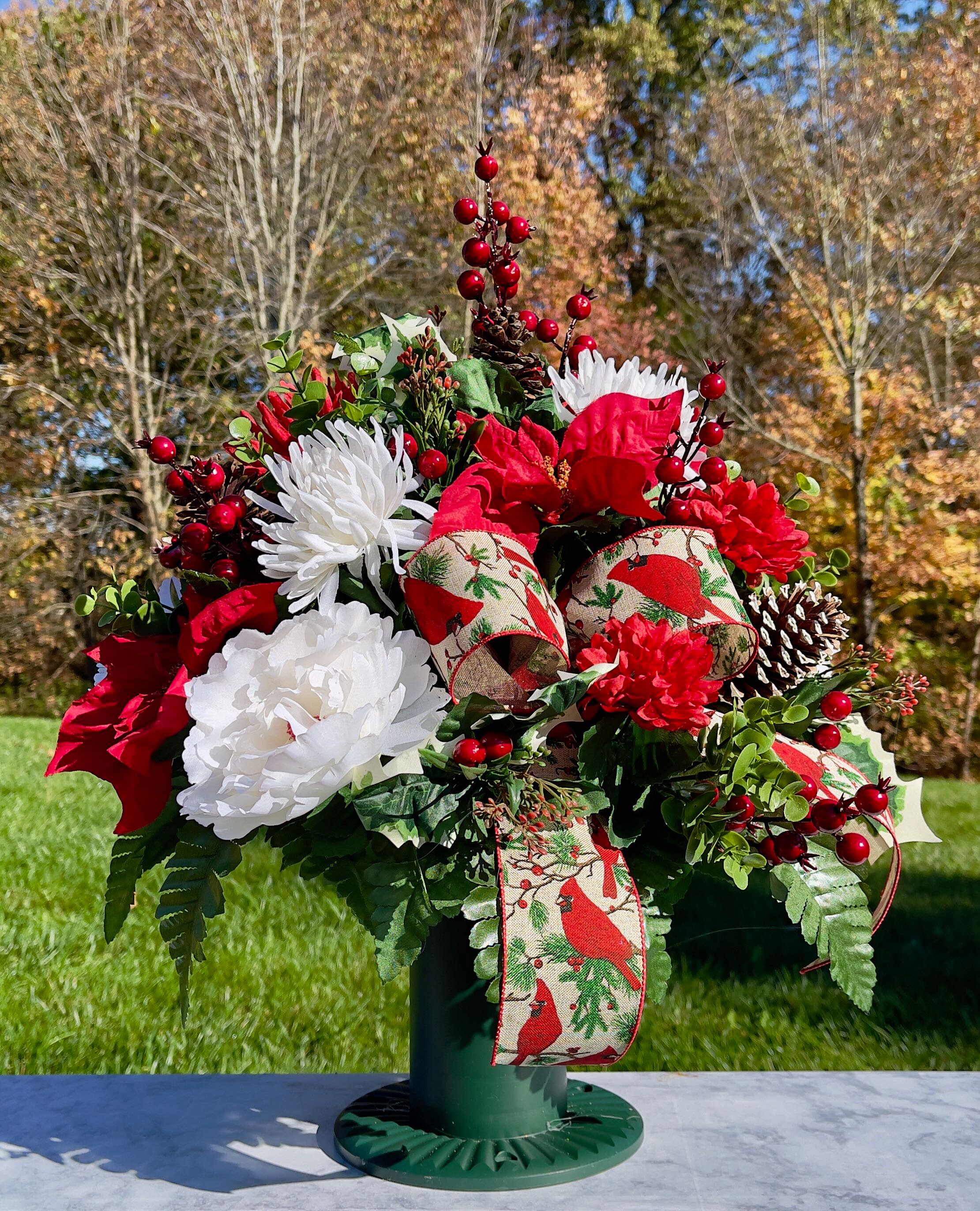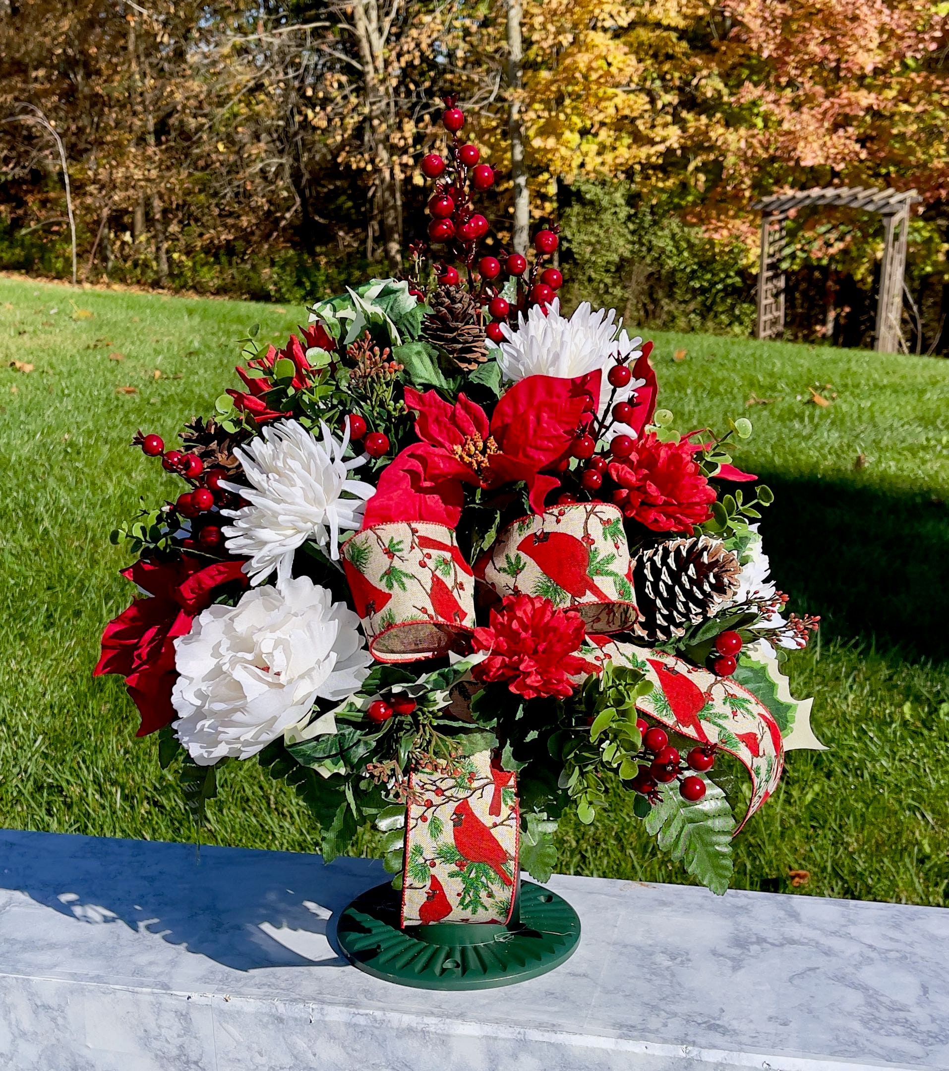 Redbird Bow Christmas Cemetery Vase, Vase Arrangement, Memorial Cemetery Vase, Memorial Flowers, Cemetery Vase, Sympathy Flowers