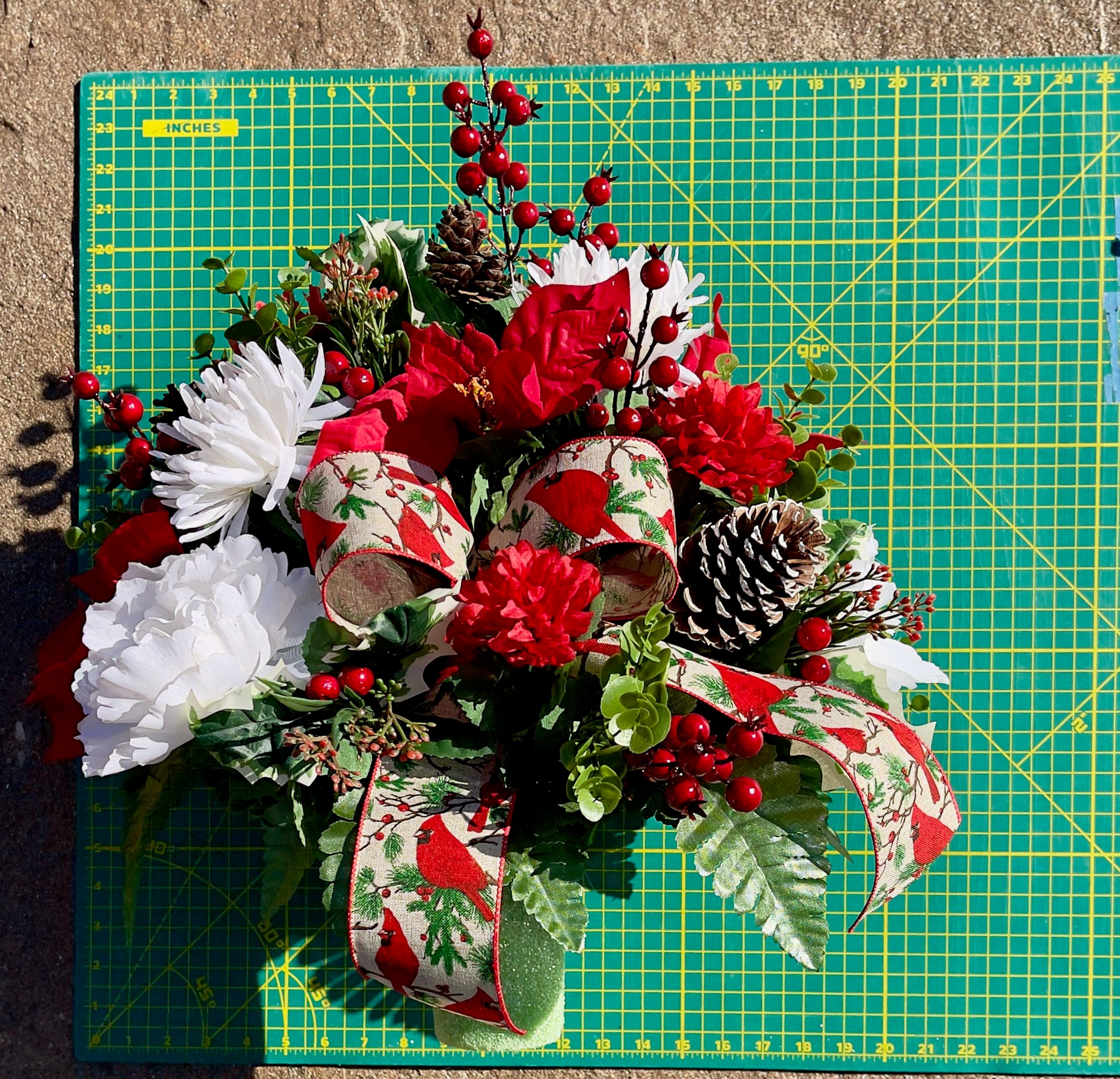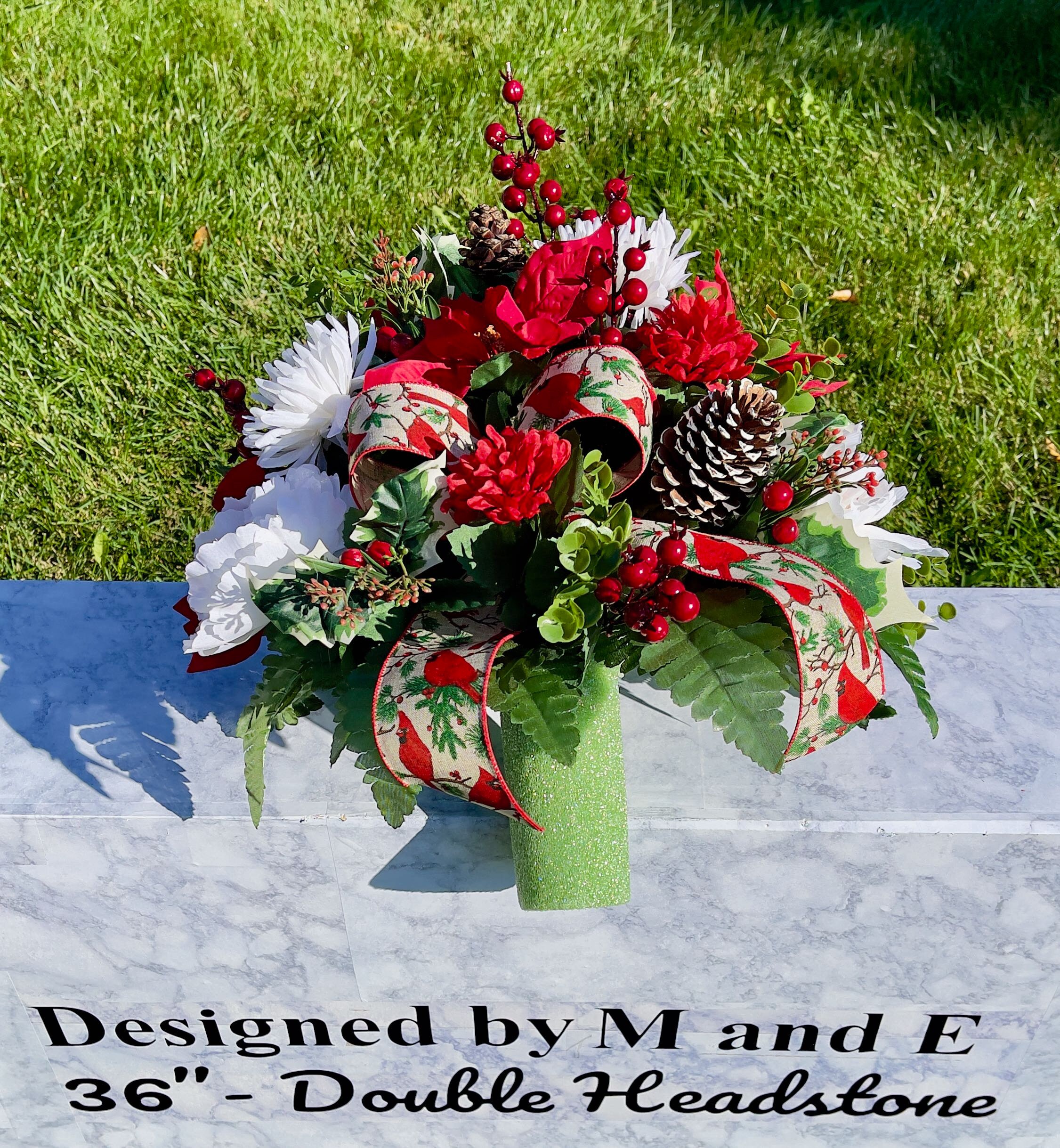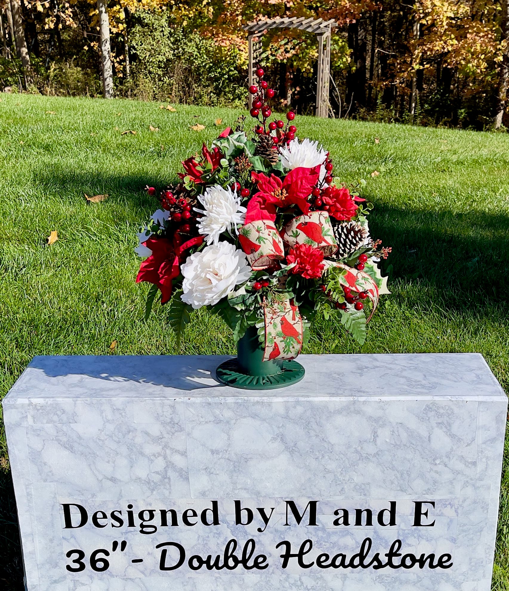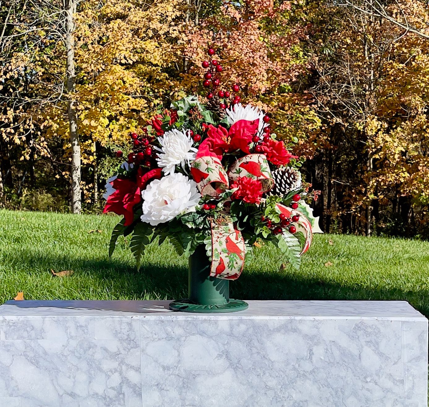Redbird Bow Christmas Cemetery Vase, Vase Arrangement, Memorial Cemetery Vase, Memorial Flowers, Cemetery Vase, Sympathy Flowers