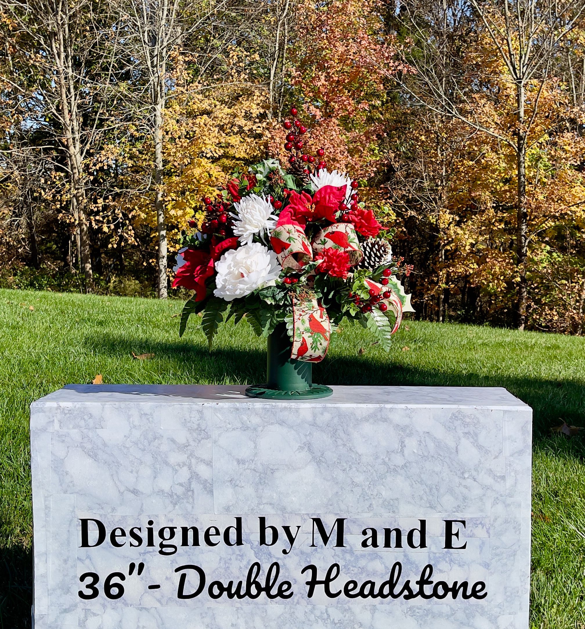 **Note** - The headstone pictured is 36" for reference only, please see photo on green measuring mat for arrangments exact dimensions.