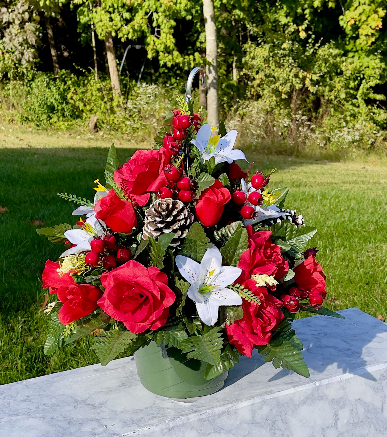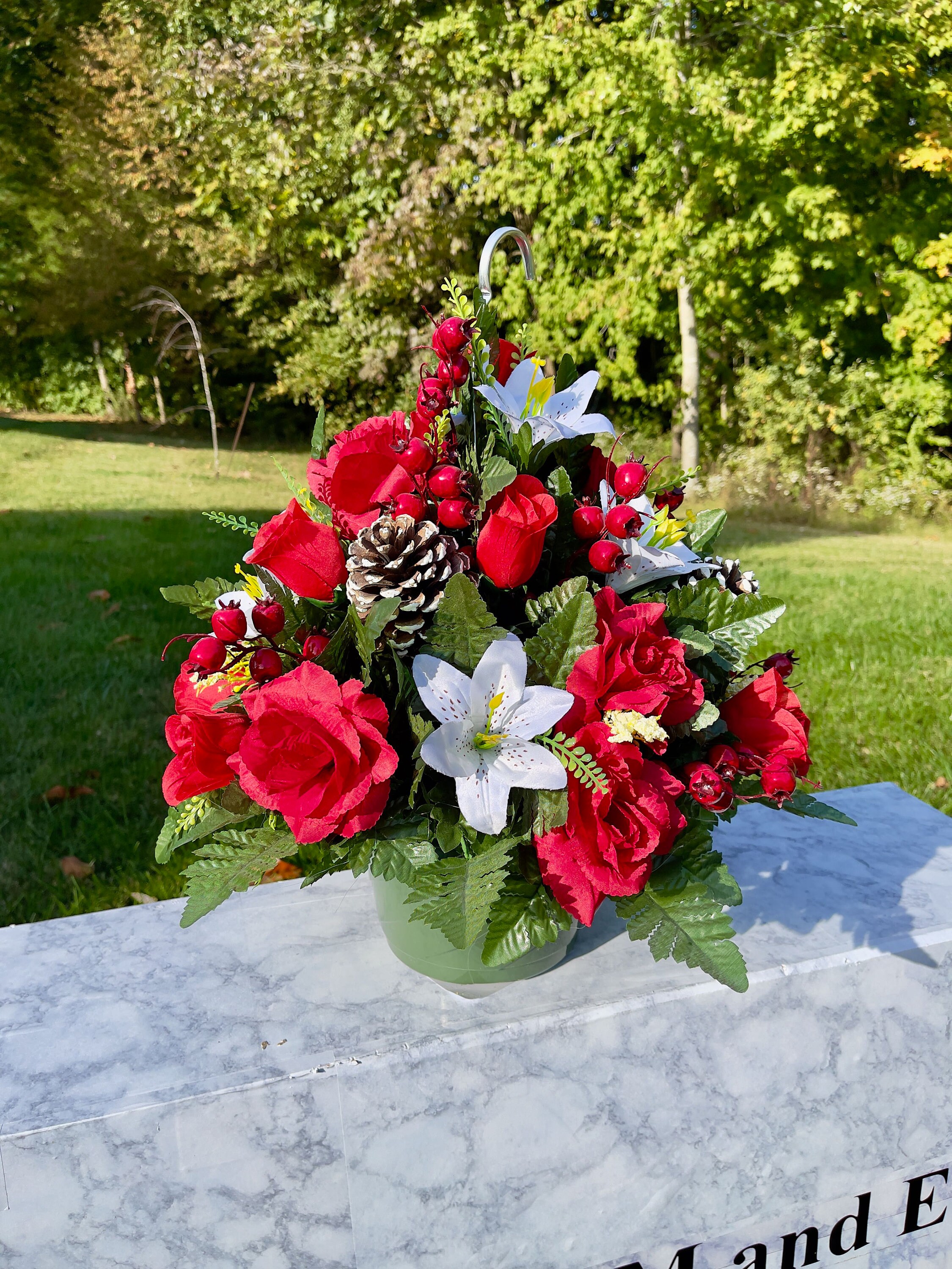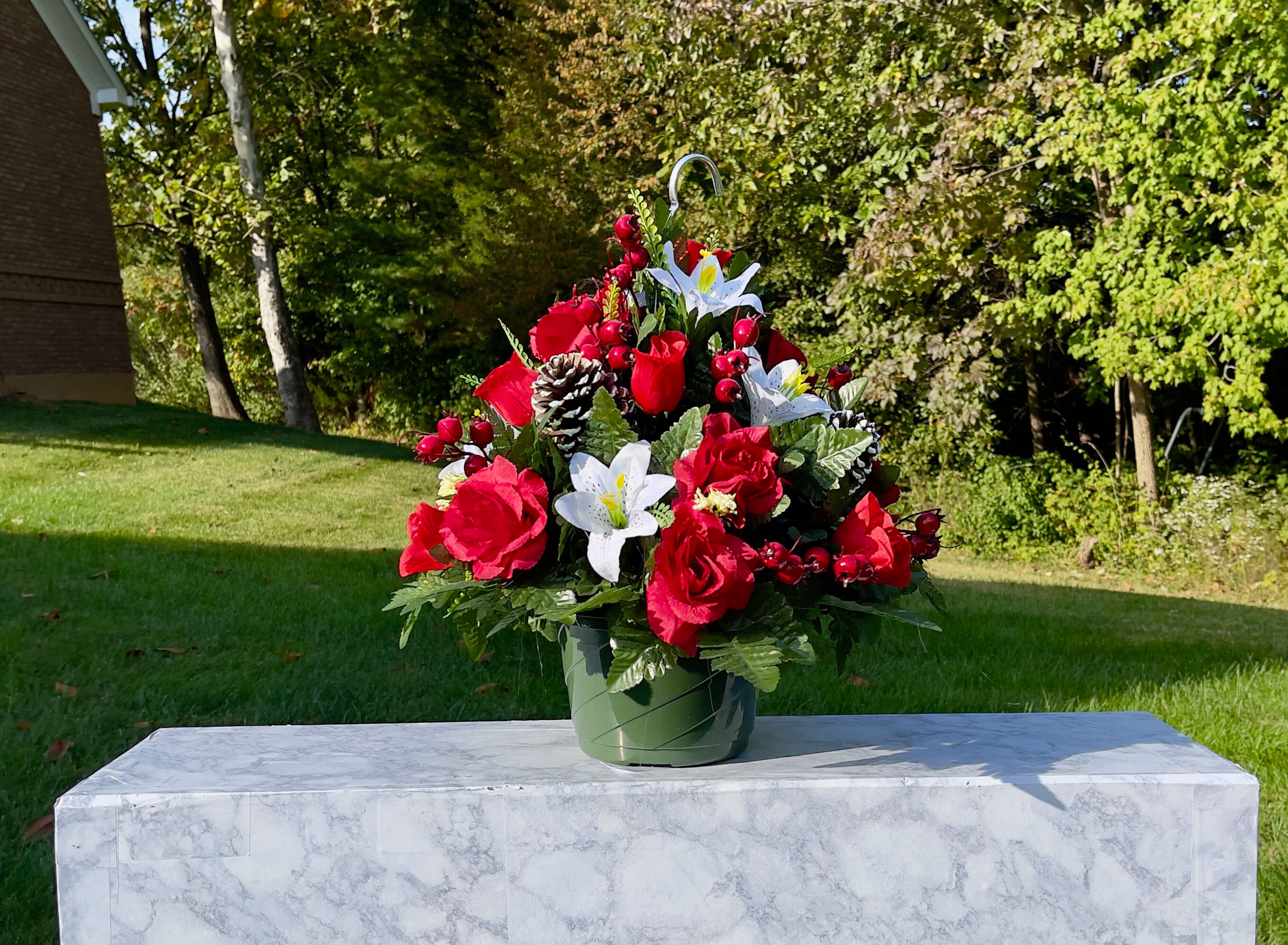 Hanging Basket for Shepherd Hook, Cemetery Hanging Basket, Memorial Flower, Grave Decoration, Hanging Cemetery Arrangement