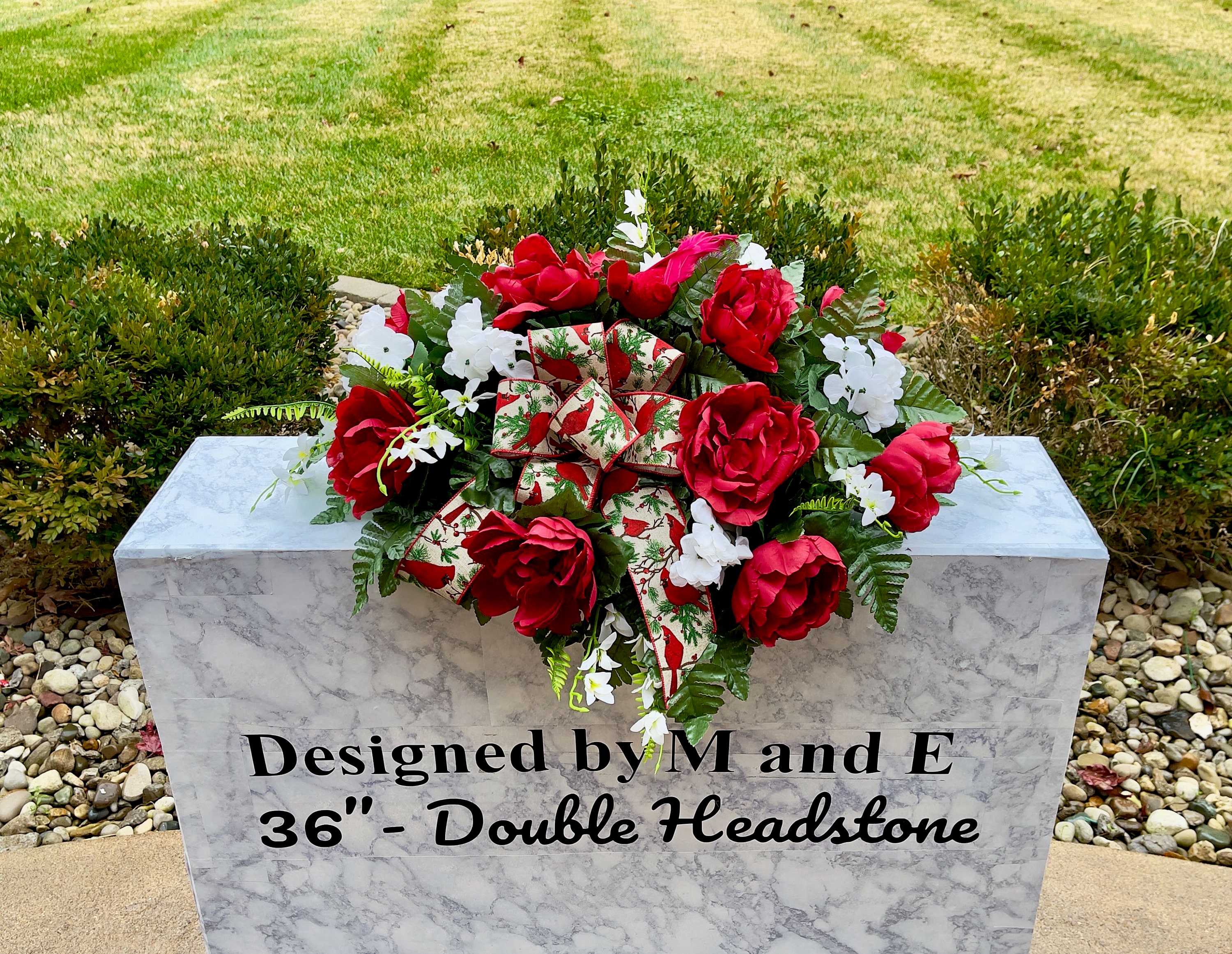 - Saddle arrangement photos are shown on either a 36” or 24” headstone only as examples.