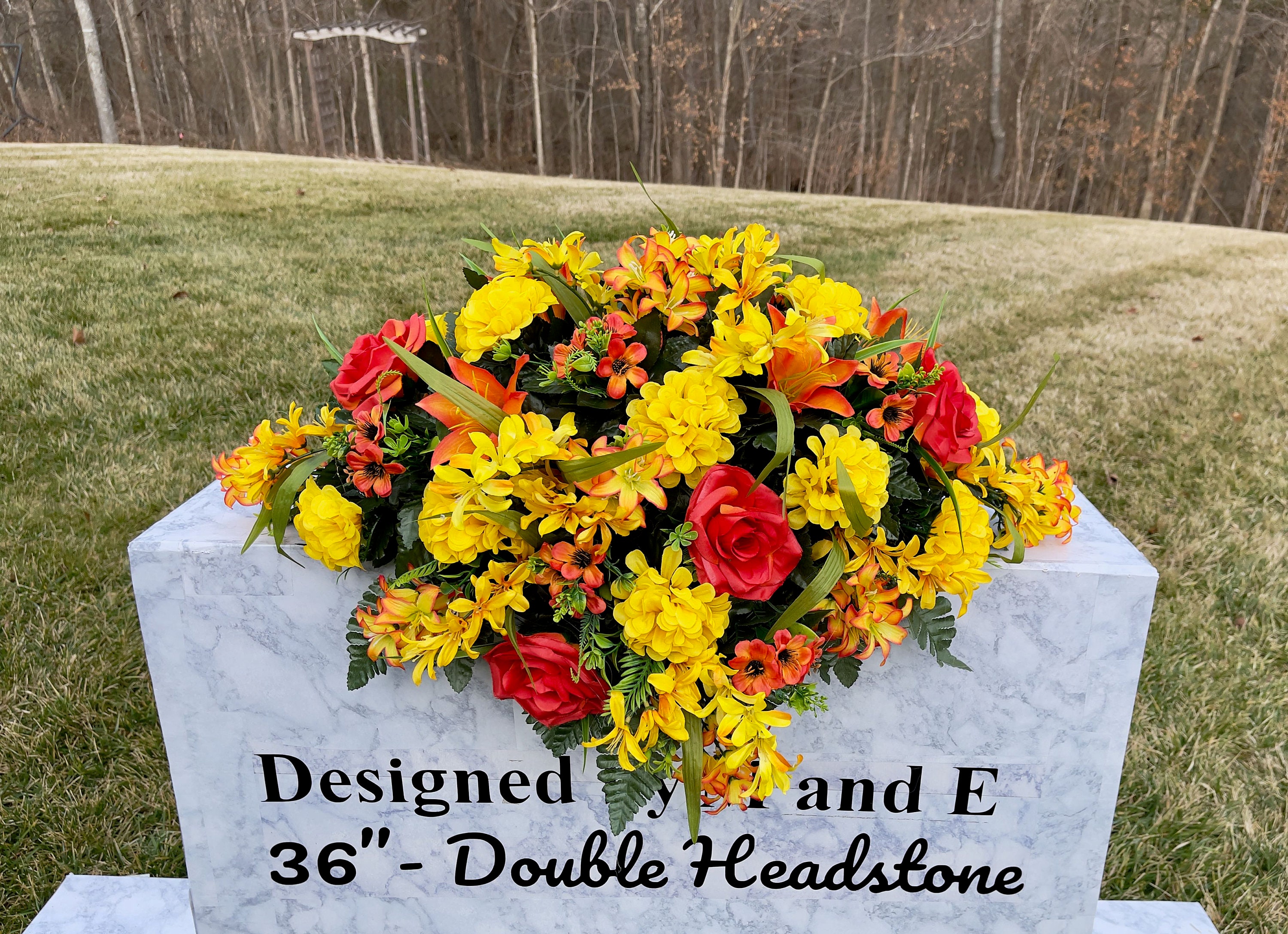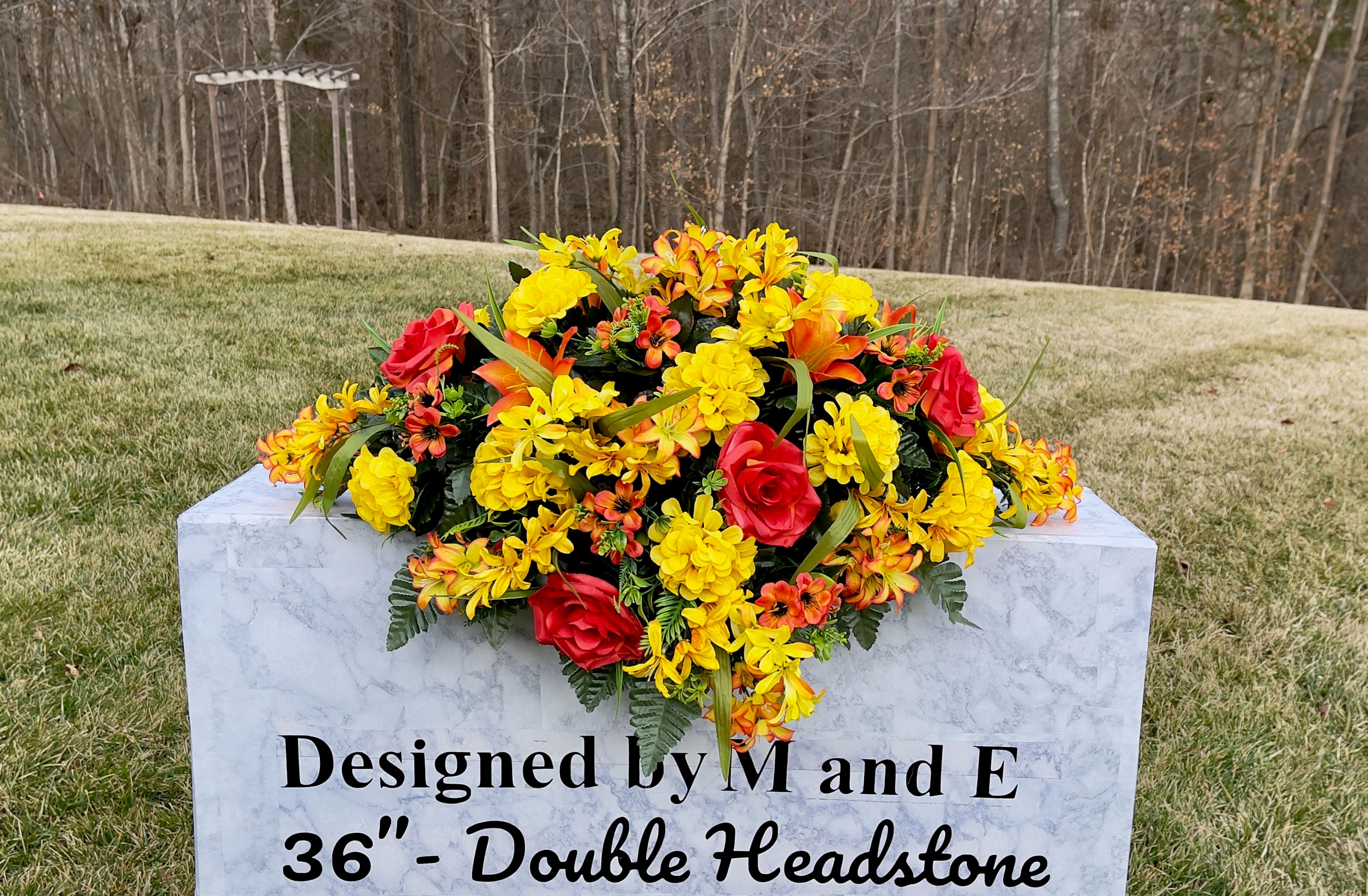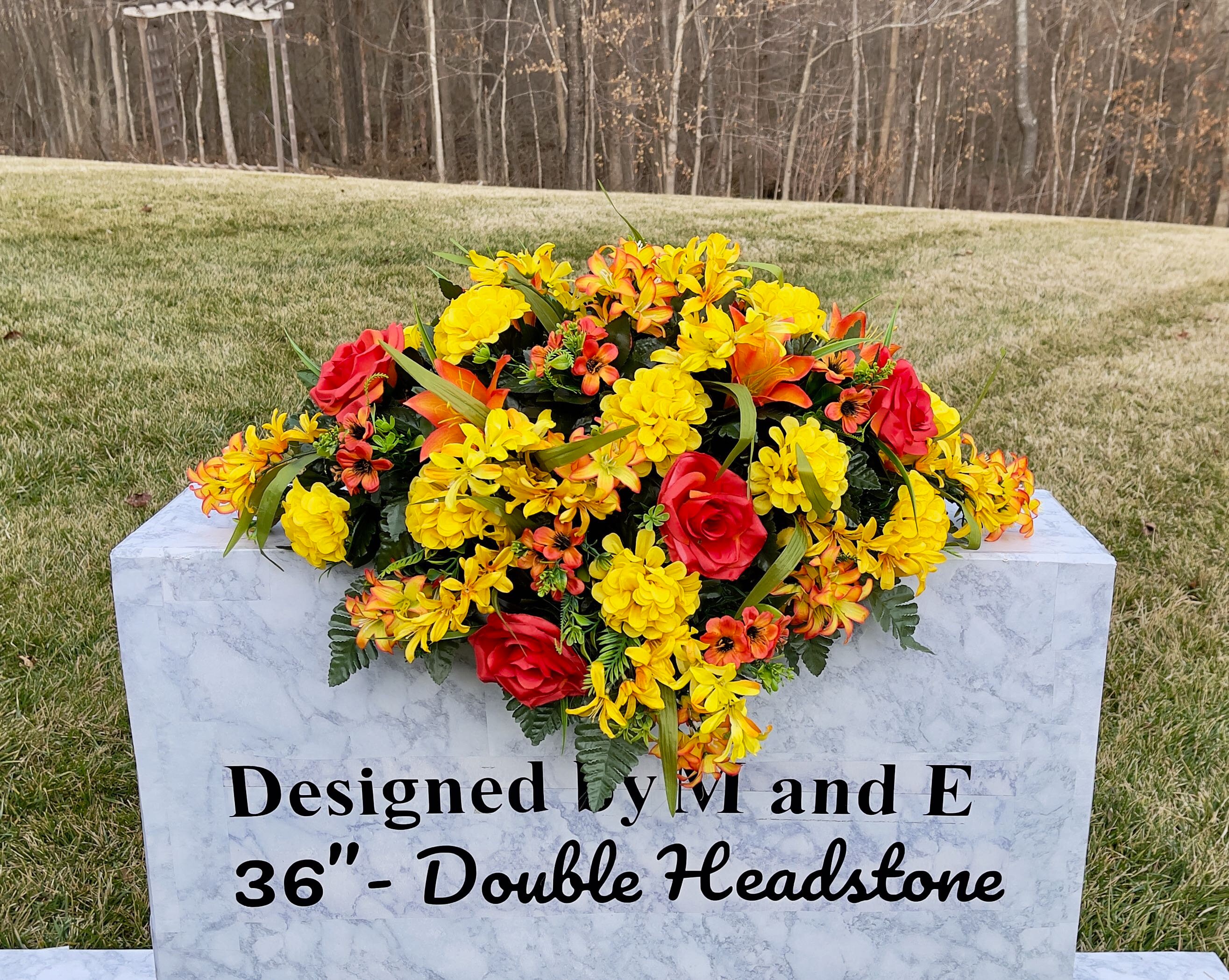 Orange and Yellows Quality Silk Flowers, Cemetery Saddle, Cemetery Flowers, Headstone Saddle, Cemetery Arrangement, Memorial Day Flower