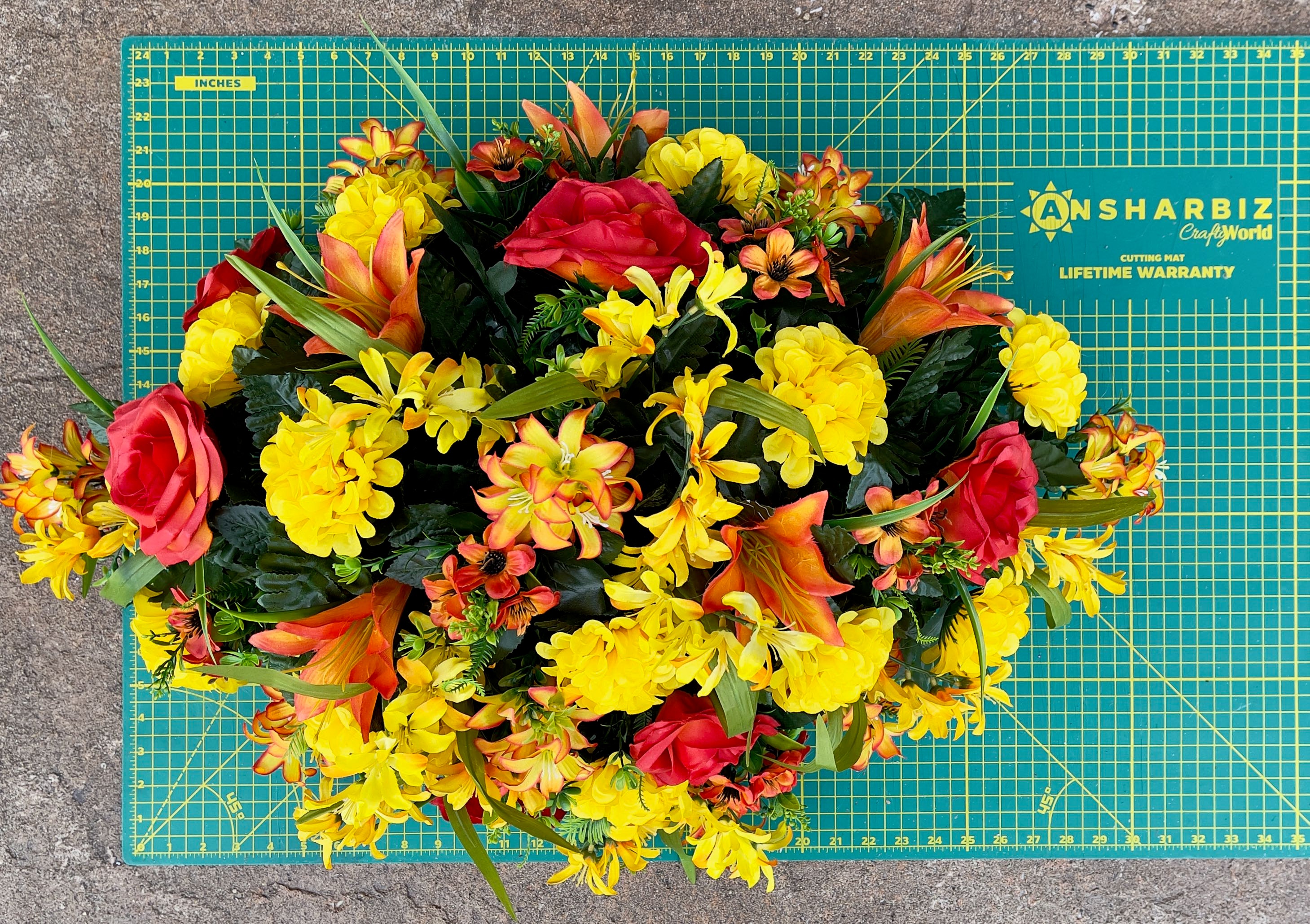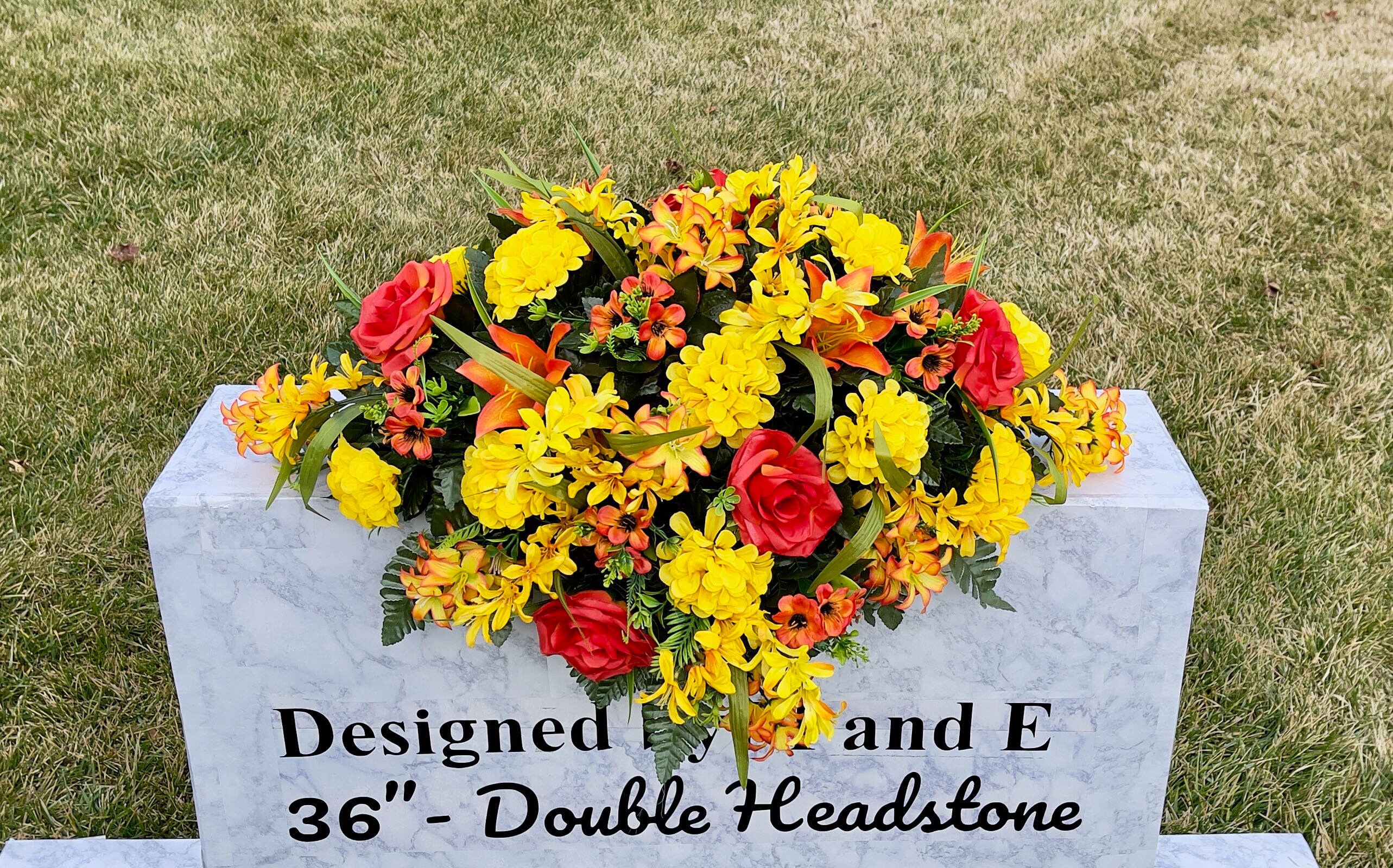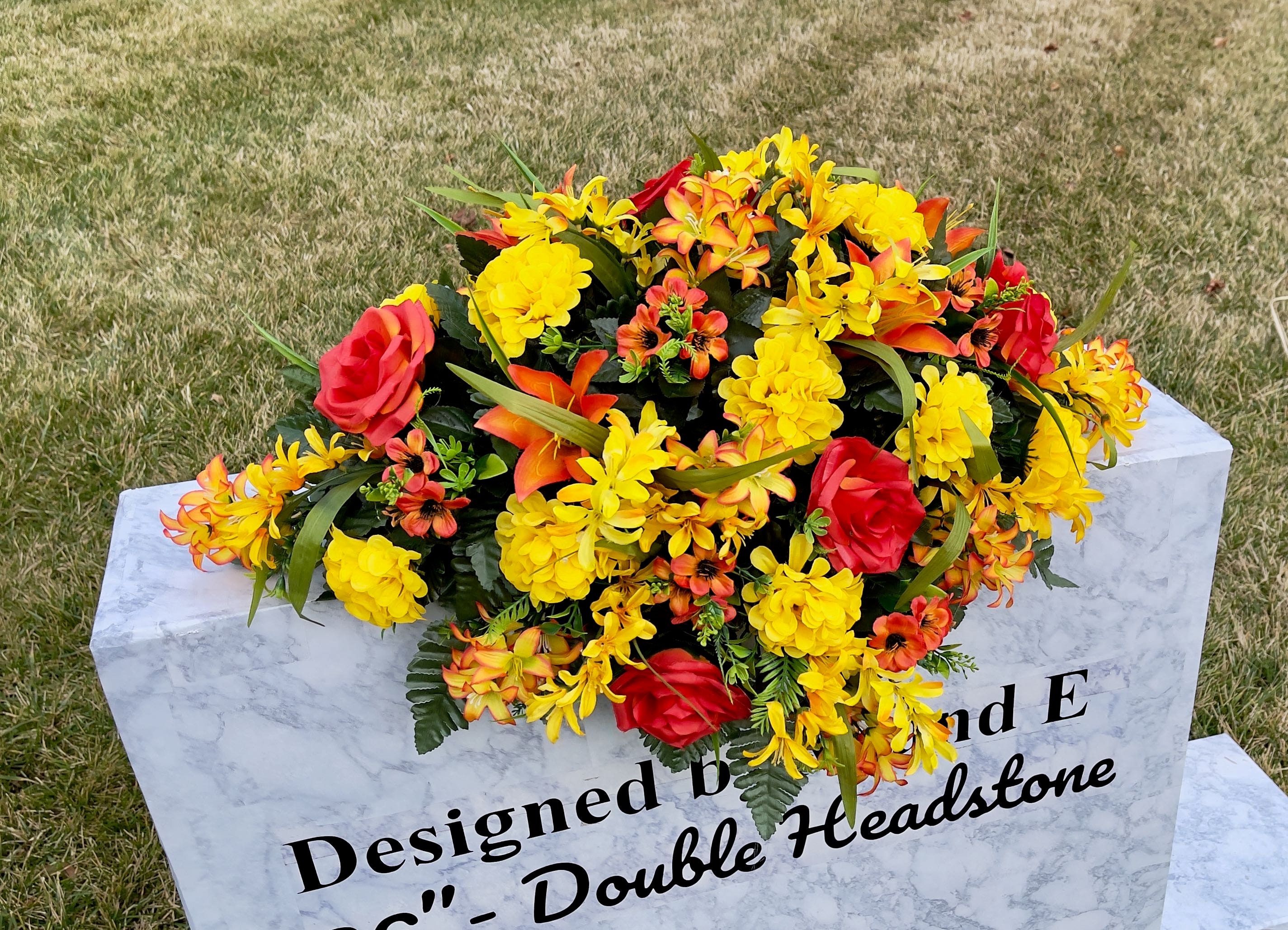Orange and Yellows Quality Silk Flowers, Cemetery Saddle, Cemetery Flowers, Headstone Saddle, Cemetery Arrangement, Memorial Day Flower