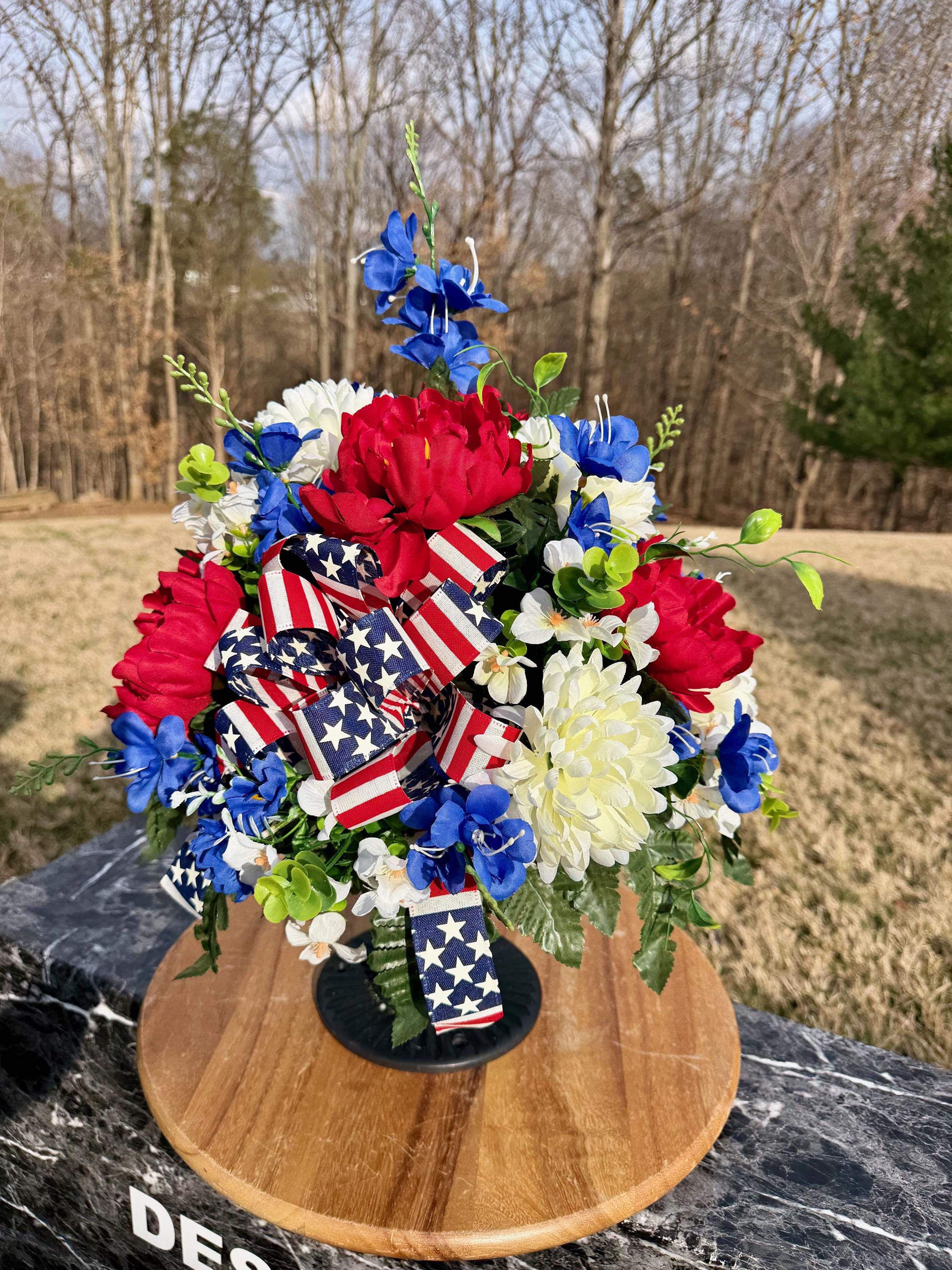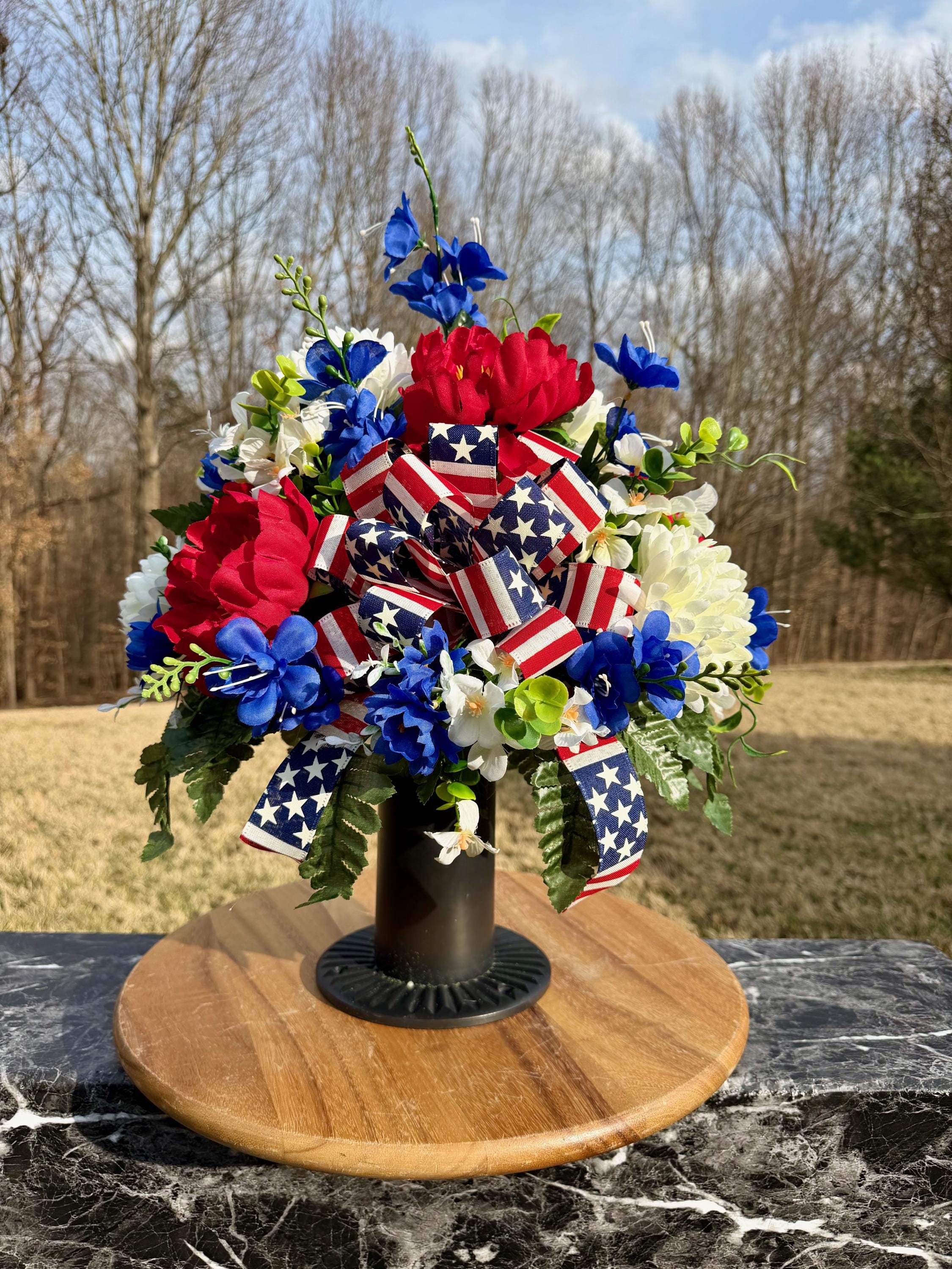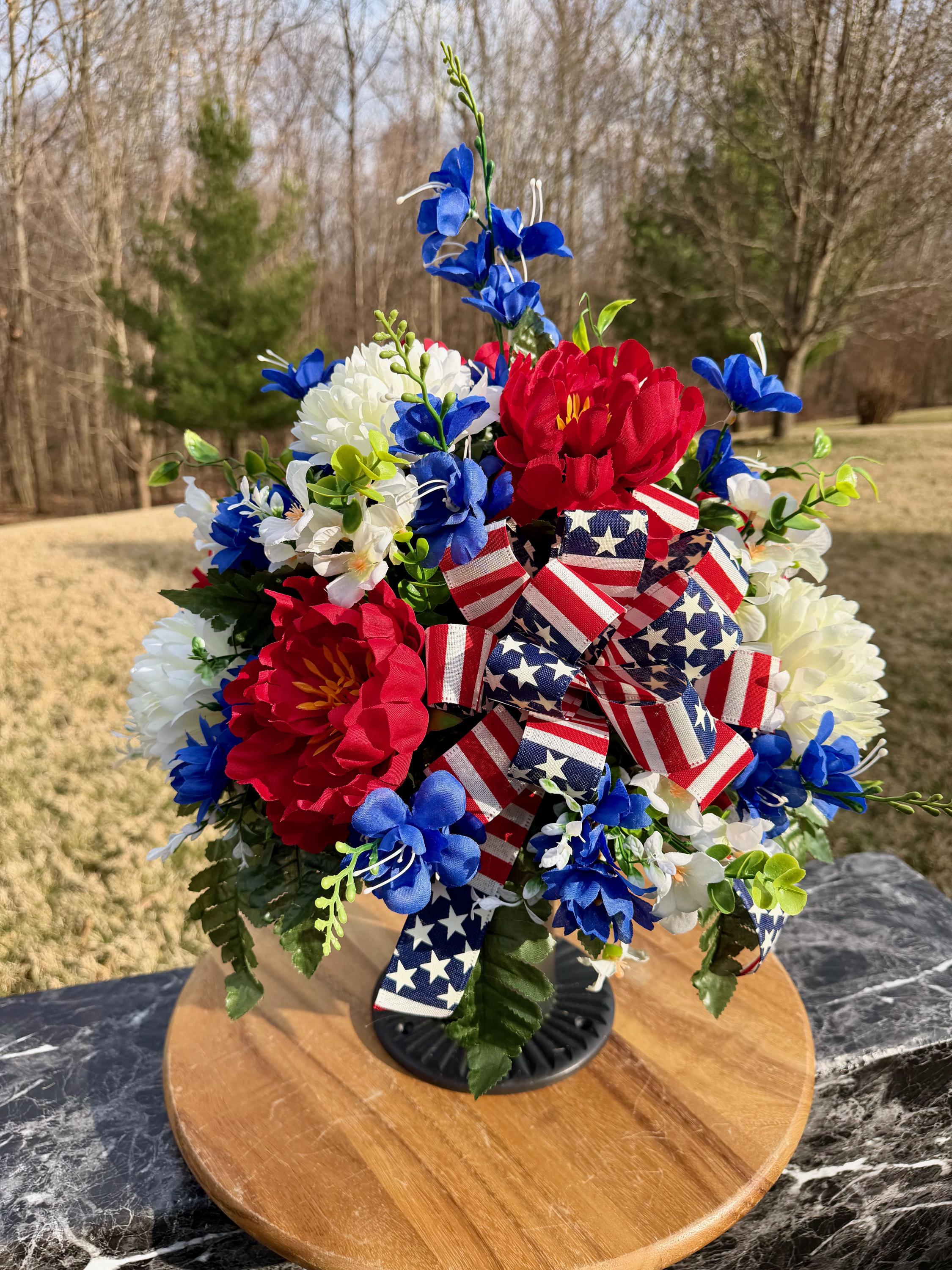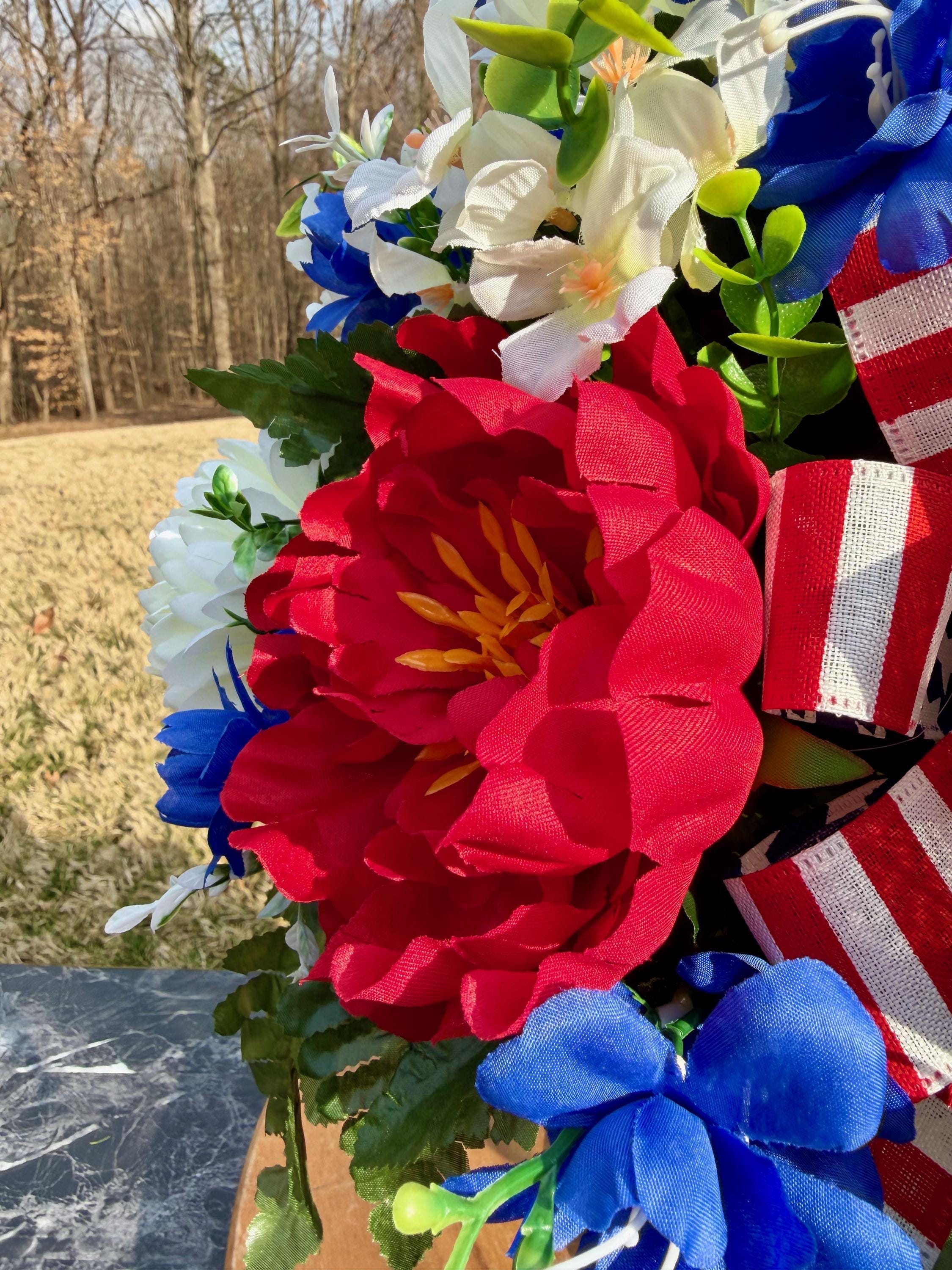Patriotic Red-White-Blue Cemetery Vase, Vase Arrangement, Memorial Cemetery Vase, Memorial Vase, Spring Cemetery Vase, Sympathy Flower Vase