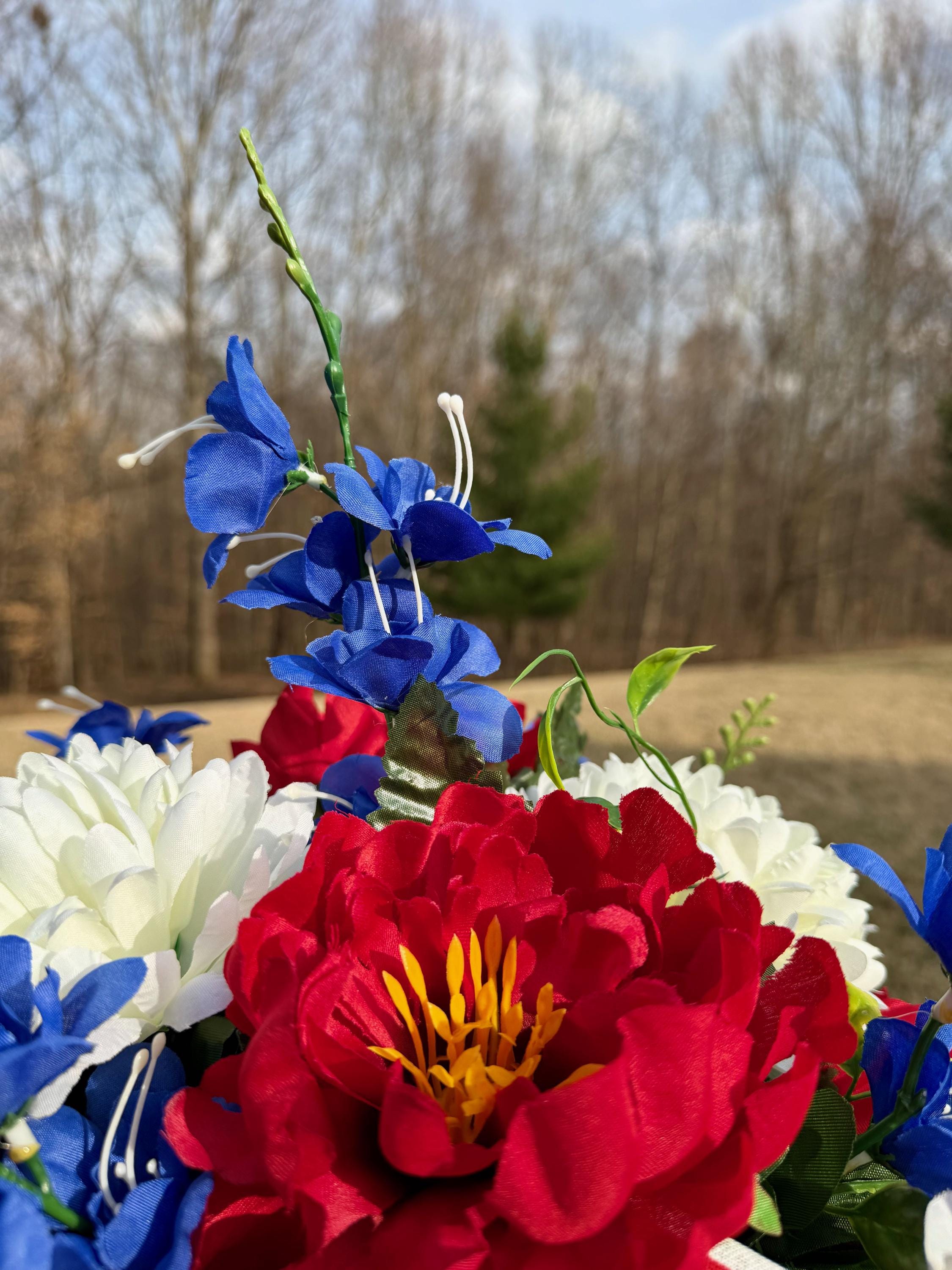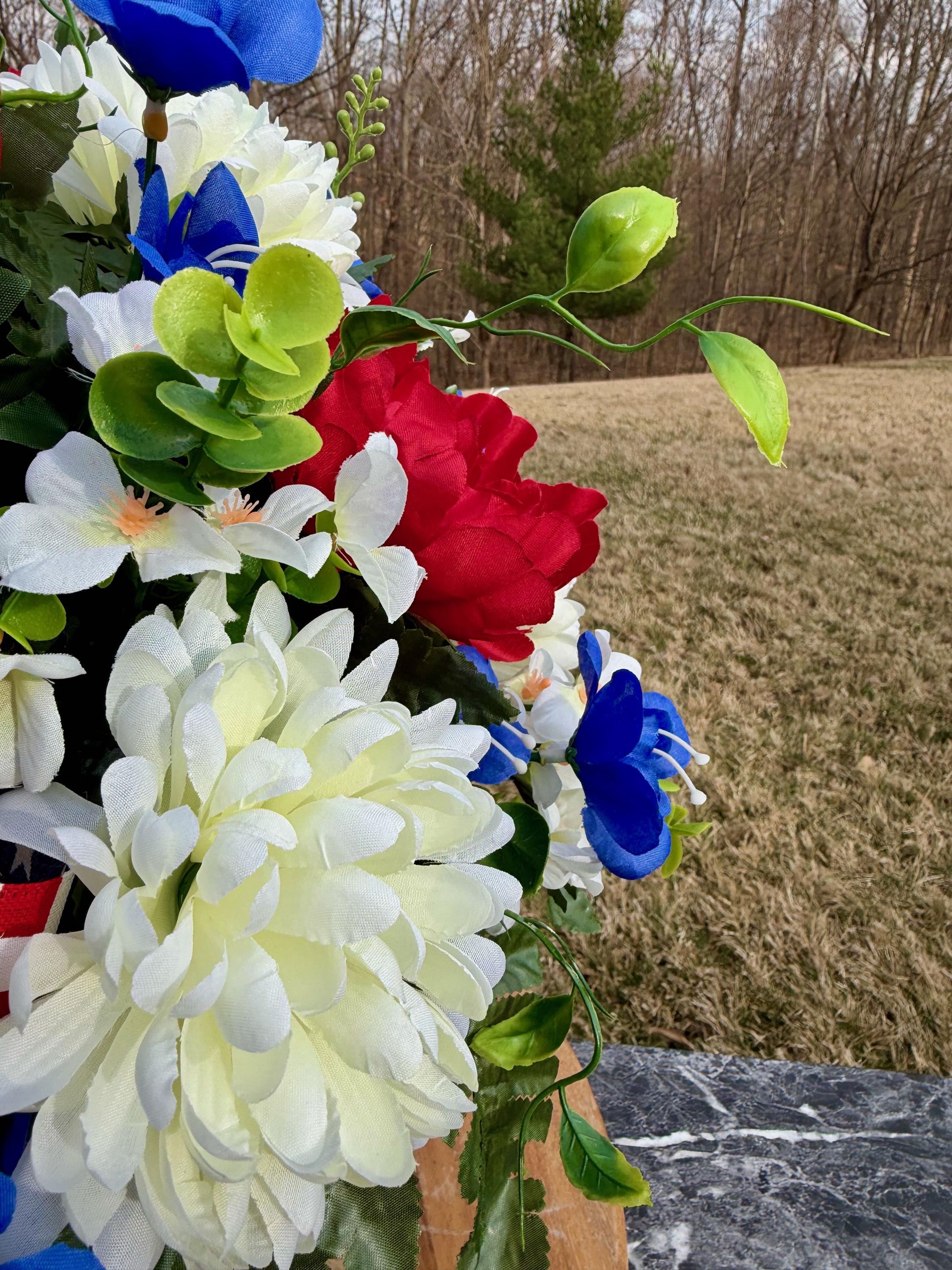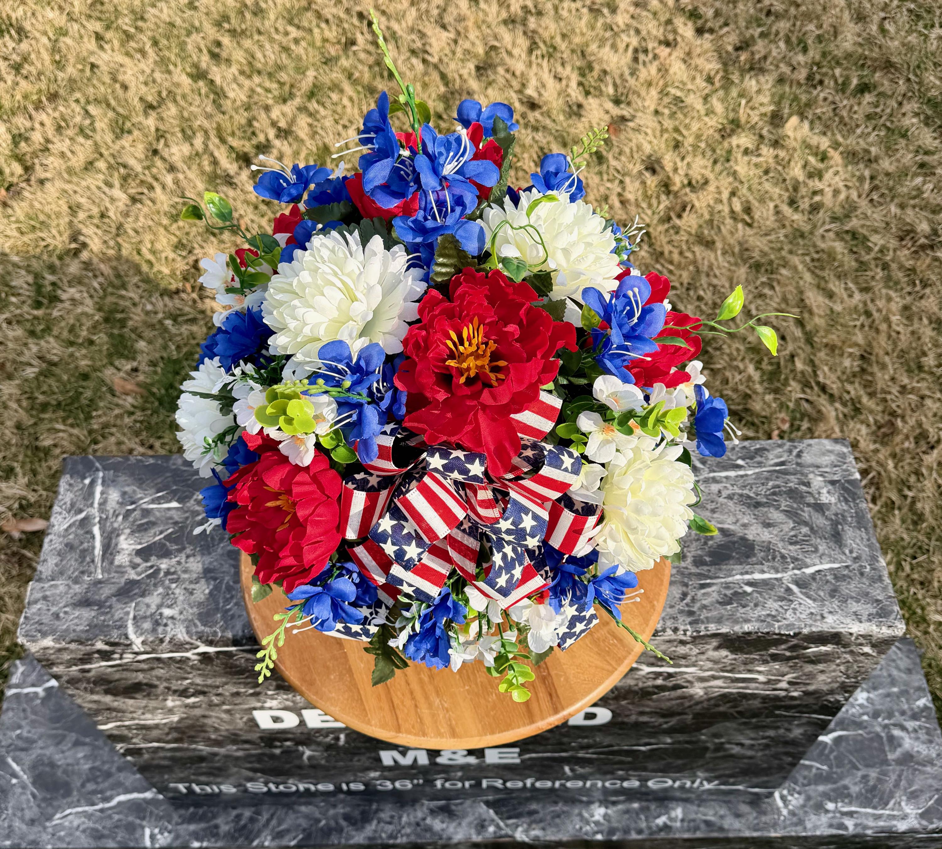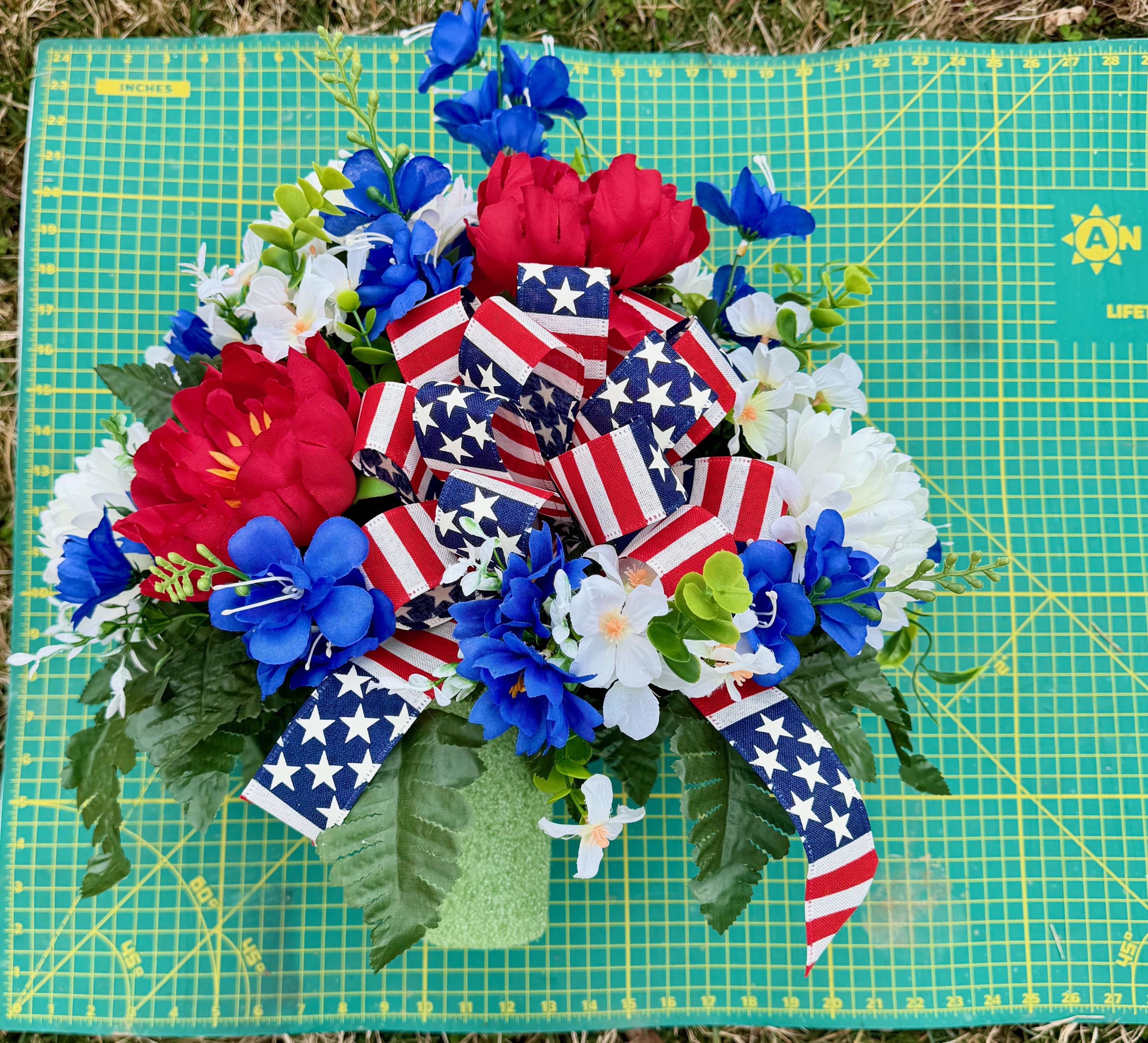 Patriotic Red-White-Blue Cemetery Vase, Vase Arrangement, Memorial Cemetery Vase, Memorial Vase, Spring Cemetery Vase, Sympathy Flower Vase