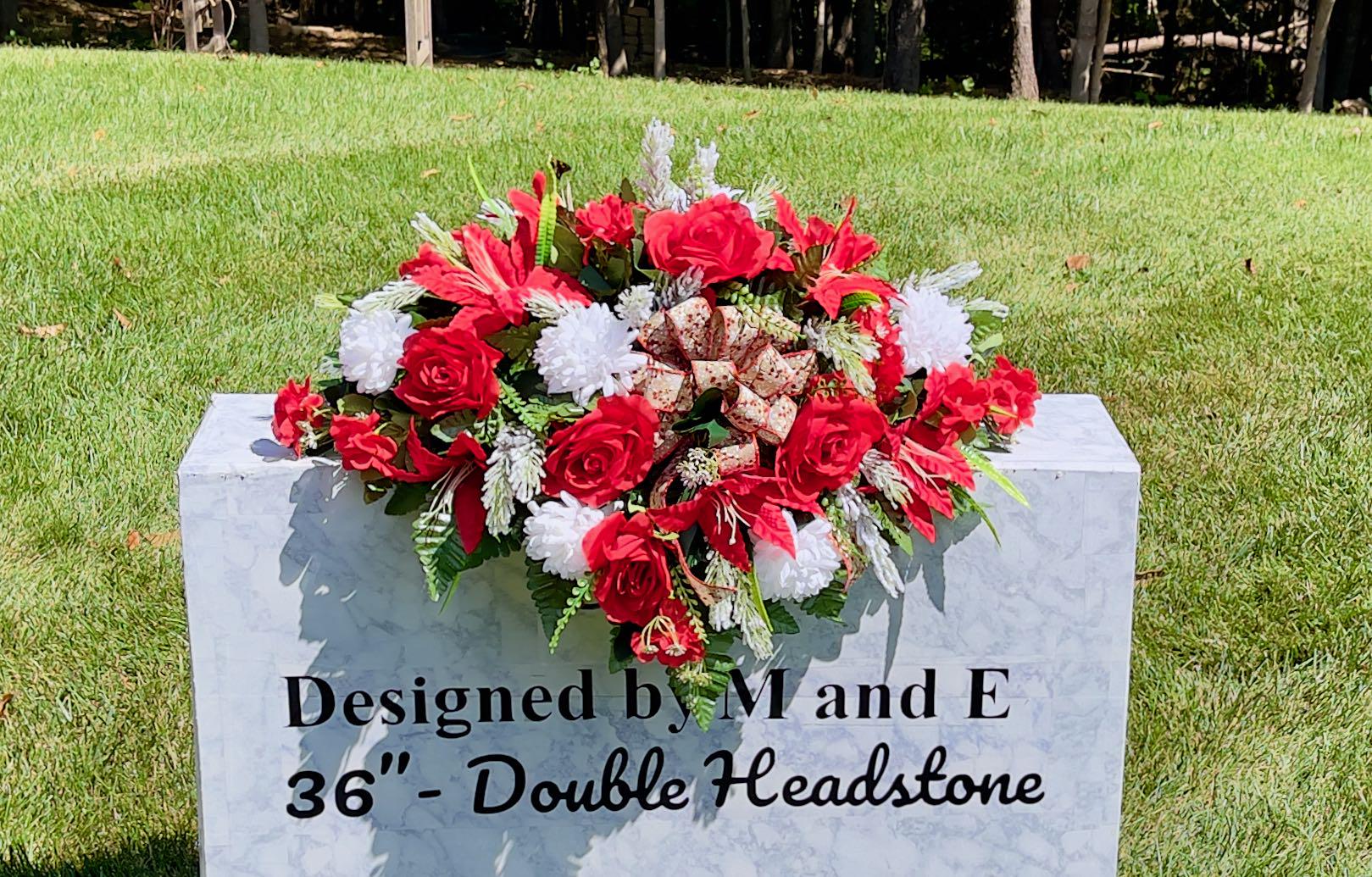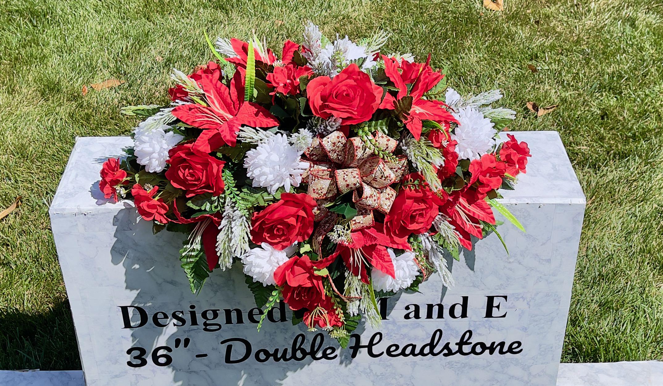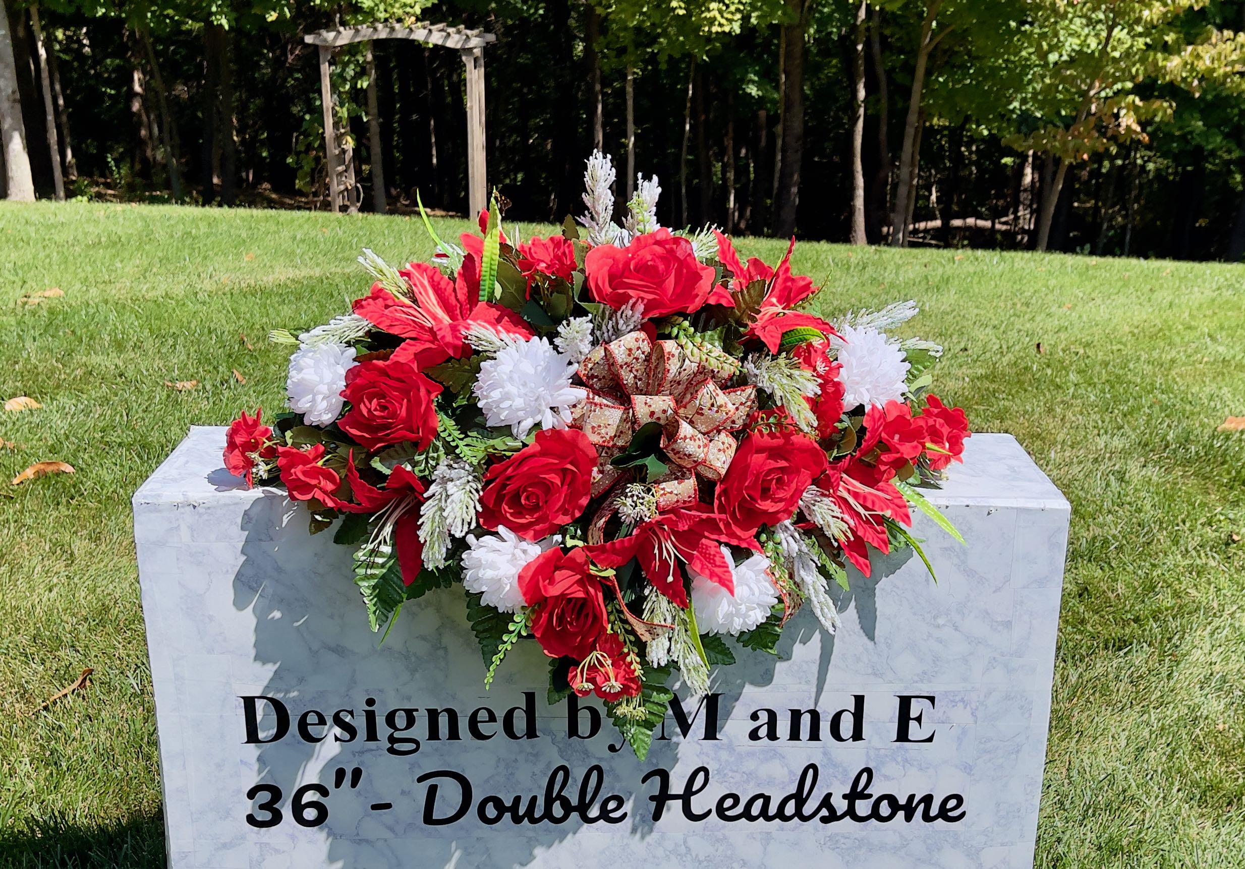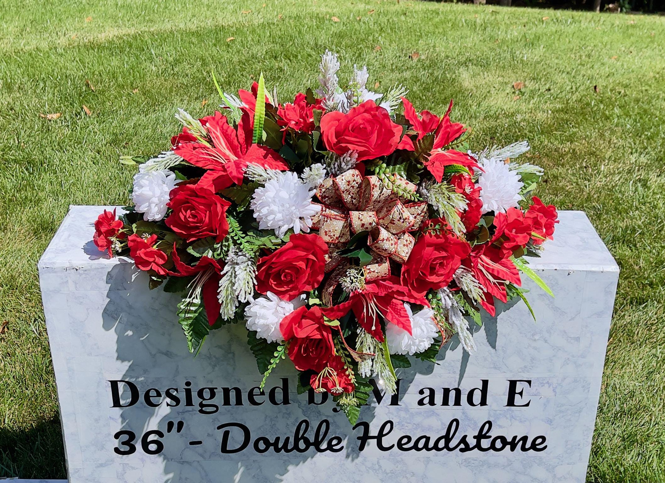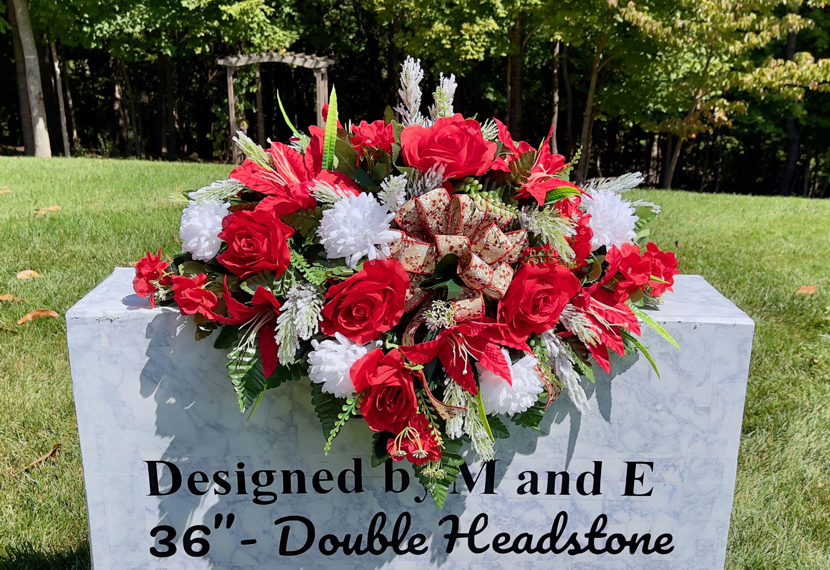 Beautiful Red-White Winter Cemetery Saddle, Christmas Grave, Christmas Cemetery Flowers, Christmas Headstone Arrangement, Memorial Flowers