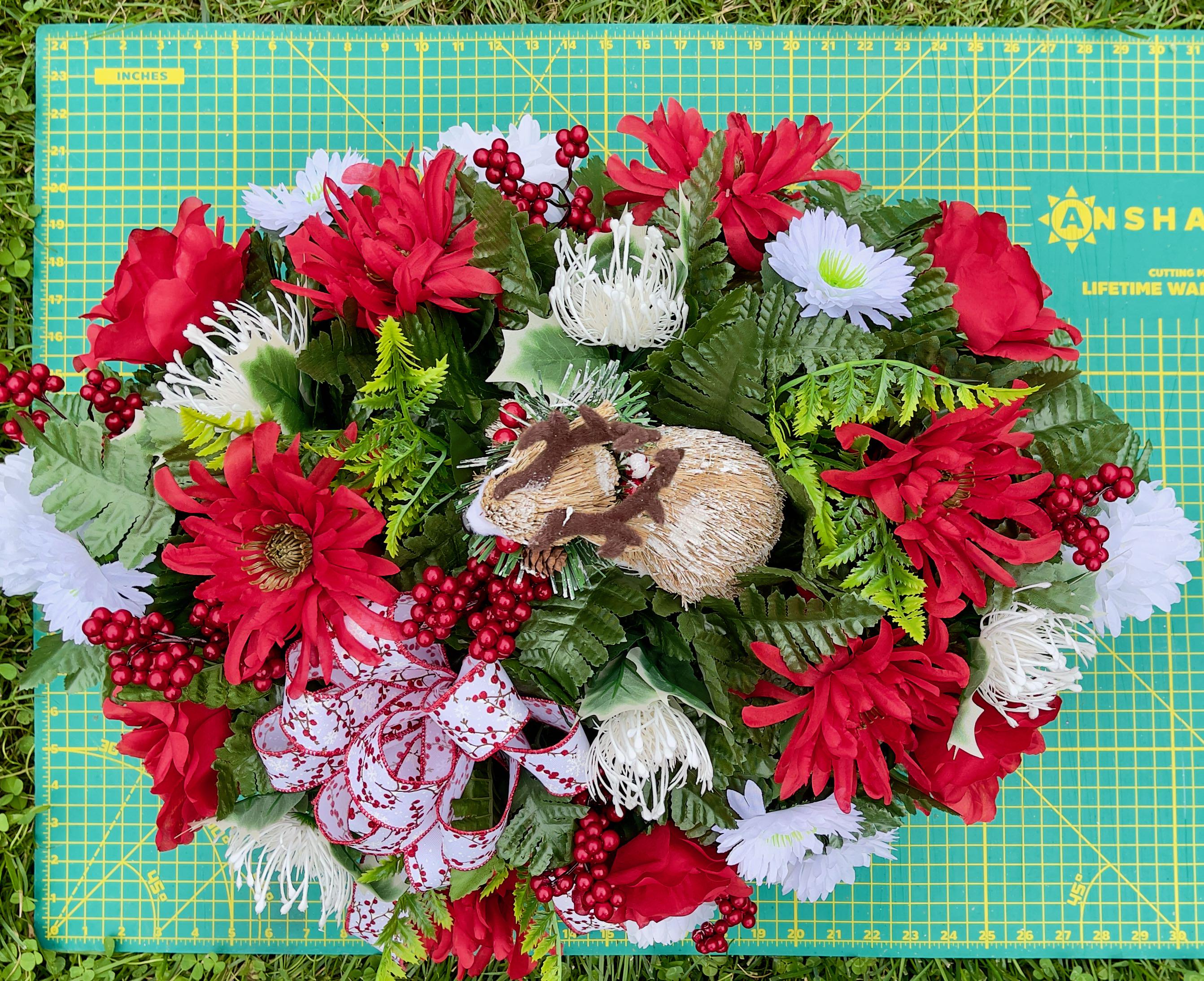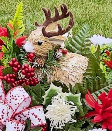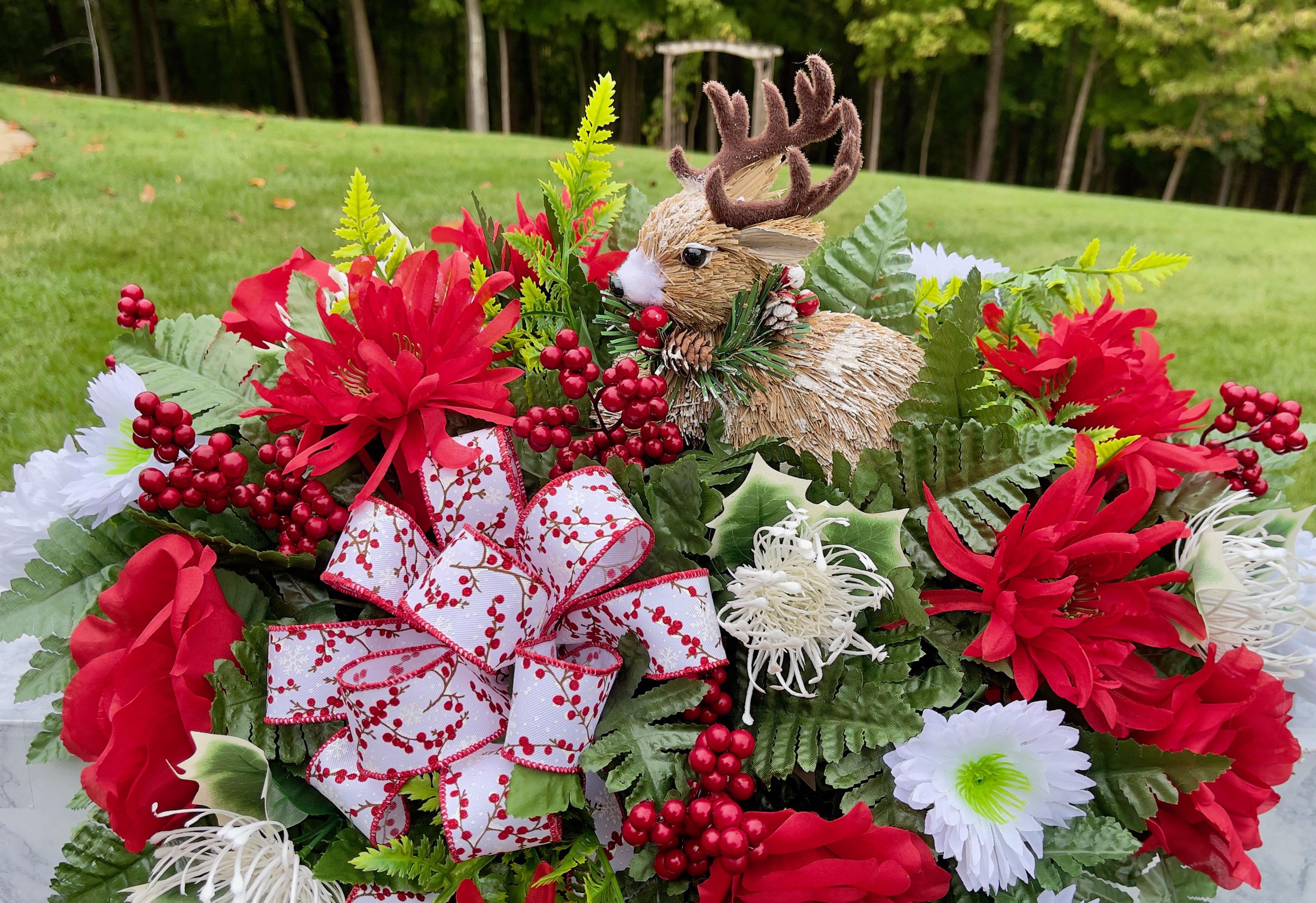 Reindeer with Pinecones and Berries Christmas Cemetery Saddle Christmas, Christmas Cemetery Flowers, Christmas Arrangement, Memorial Flowers