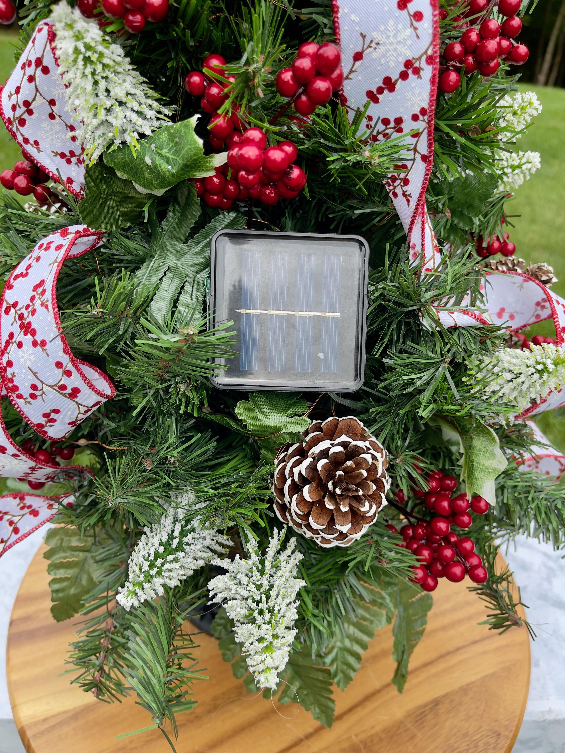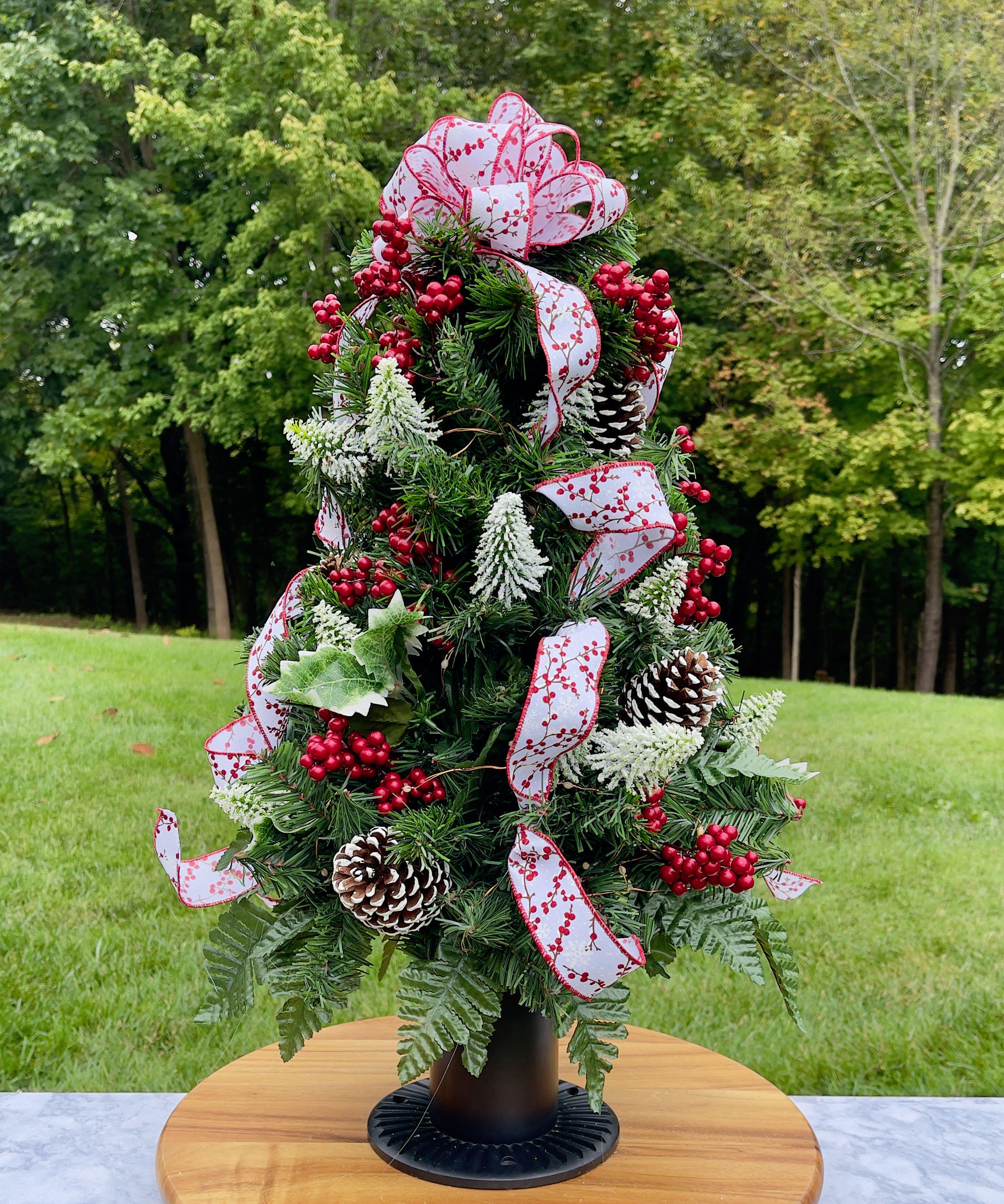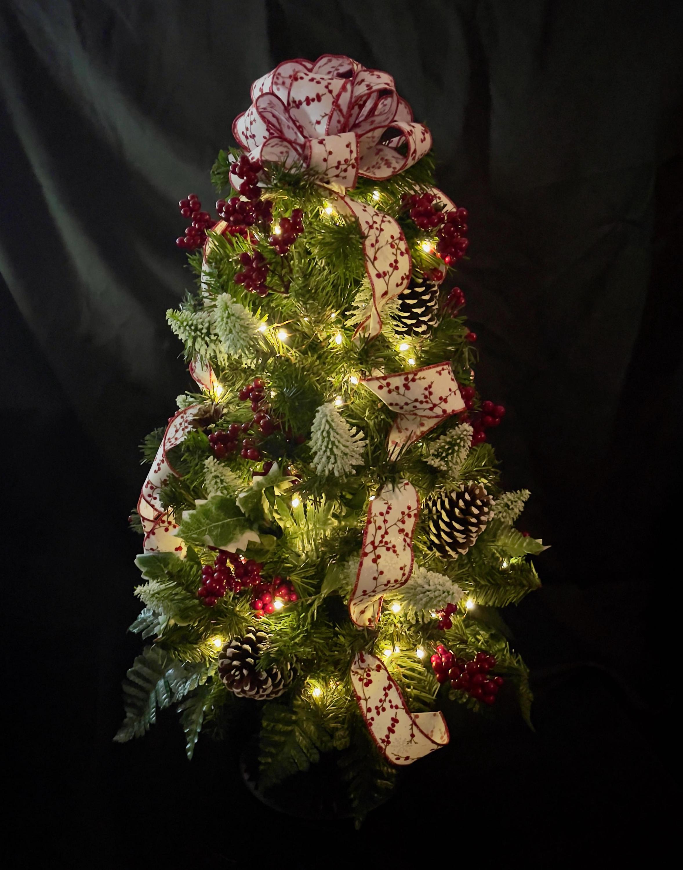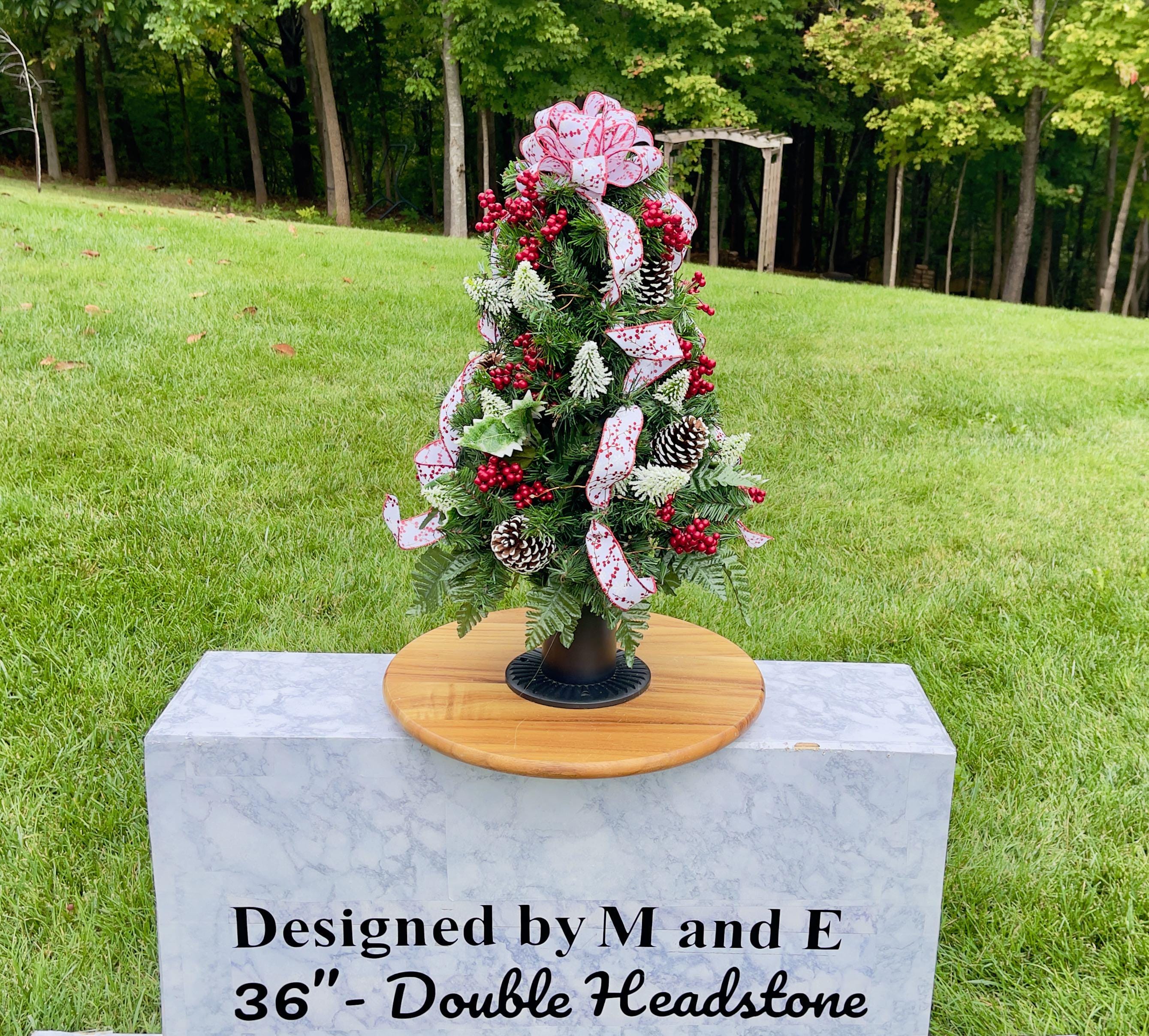 Lights, Pinecones, Berries, Ribbon and Bows 24" Mini Christmas Tree, Miniature Tree, Christmas Tree for Cemetery, Christmas Cemetery Vase