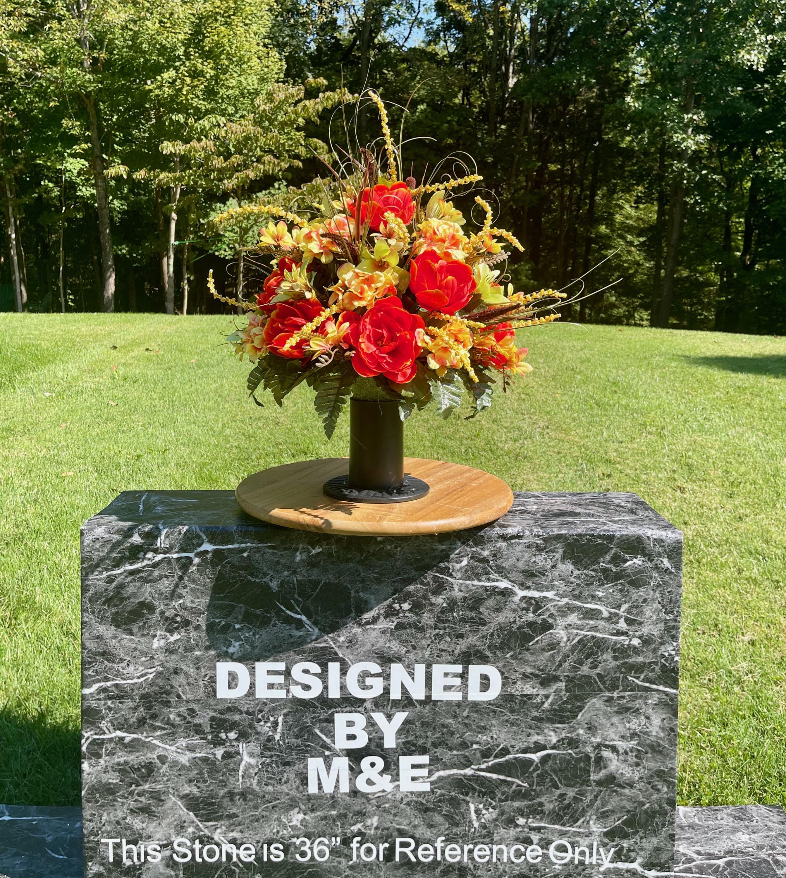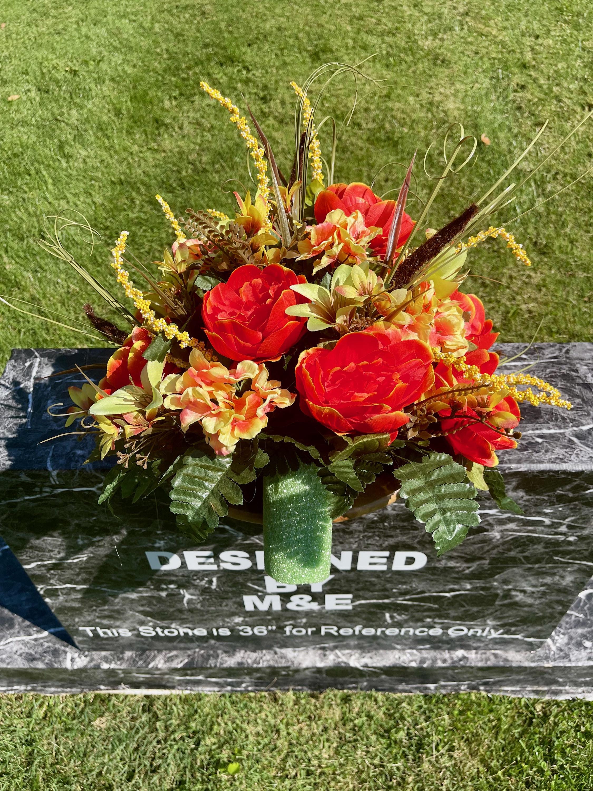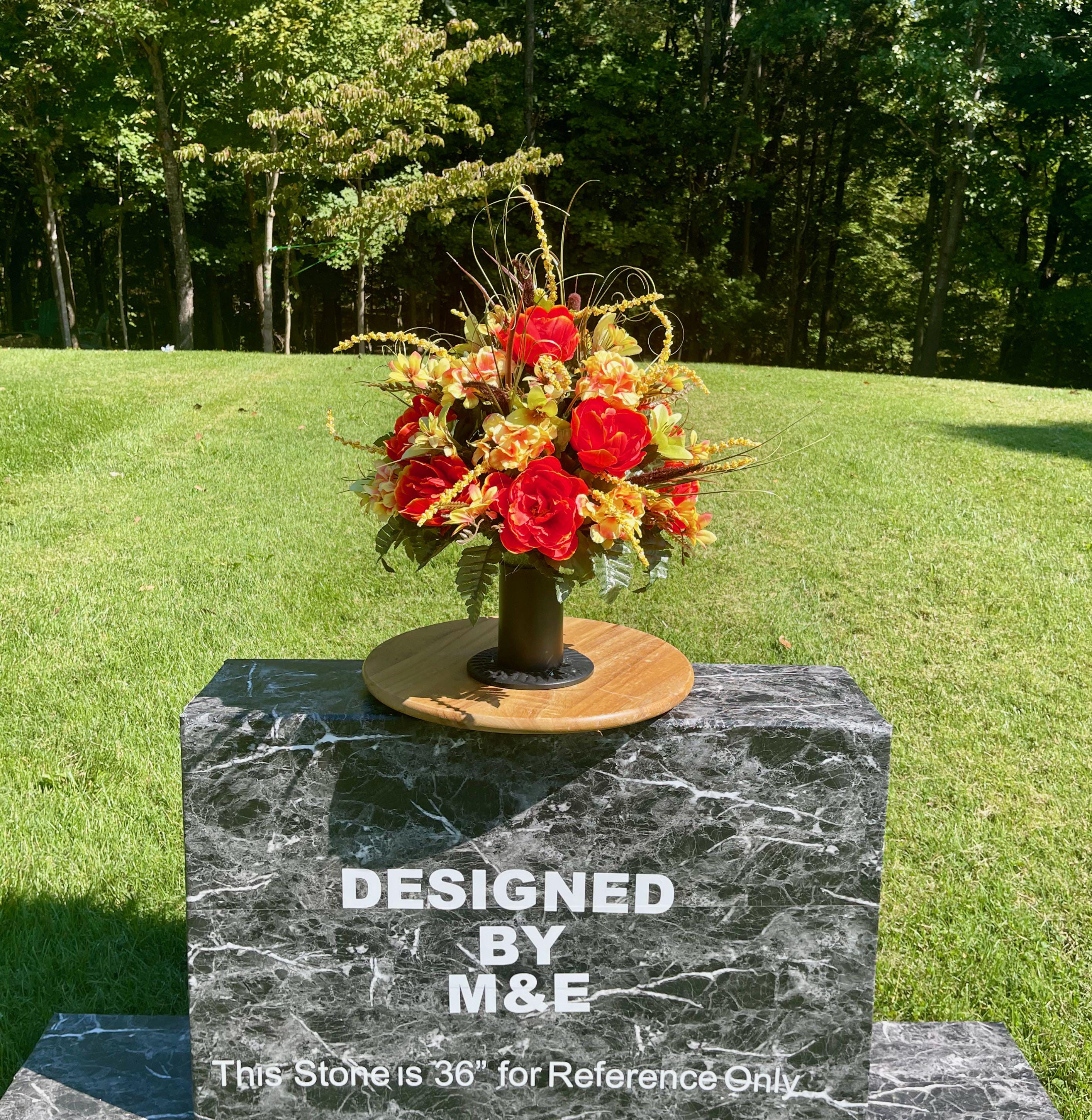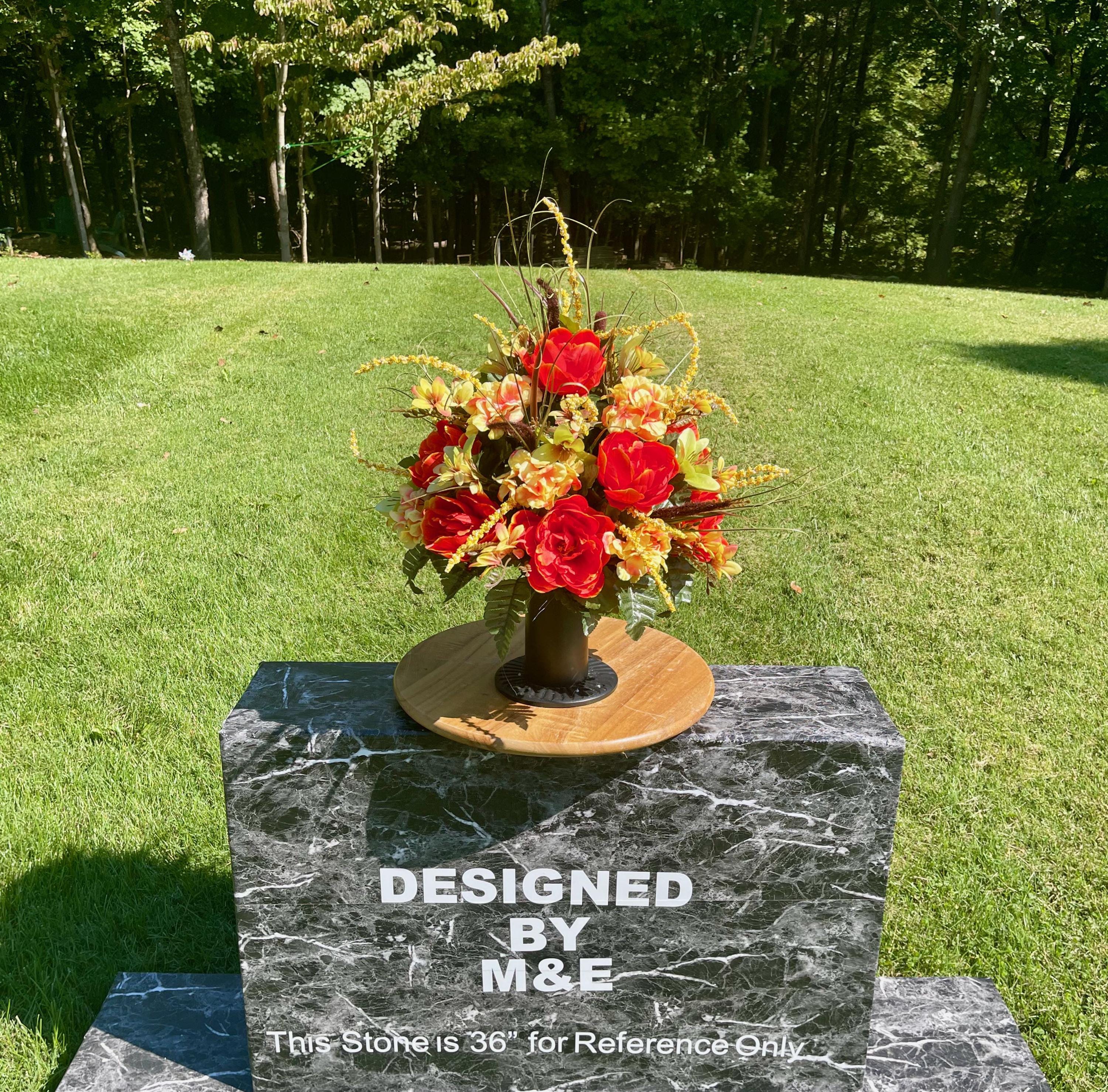 **Note** - The headstone pictured is 36" for reference only, please see photo on green measuring mat for arrangments exact dimensions.