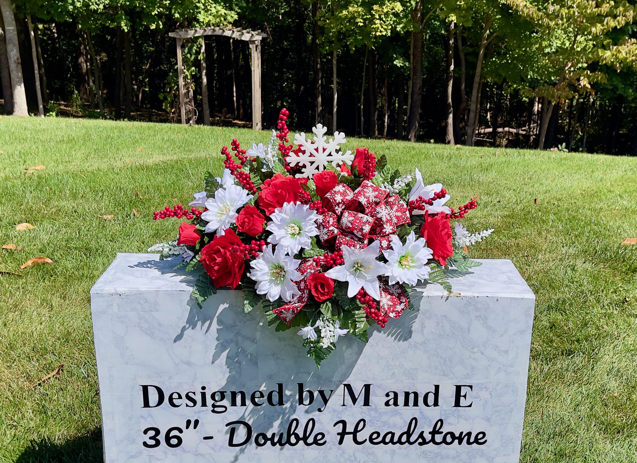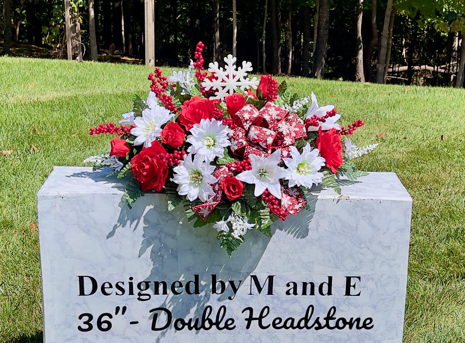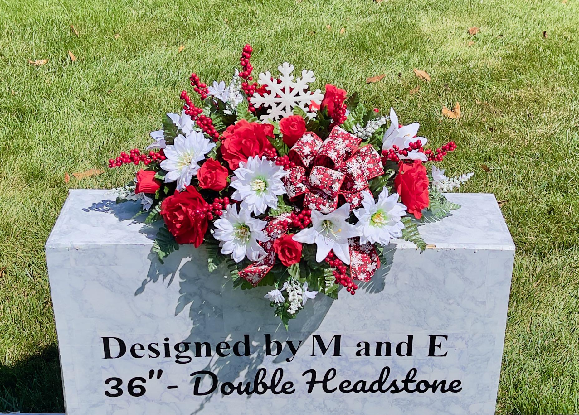Large White Snowflake Winter Cemetery Saddle, Christmas Grave, Christmas Cemetery Flowers, Christmas Headstone Arrangement, Memorial Flowers
