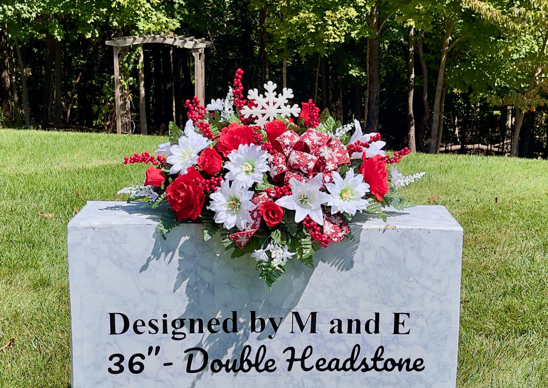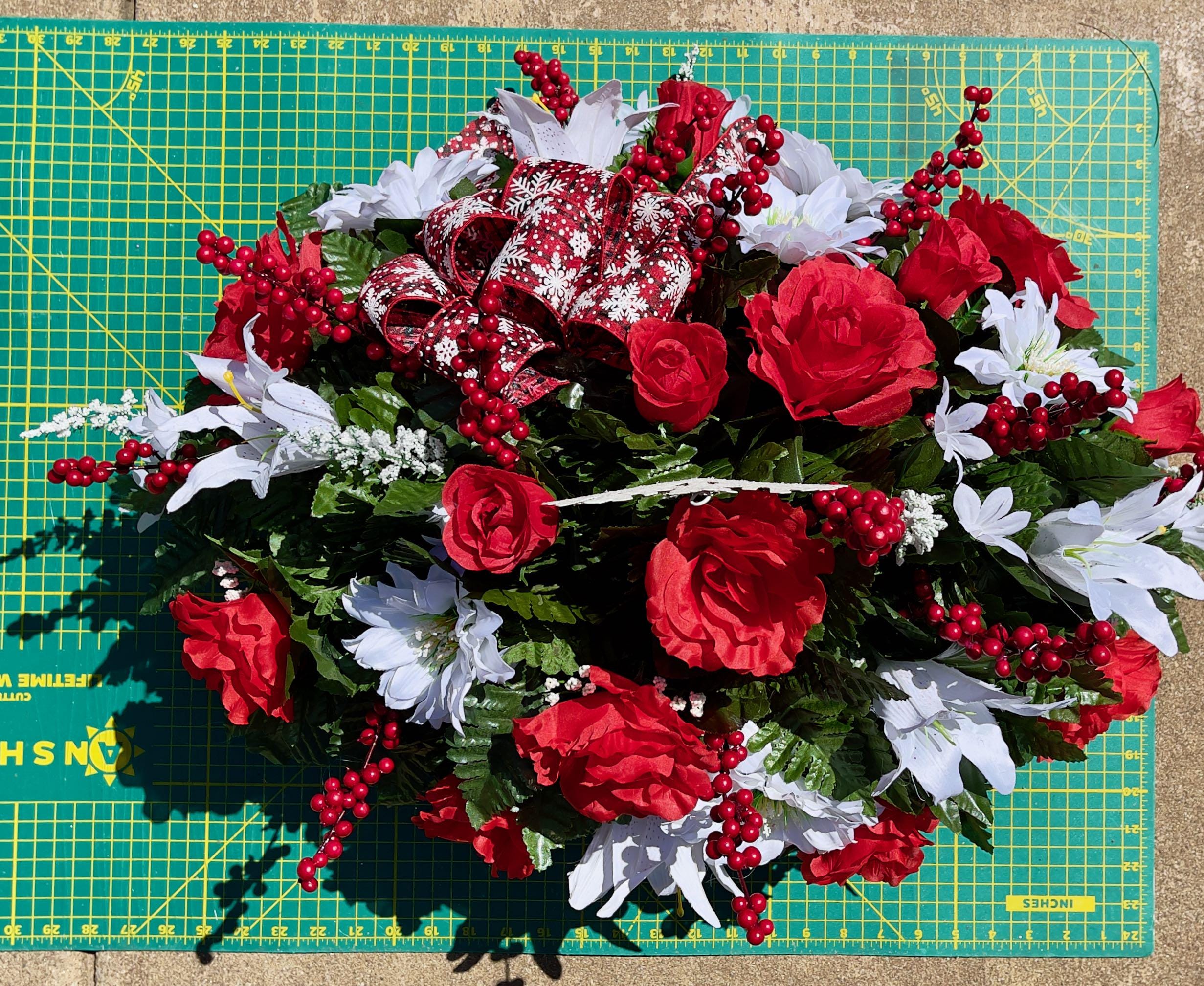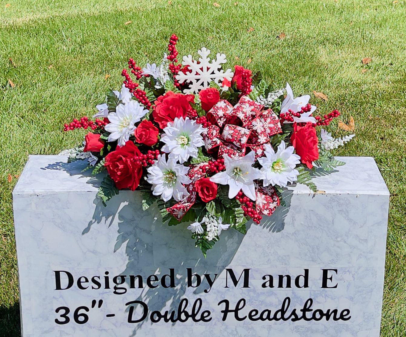 Large White Snowflake Winter Cemetery Saddle, Christmas Grave, Christmas Cemetery Flowers, Christmas Headstone Arrangement, Memorial Flowers