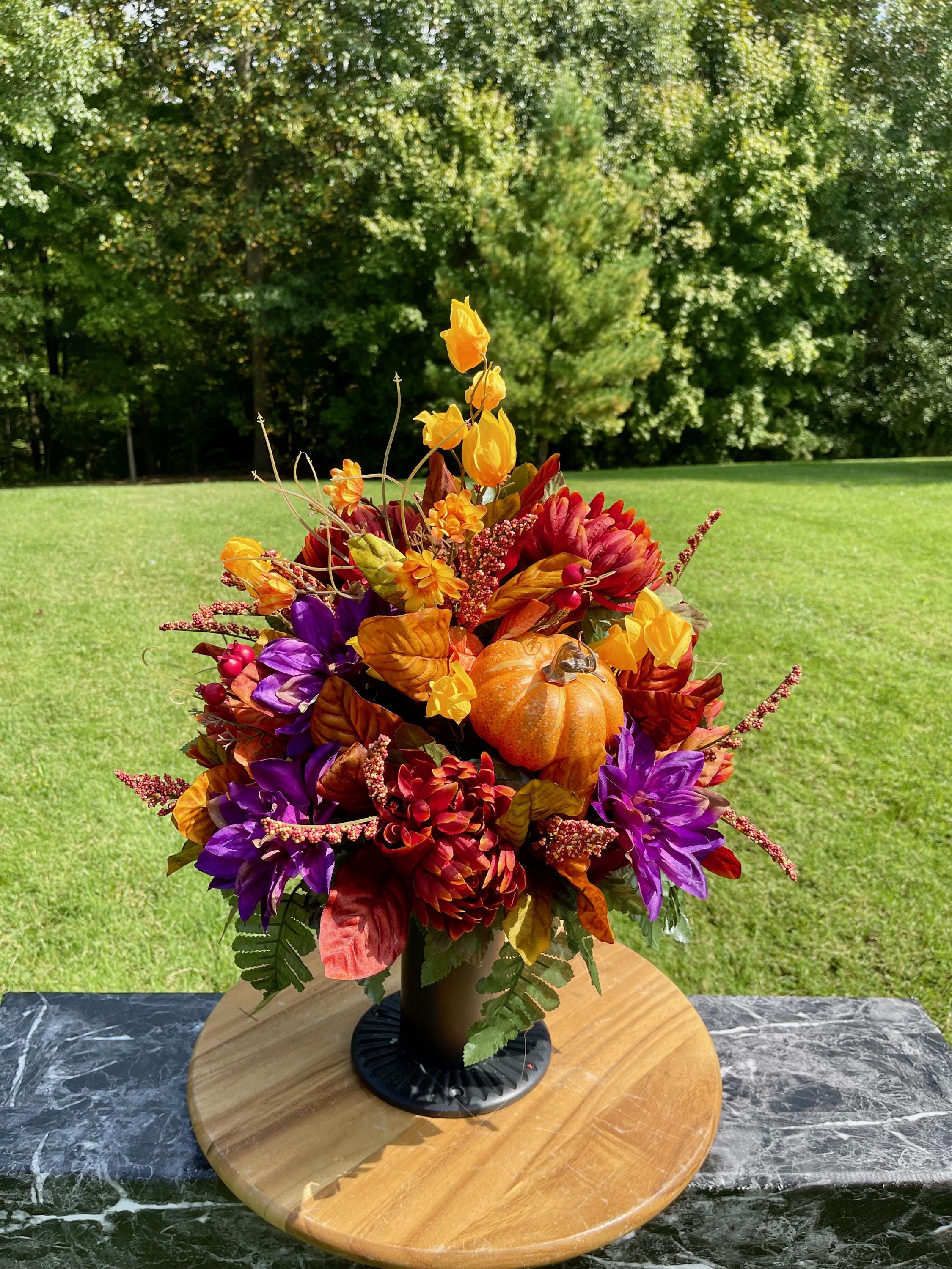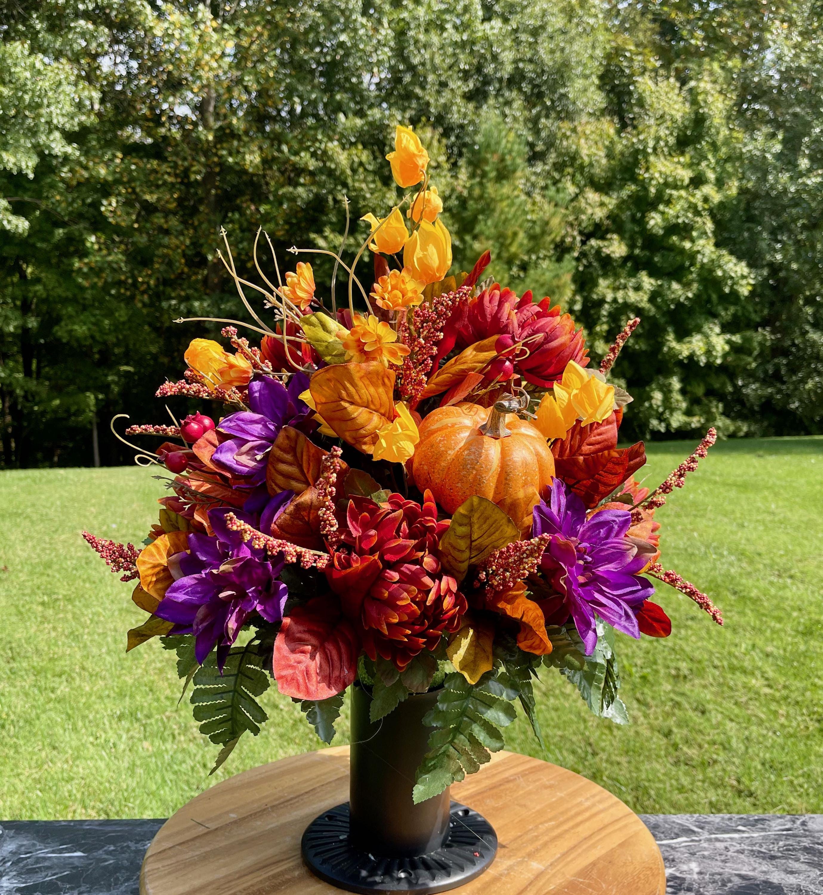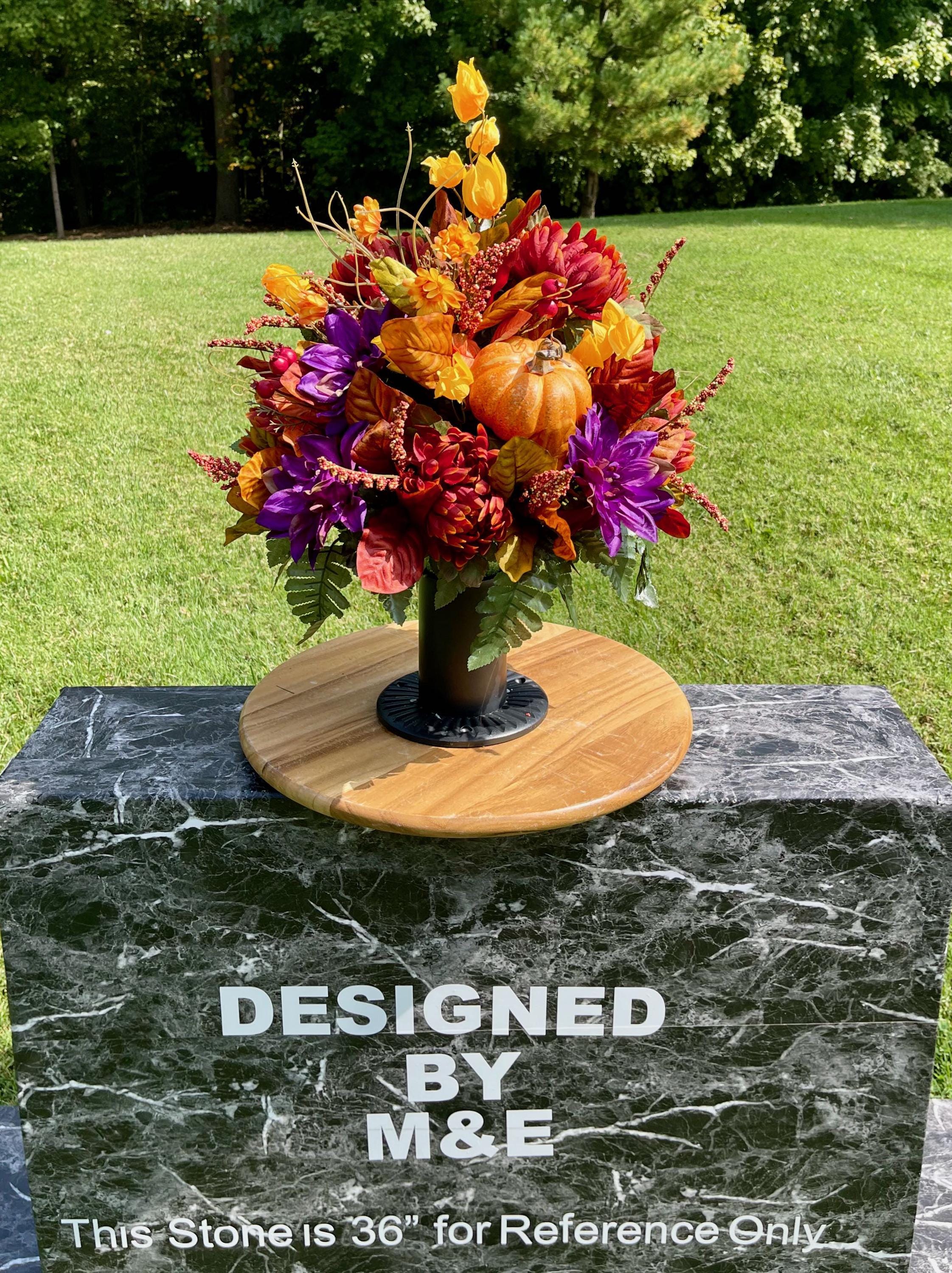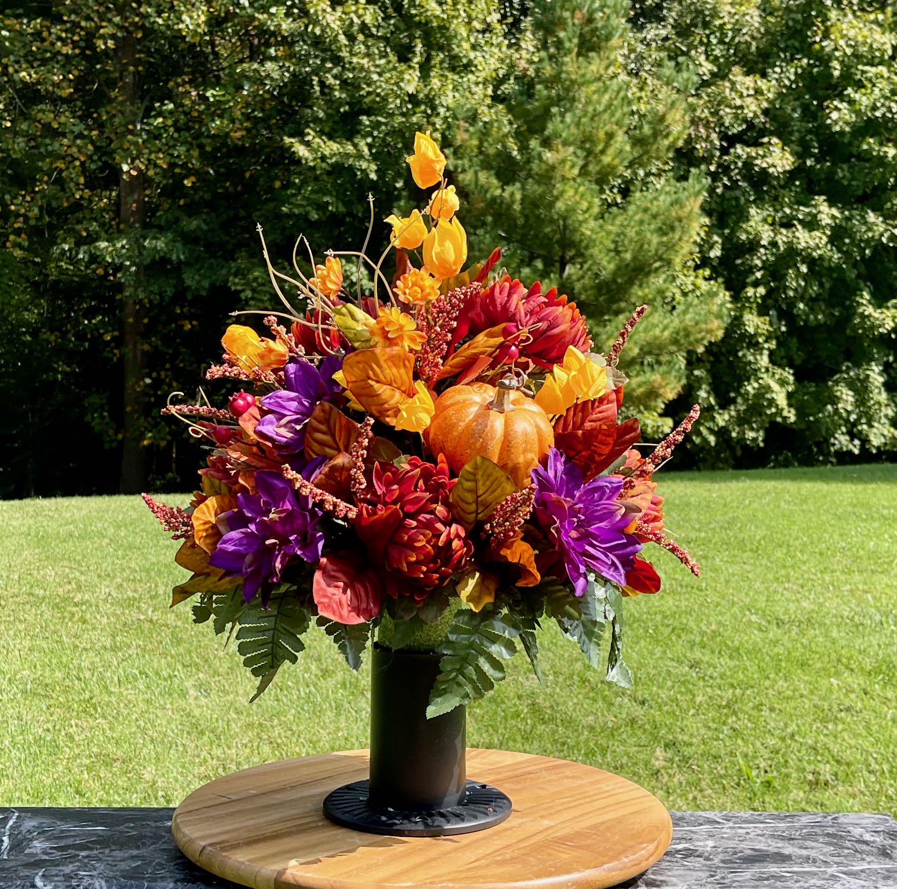 Fall Pumpkin Cemetery Vase: Silk Flower Memorial Arrangement