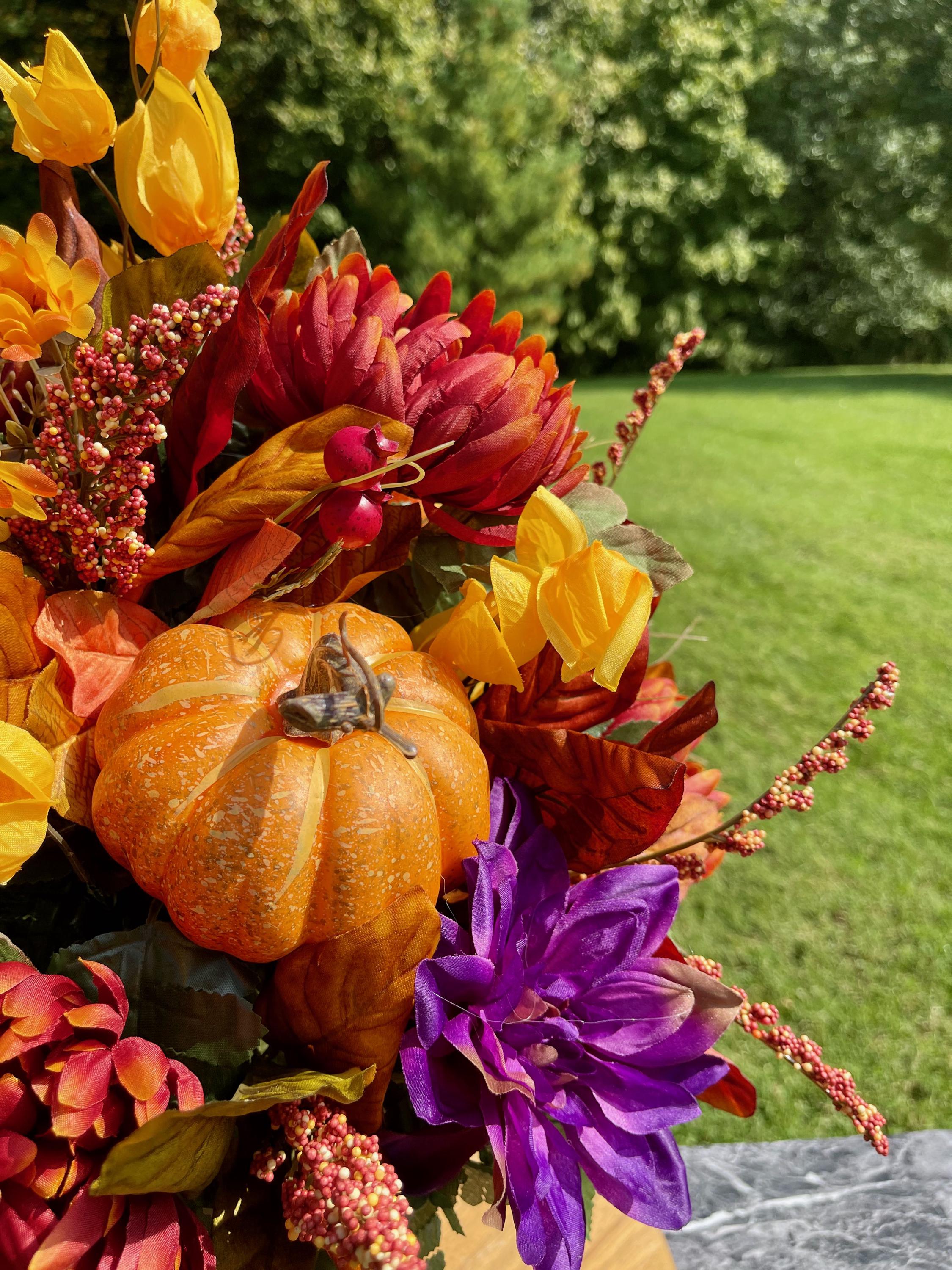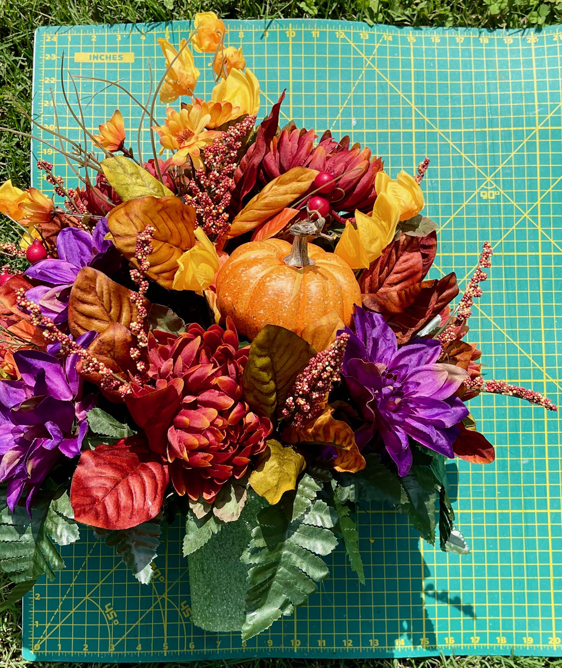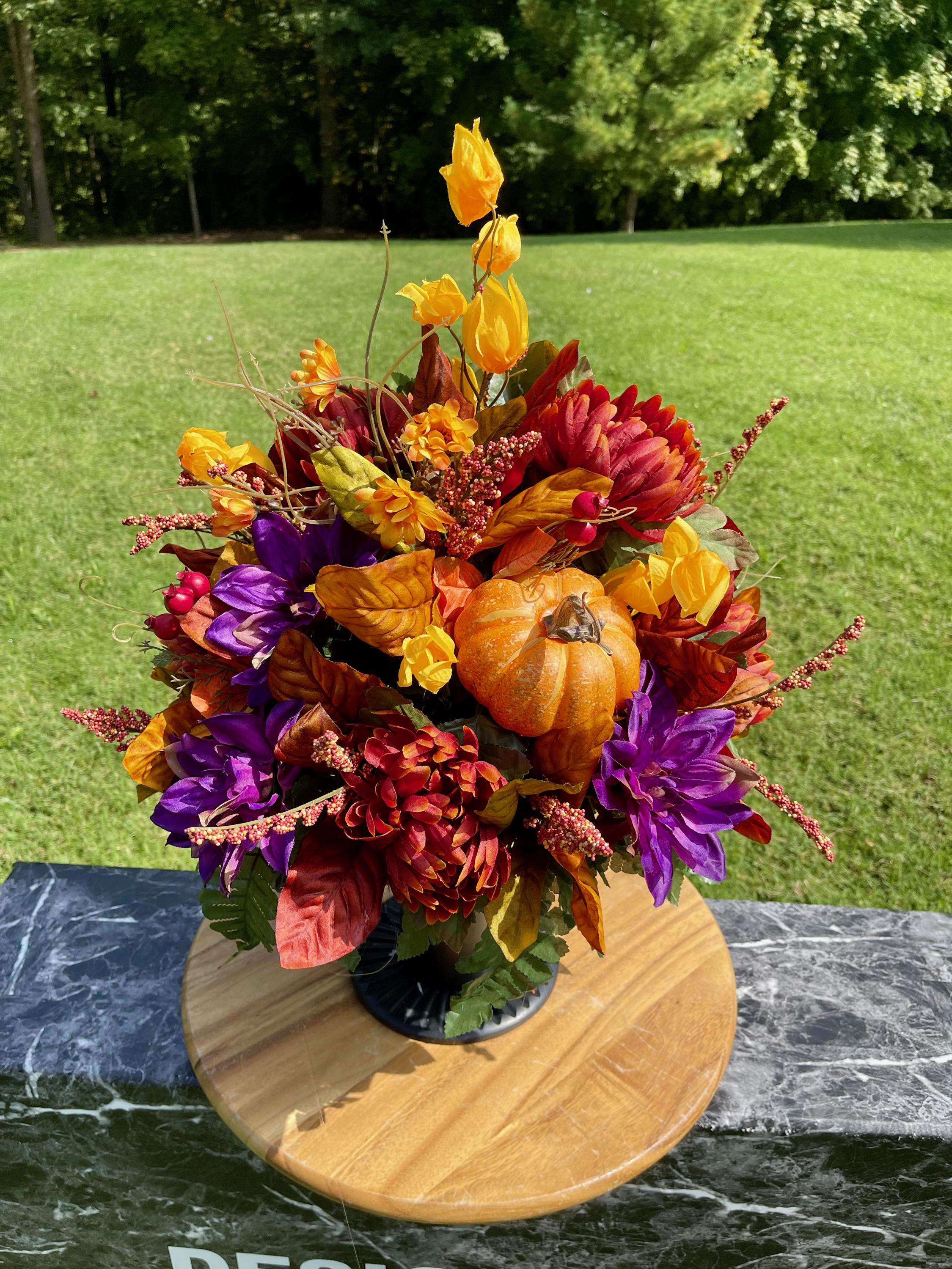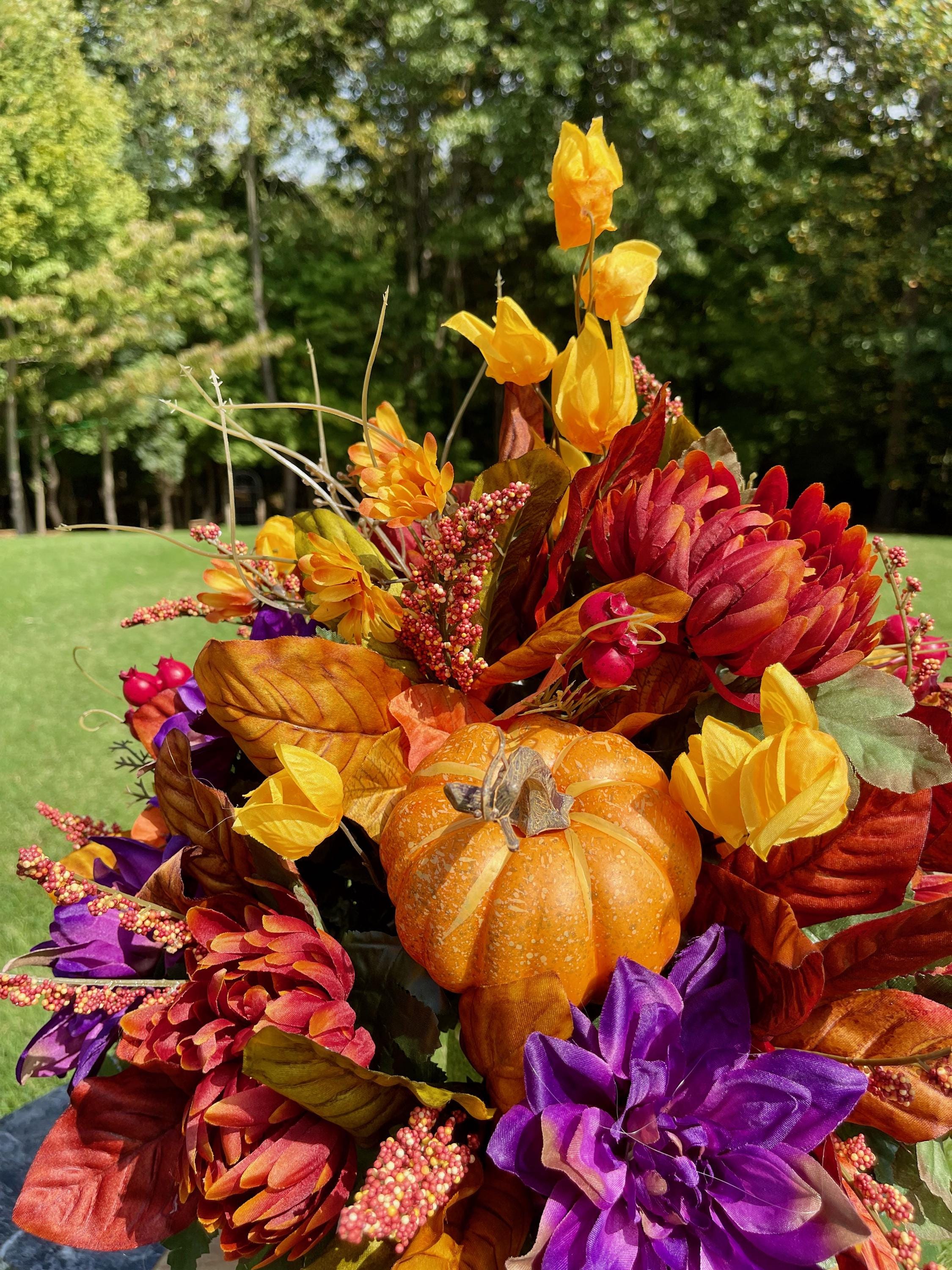 Fall Pumpkin Cemetery Vase: Silk Flower Memorial Arrangement