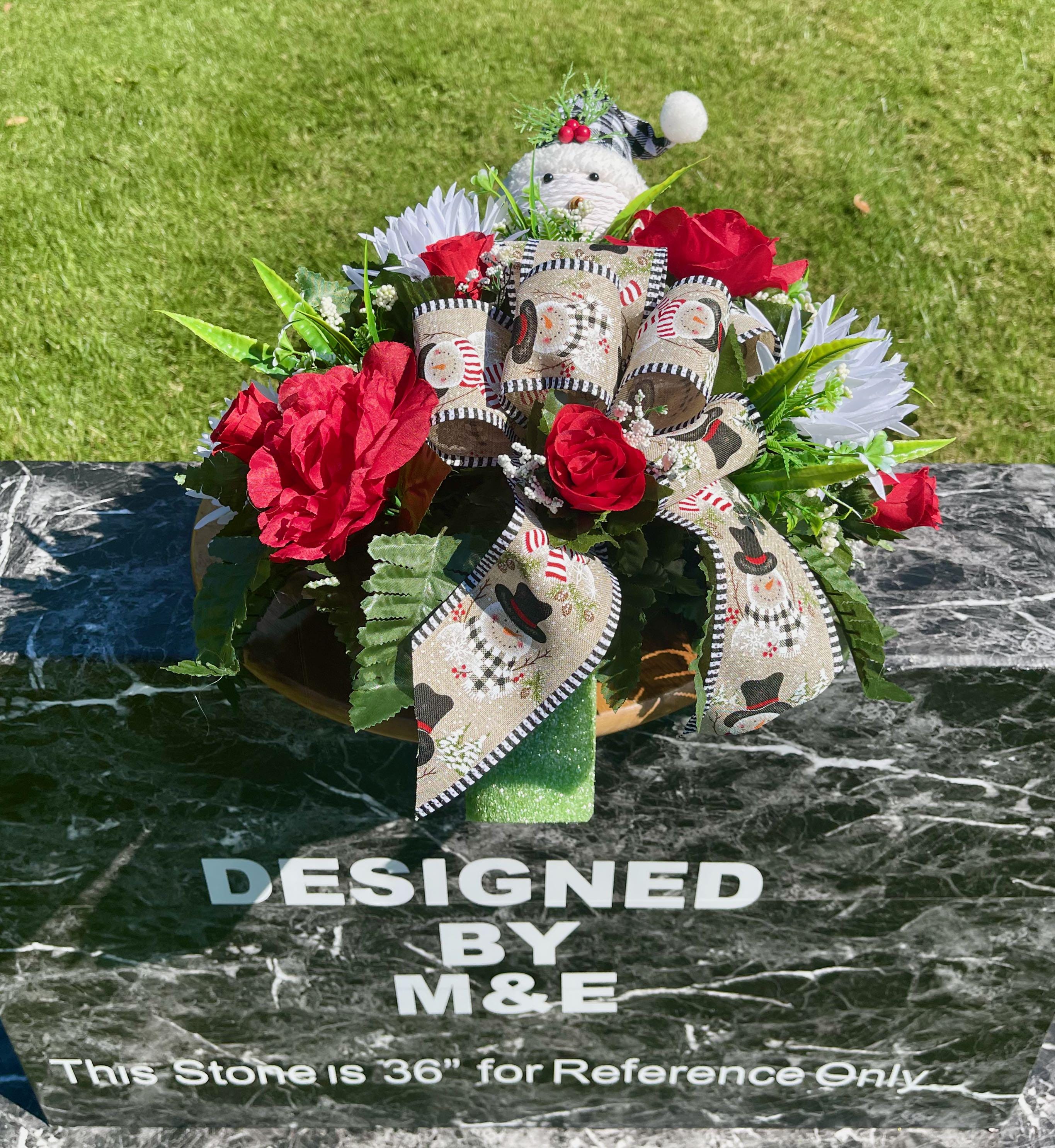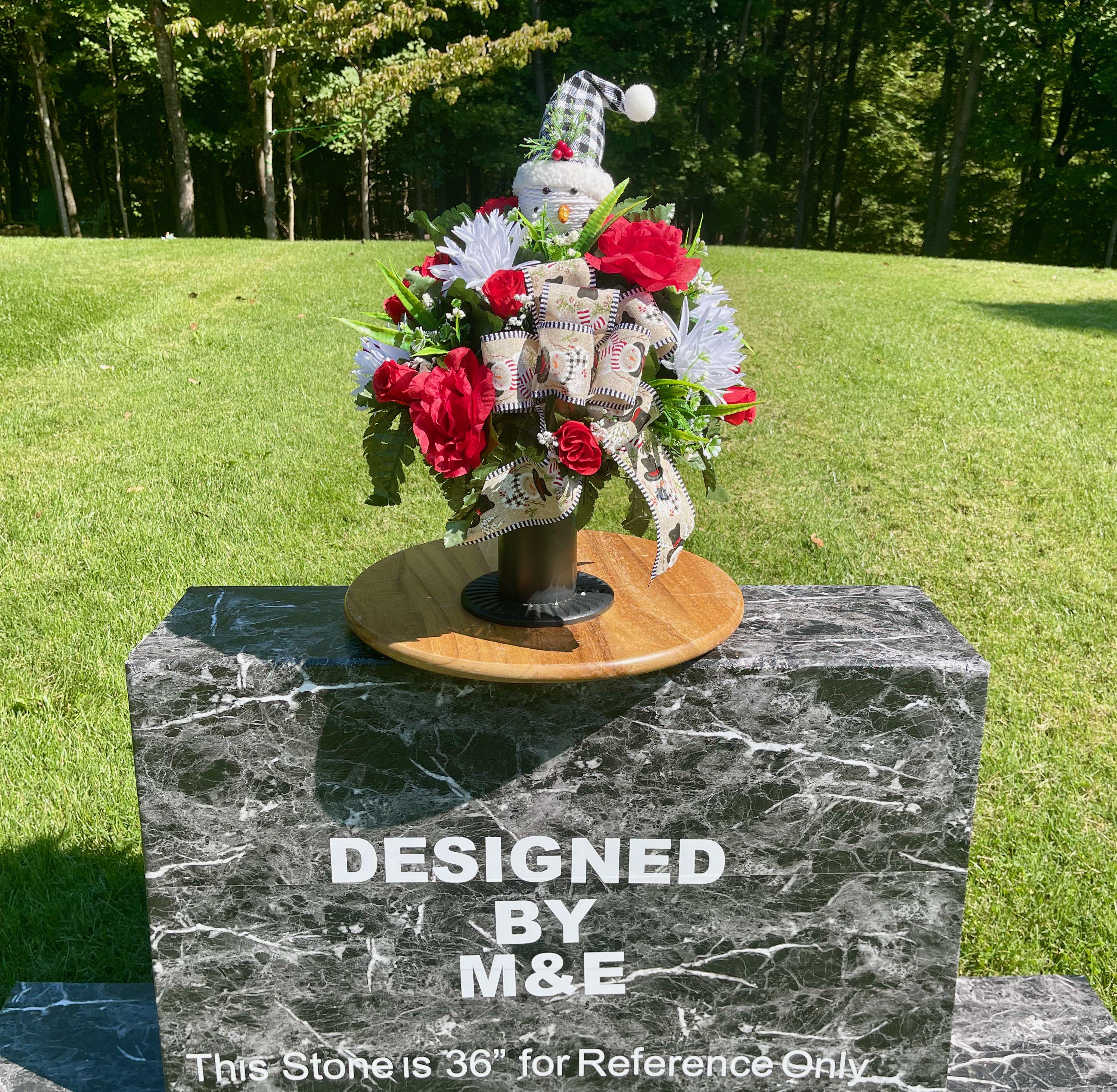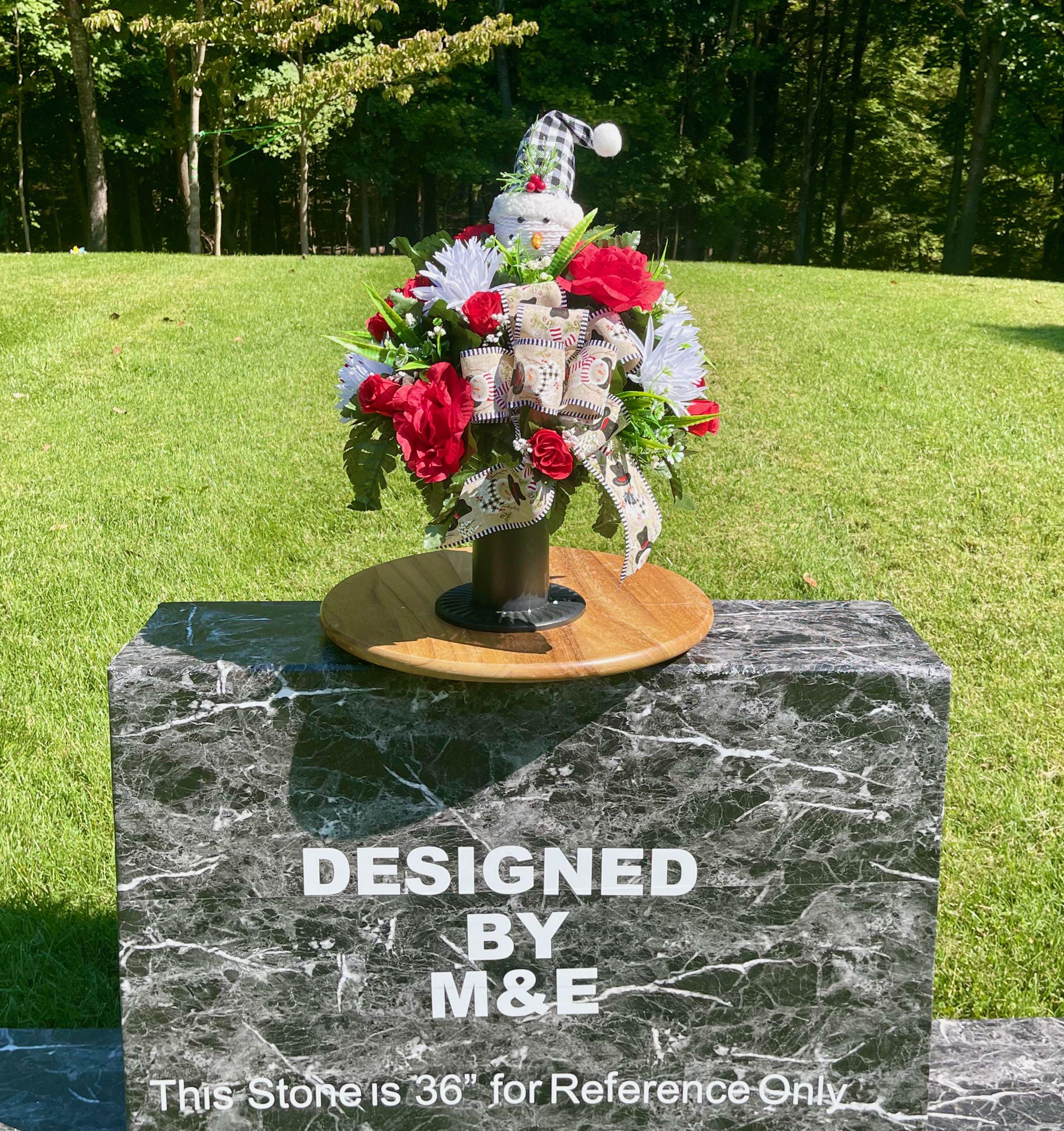 **Note** - The headstone pictured is 36" for reference only, please see photo on green measuring mat for arrangments exact dimensions.