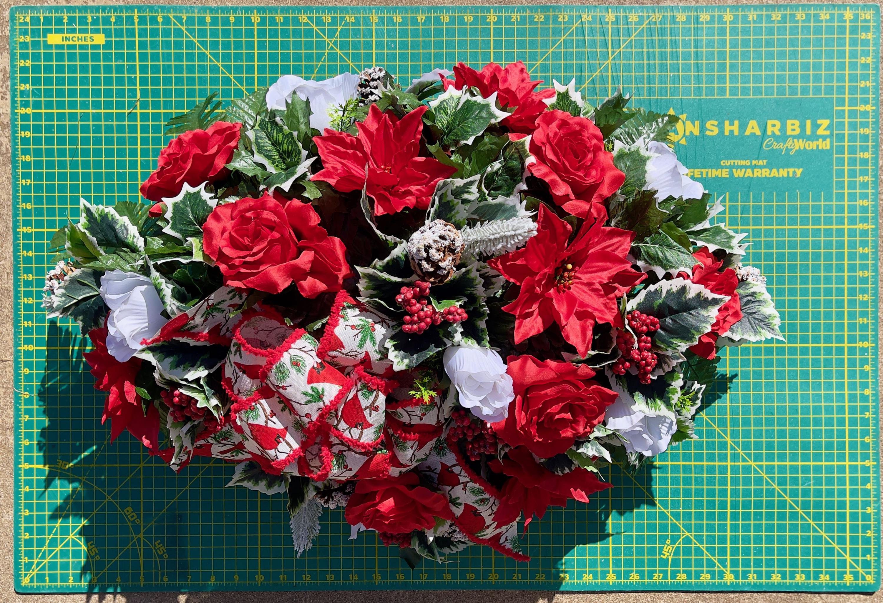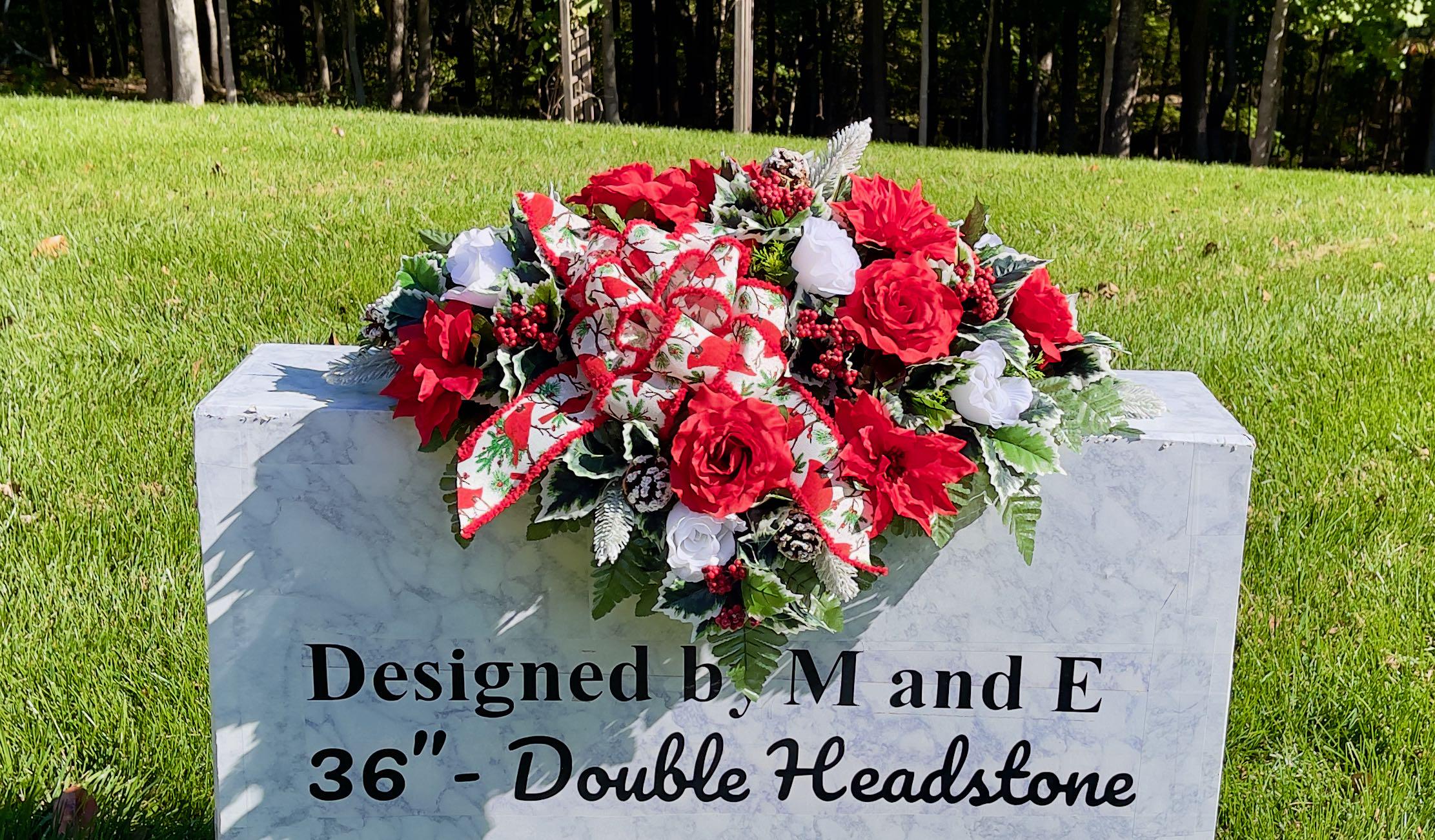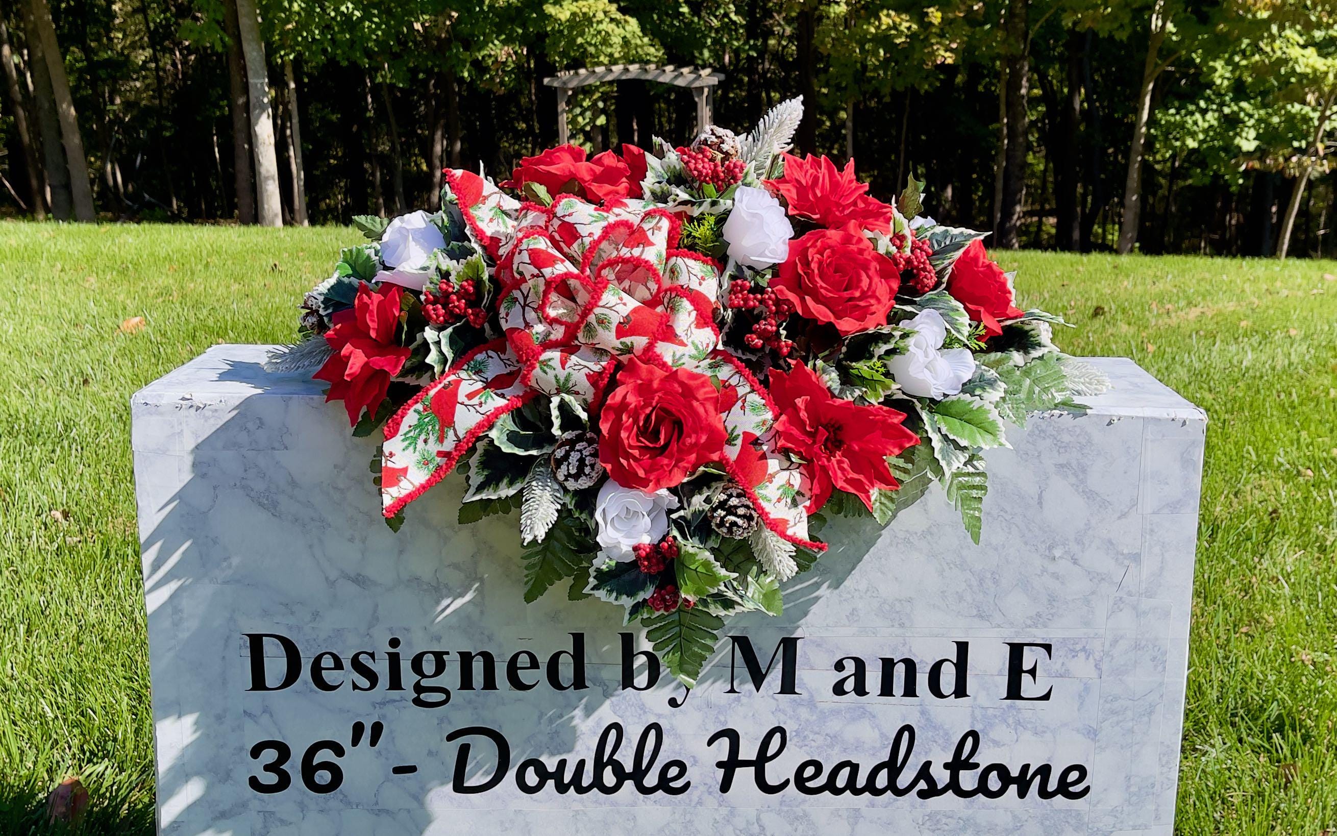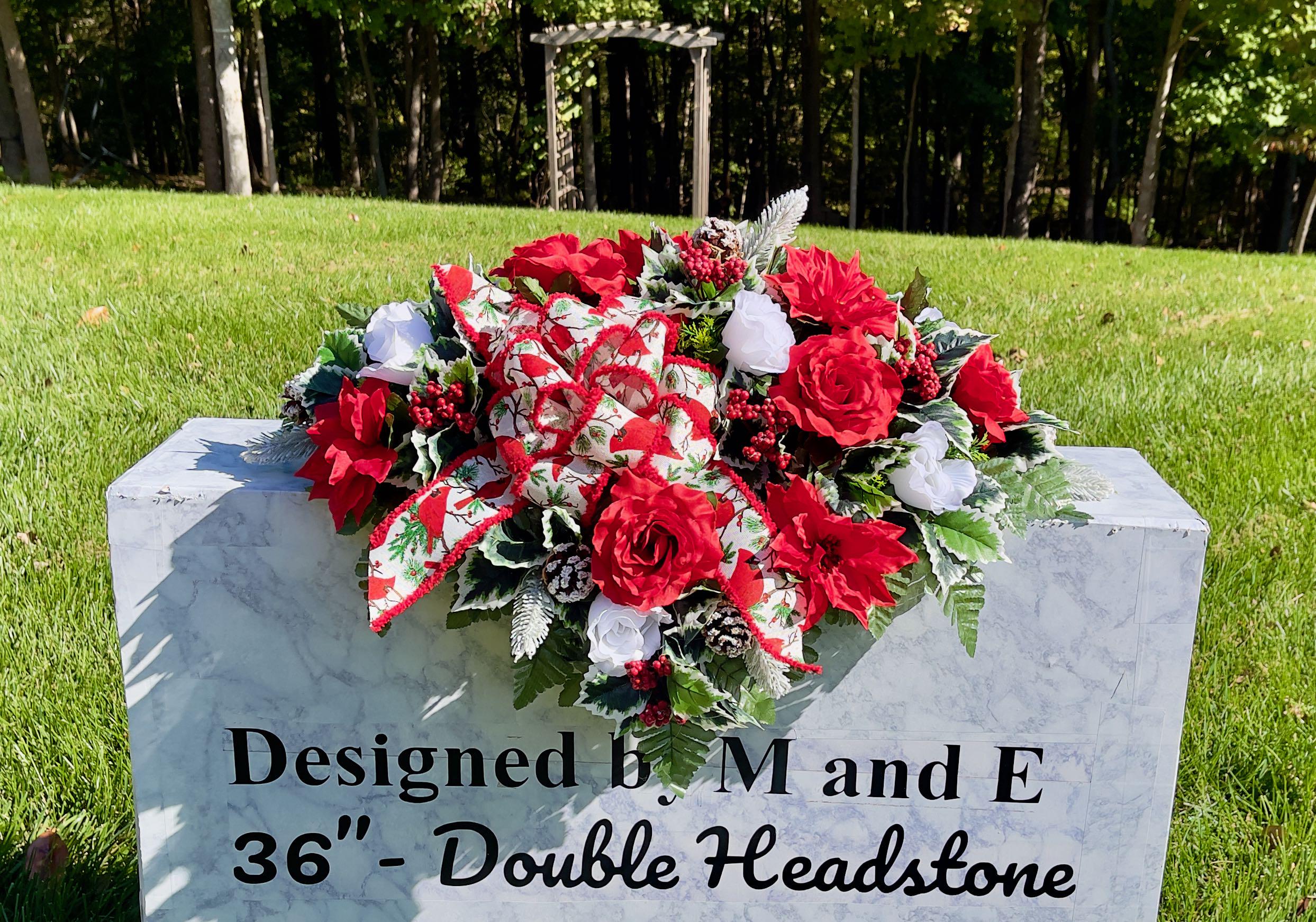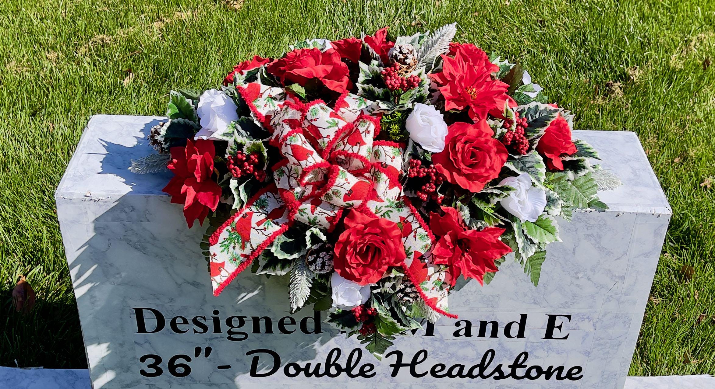 Available to Ship ASAP, One-of-a-Kind Cardinal Bow, Berries and Pinecones Christmas Cemetery Saddle, Christmas Cemetery Flowers, Headstone