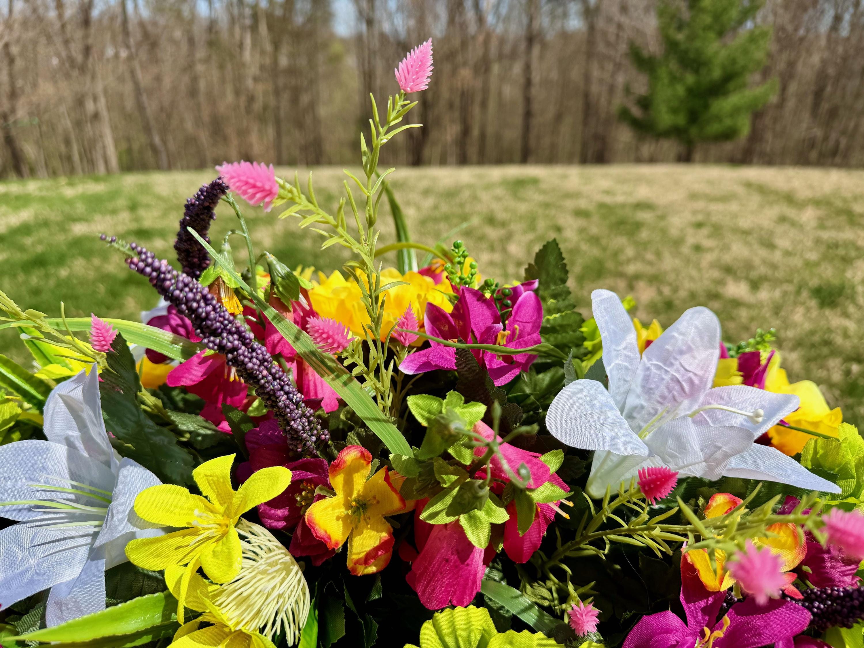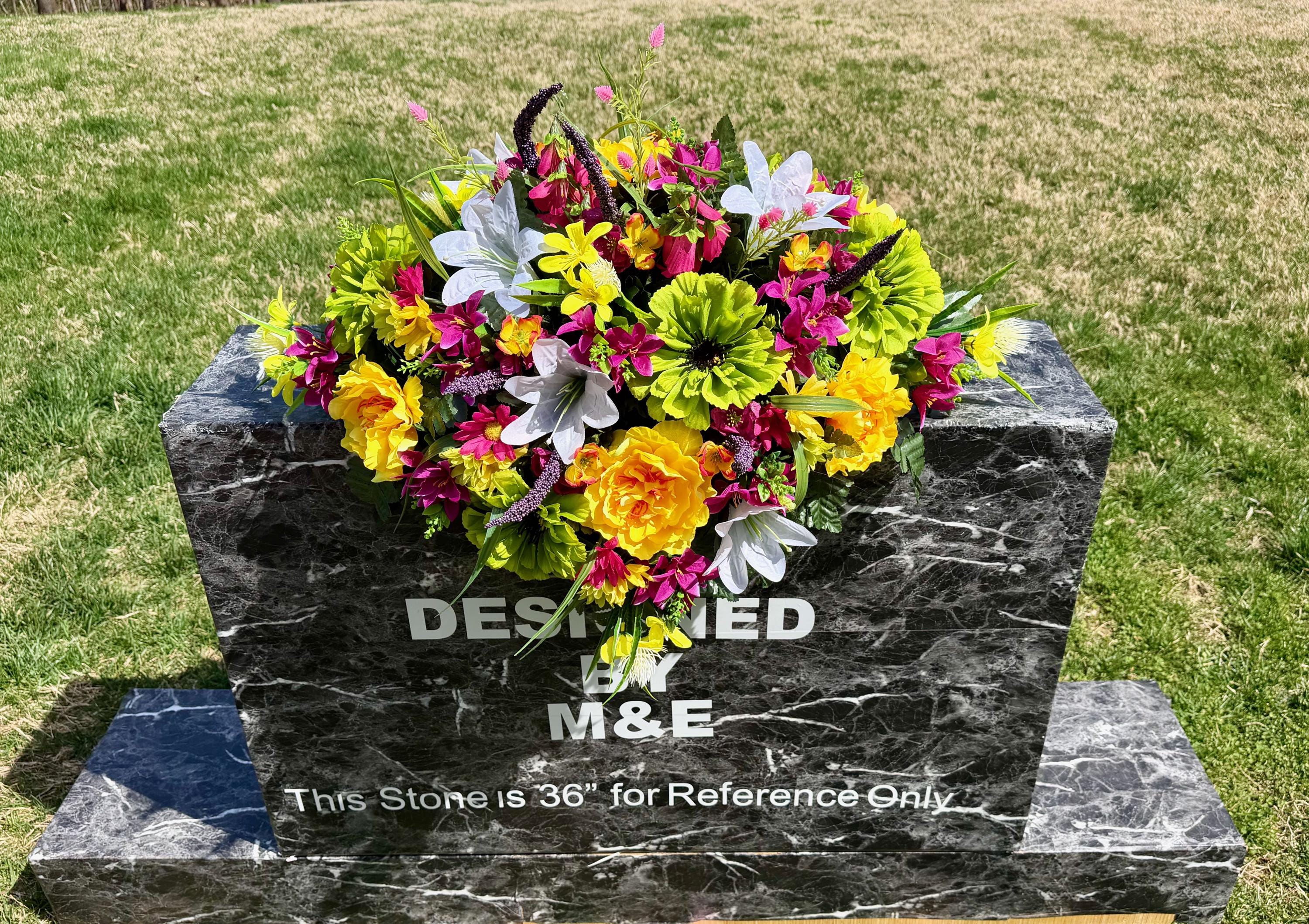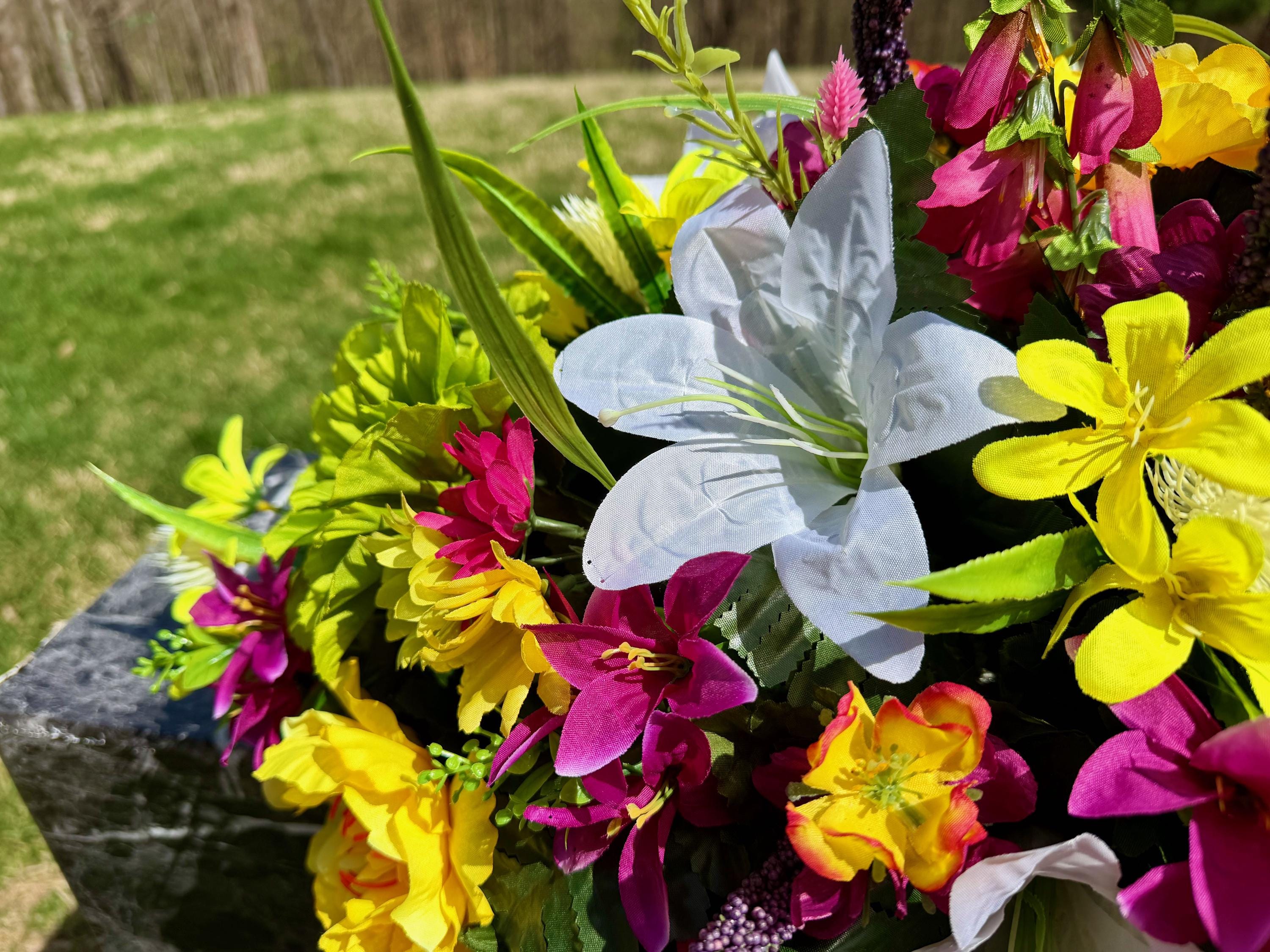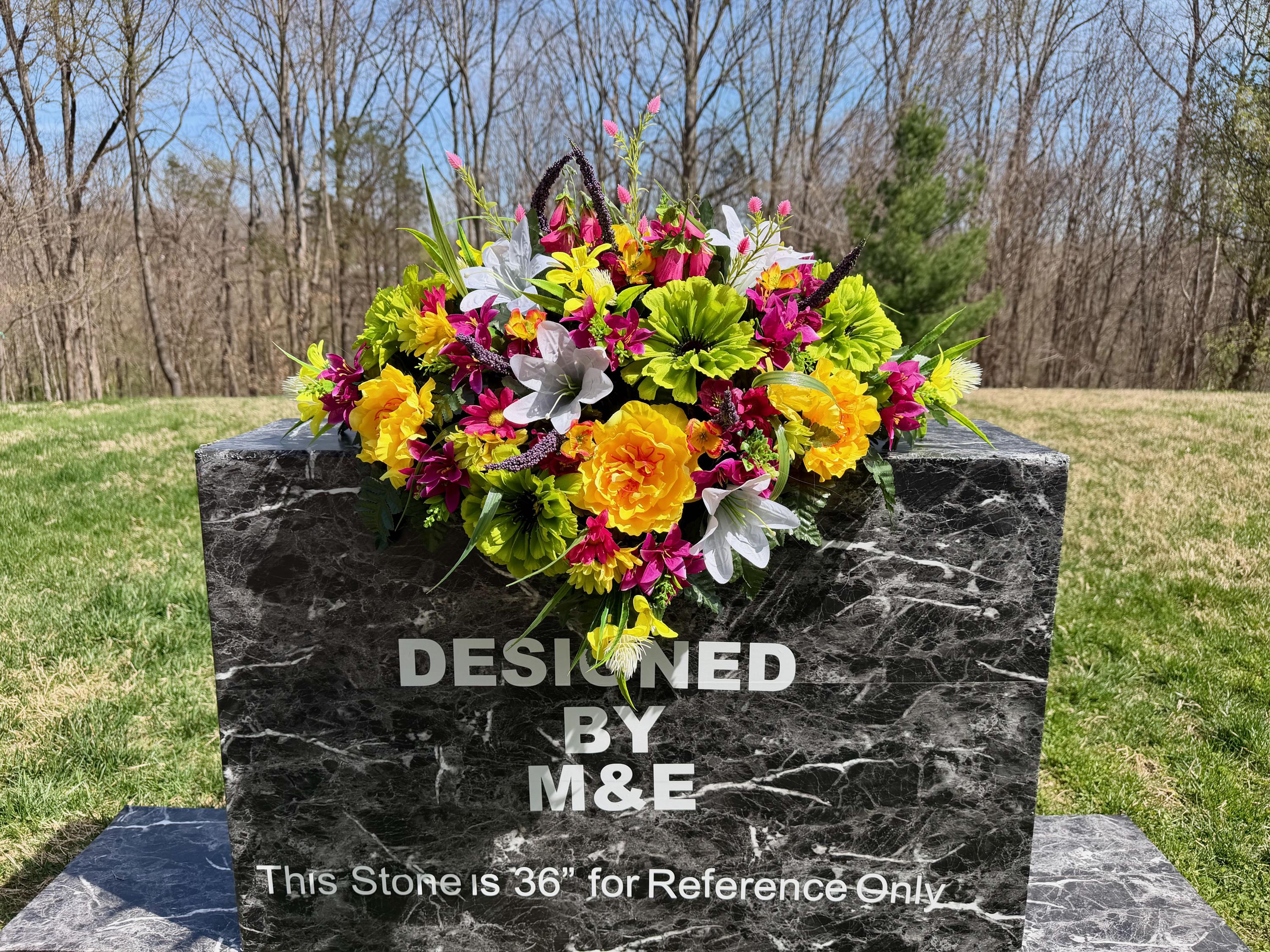 We are a small, family-operated business made up of myself, my husband, and my daughter. We personally manage every order and are committed to providing excellent customer service. All our arrangements are created using high-quality silk flowers, though please note that all silk blooms can fade over time. Each flower stem is glued into foam to help it withstand the elements. Designed by M&E uses only premium silks, and we take great care with each piece we make. The arrangement shown in our photos is exactly the one you’ll receive, as each is designed and assembled by me. If you are looking for something unique or have a specific flower, color, or matching vases in mind, please reach out to discuss a custom order.