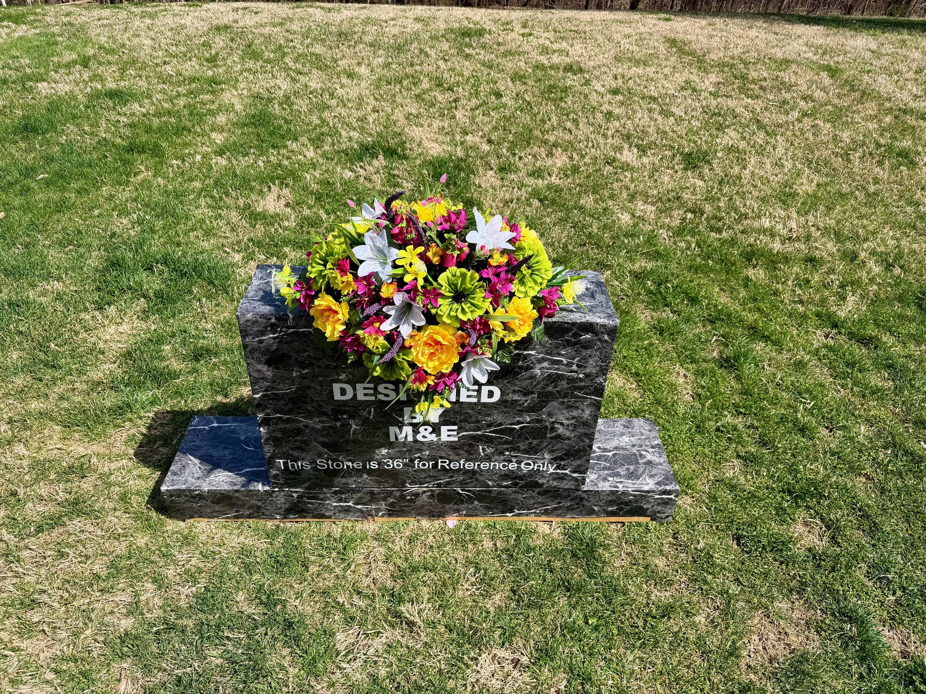 • The vase shown in photos is not attached to the headstone; it is simply positioned on the stone for display purposes.