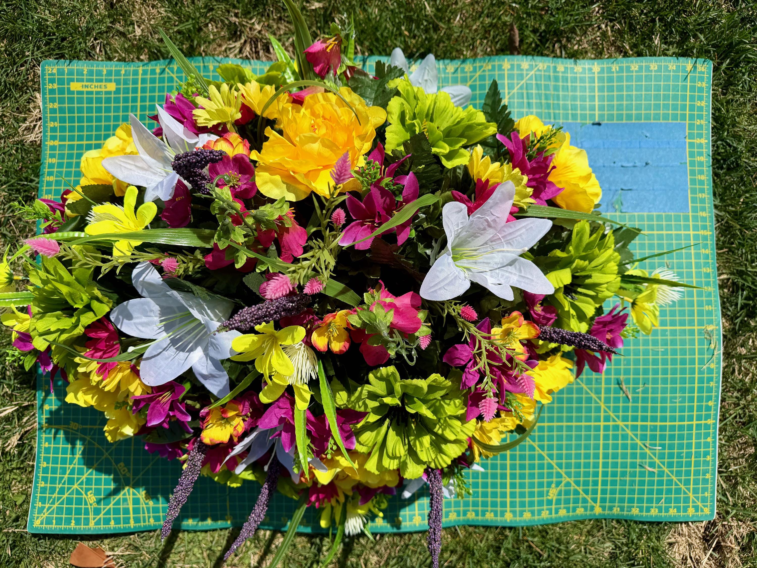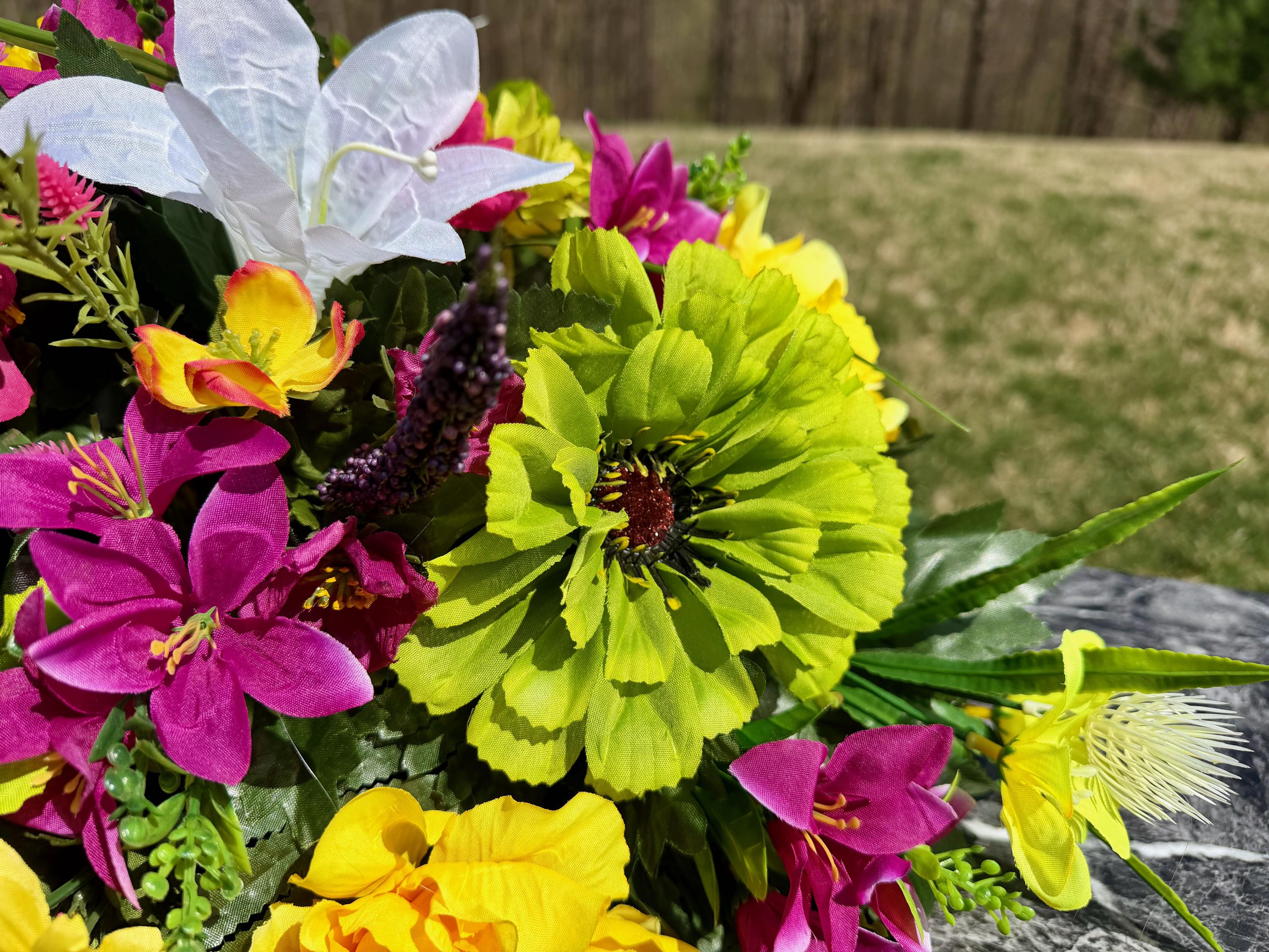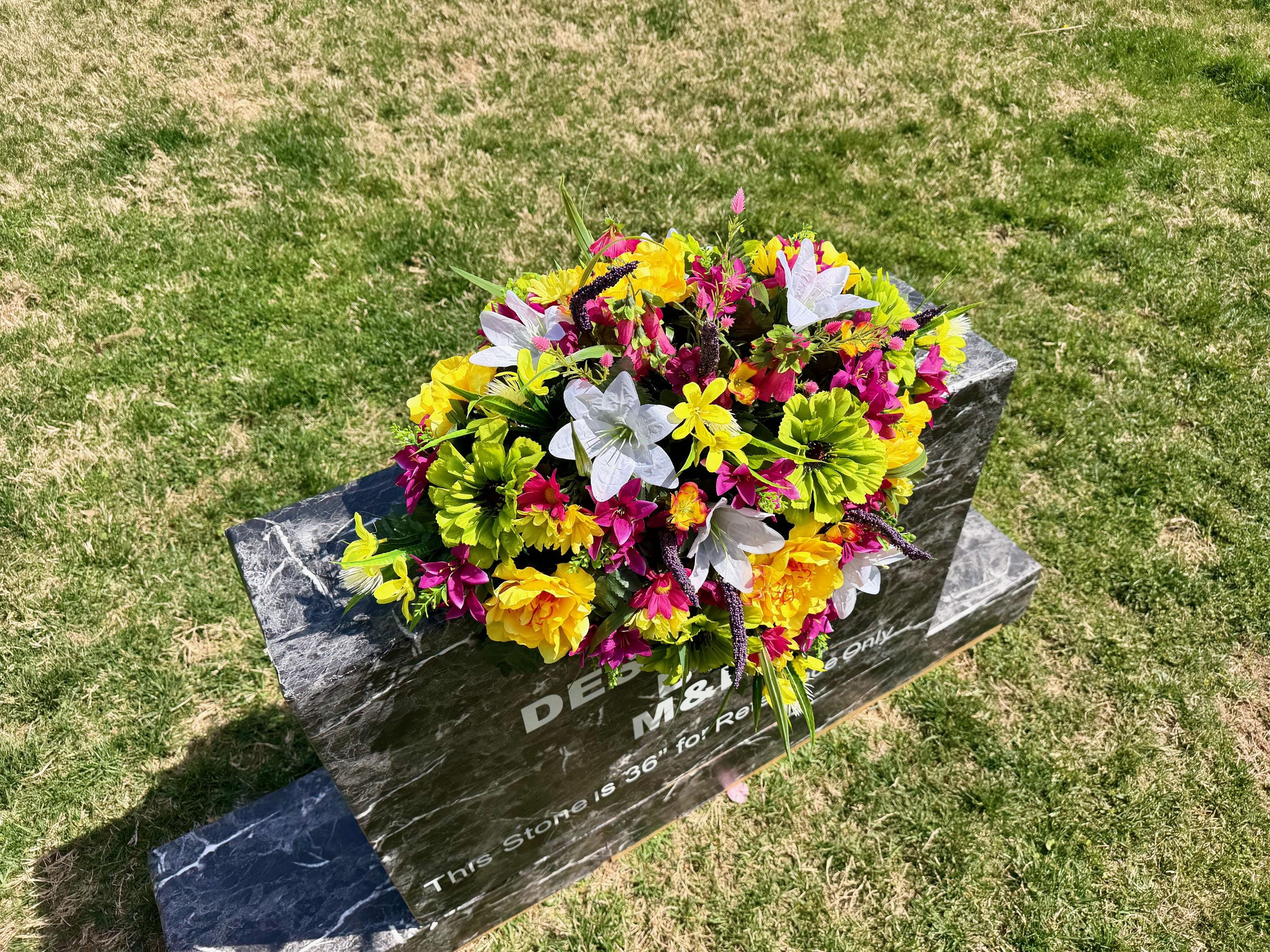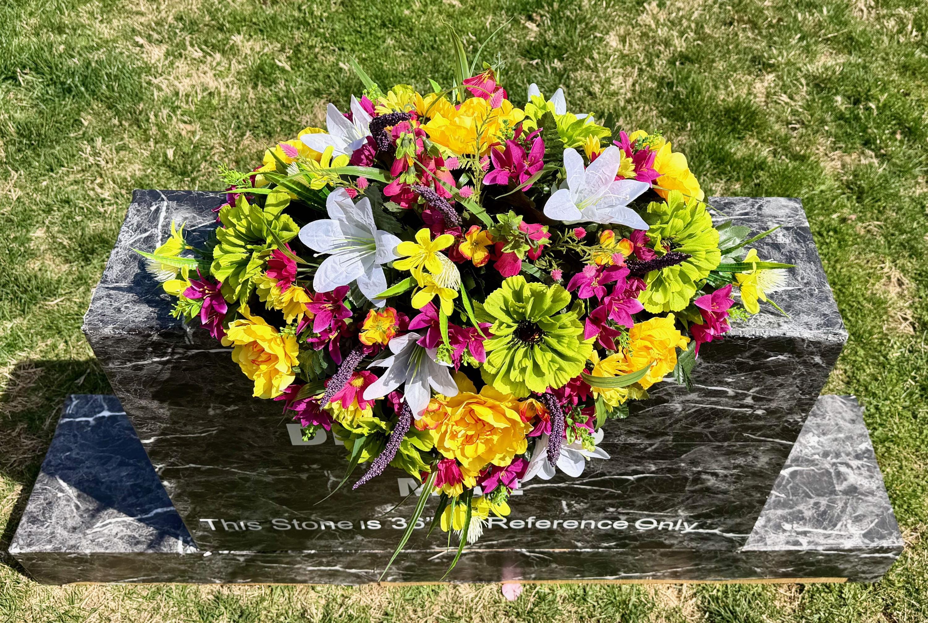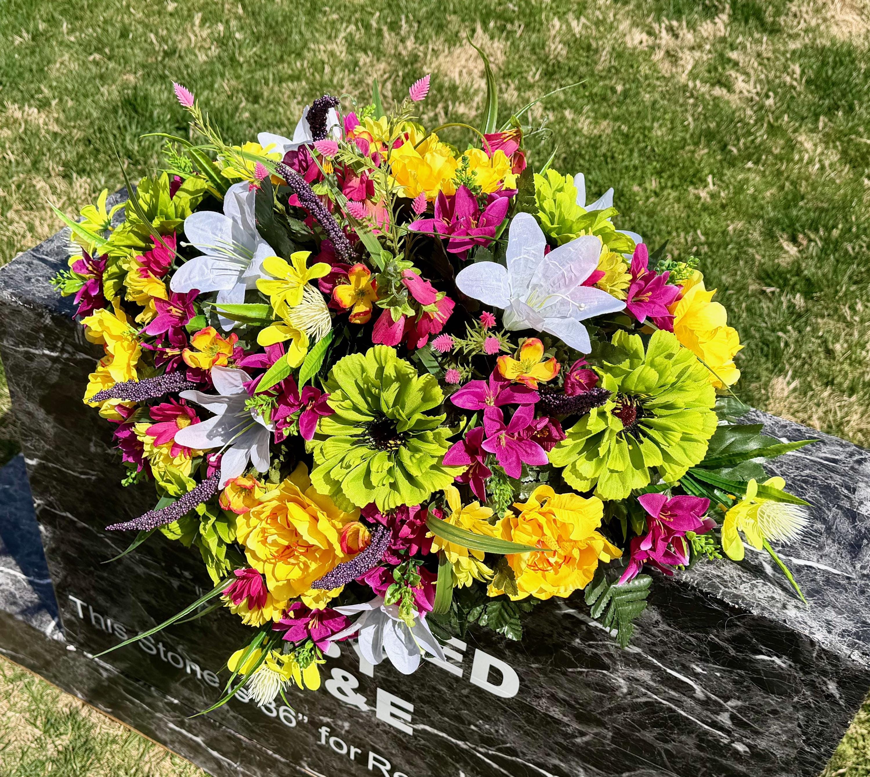 Colorful Silk Flower Cemetery Saddle: Memorial Gravesite Flowers