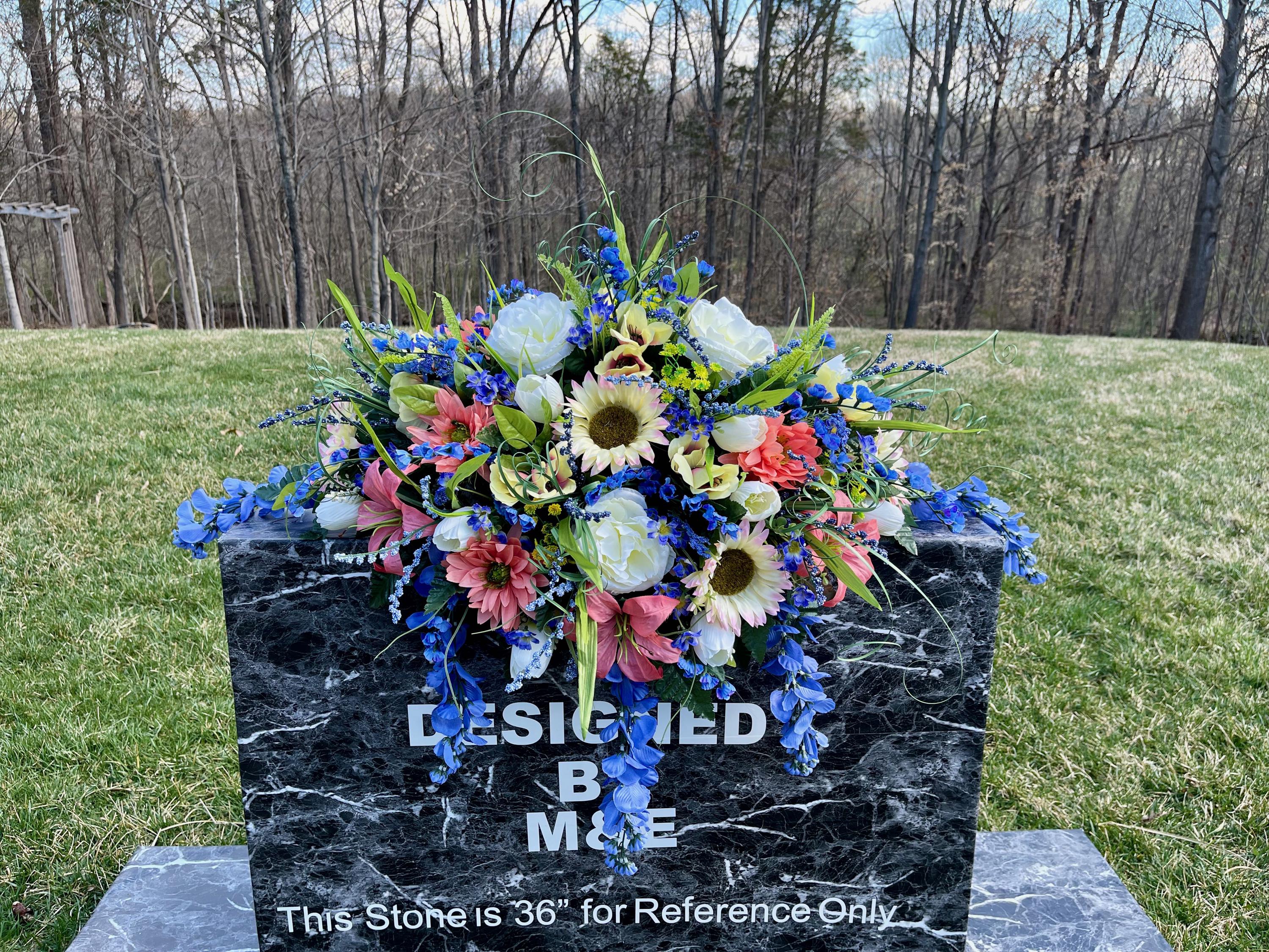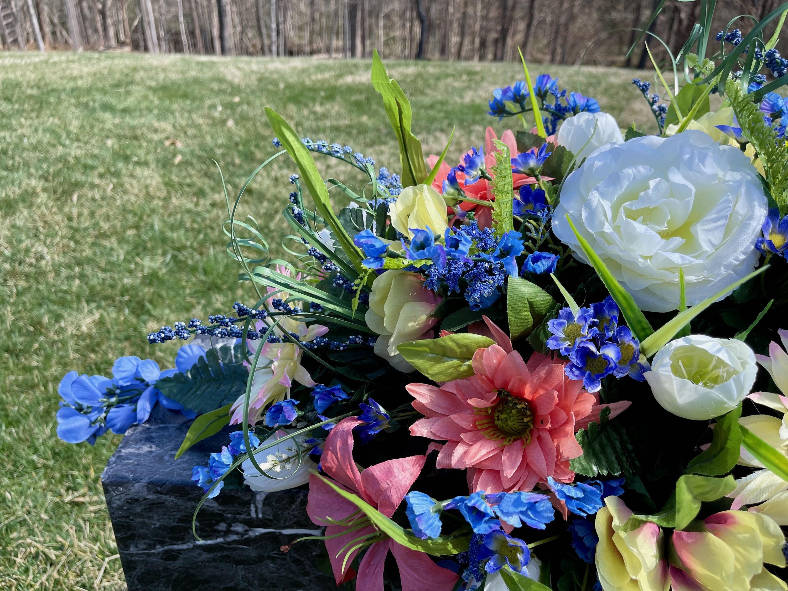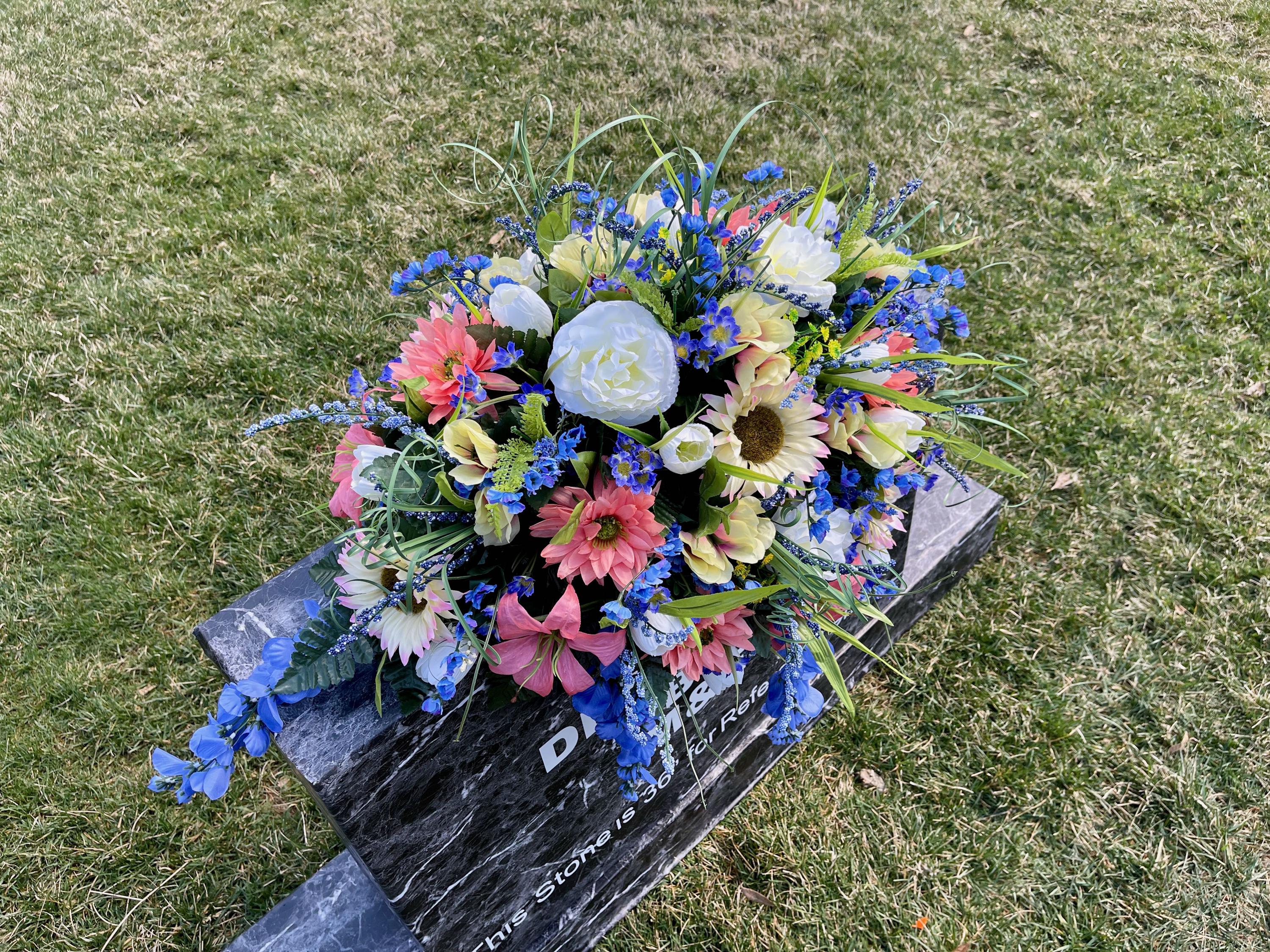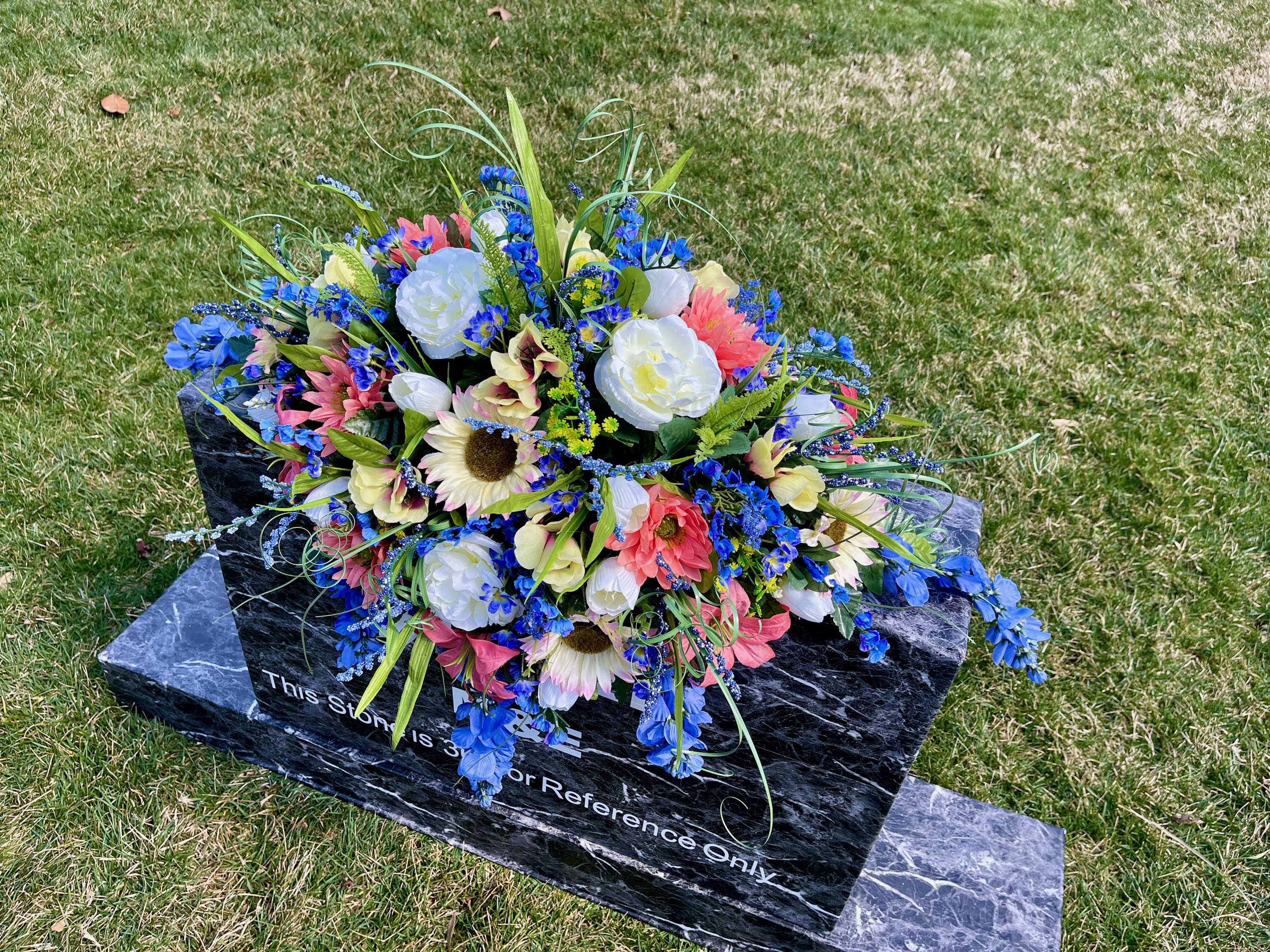 Blue-Salmon-White Cemetery Saddle, Flowers for the Cemetery, Memorial Day Saddle, Sympathy Flowers, Cemetery Flowers, Gravesite Flowers