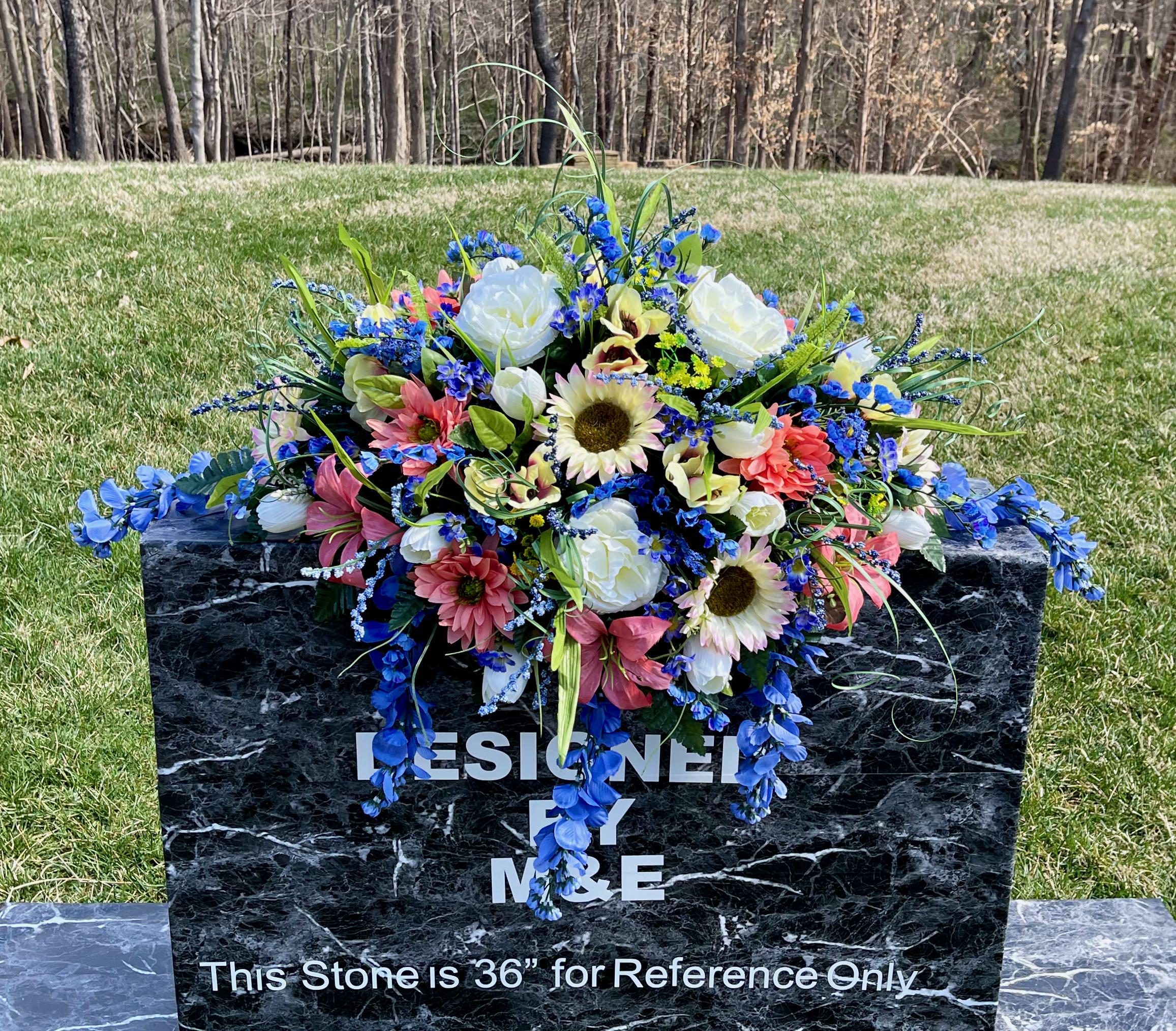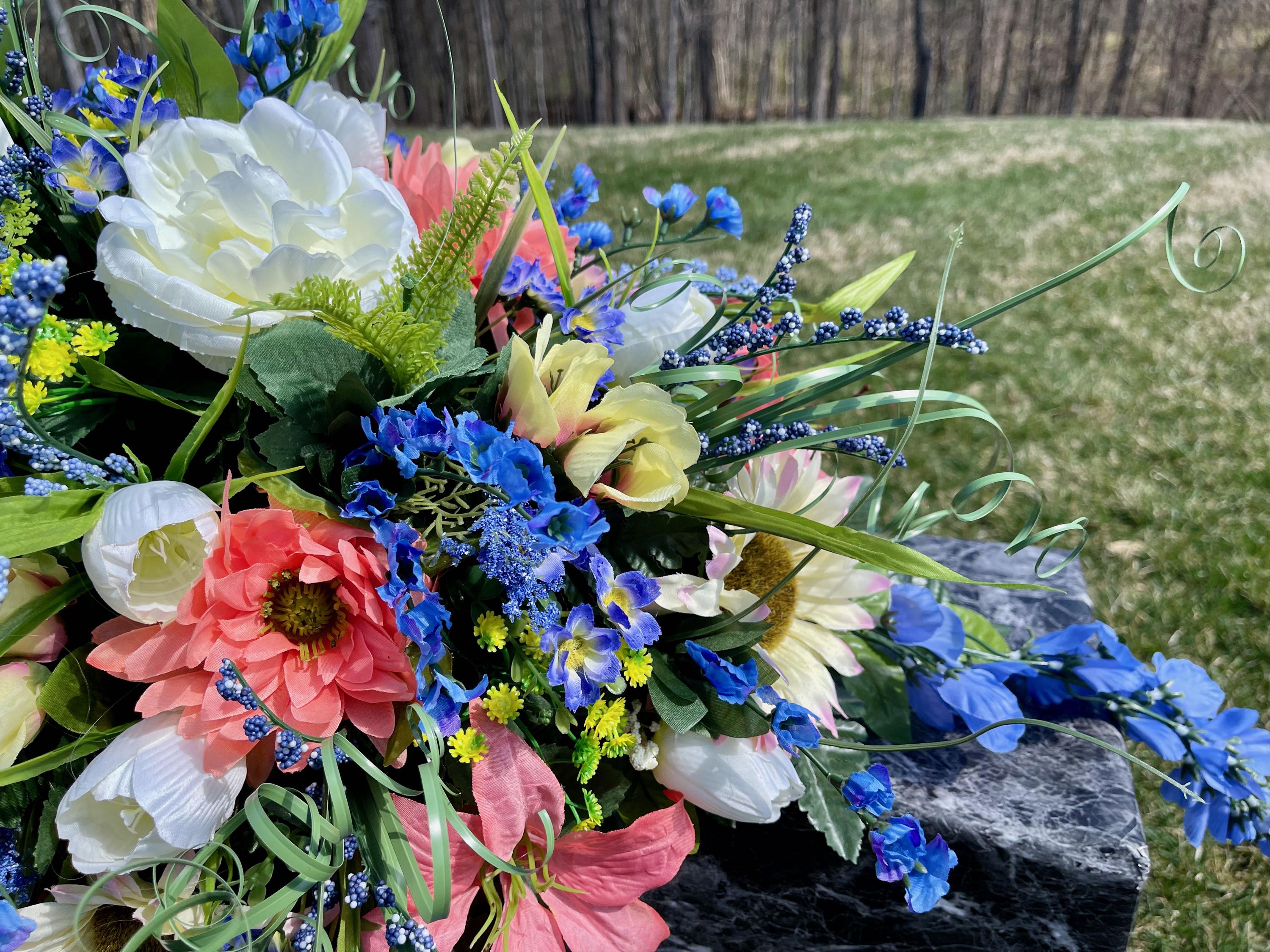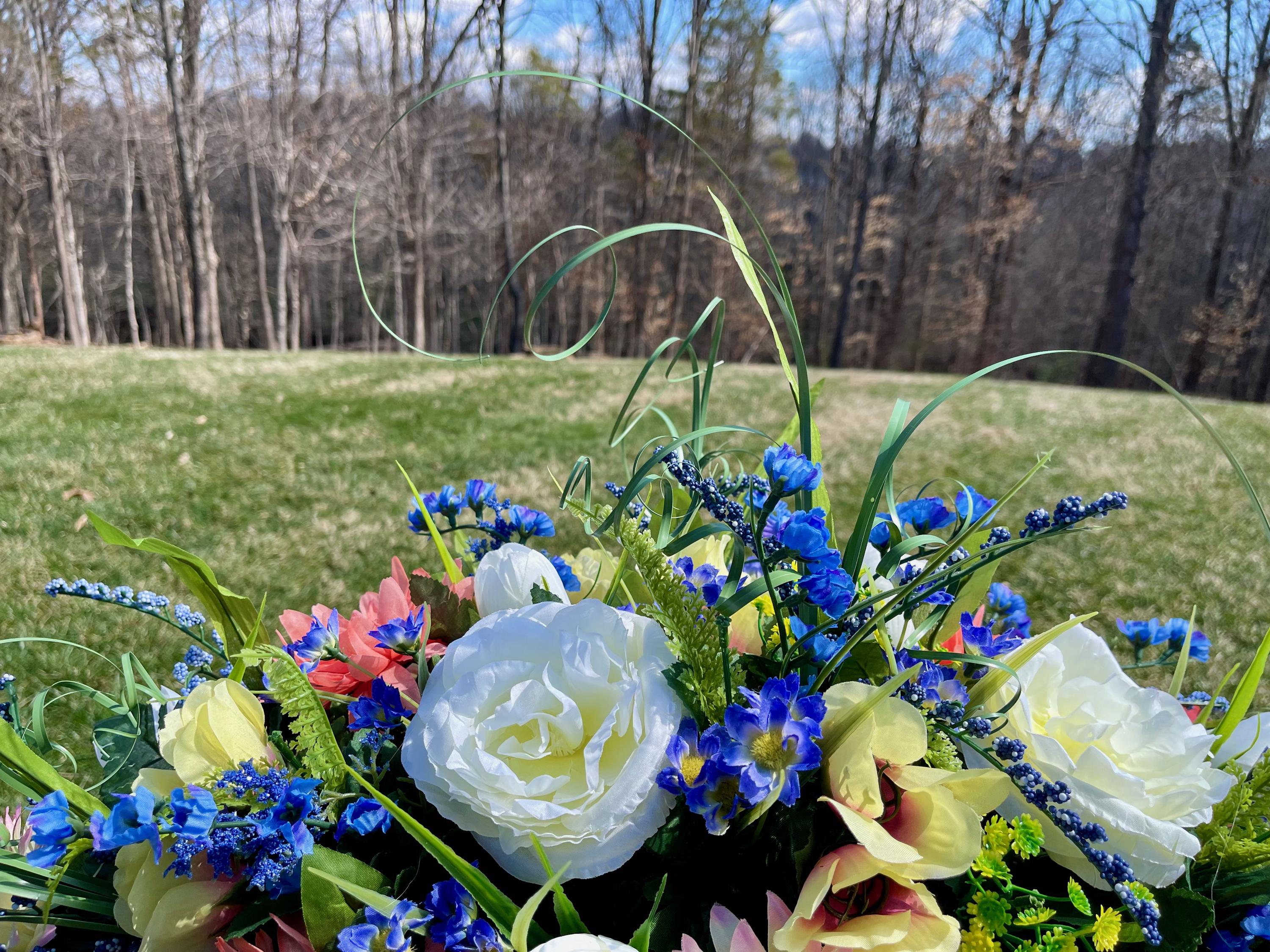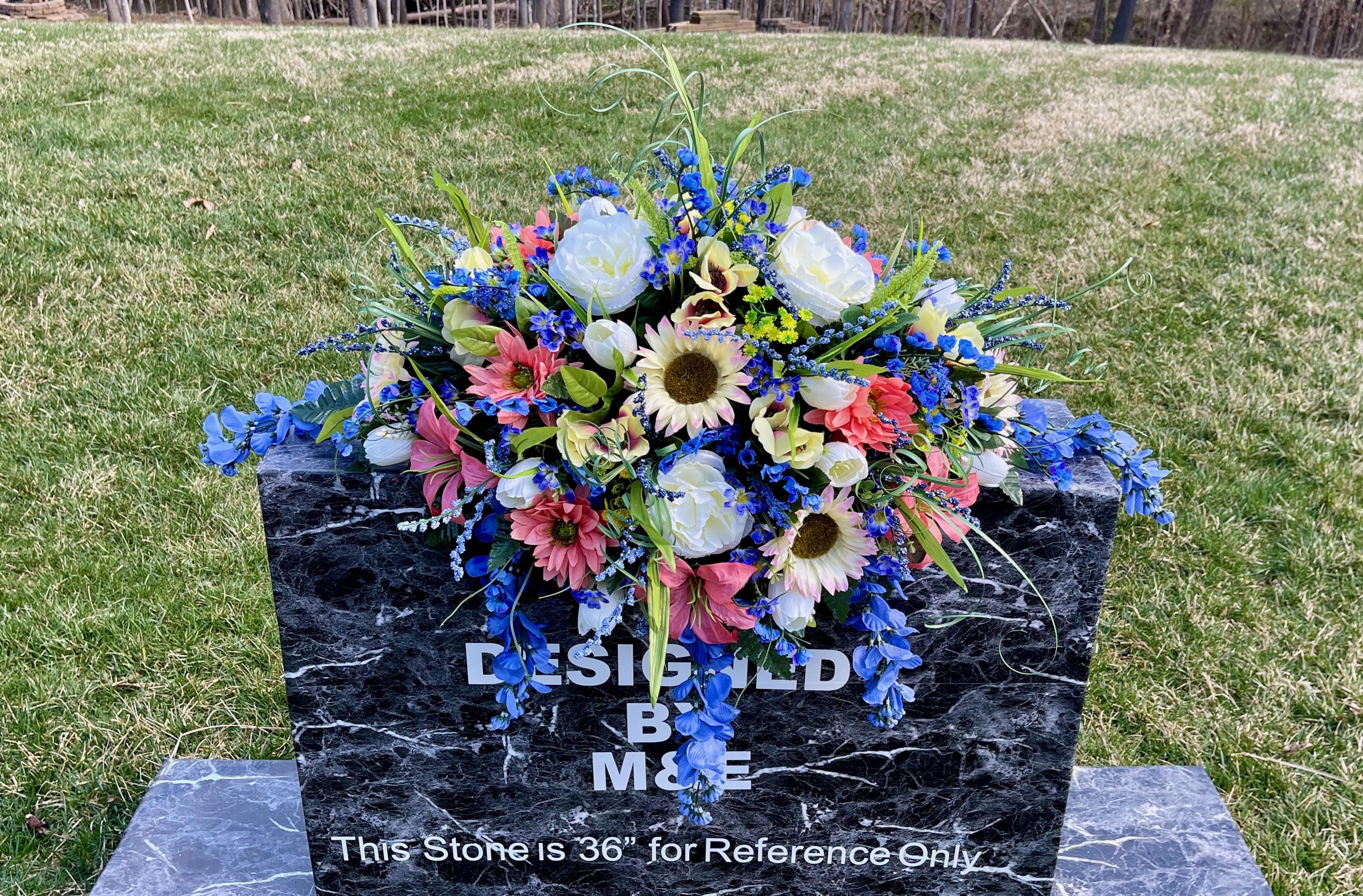 Blue-Salmon-White Cemetery Saddle, Flowers for the Cemetery, Memorial Day Saddle, Sympathy Flowers, Cemetery Flowers, Gravesite Flowers