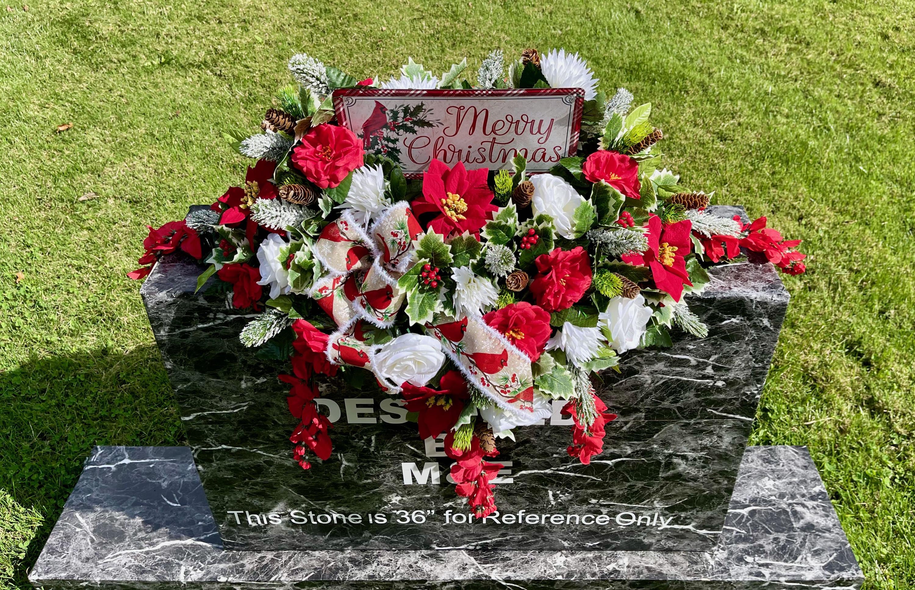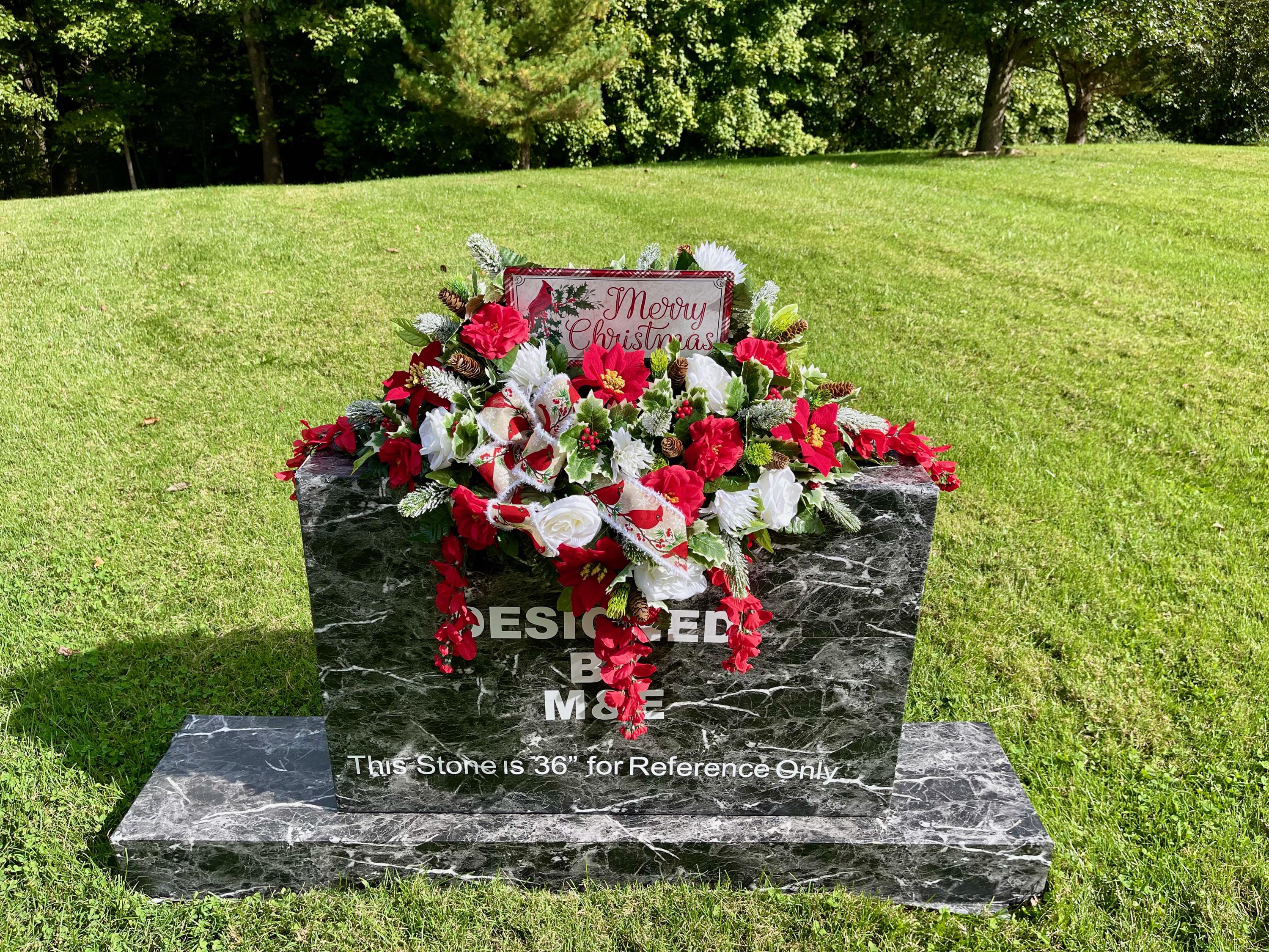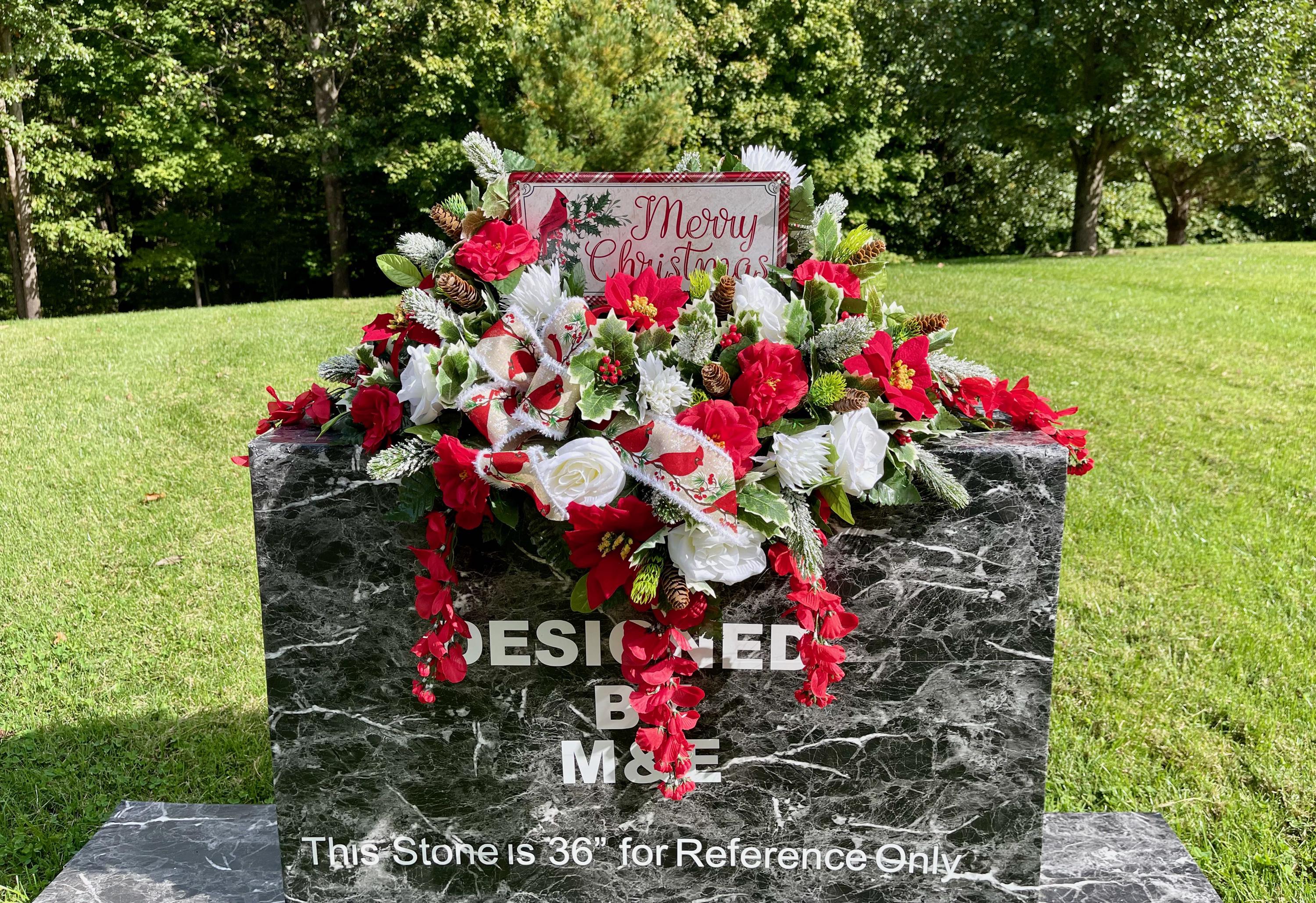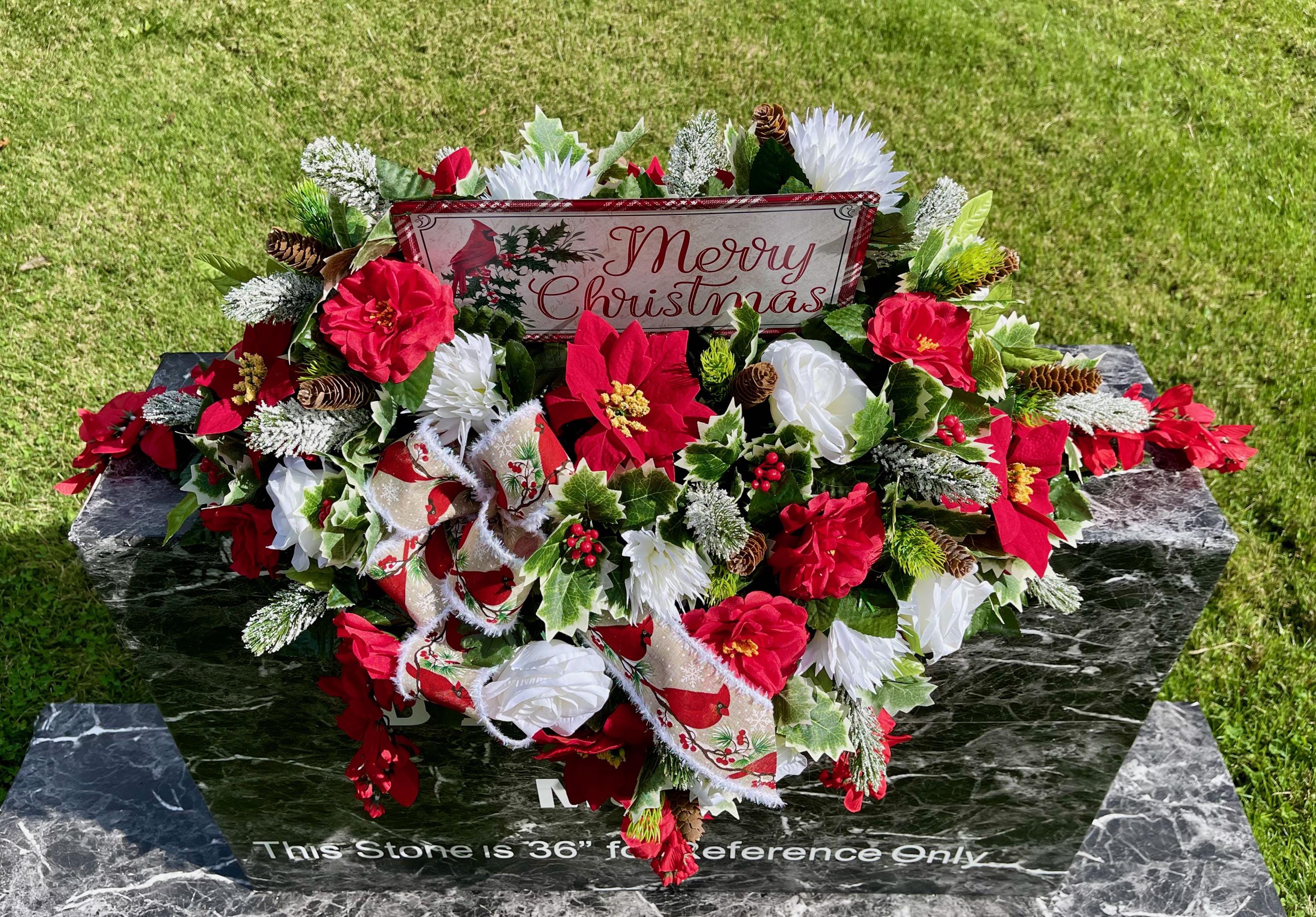 Merry Christmas Cardinal Sign Bow Christmas Cemetery Saddle Christmas, Christmas Cemetery Flowers, Christmas Headstone Saddle Arrangement