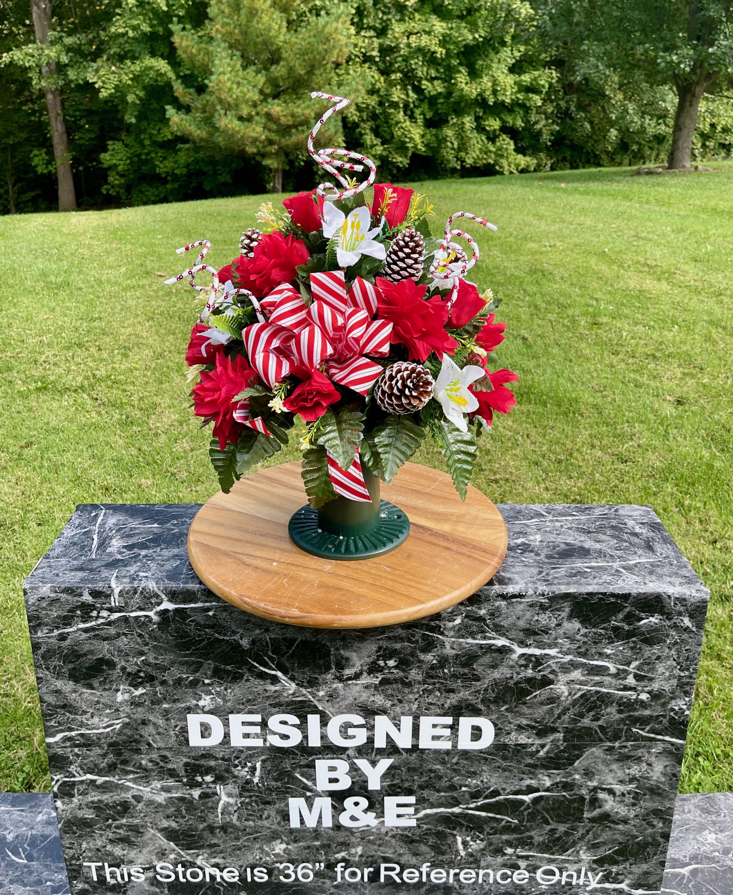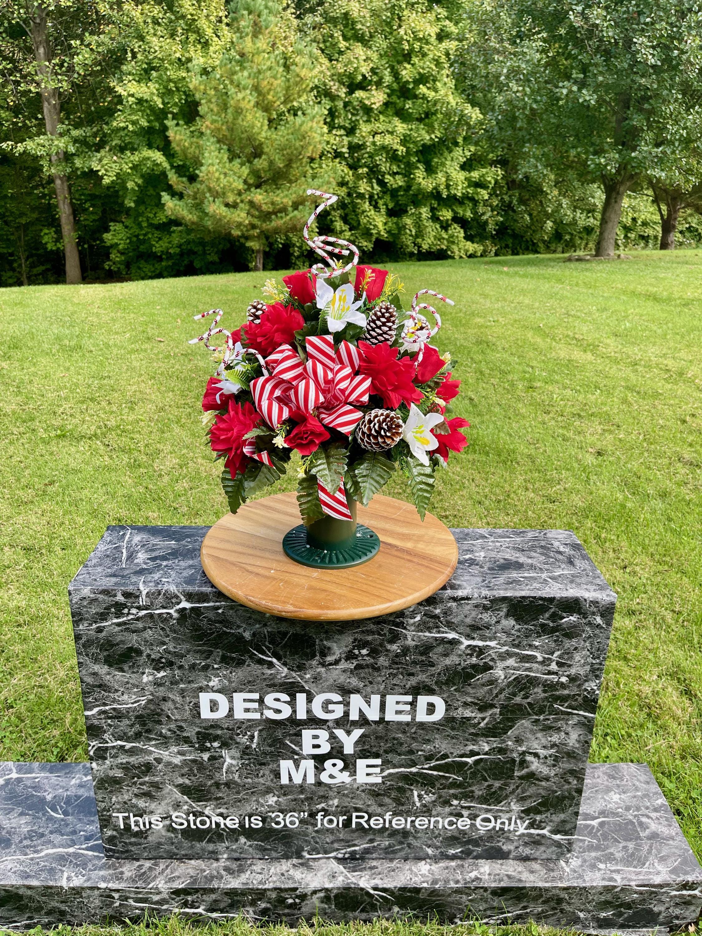 **Note** - The headstone pictured is 36" for reference only, please see photo on green measuring mat for arrangements exact dimensions.